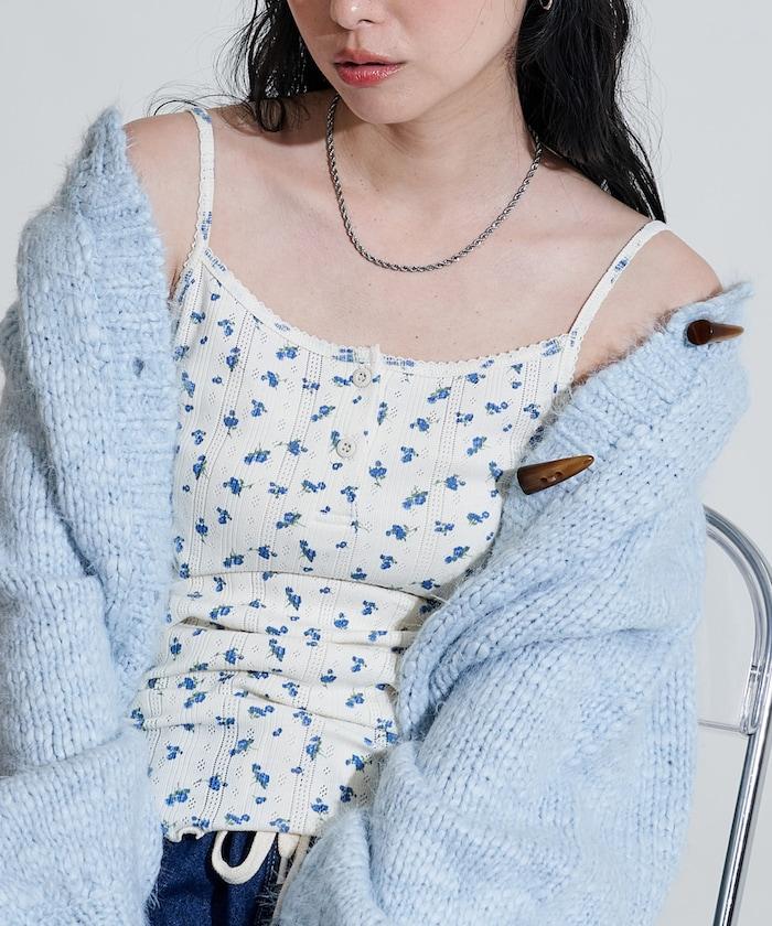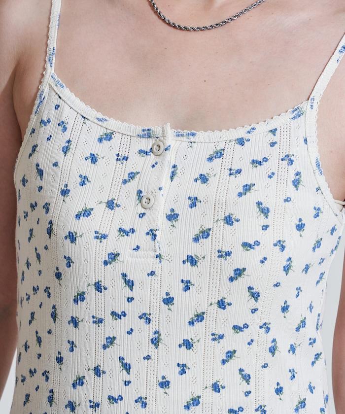 設計讓人聯想起復古保暖內衣,花朵圖案疊加在針刺網布上。