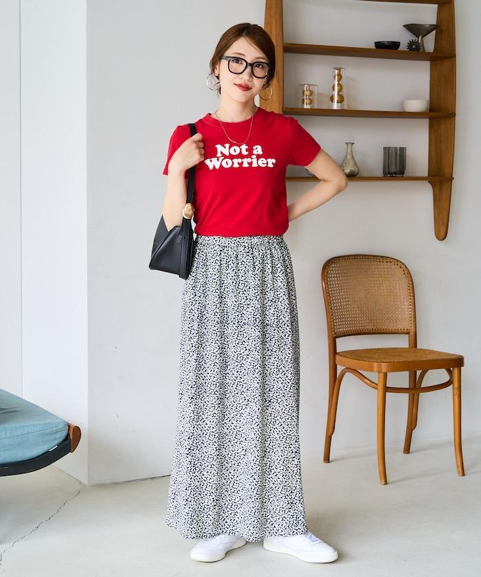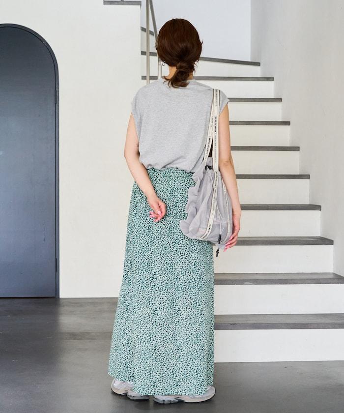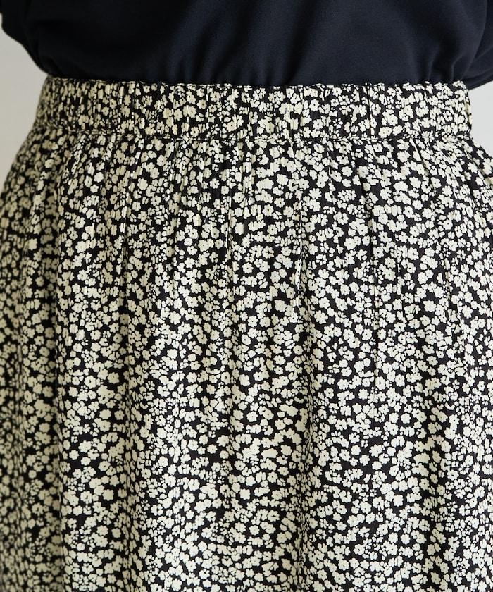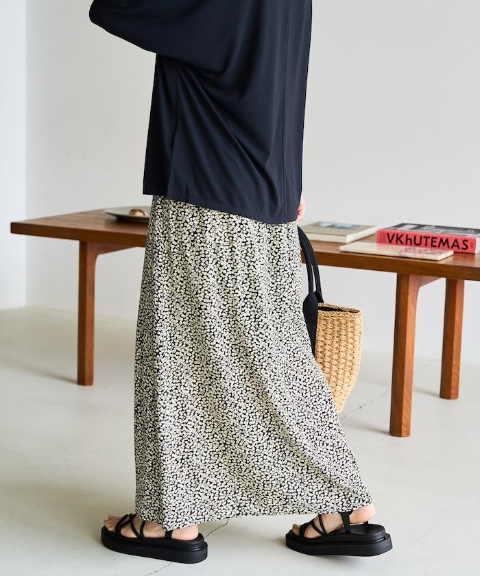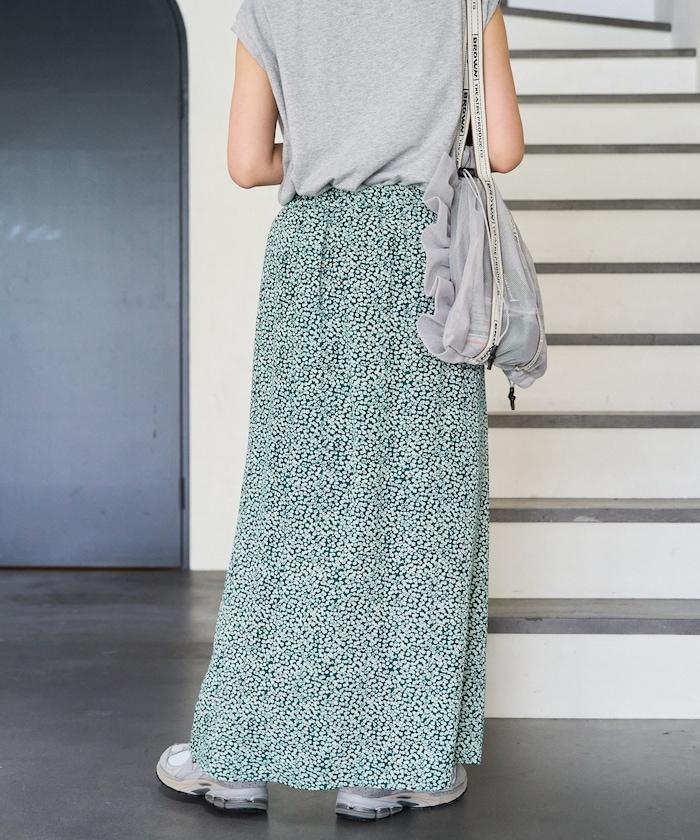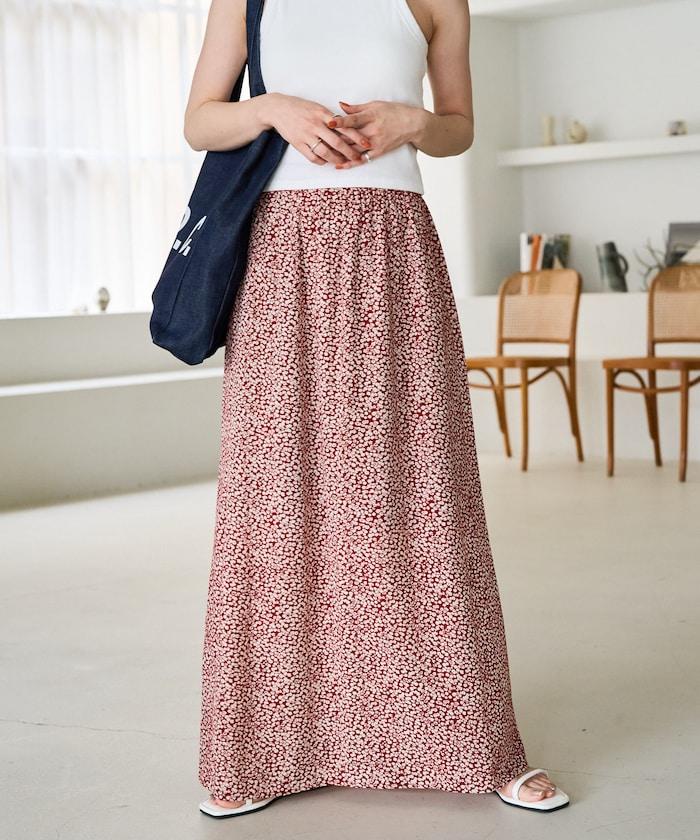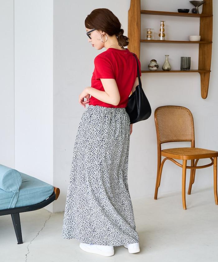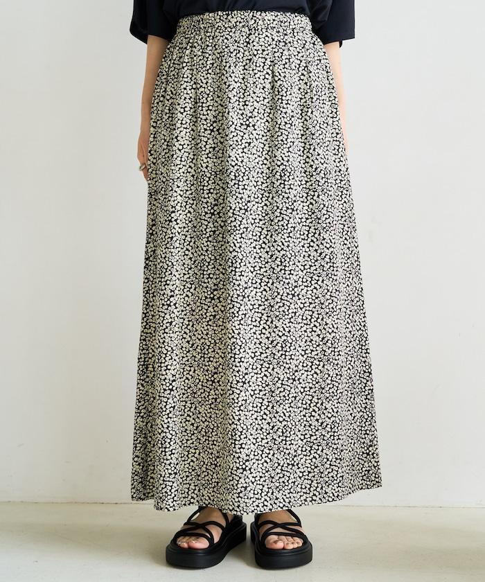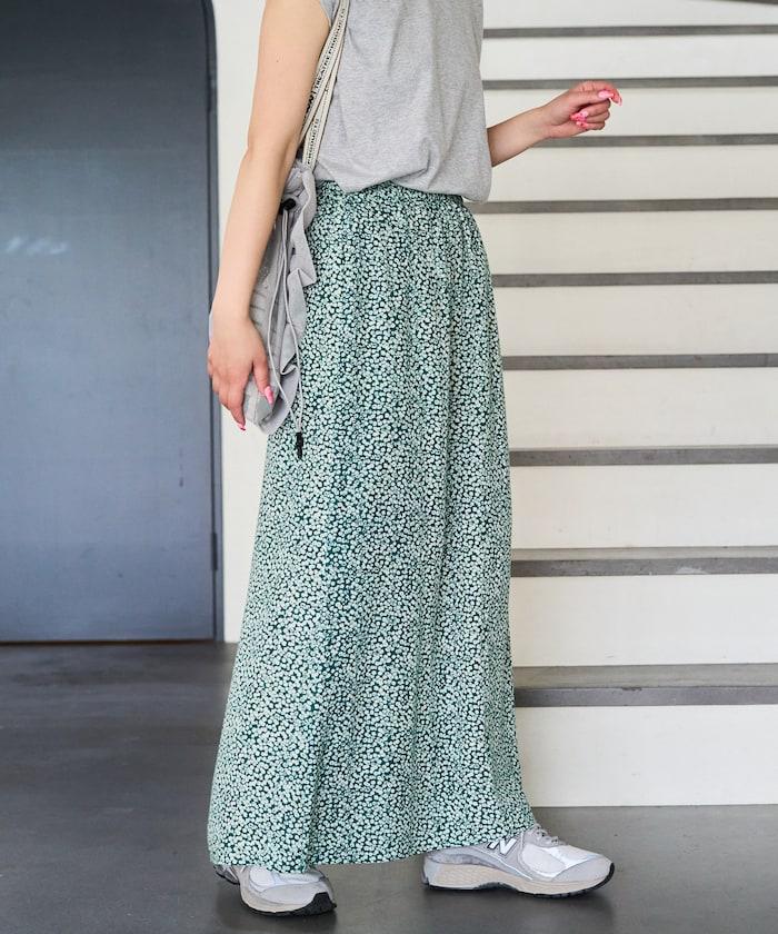醒目的超長喇叭裙,帶有復古花朵圖案。