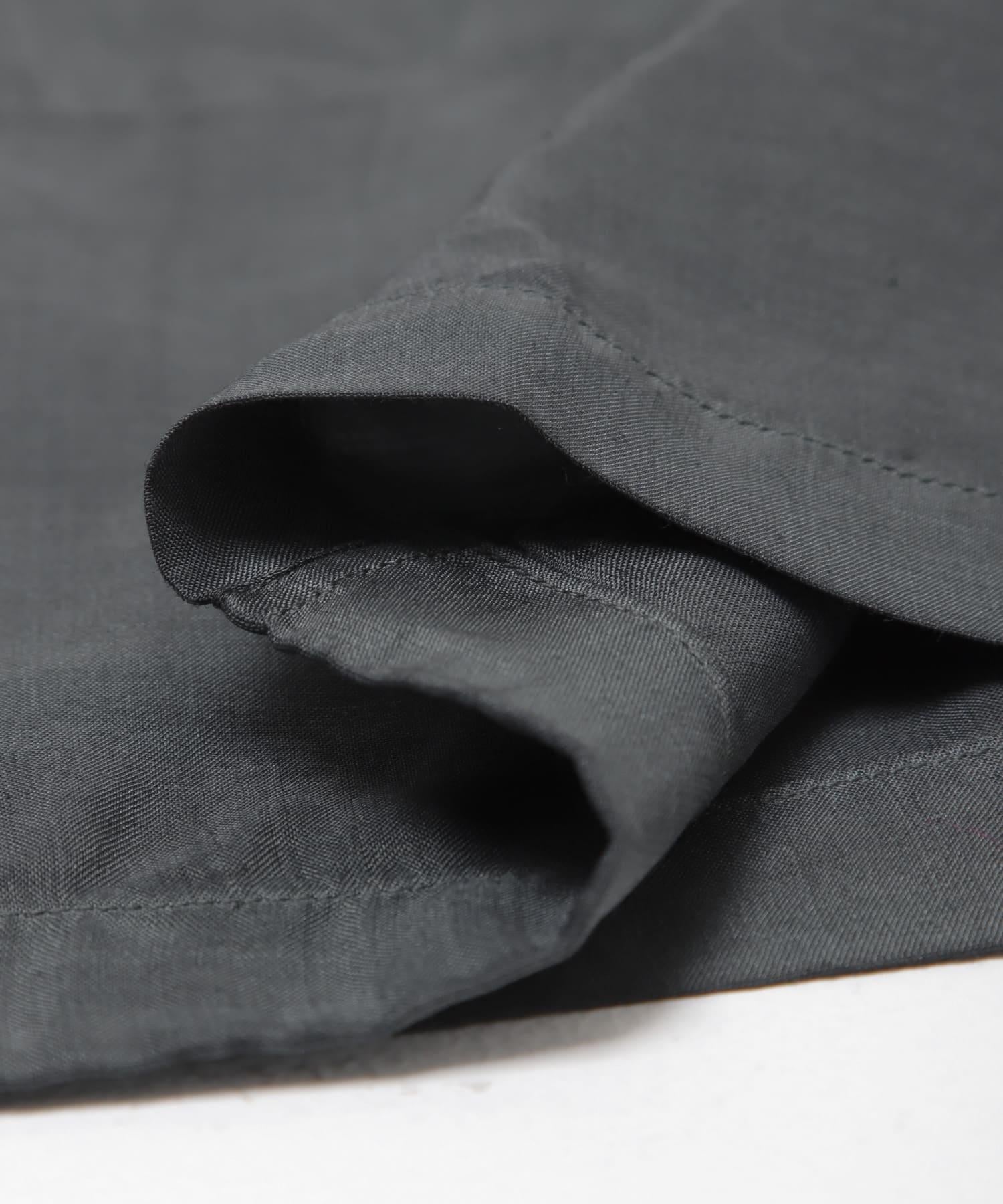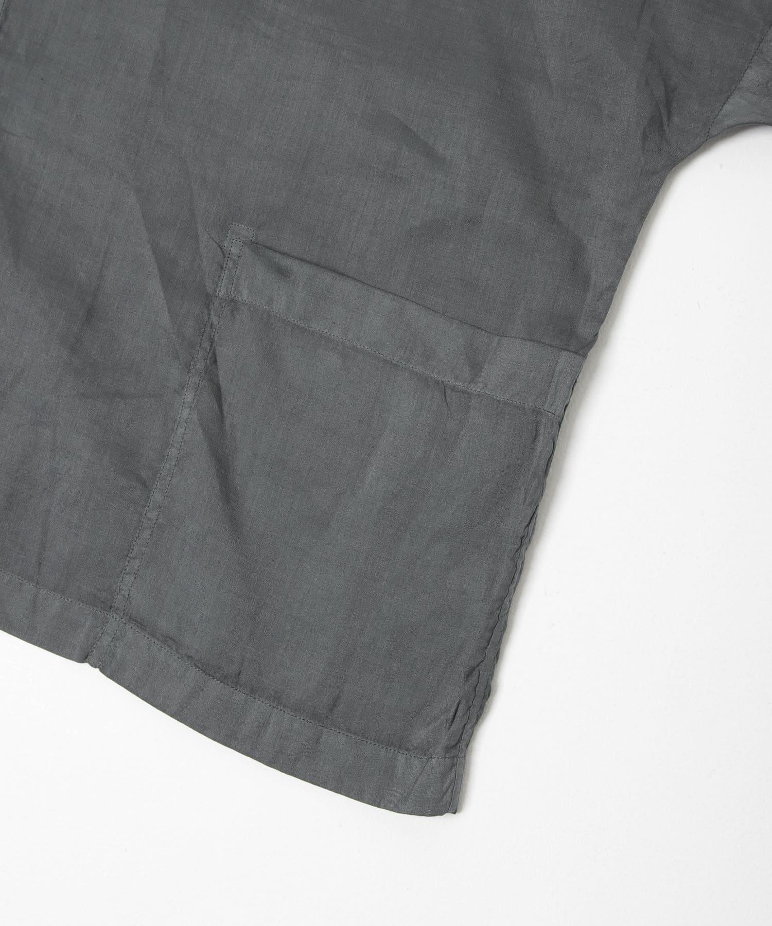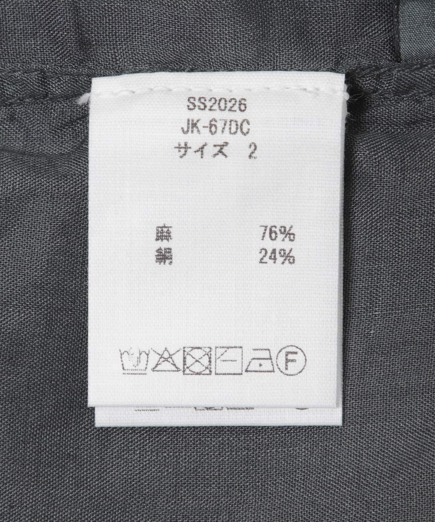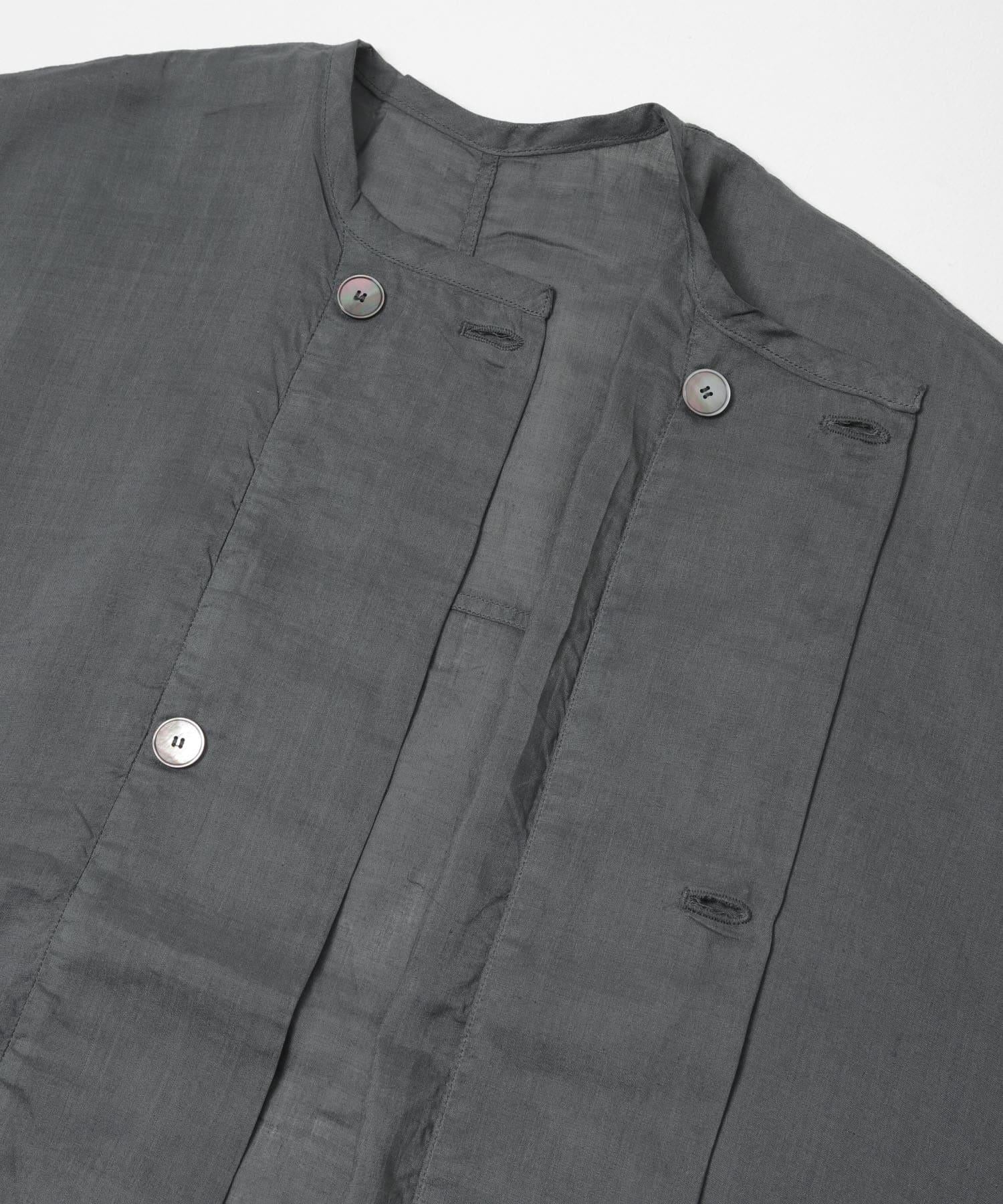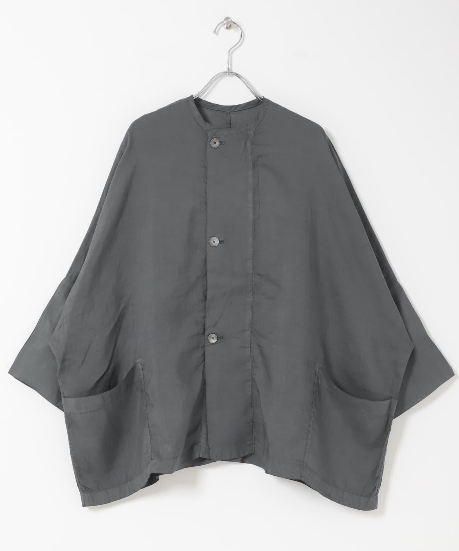 衣身非常寬大,整體輪廓寬鬆,無論裡面穿什麼都能穿。前緣採用大而深的重疊設計,即使打開紐扣,前部中心也不會張開太多,保持了簡潔的線條。雖然是夾克單品號,但輕薄的面料讓它像襯衫一樣輕盈,從春到秋的各種季節都能穿著舒適。紐扣採用貝類紐扣,是一種天然材料。