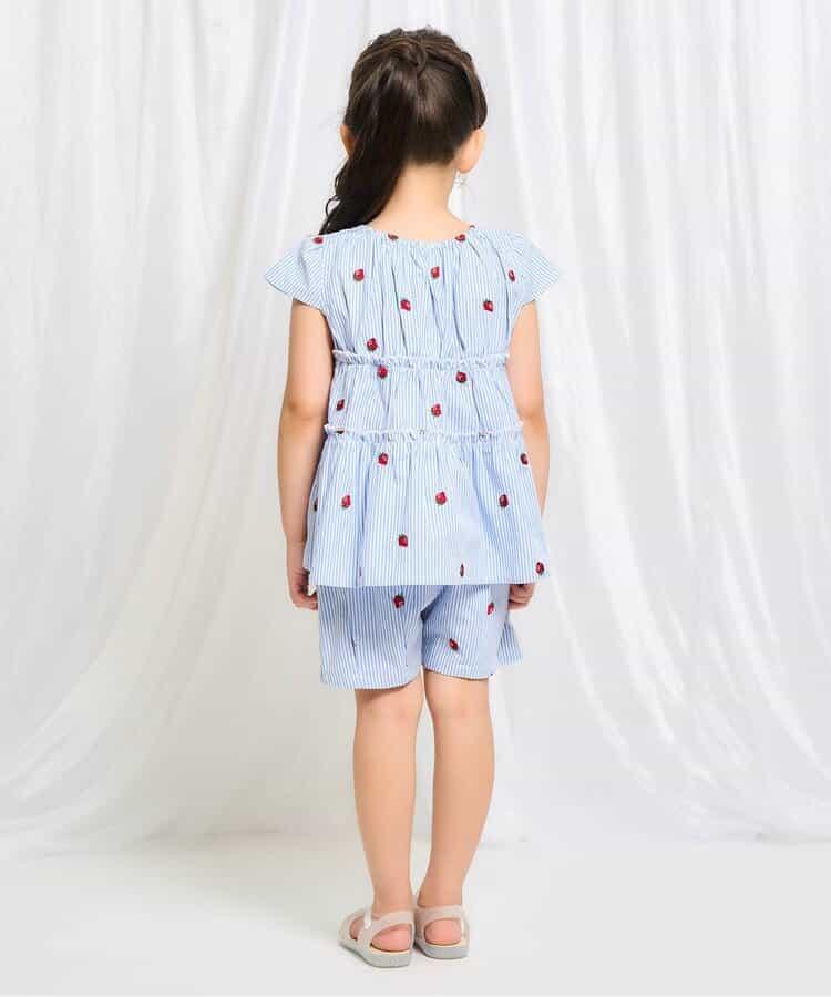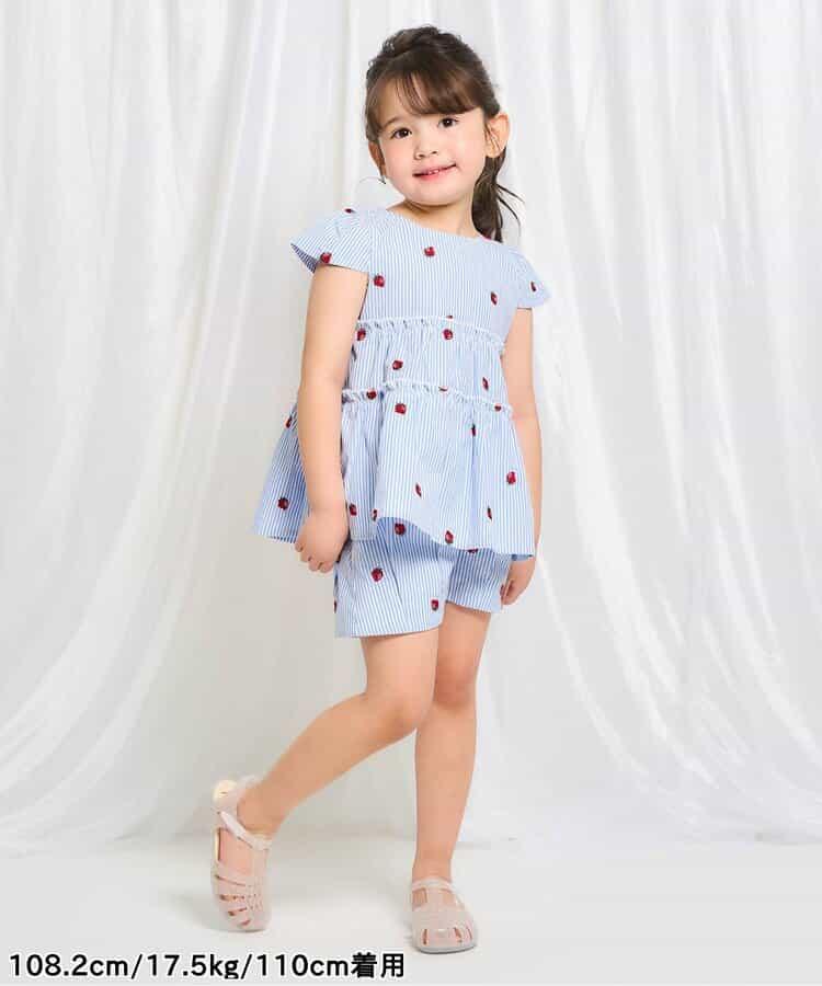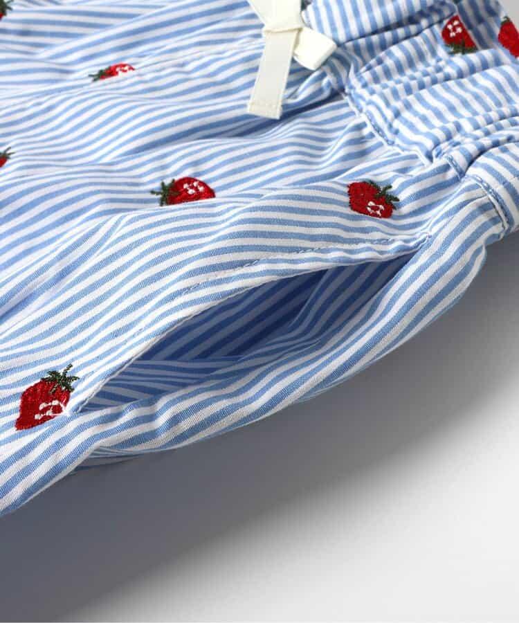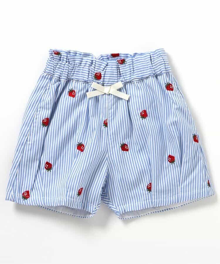 這款名為 "草莓和花朵圖案刺繡短褲_RP "的 apres les cours 長褲是一款時尚單品,在自然風格中加入了微妙的設計*。
