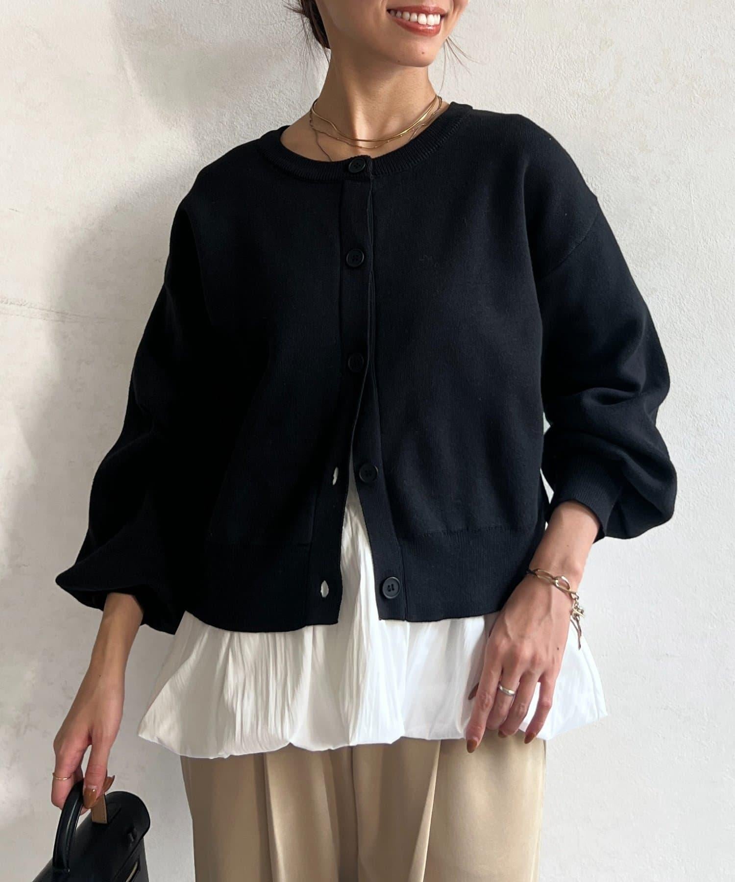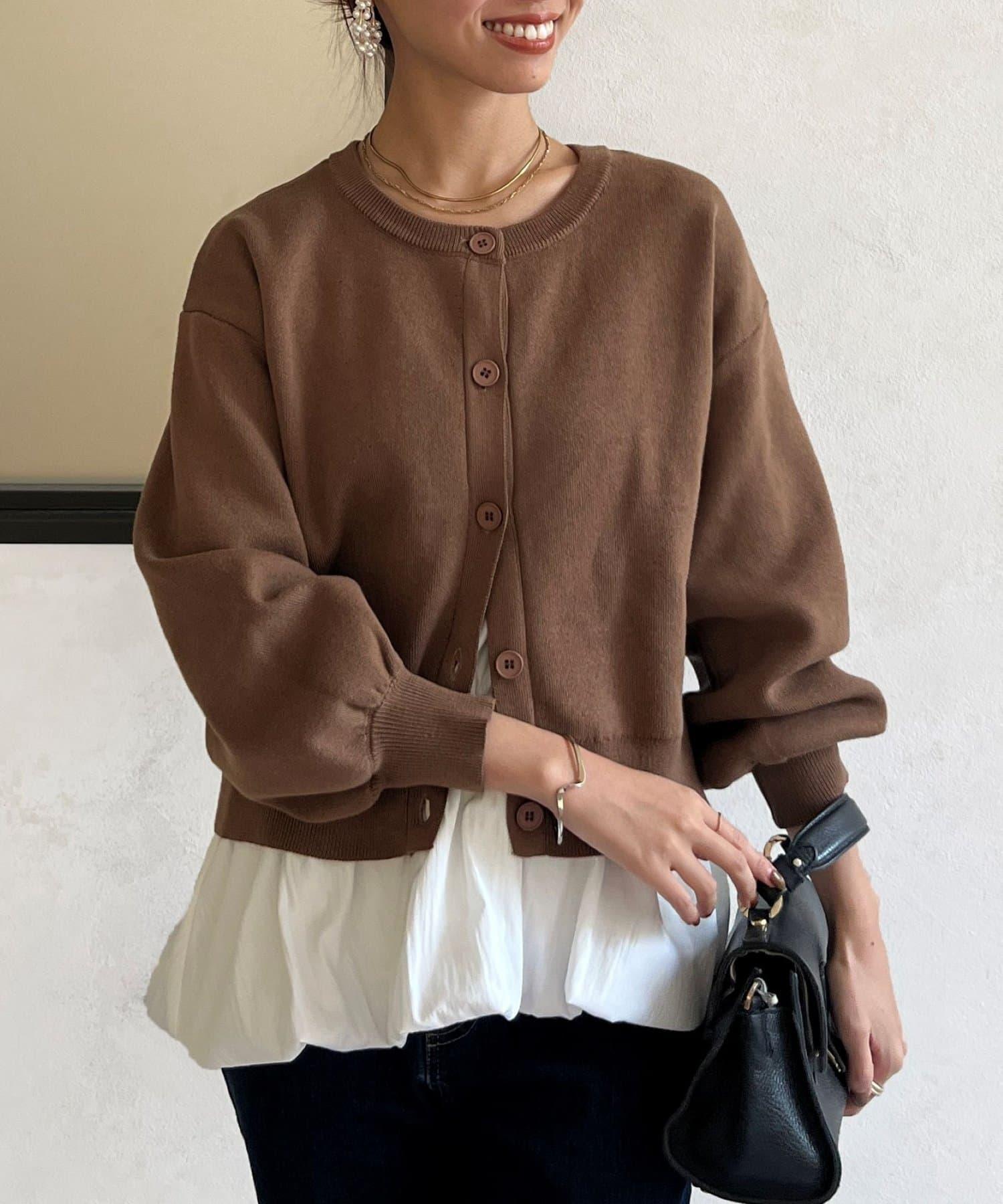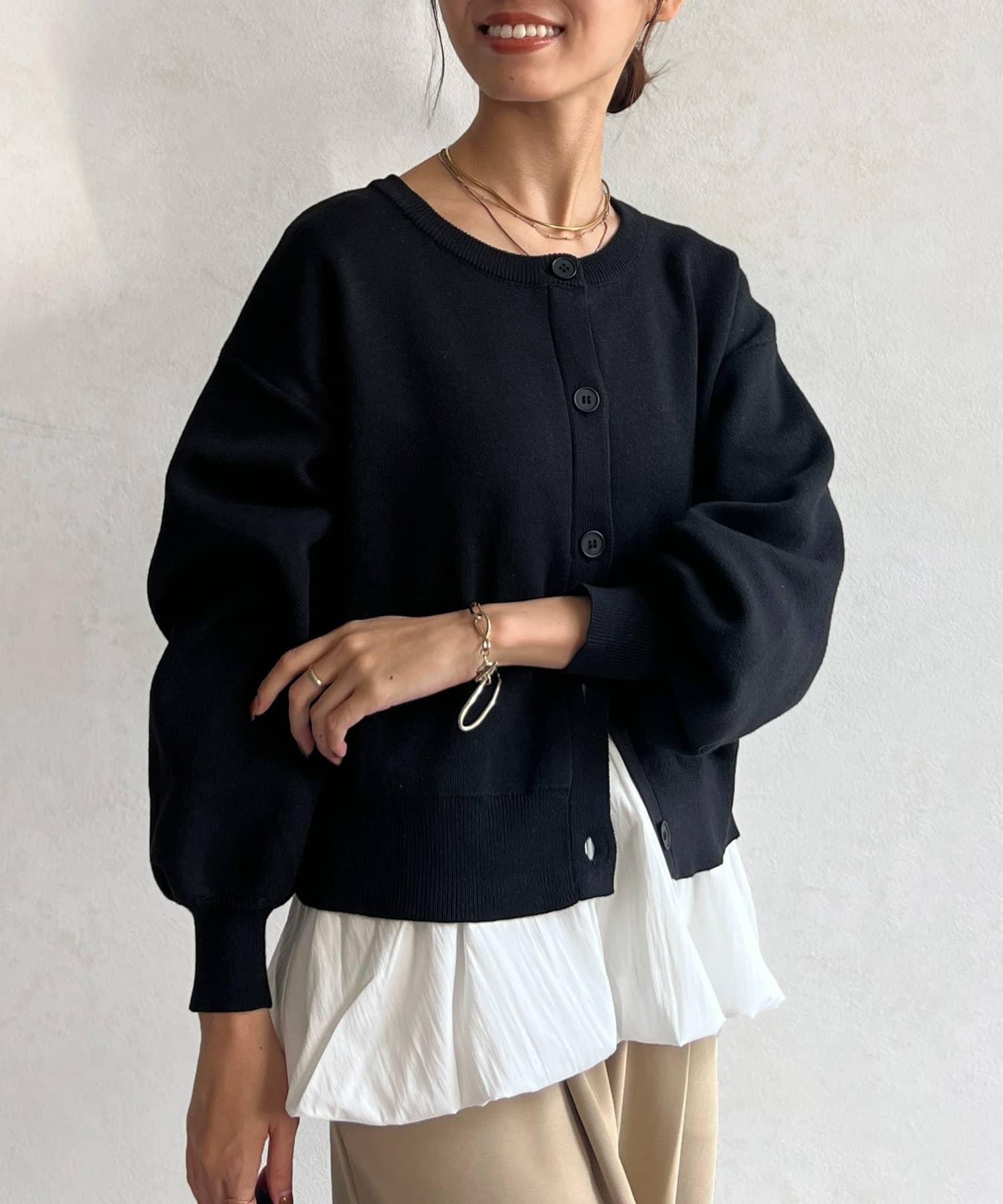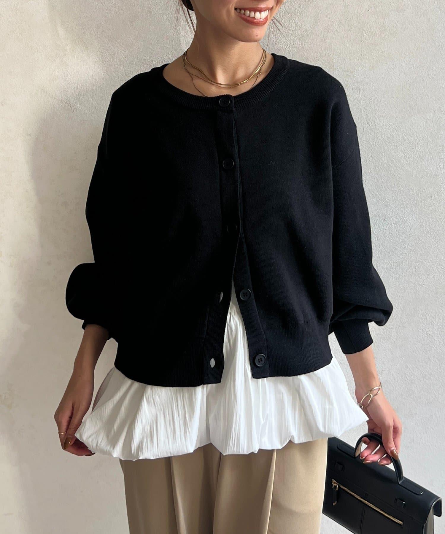 這套單品由具有強烈存在感的波點內搭和具有可愛成人風的簡約開衫組成。