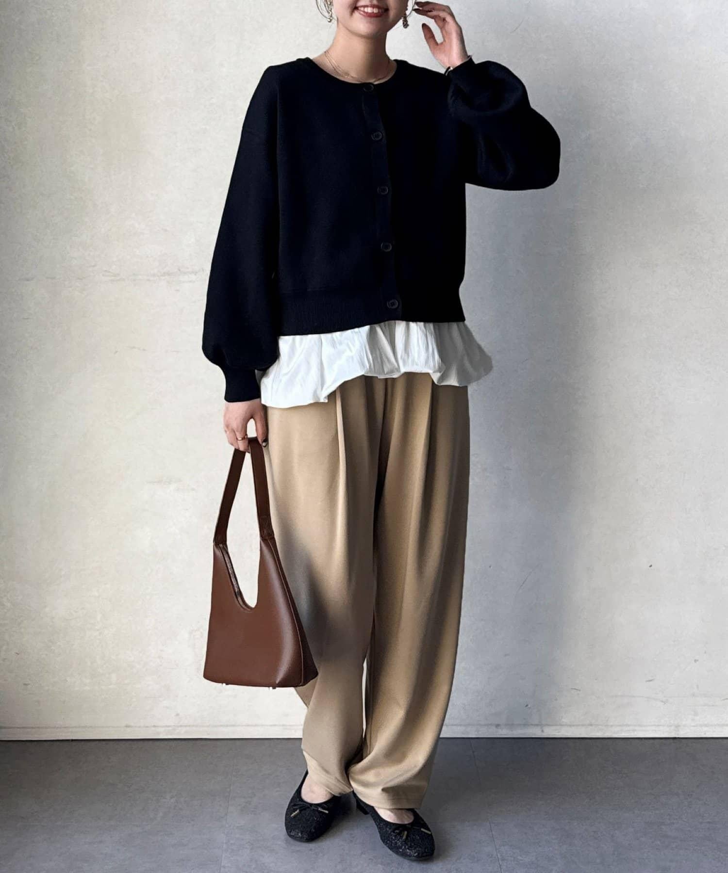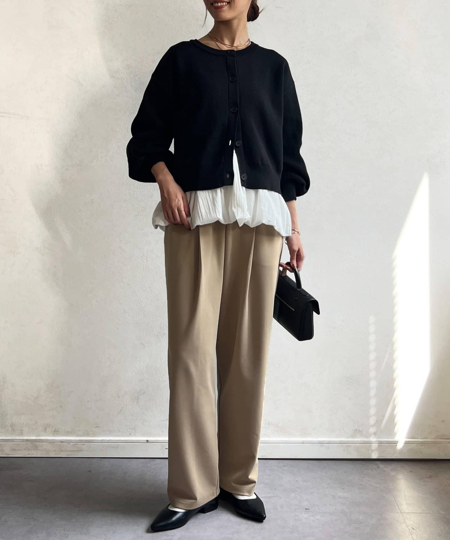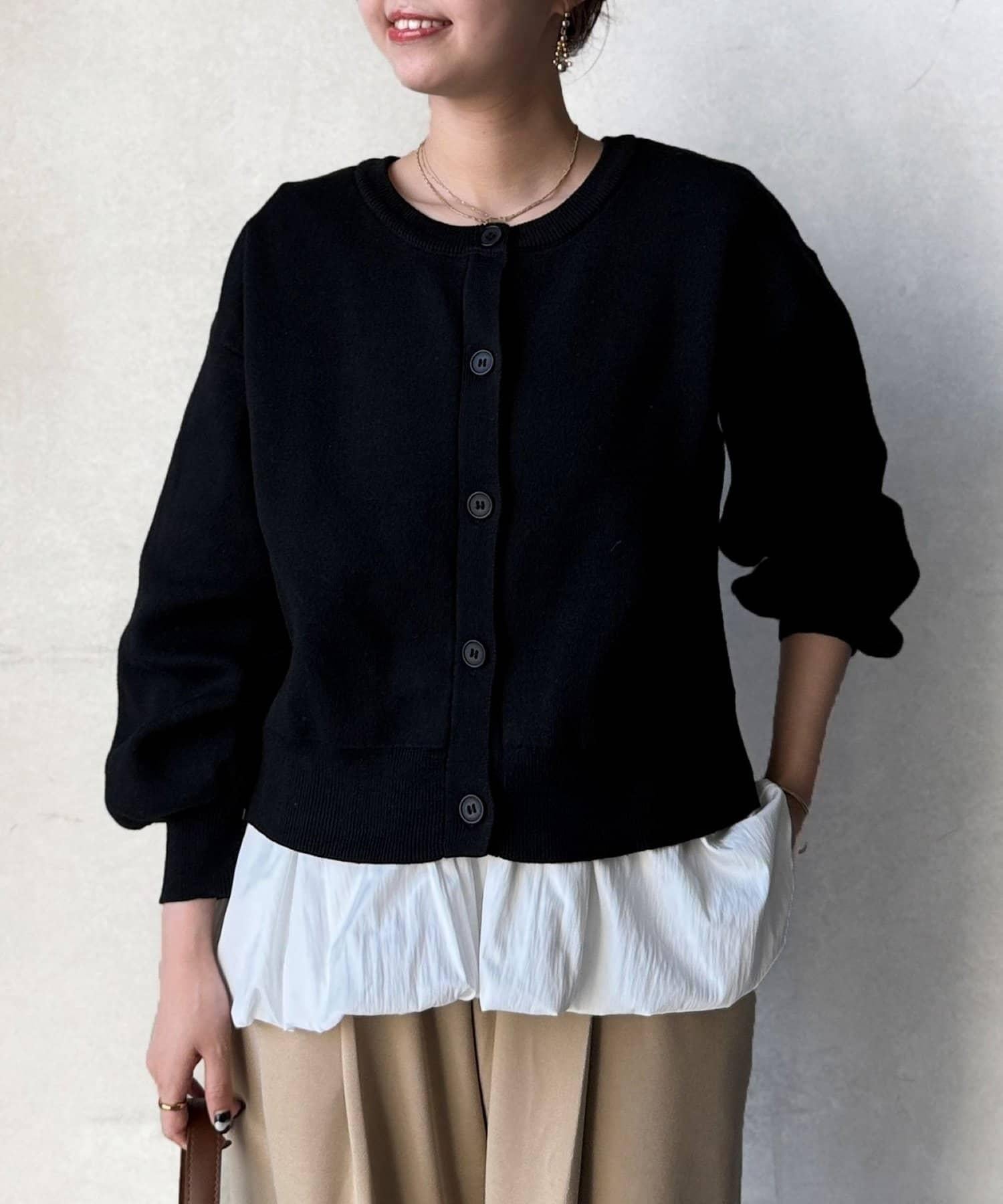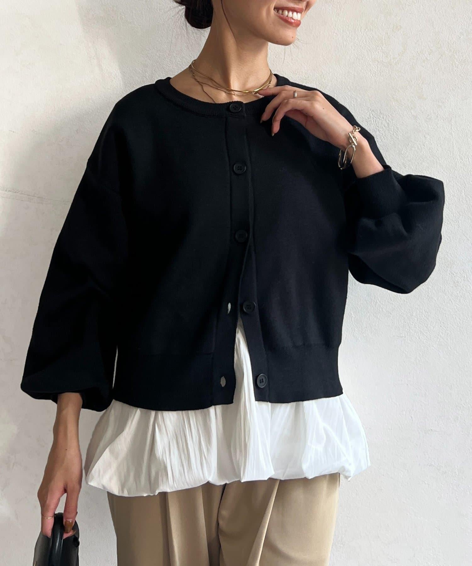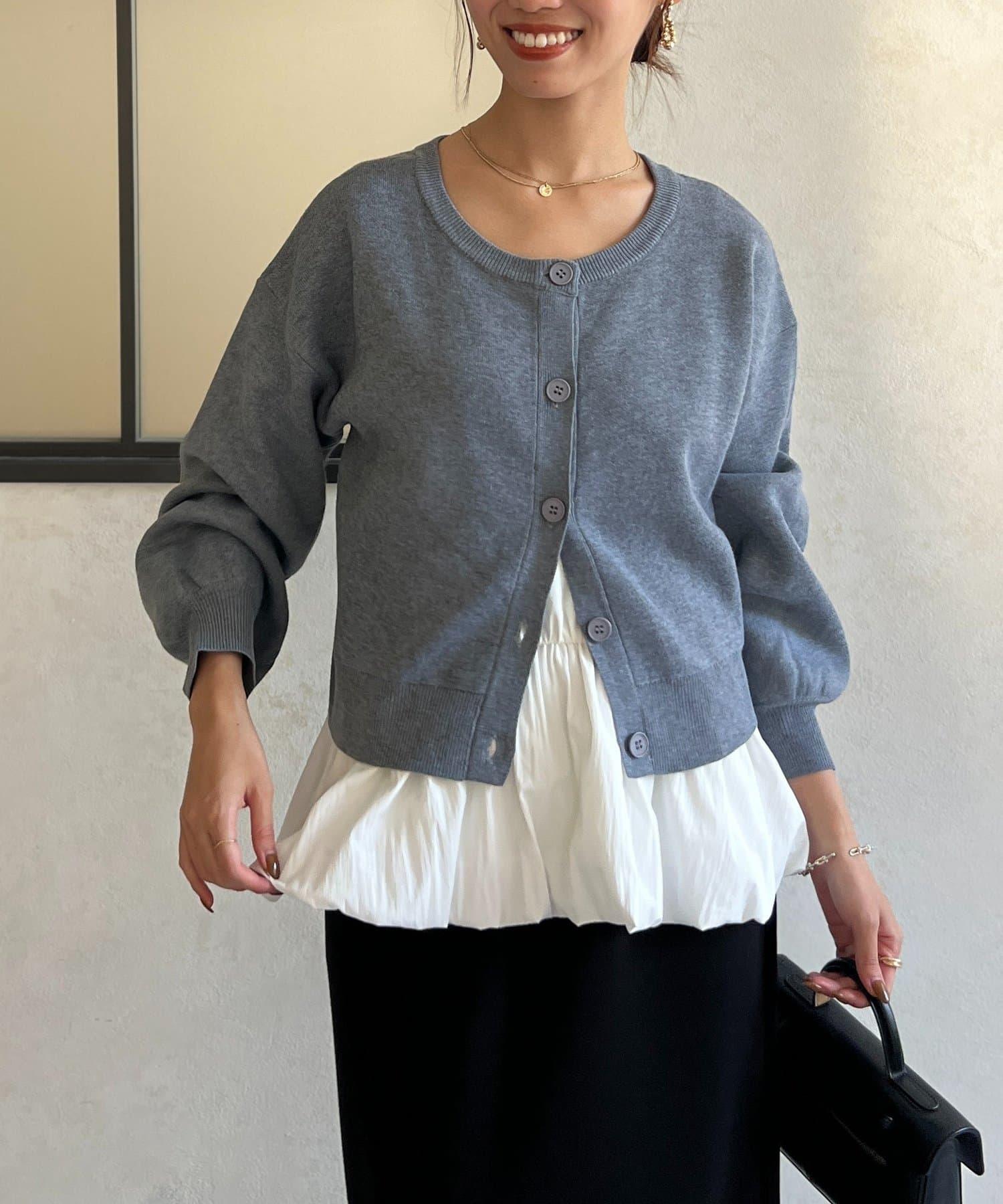 這套單品由具有強烈存在感的波點內搭和具有可愛成人風的簡約開衫組成。