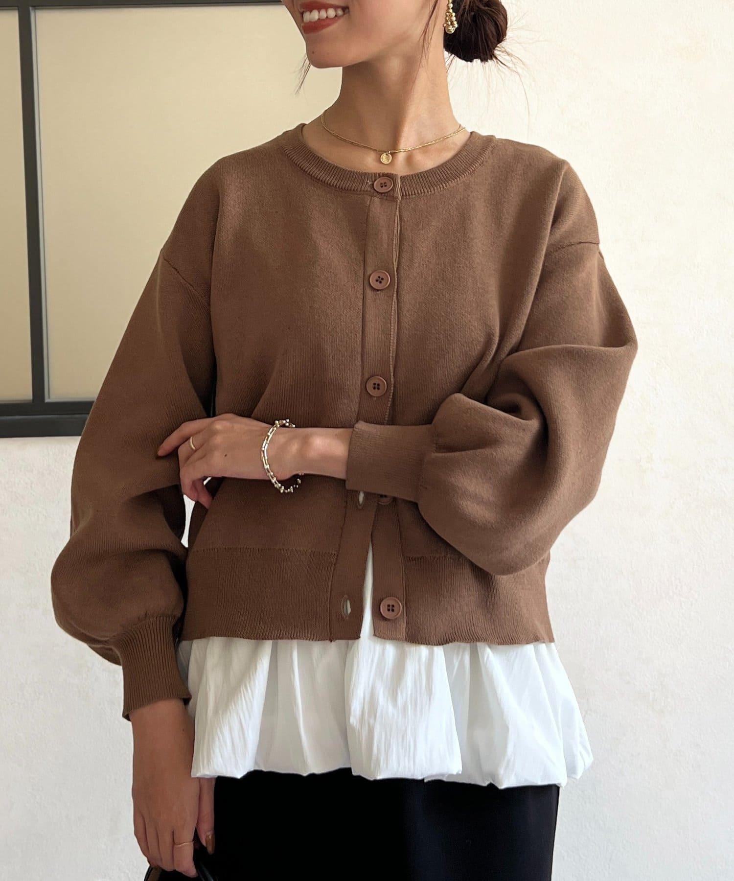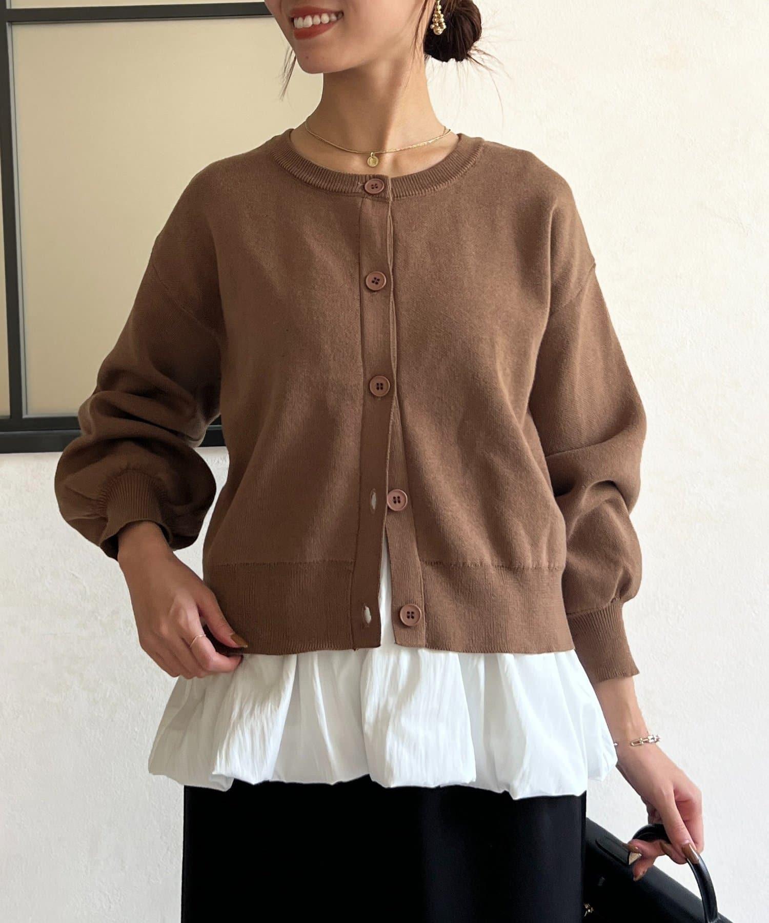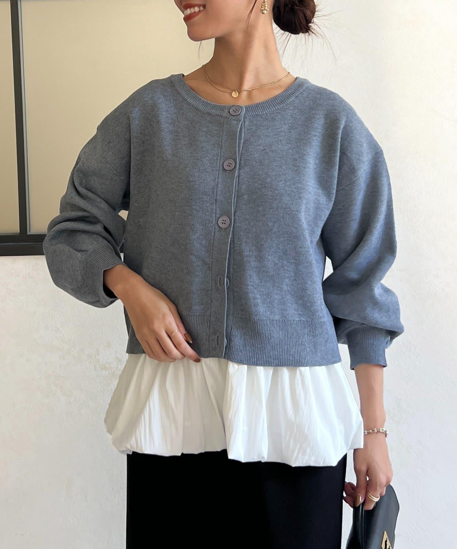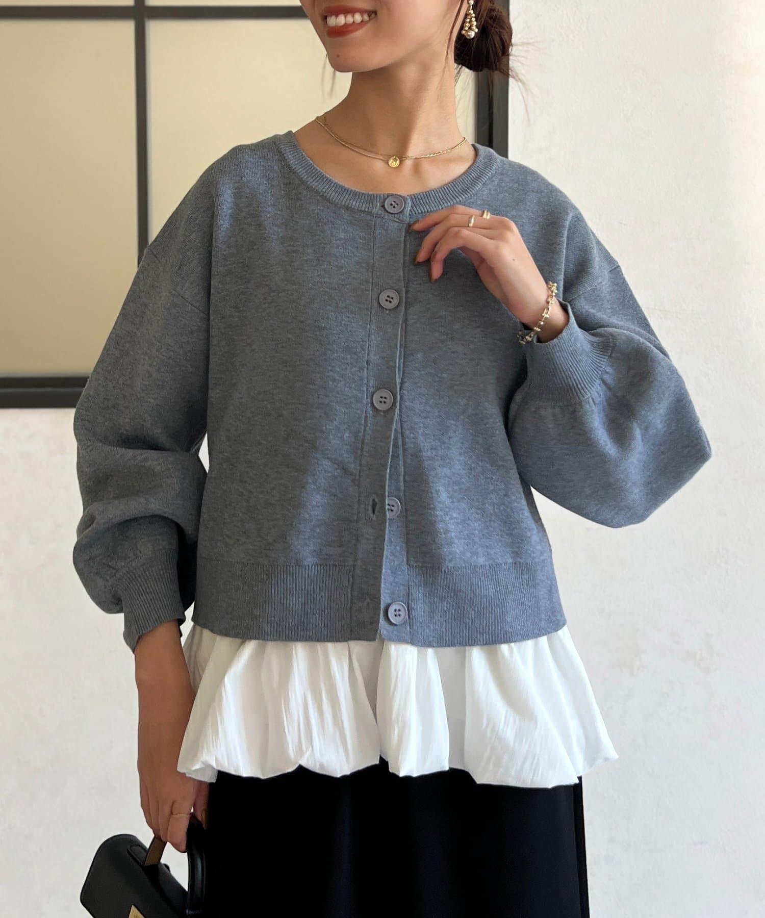這套單品由具有強烈存在感的波點內搭和具有可愛成人風的簡約開衫組成。