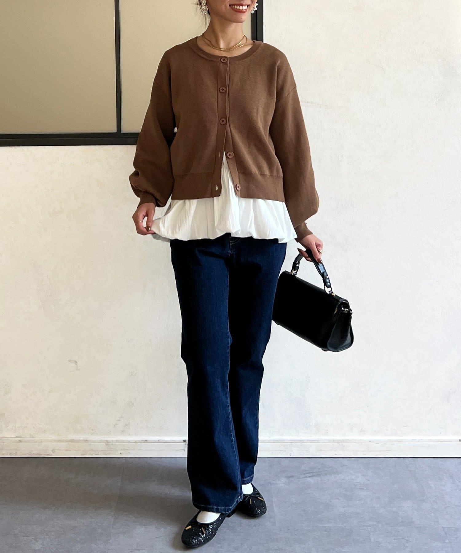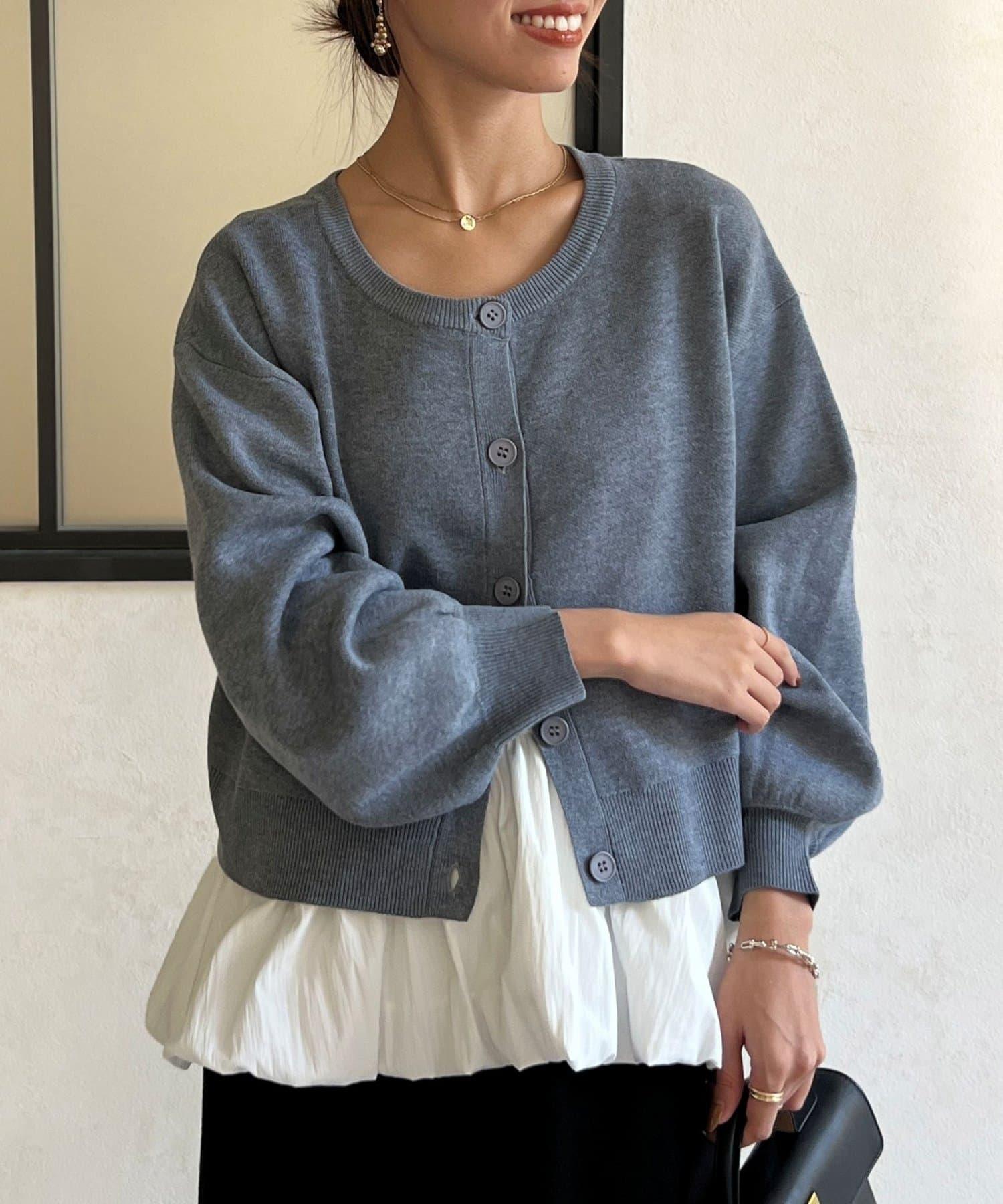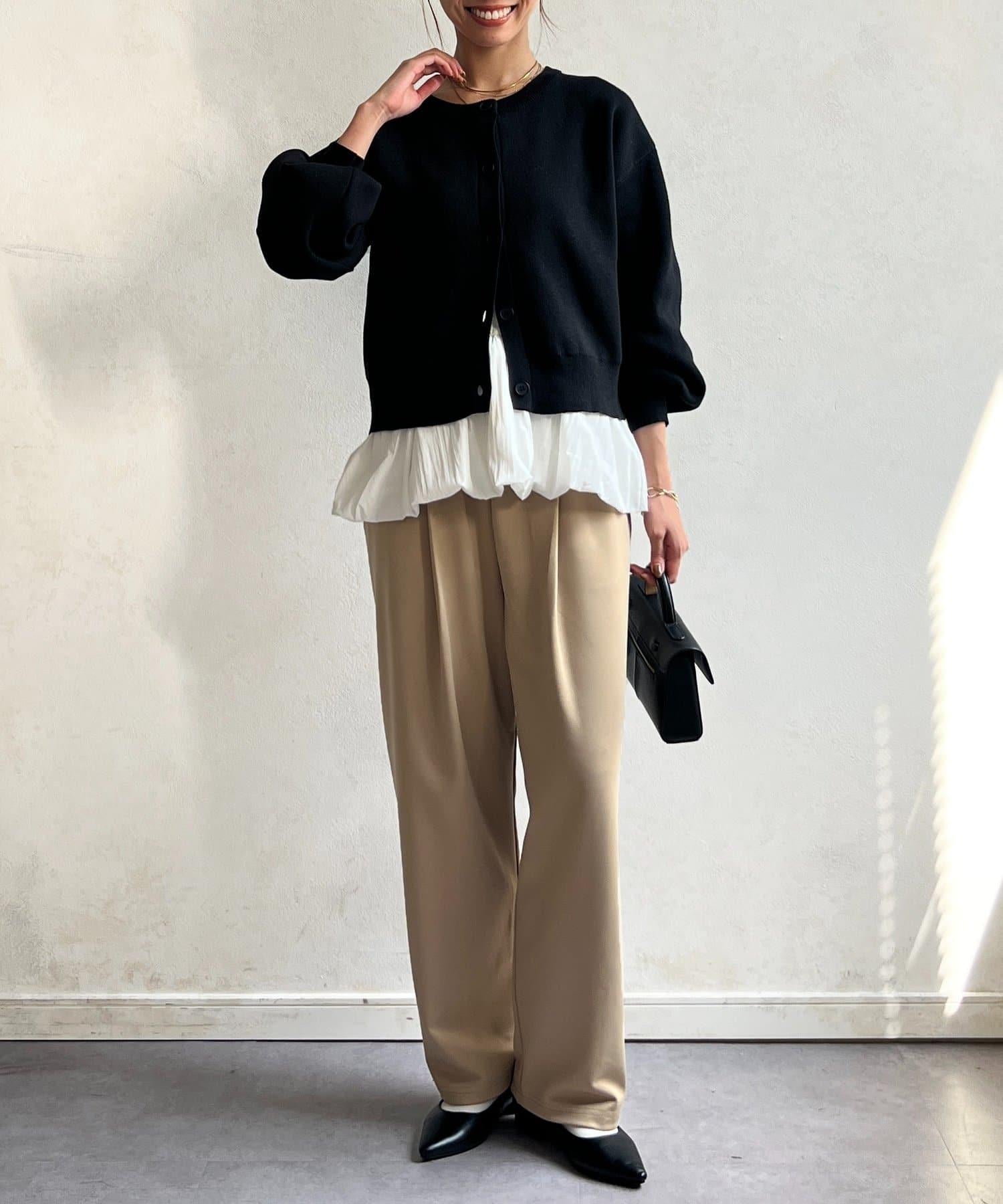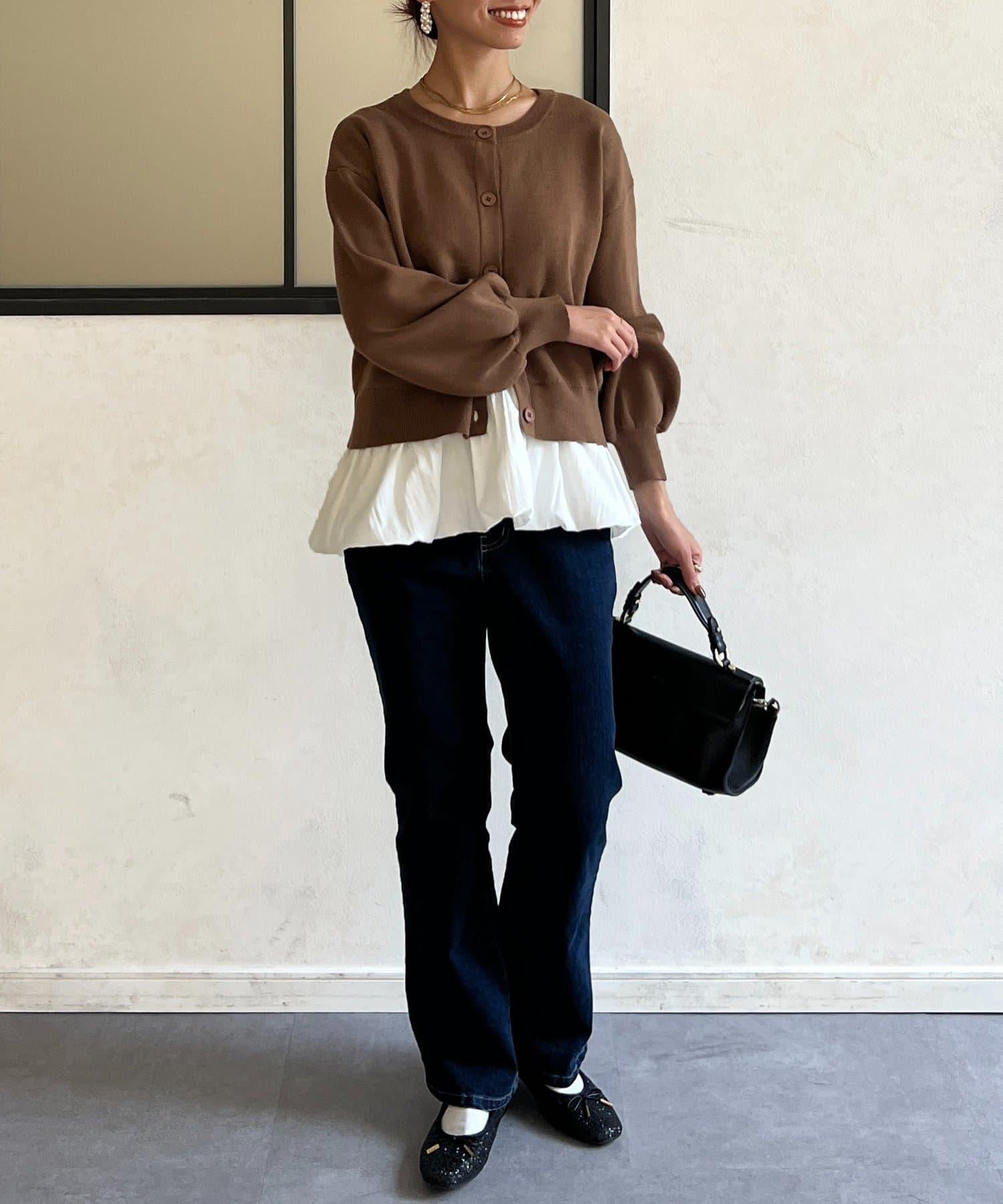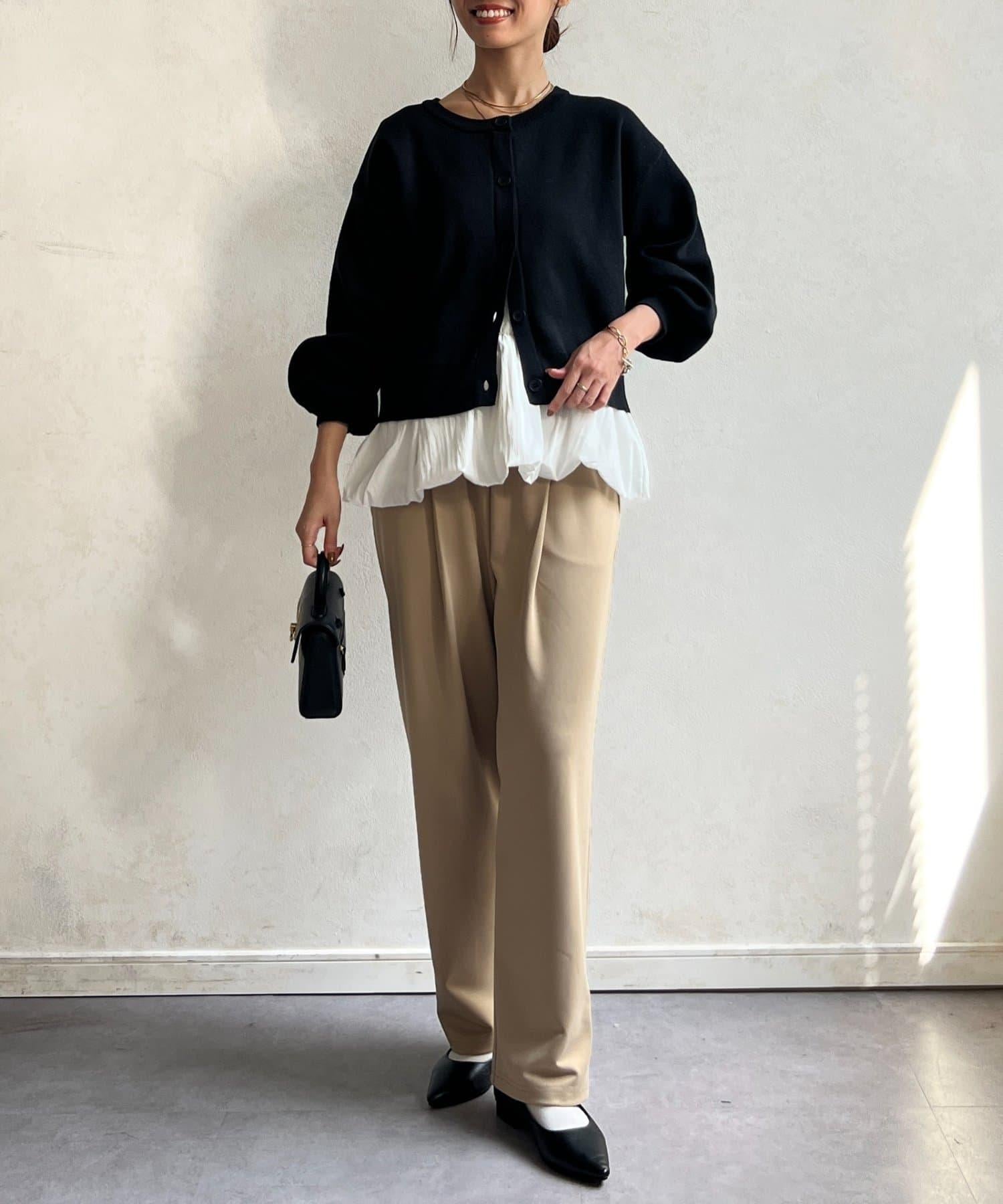 這套單品由具有強烈存在感的波點內搭和具有可愛成人風的簡約開衫組成。