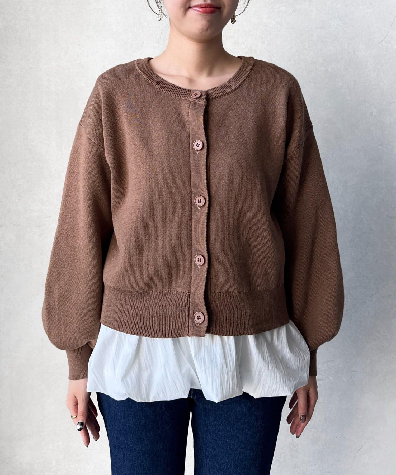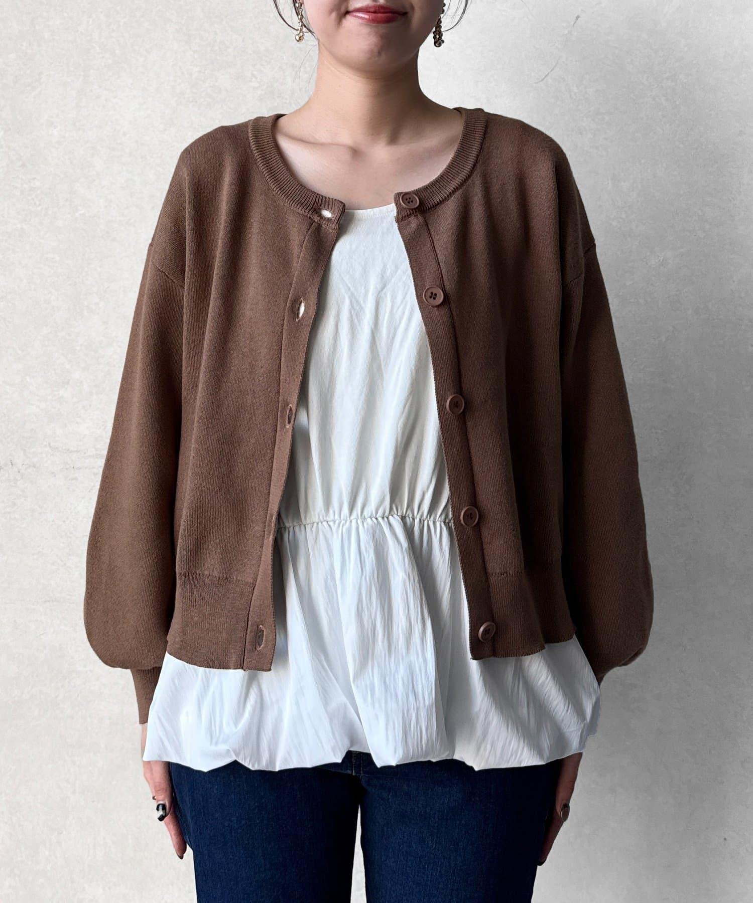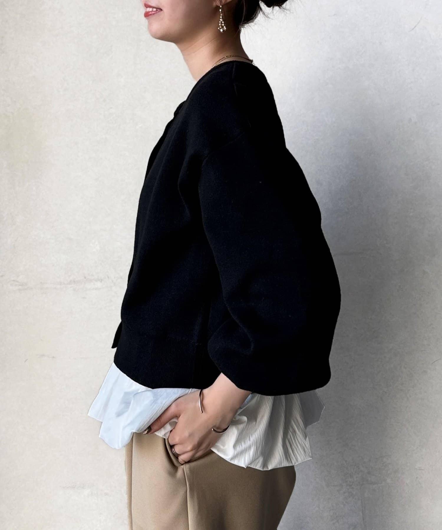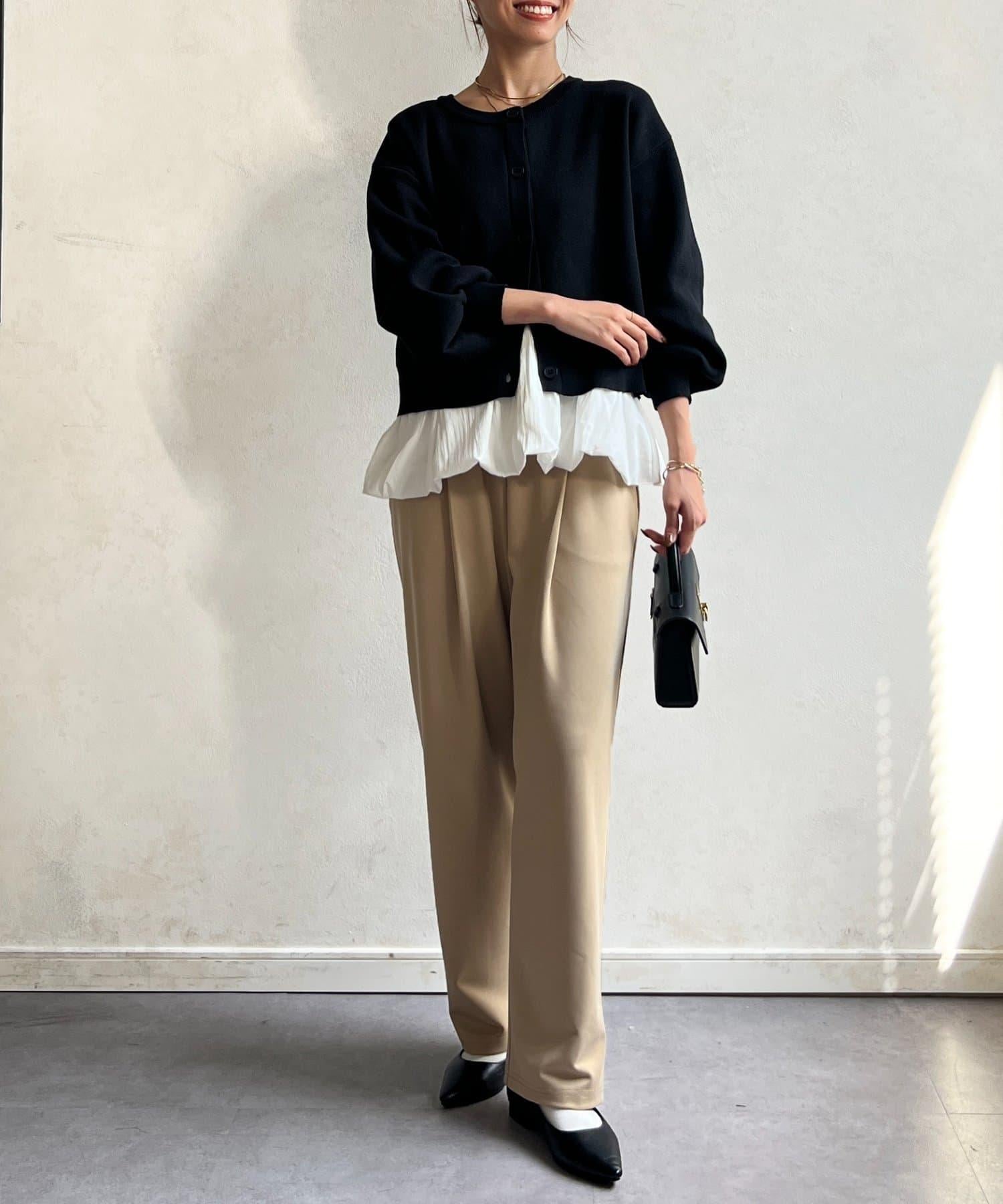 這套單品由具有強烈存在感的波點內搭和具有可愛成人風的簡約開衫組成。