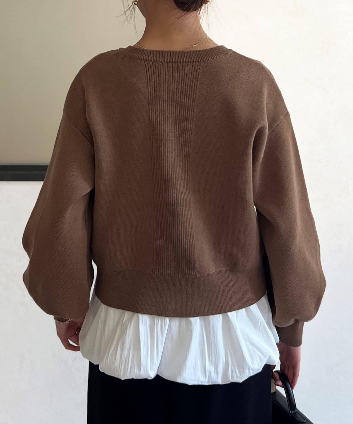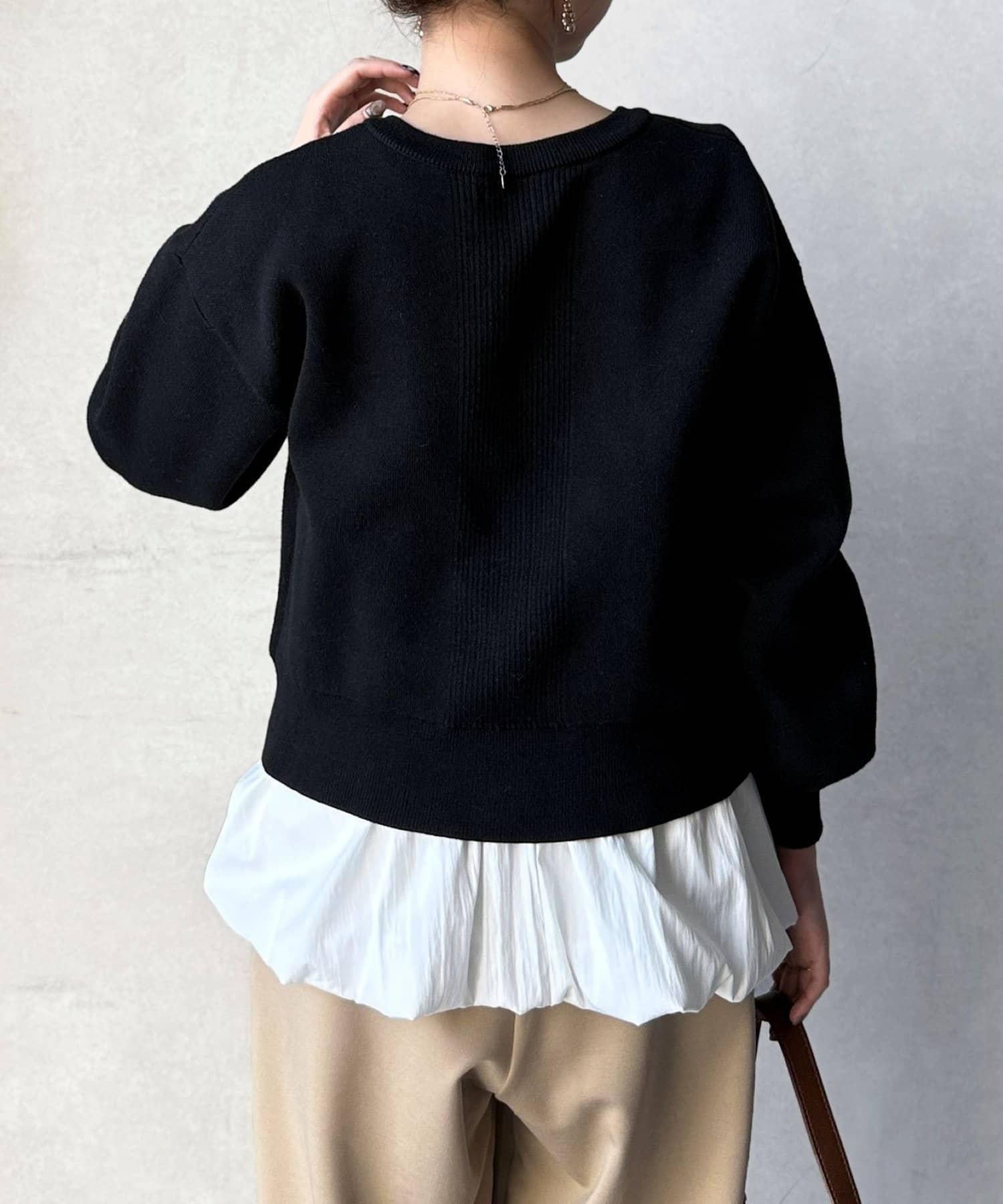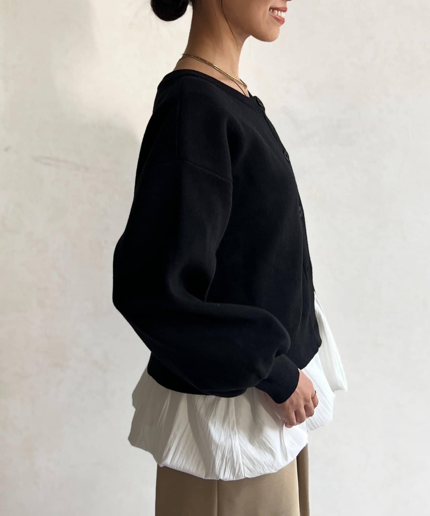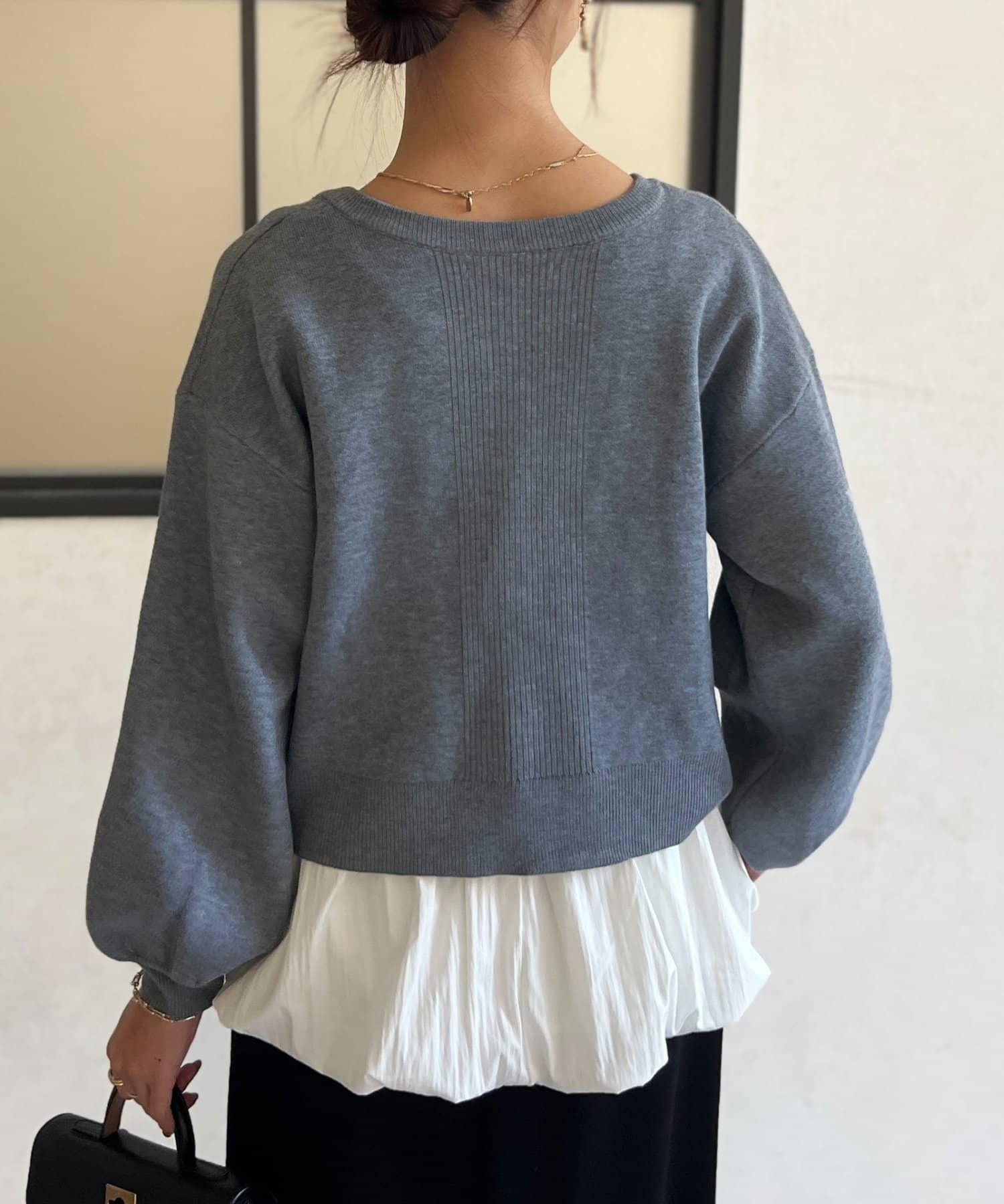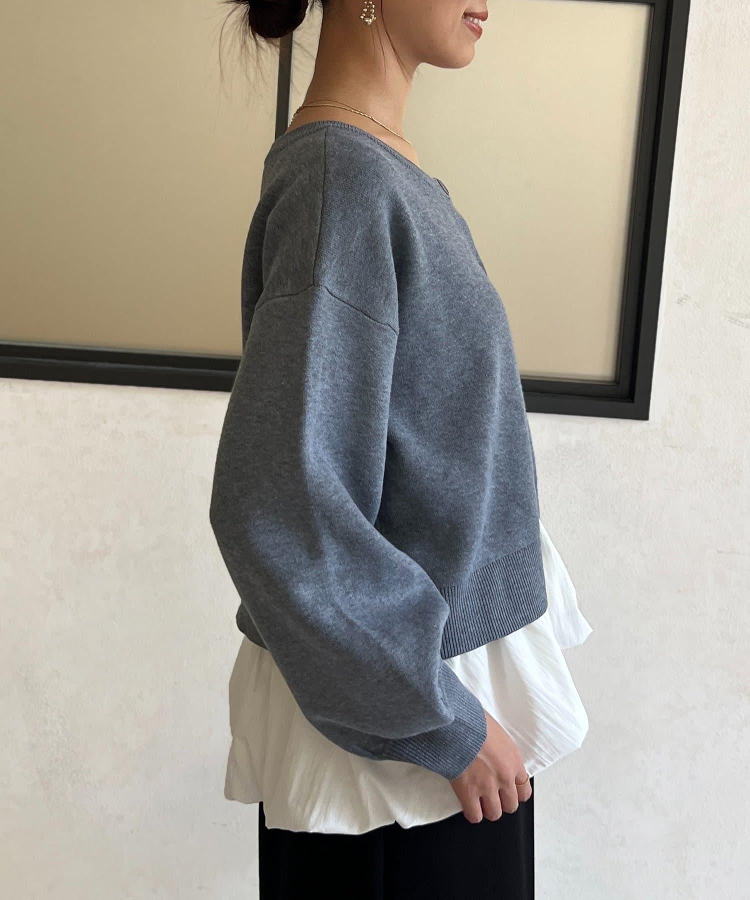 由於可前後雙向穿著,因此也可作為圓領針織衫穿著。