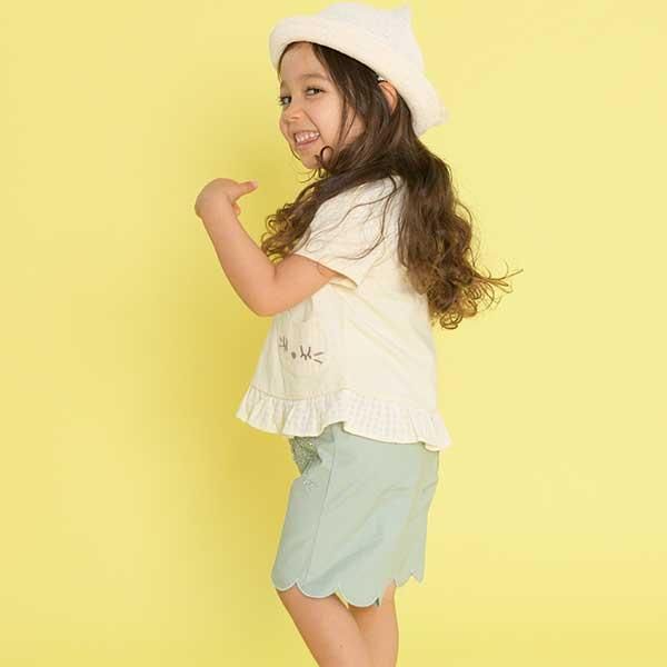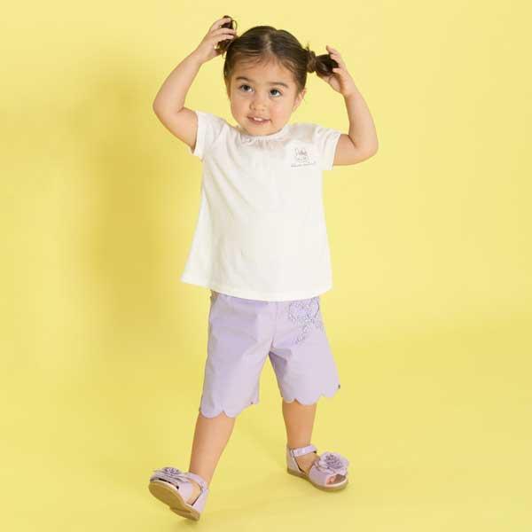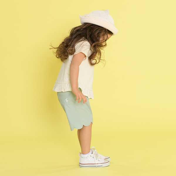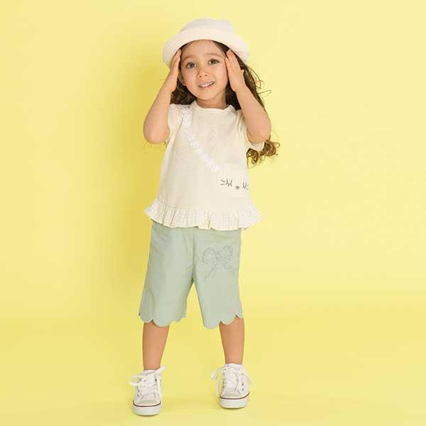 荷葉邊剪裁彈力府綢五分褲(90)