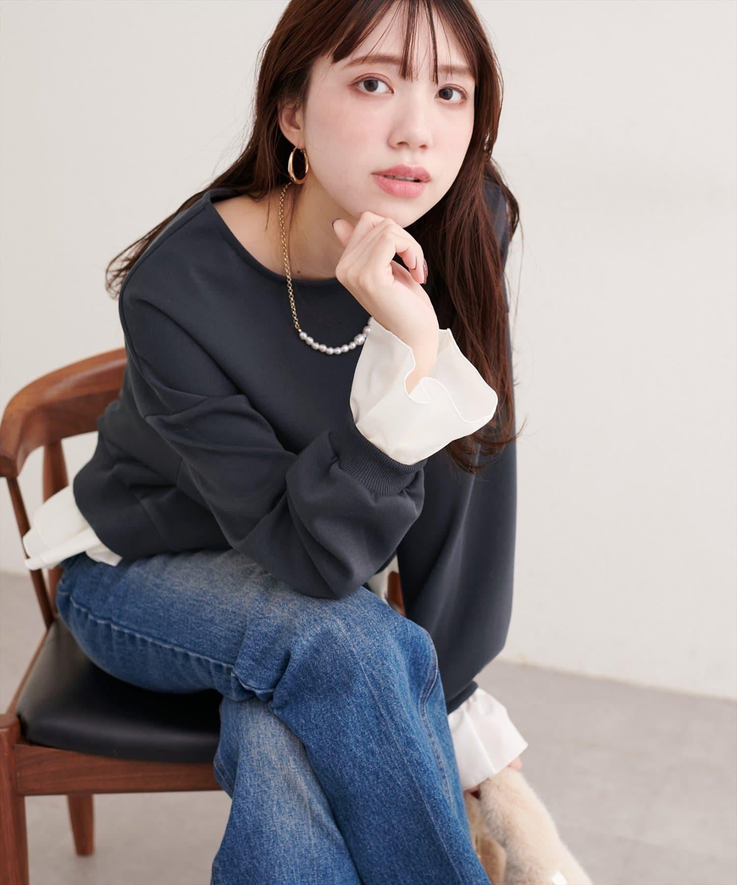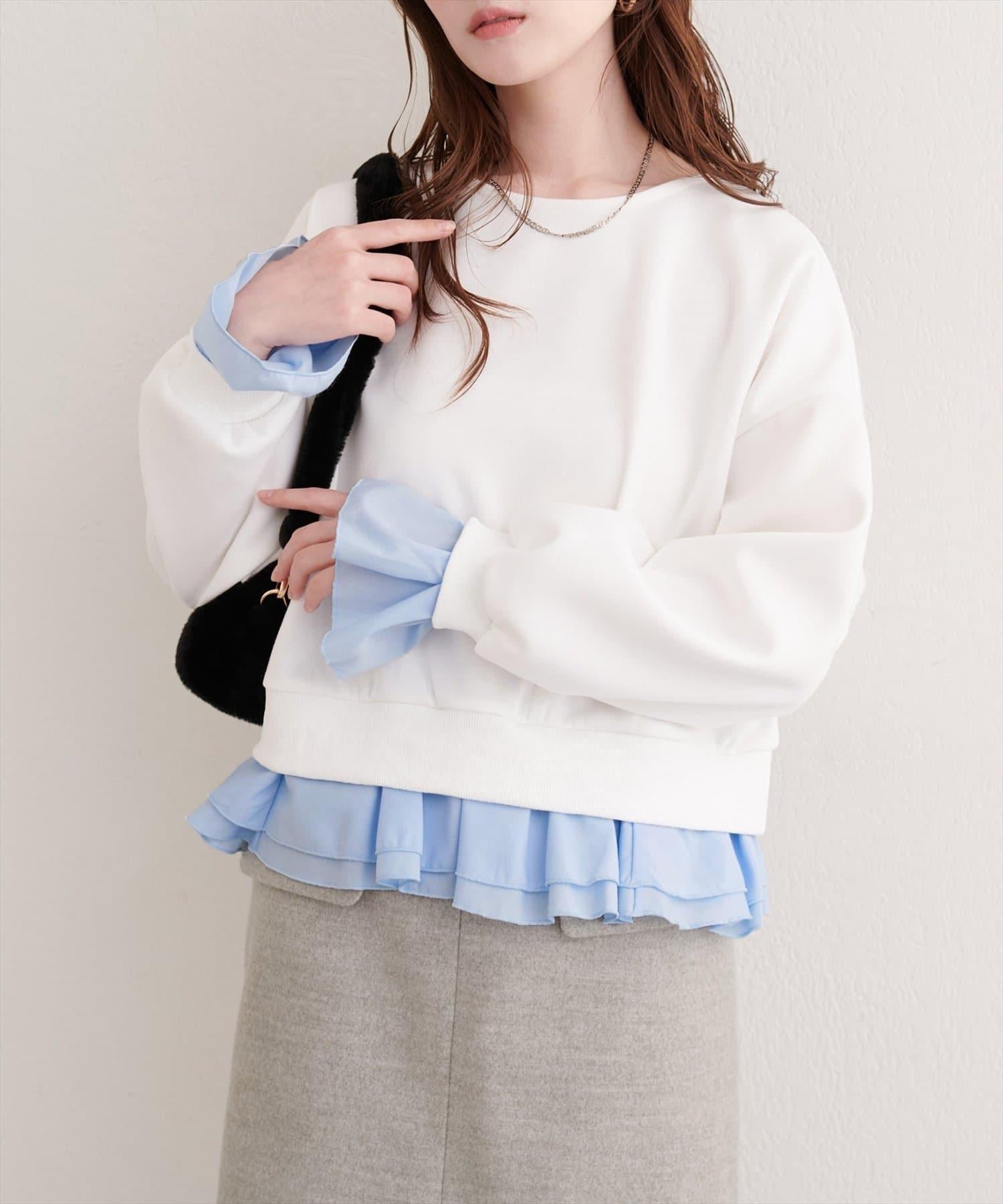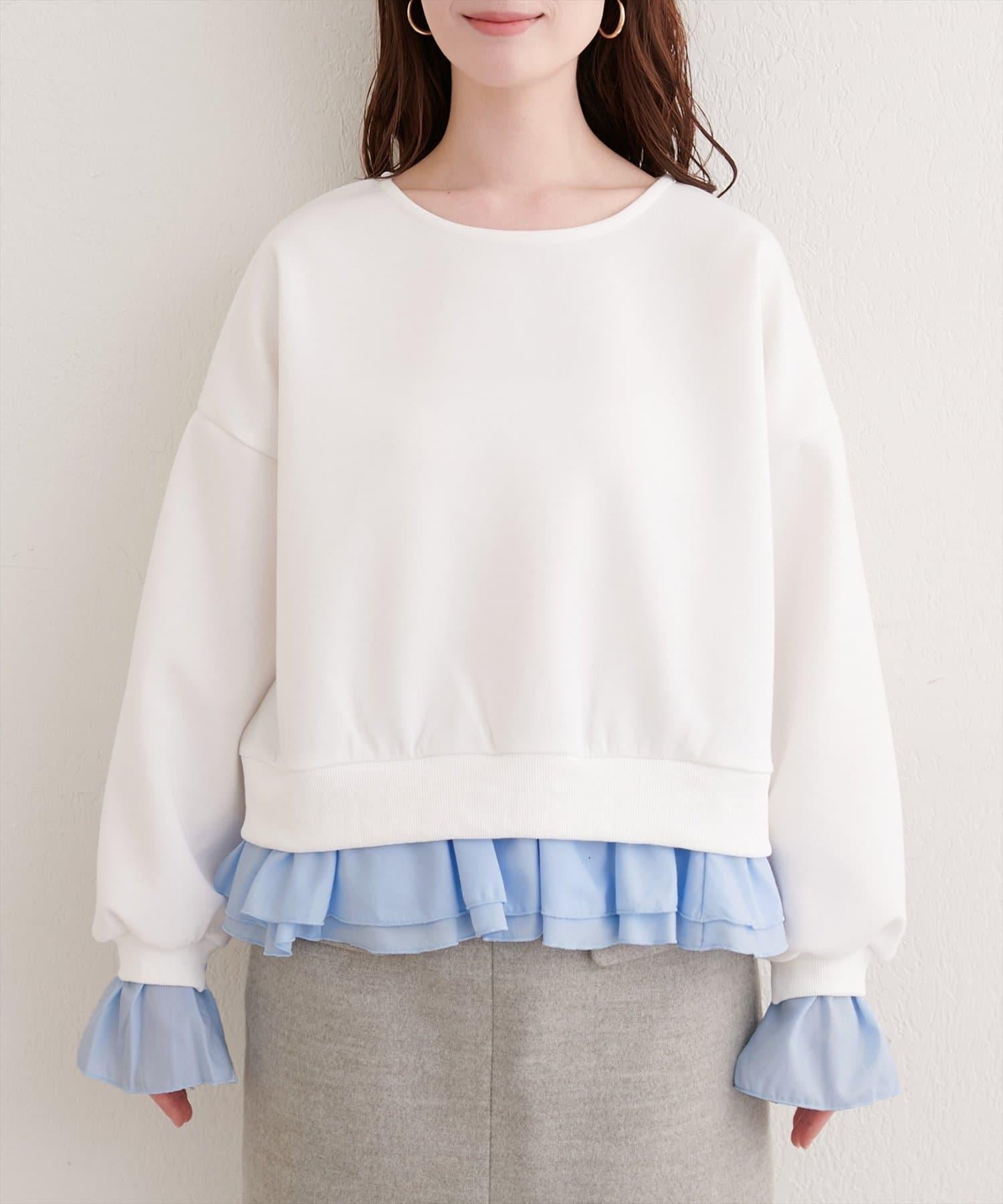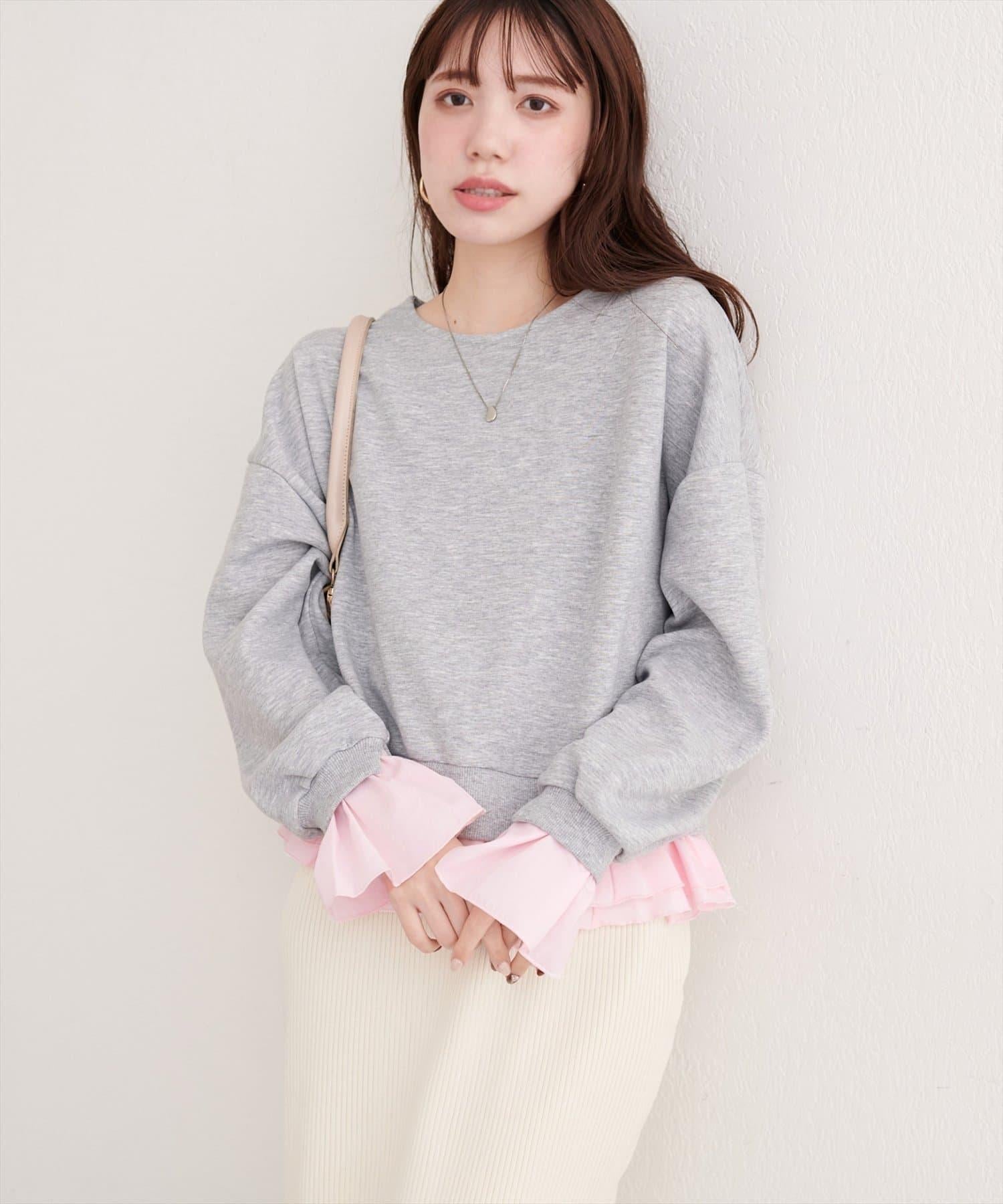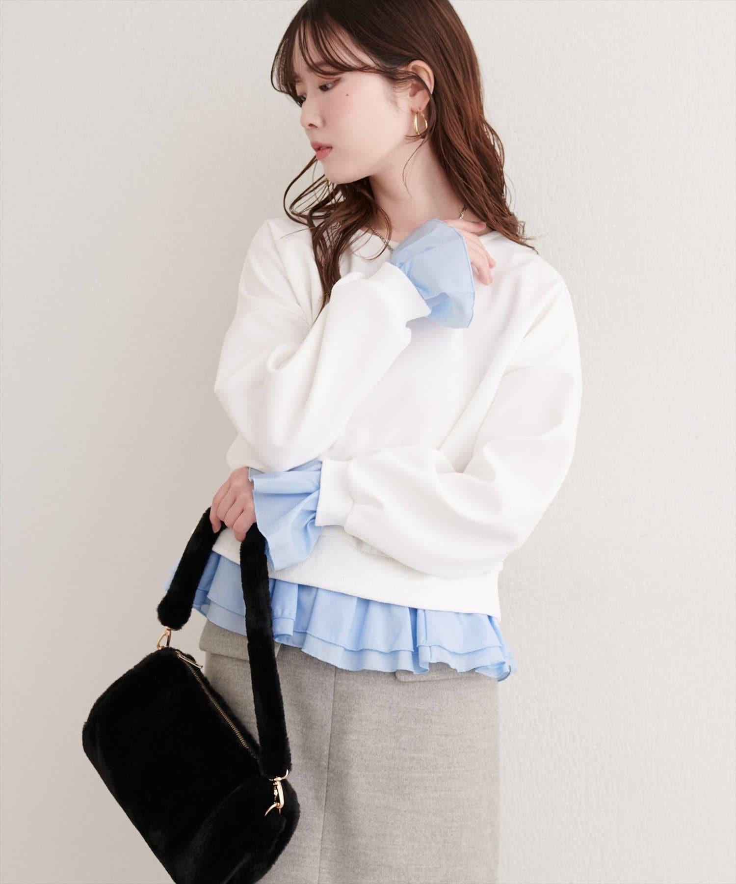 荷葉邊的甜美與套頭衫的休閒完美平衡,營造出一種不甜膩的成人可愛感。