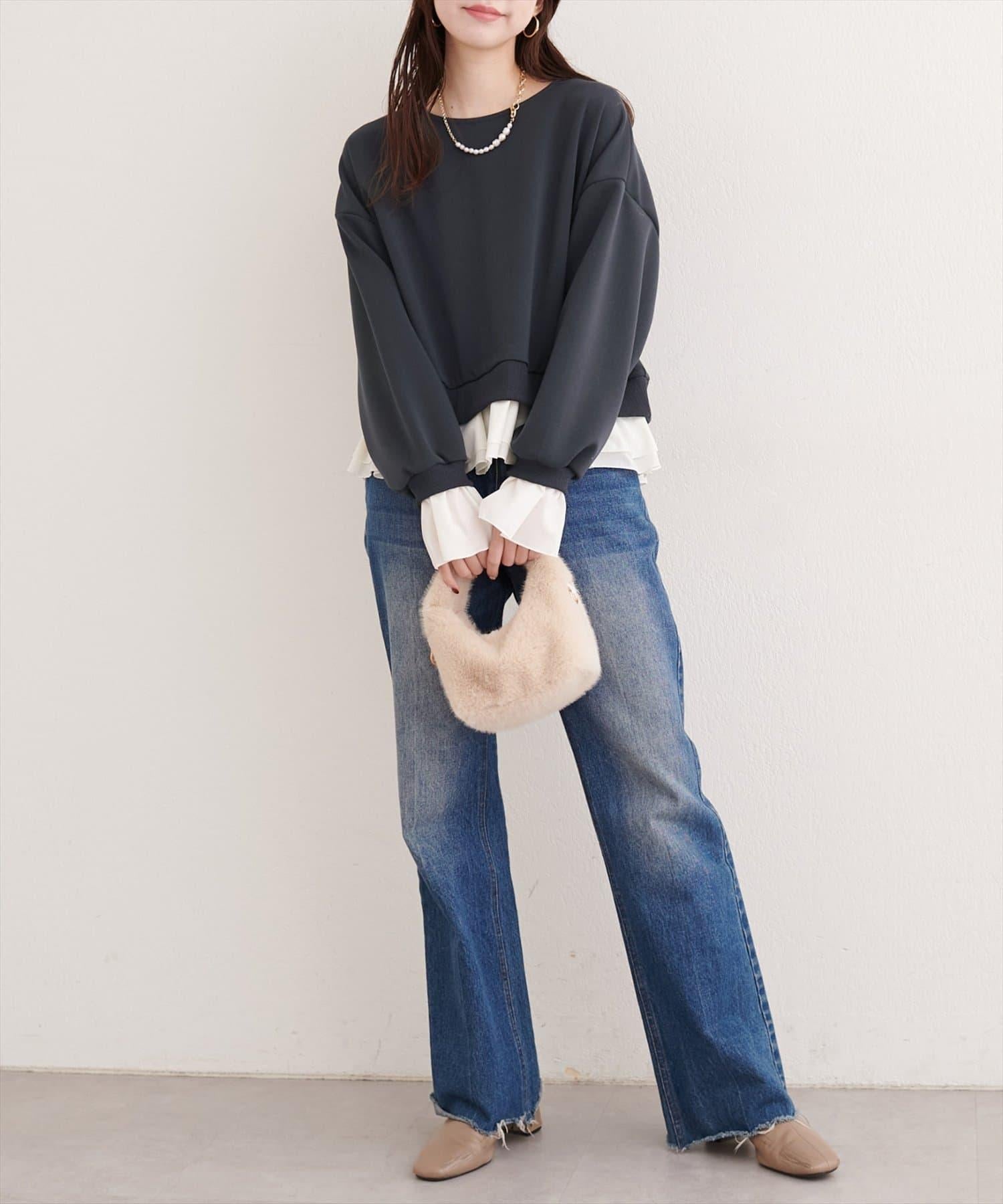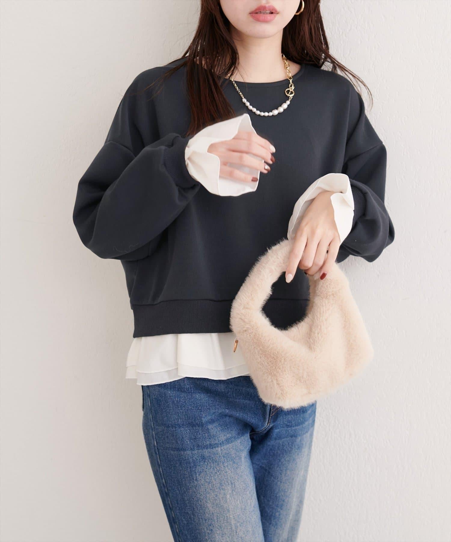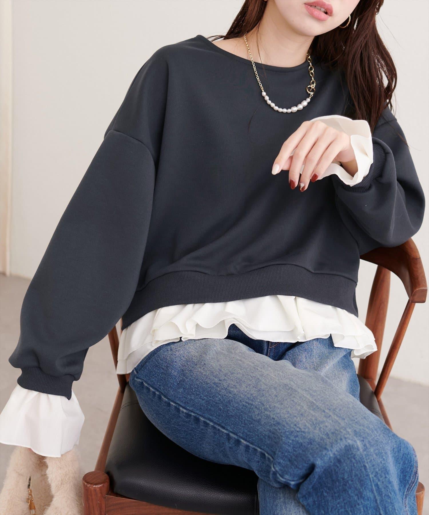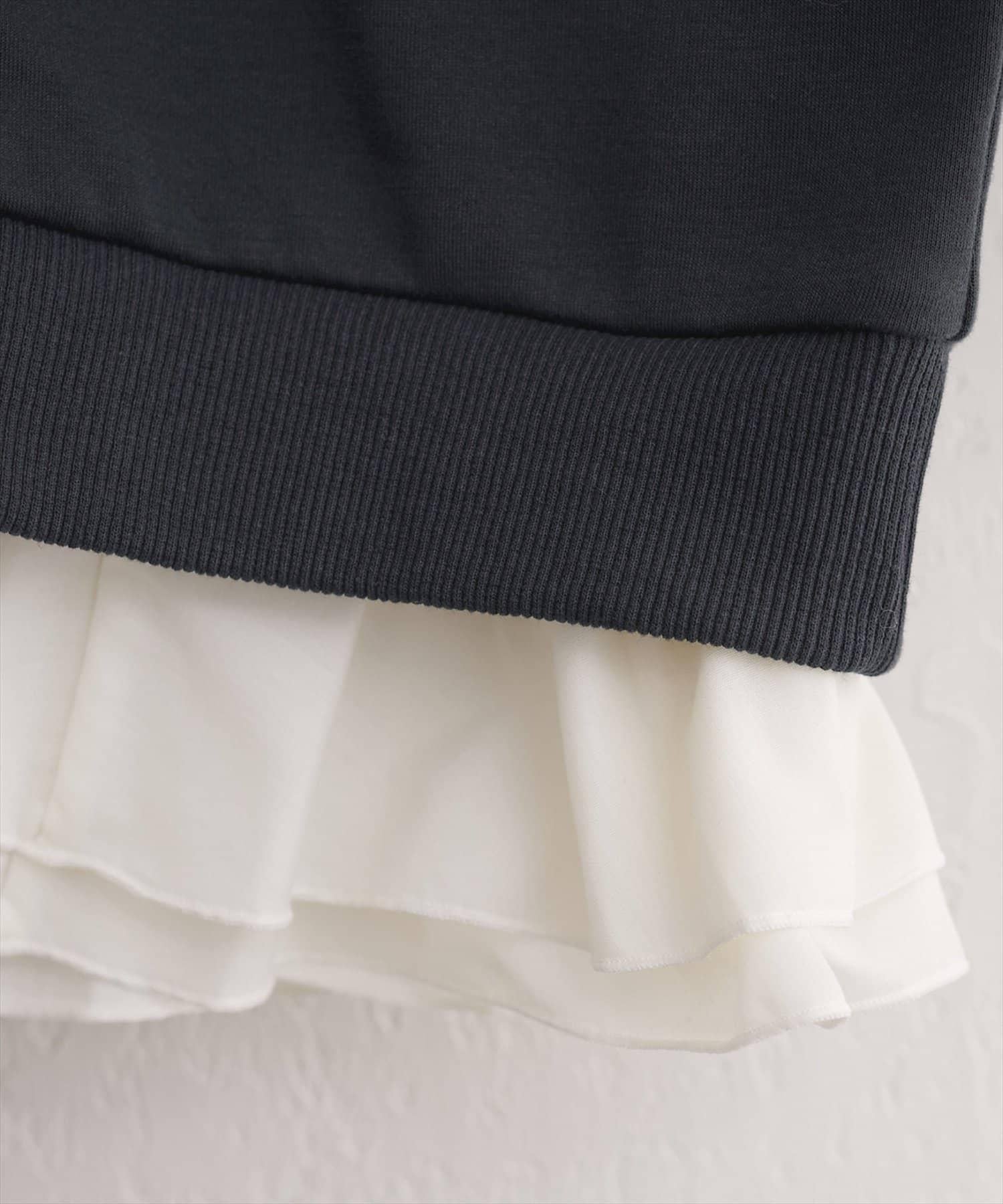 從下襬和袖口探出的荷葉邊隨著你的動作展現出優美的表情,為你的搭配增添一抹魅力。