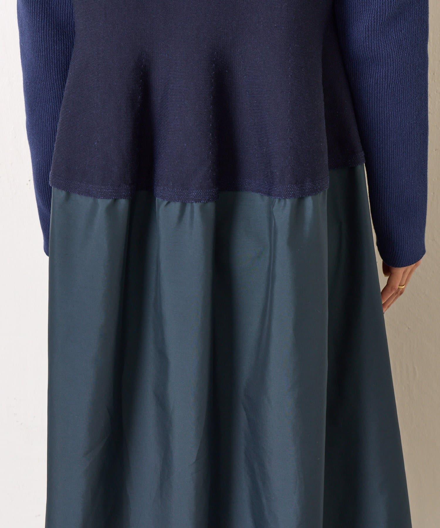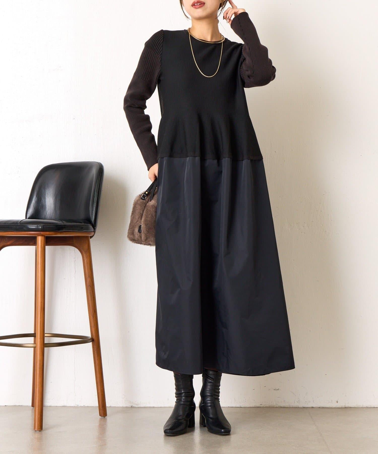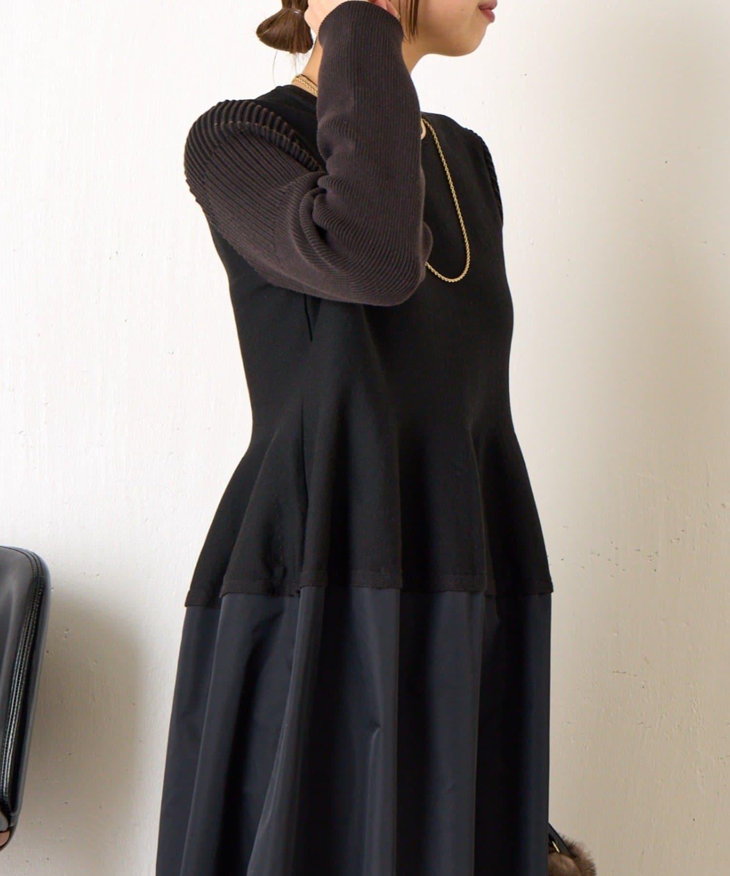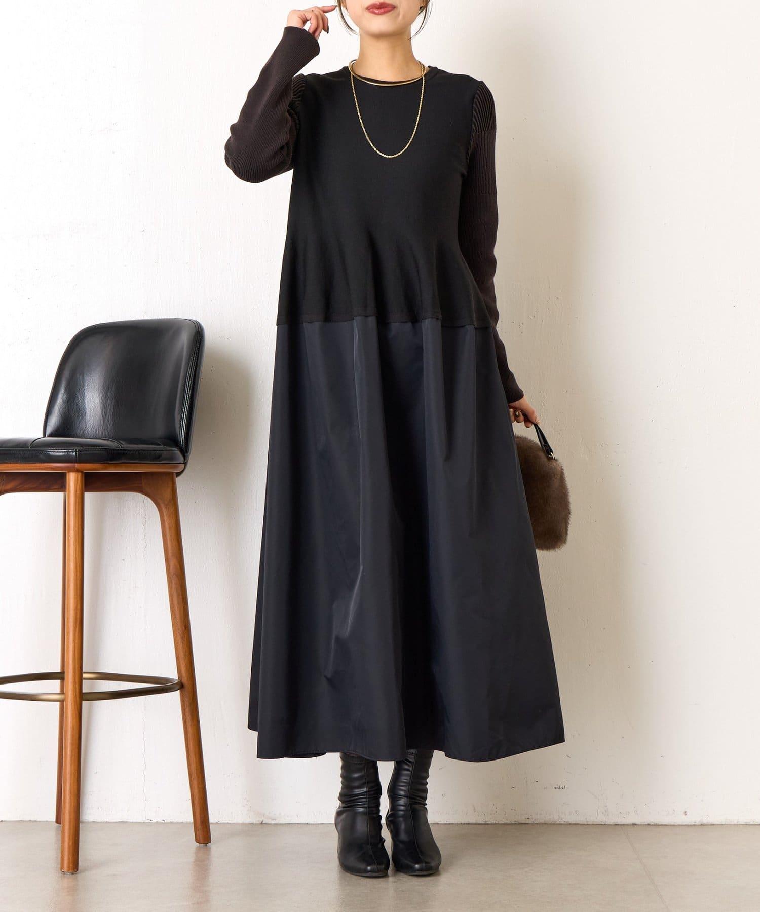 這款不同材質的對接連衣裙採用波點鏤空設計,勾勒出女性柔美的輪廓。