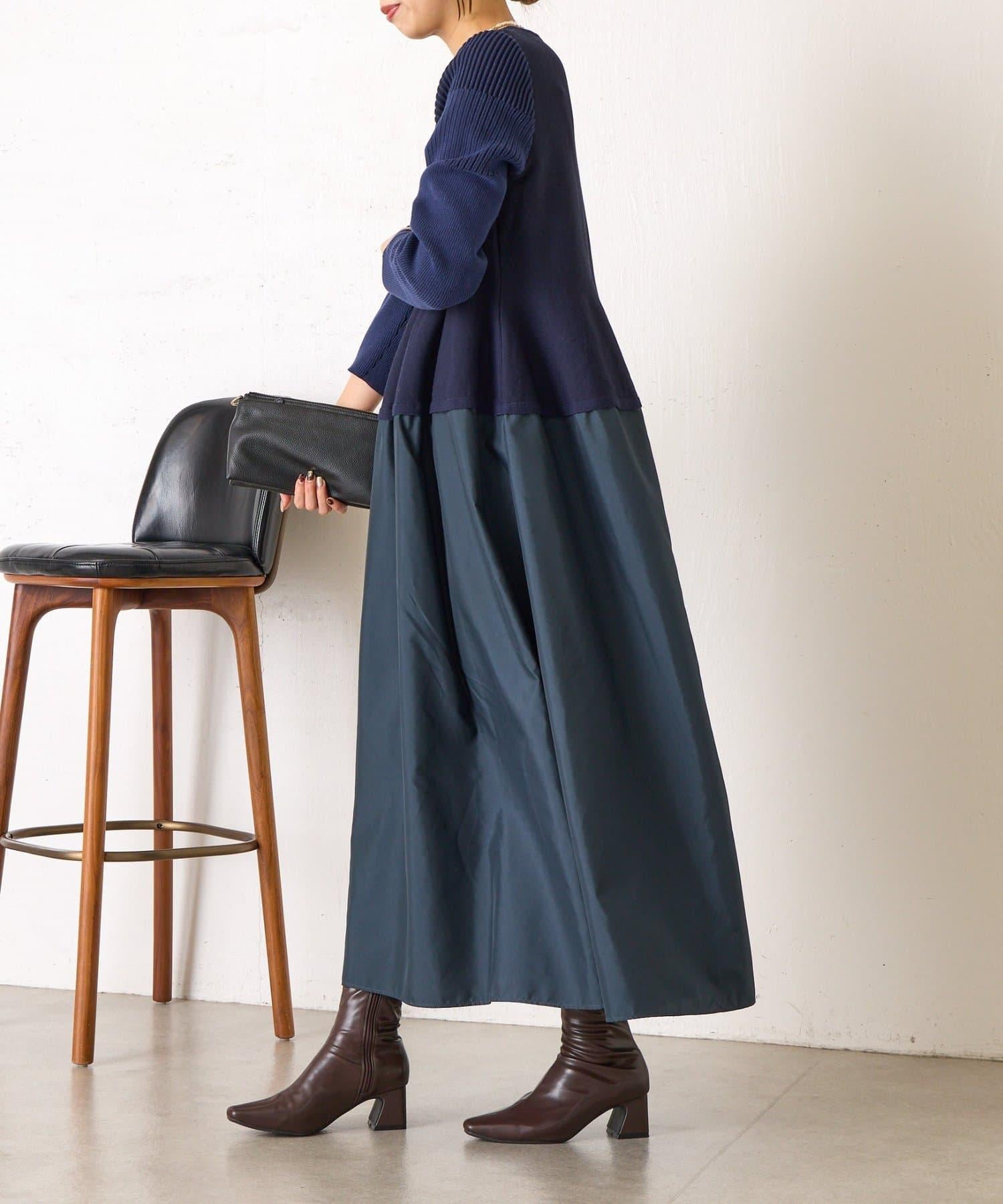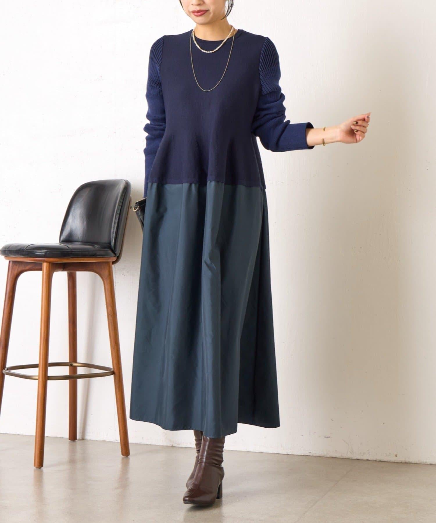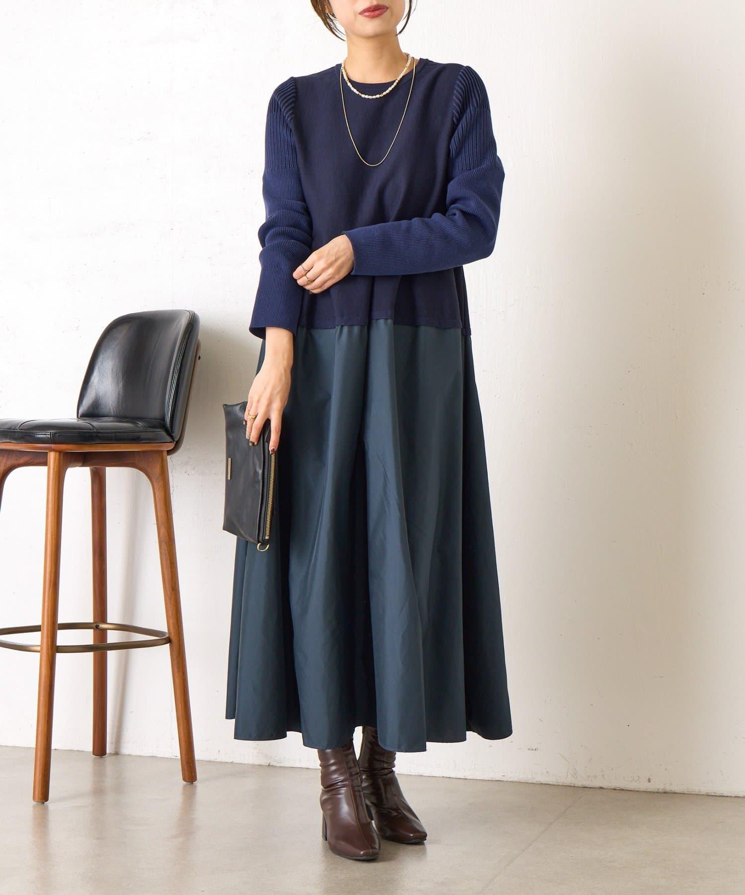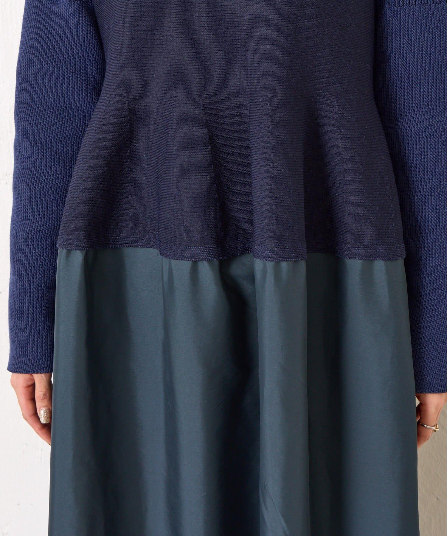 這款不同材質的對接連衣裙採用波點鏤空設計,勾勒出女性柔美的輪廓。