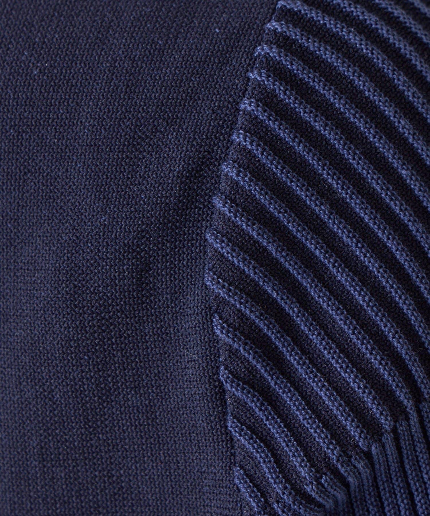 袖子採用細羅紋設計,肩部則採用較粗的羅紋設計,顯得時尚而勻稱。