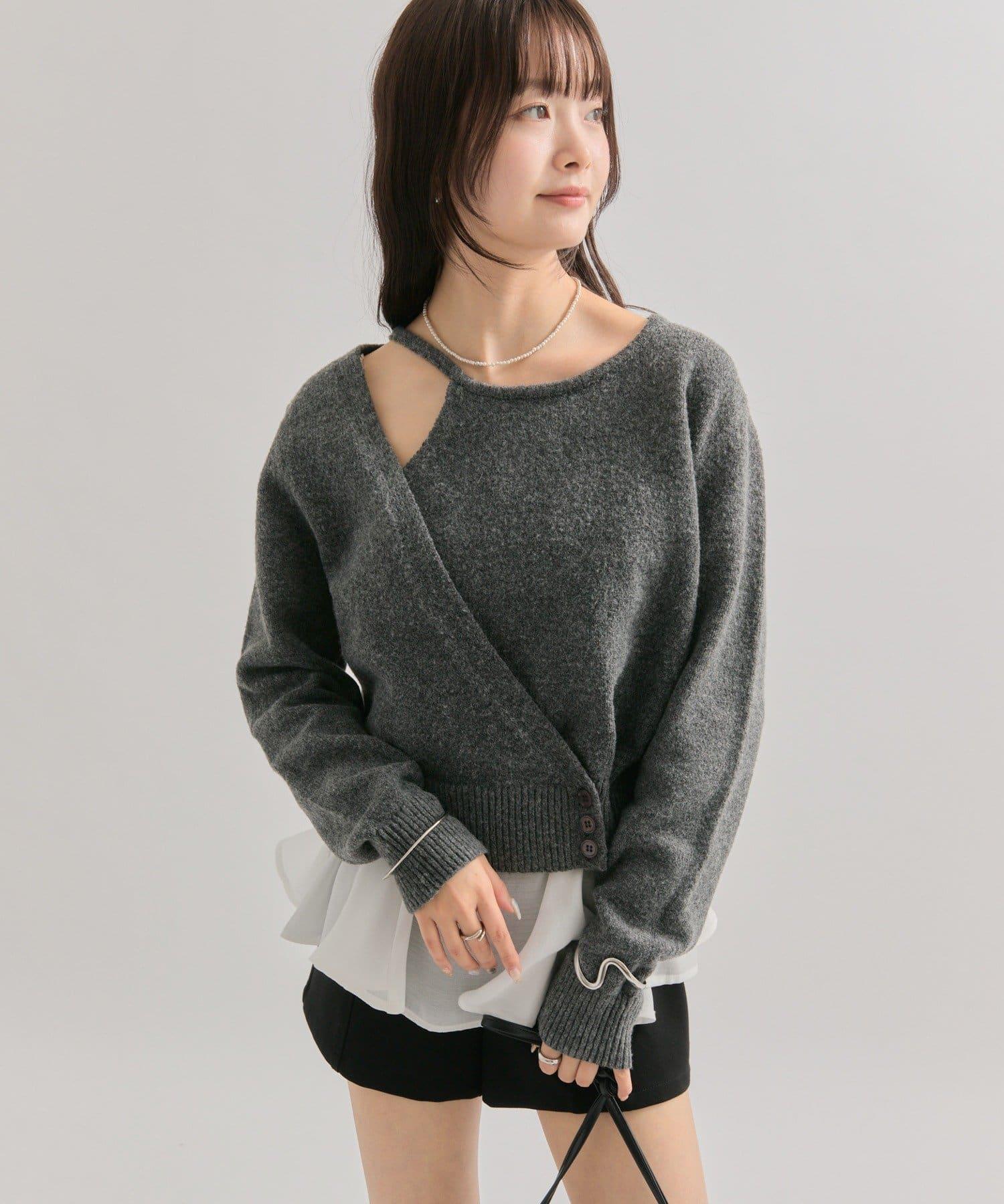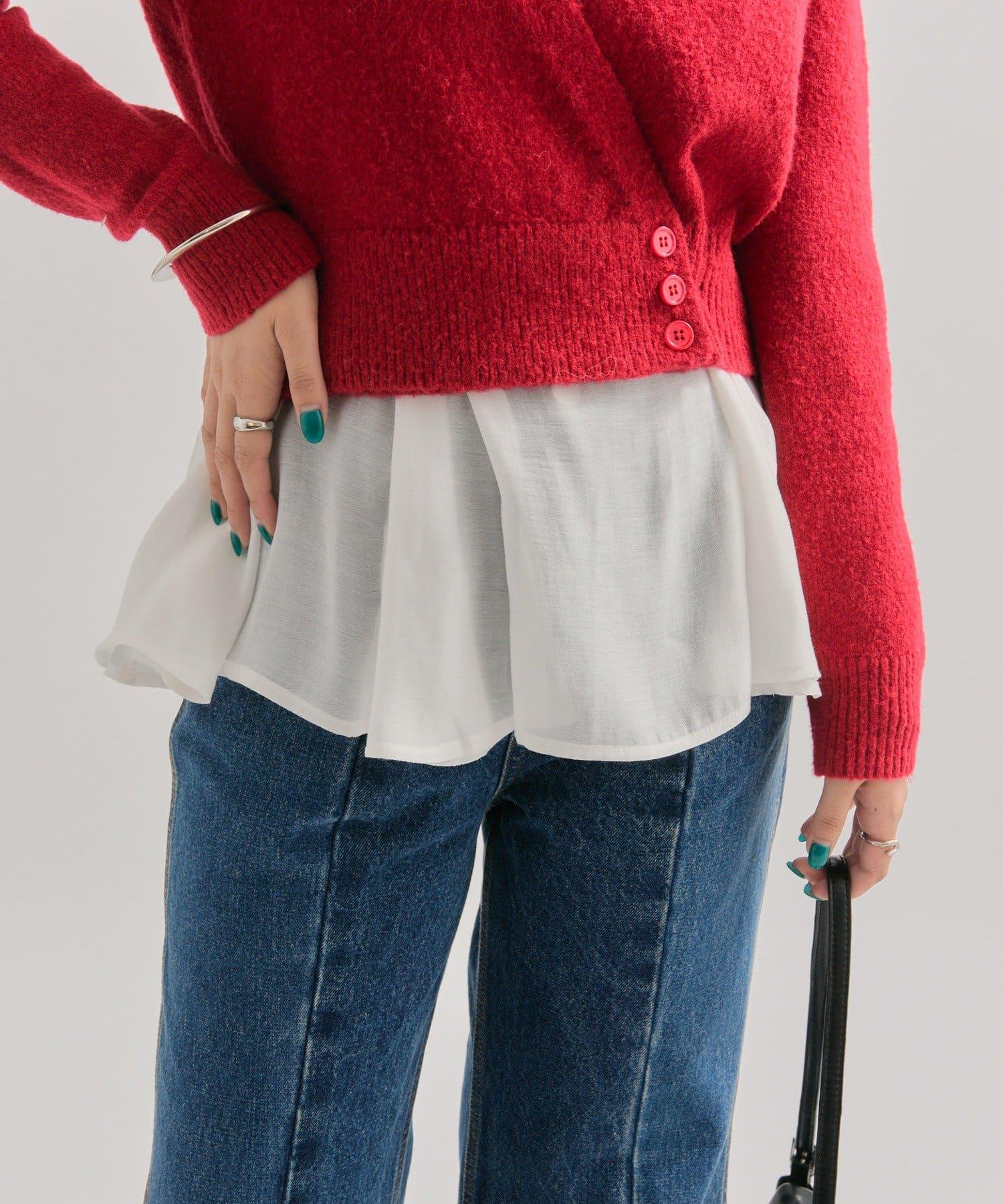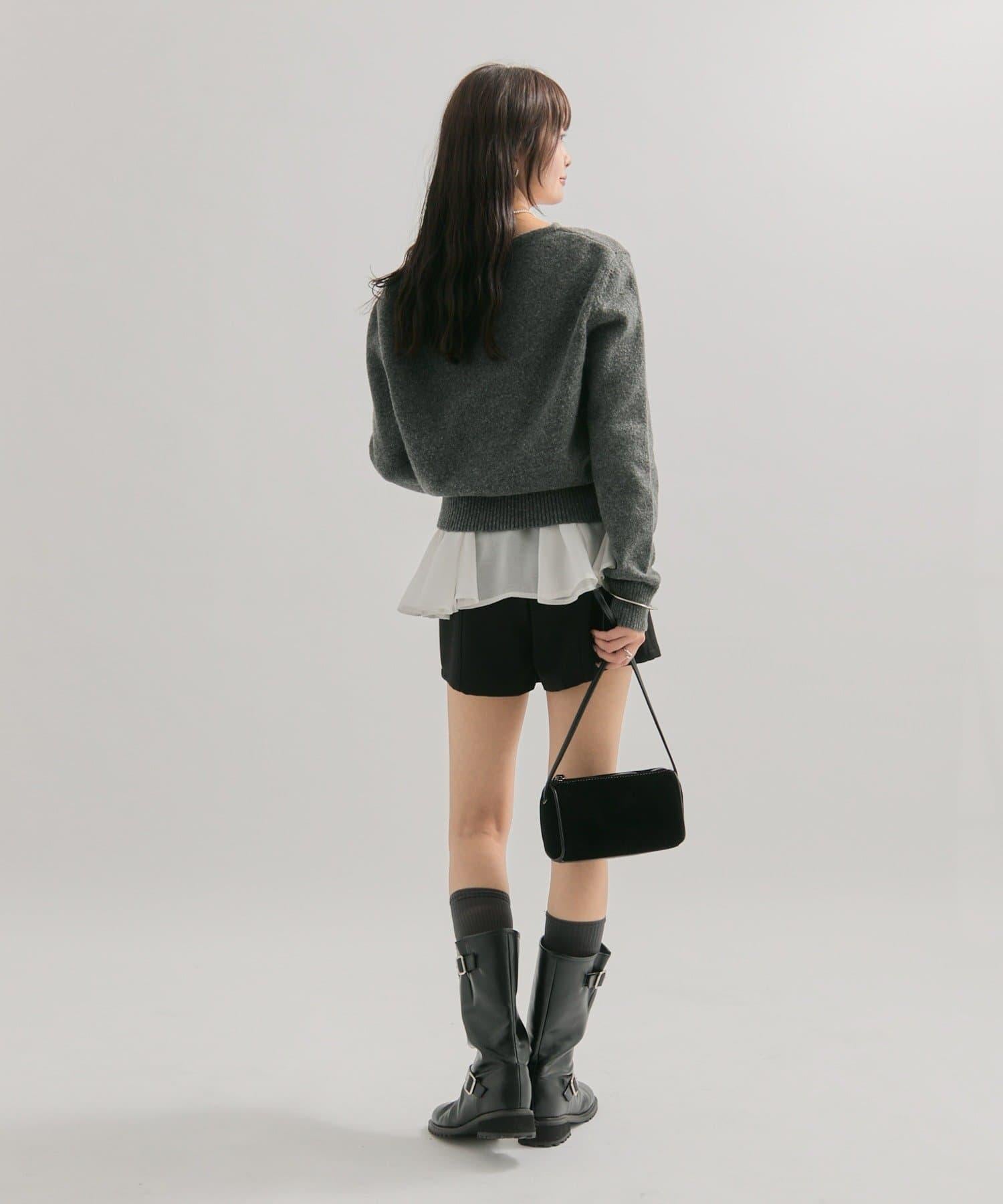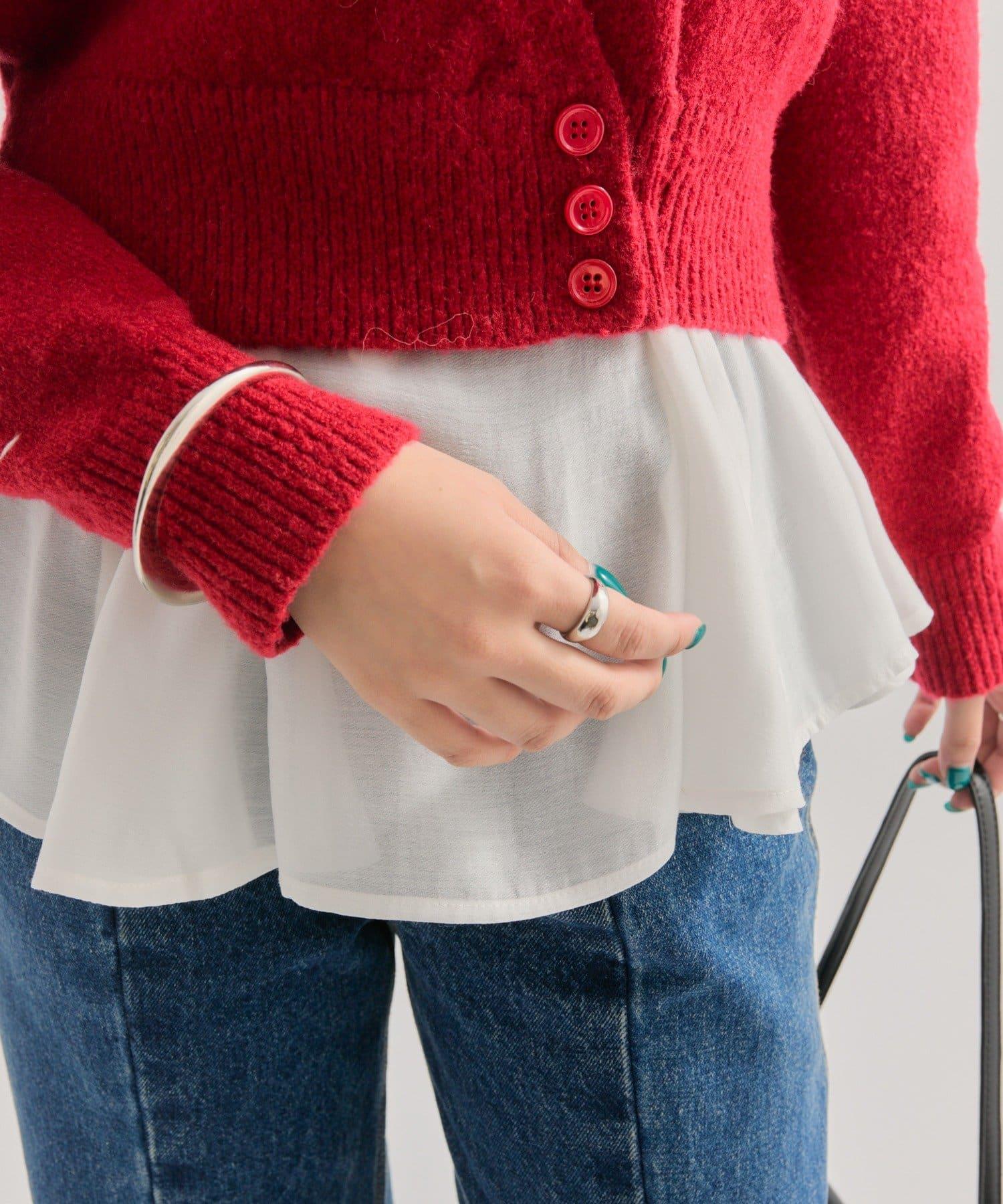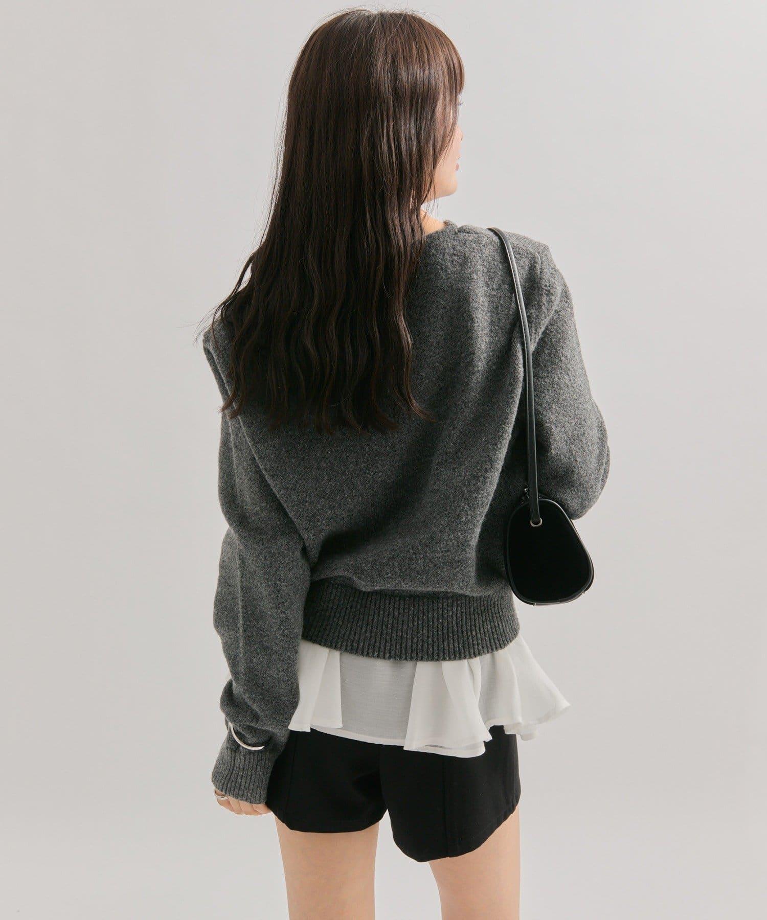 下襬採用不同材質的蓬蓬裙設計,使上衣看起來更有層次感,只需一件單品即可完成時尚裝扮。