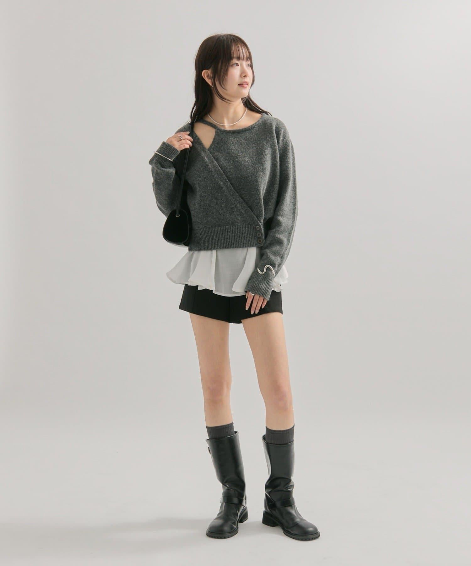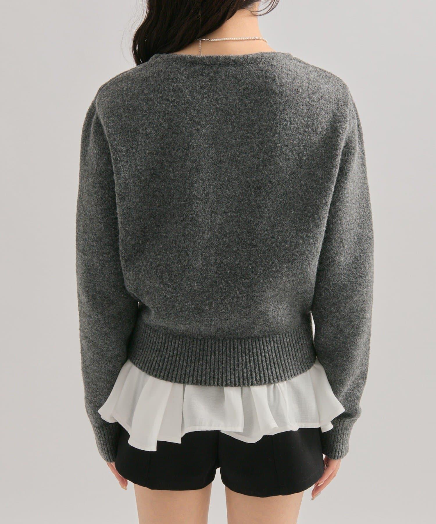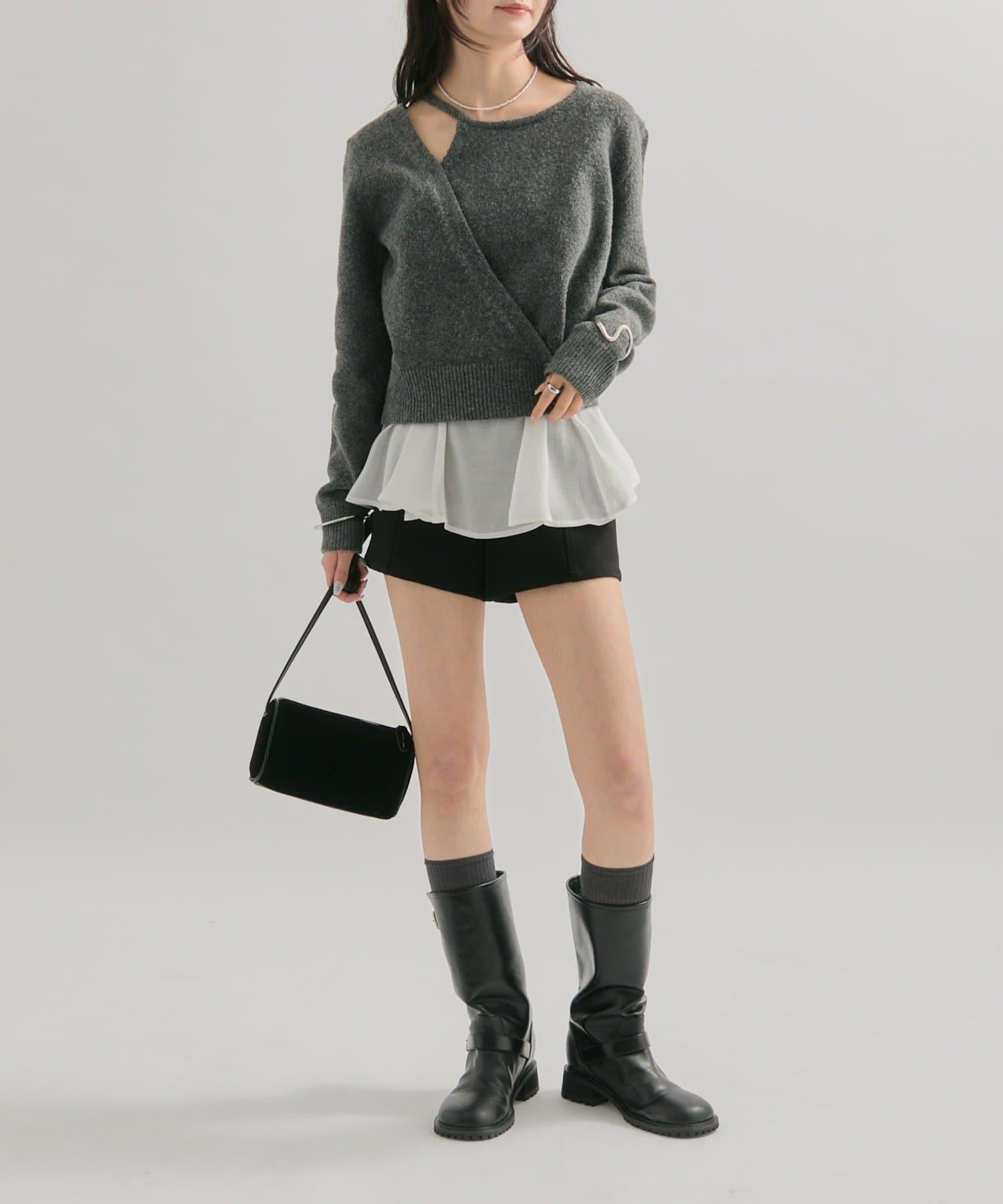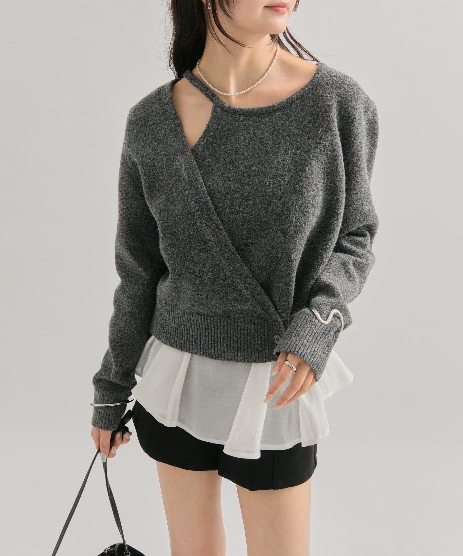 下襬採用不同材質的蓬蓬裙設計,使上衣看起來更有層次感,只需一件單品即可完成時尚裝扮。