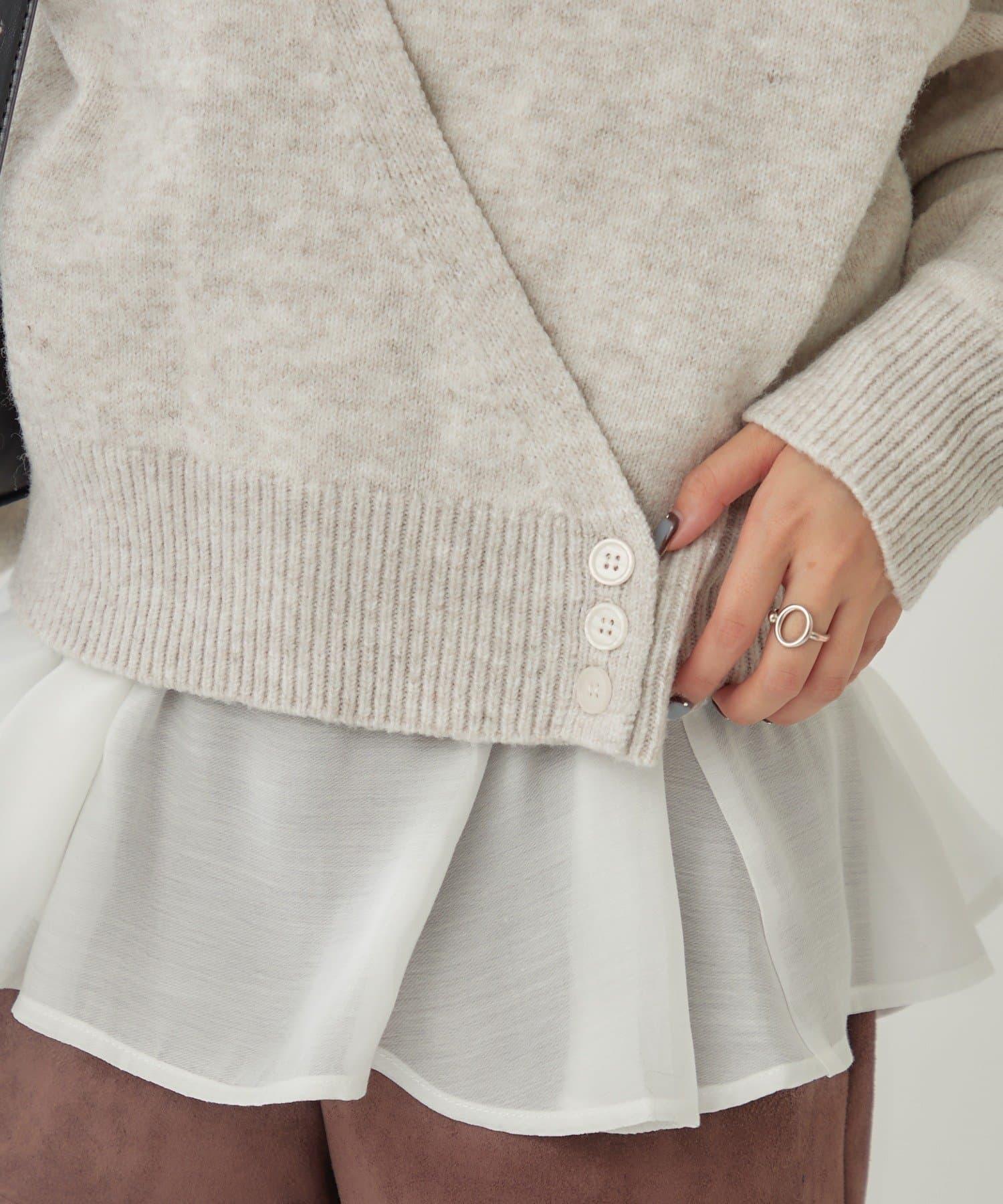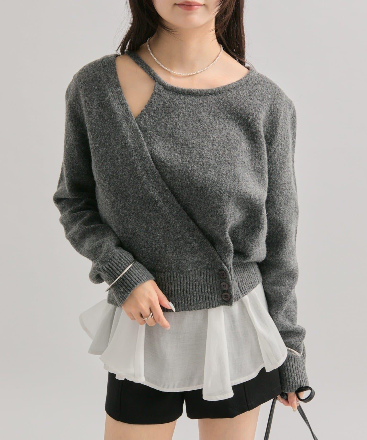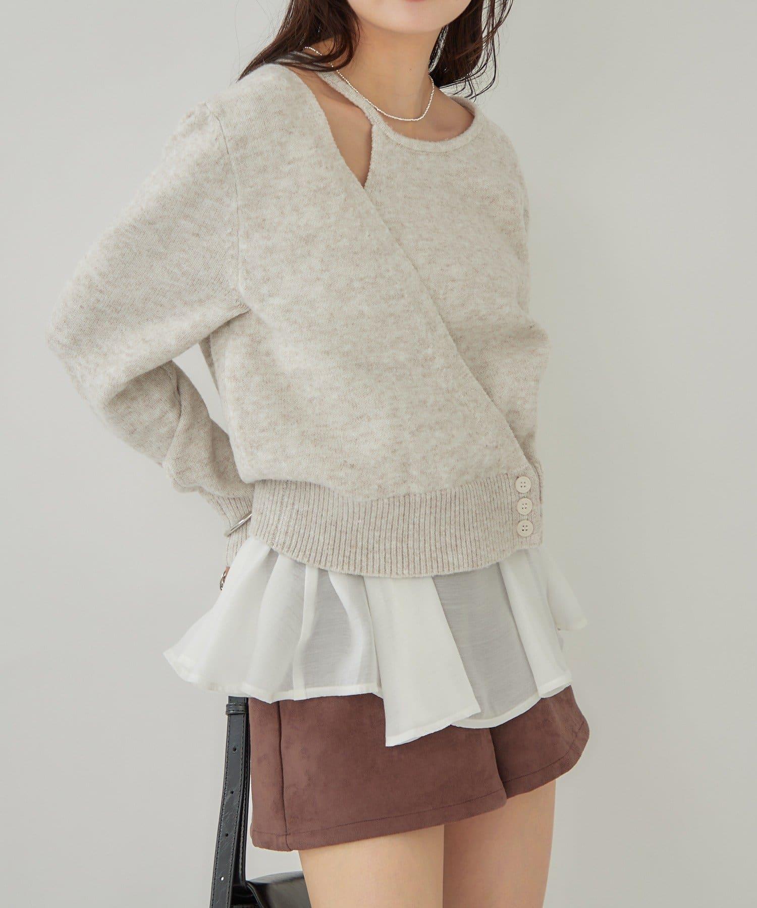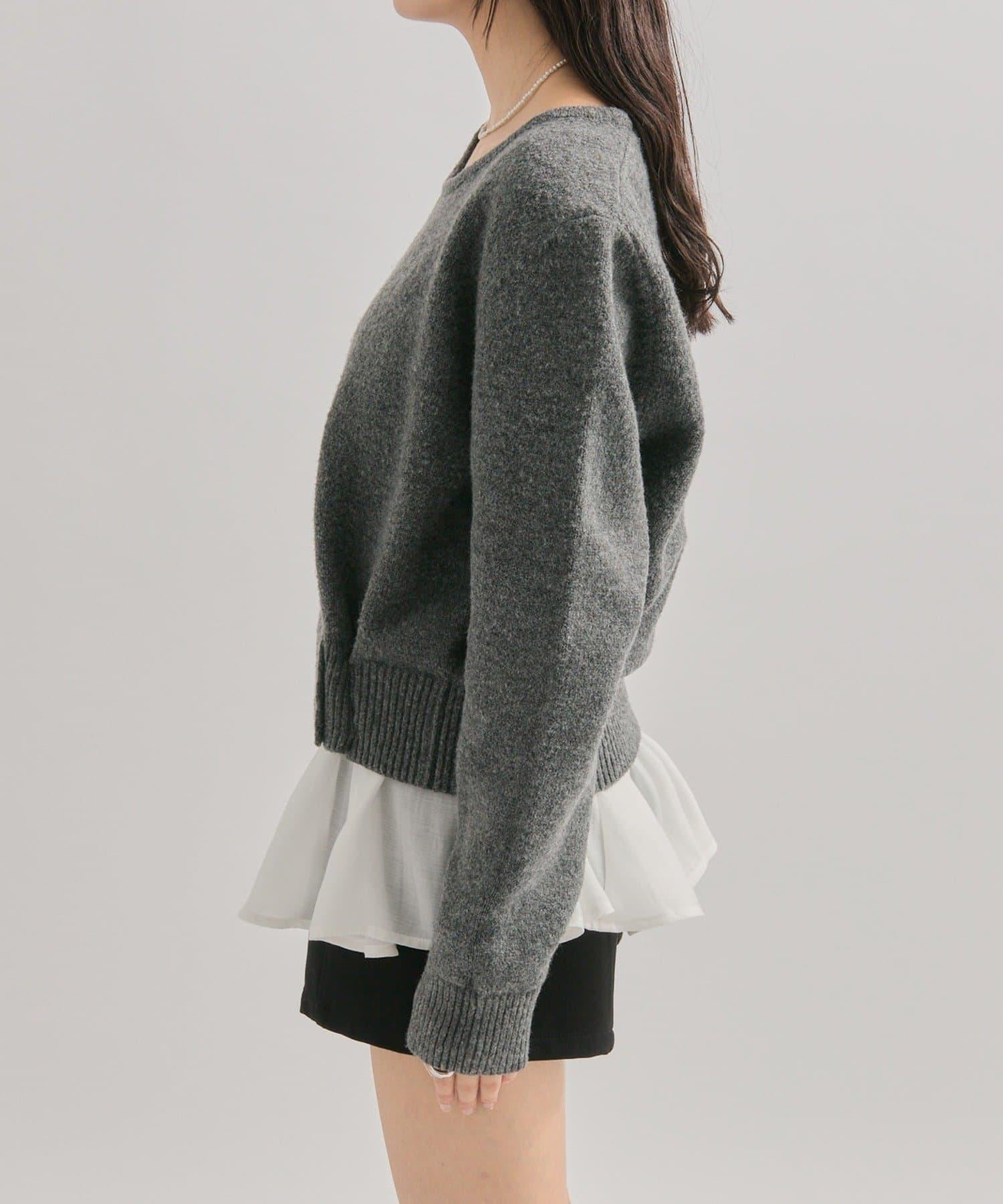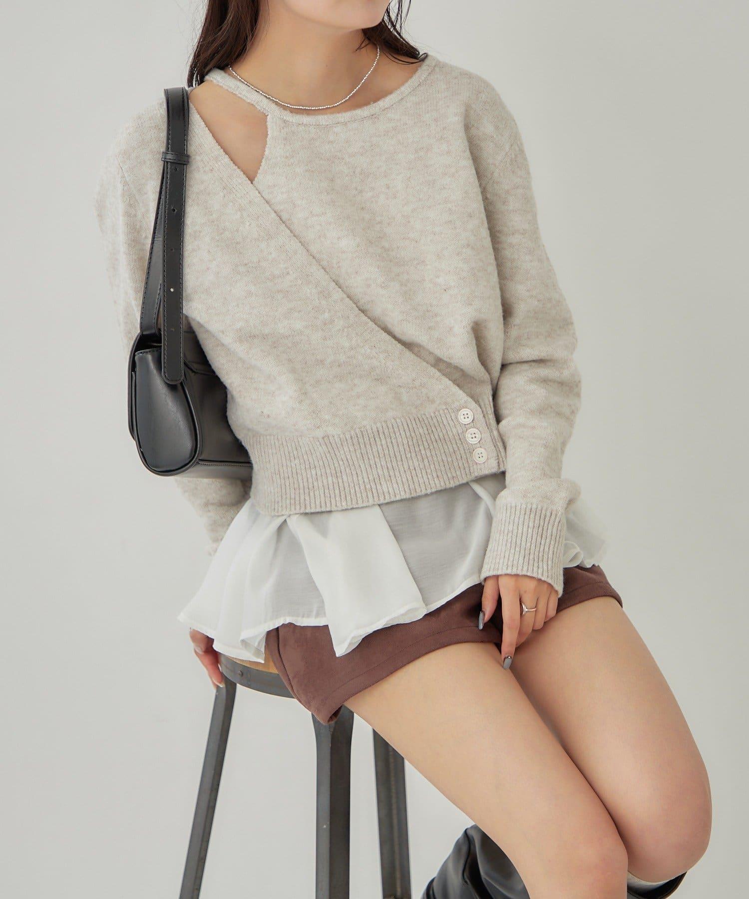 下襬採用不同材質的蓬蓬裙設計,使上衣看起來更有層次感,只需一件單品即可完成時尚裝扮。