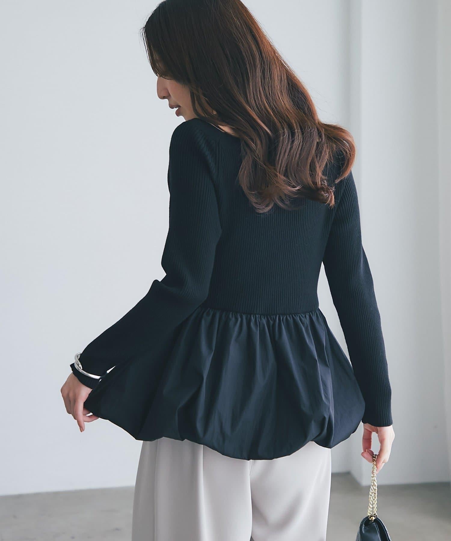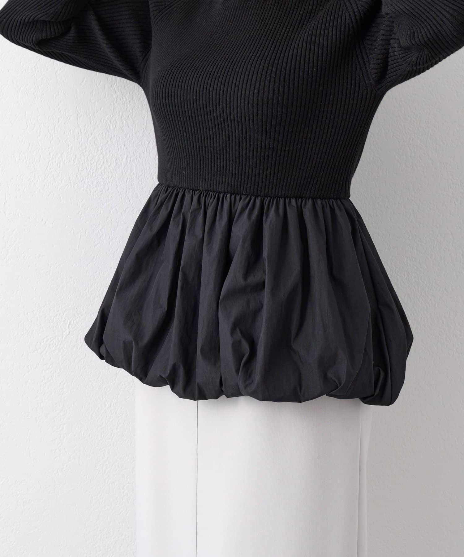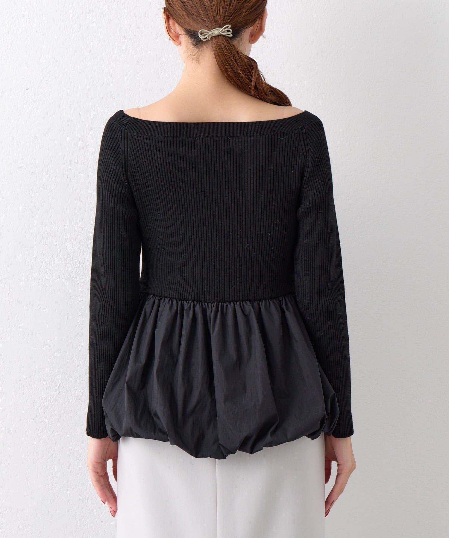 針織套頭衫帶有華麗的編織對接蓬蓬邊。