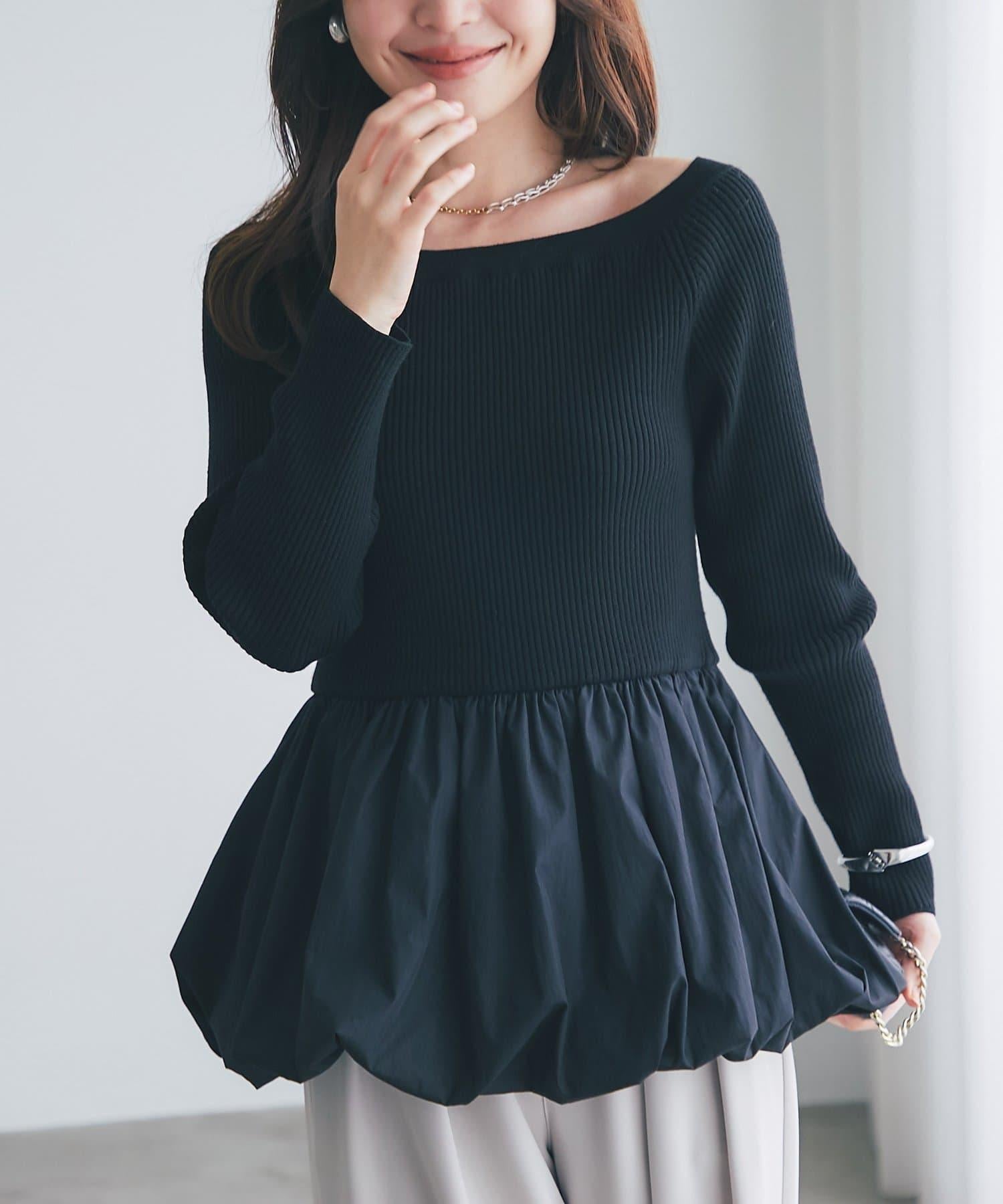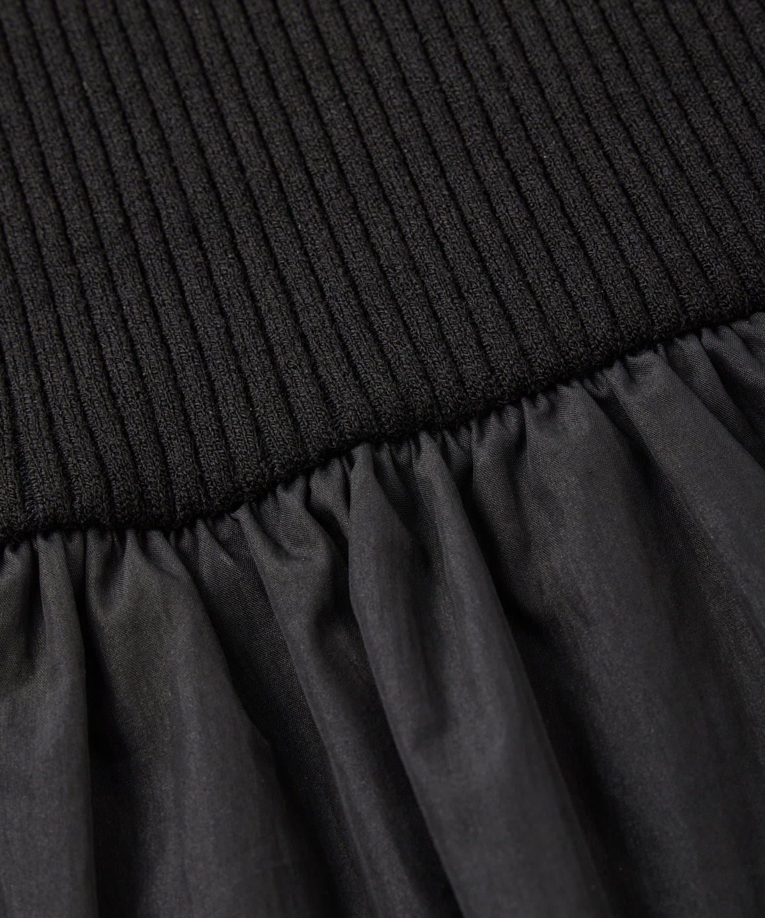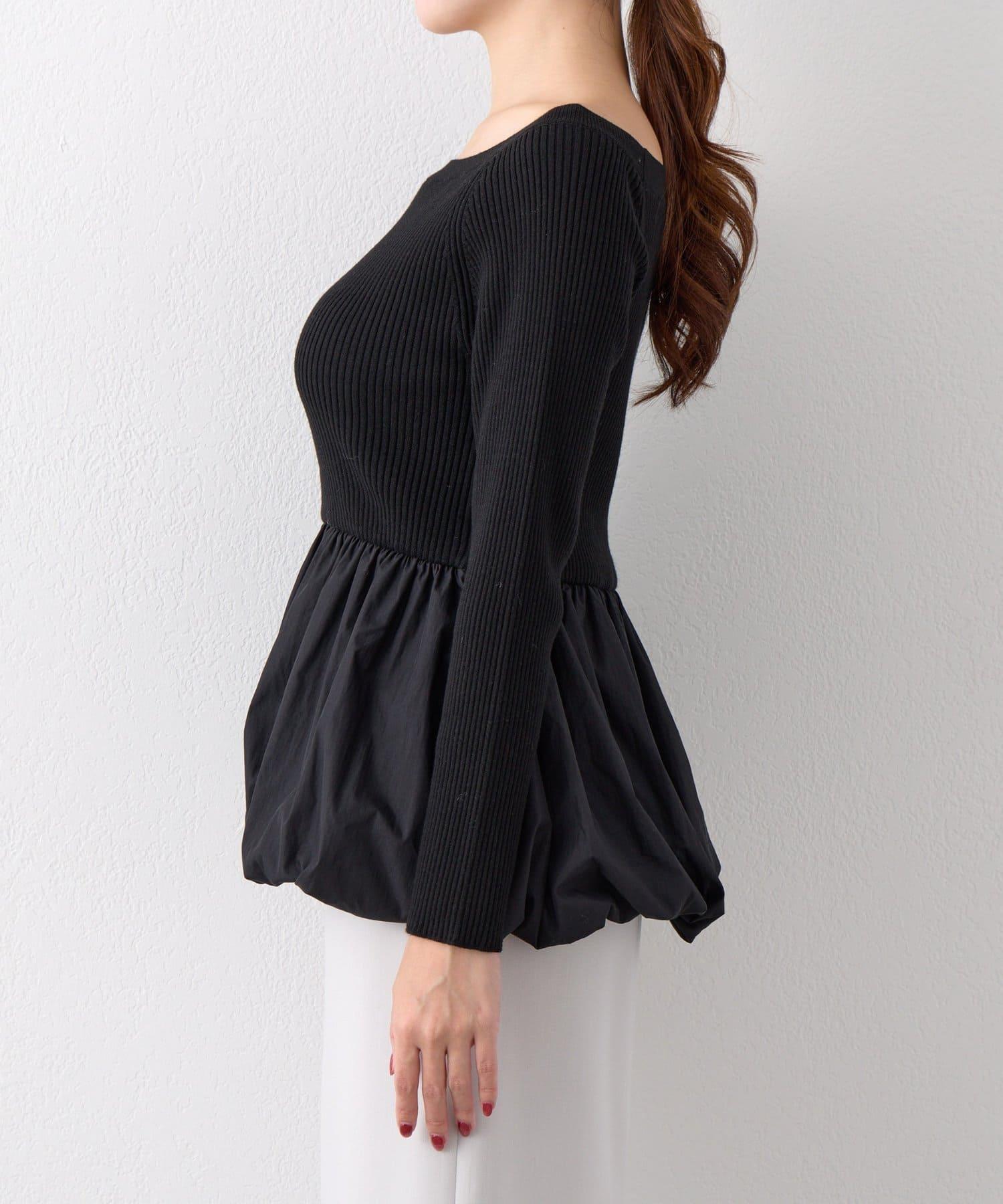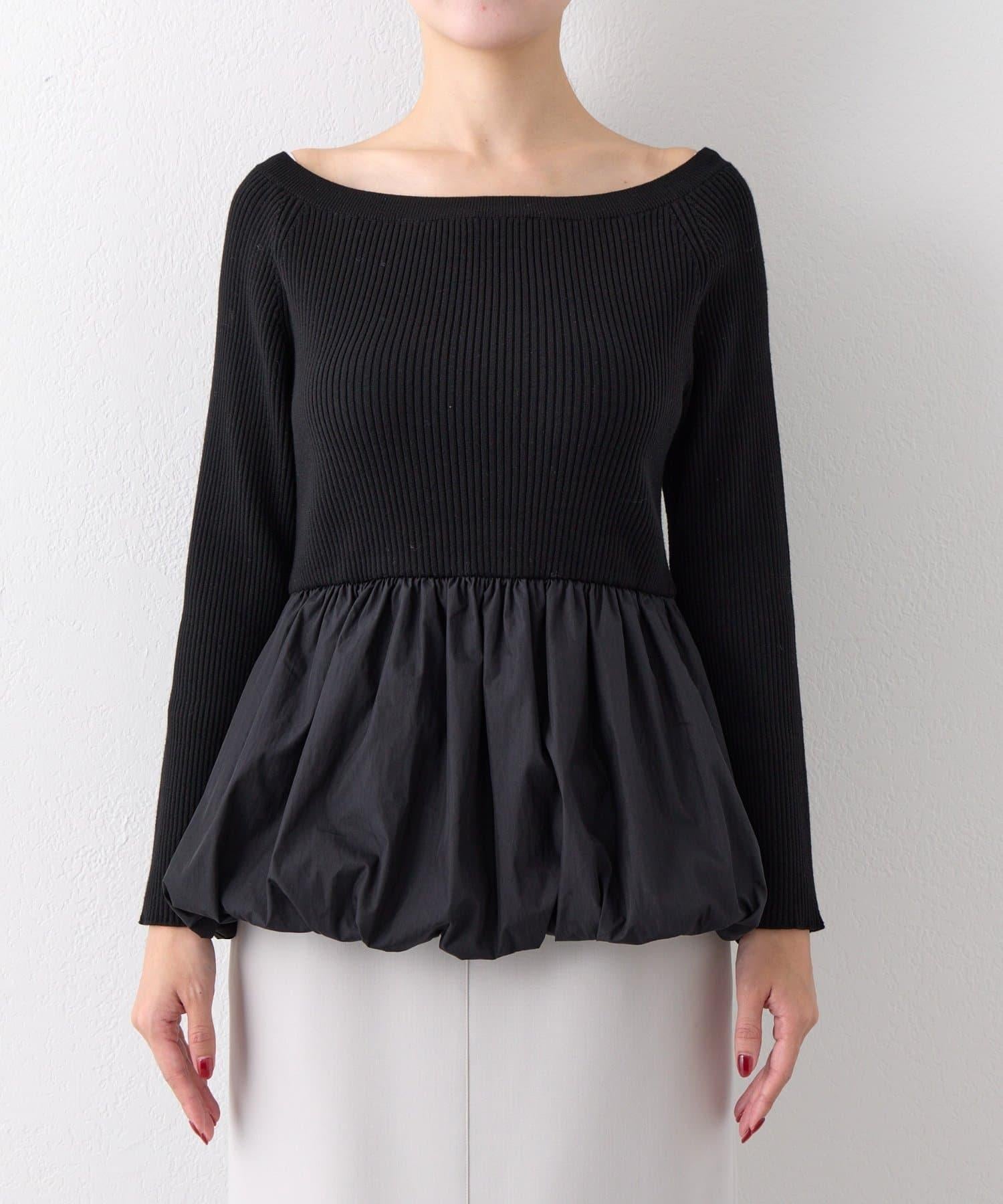 針織套頭衫帶有華麗的編織對接蓬蓬邊。