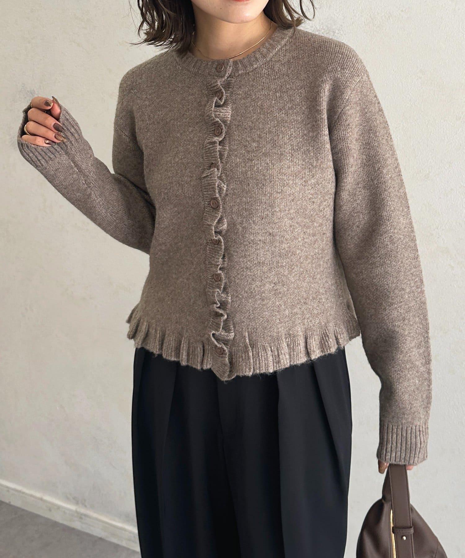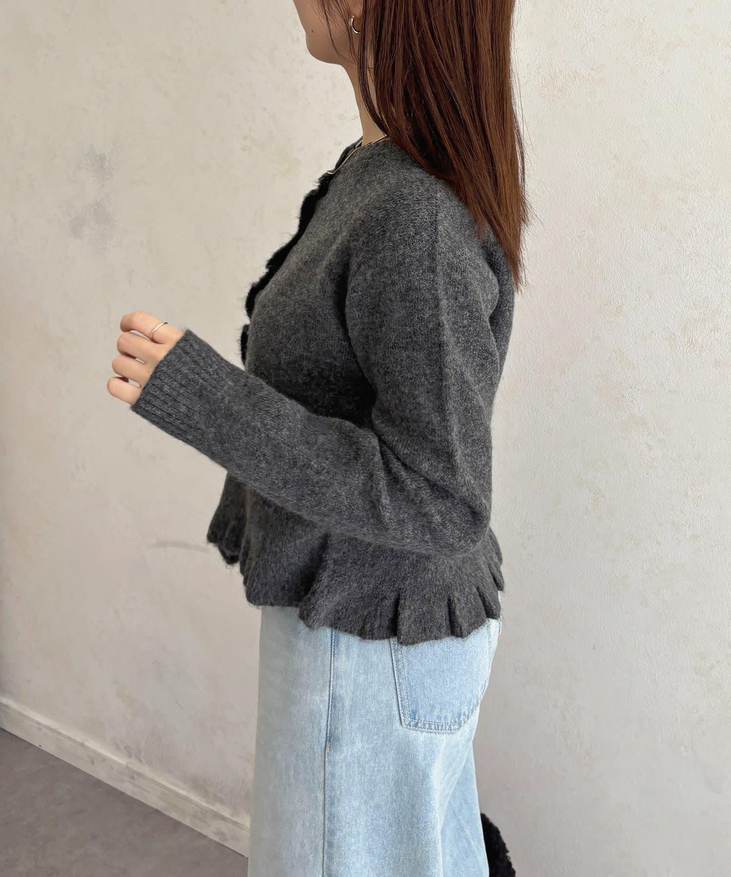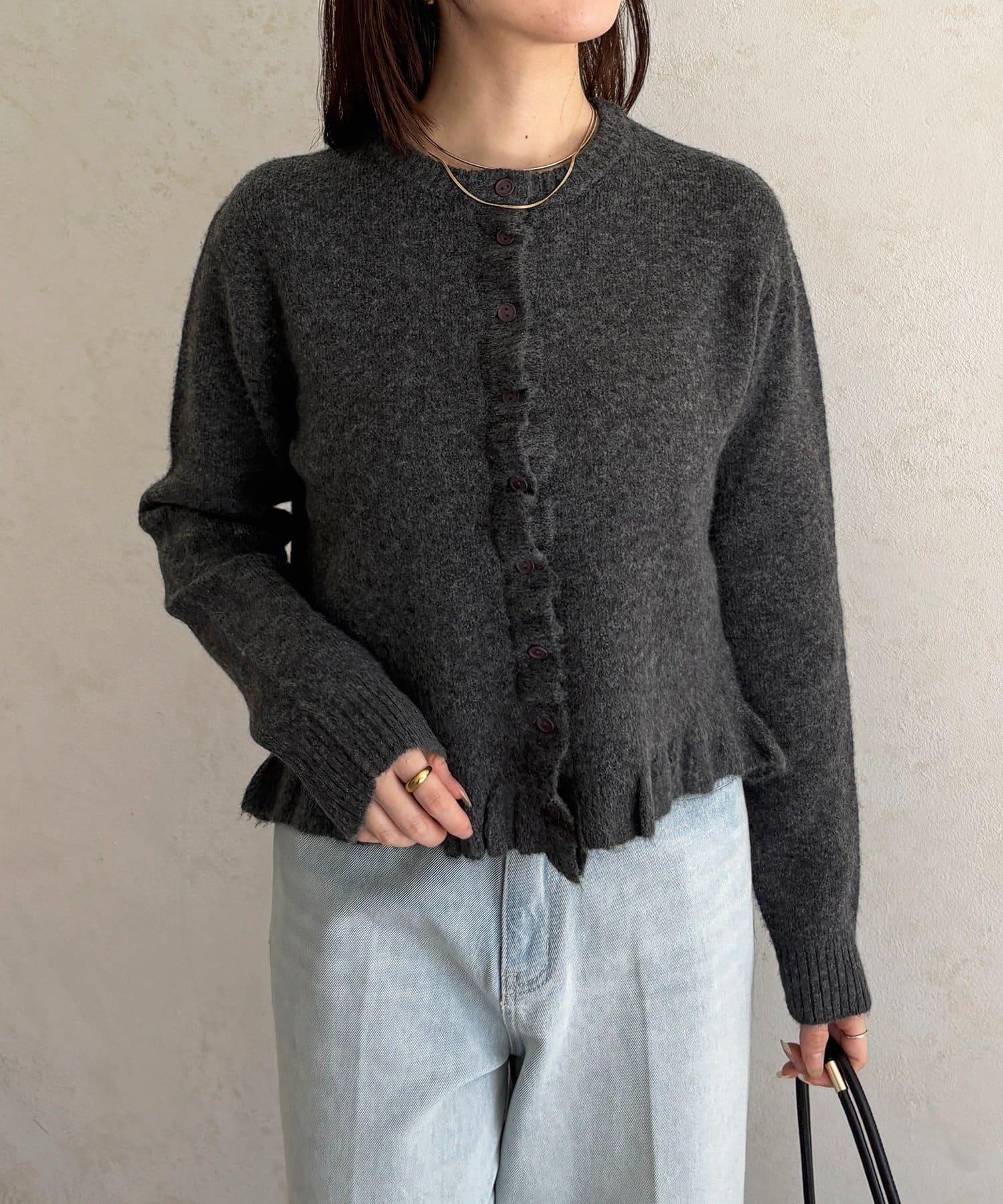 #Cardigan #Melange #Knitted cardigan #Ruffle