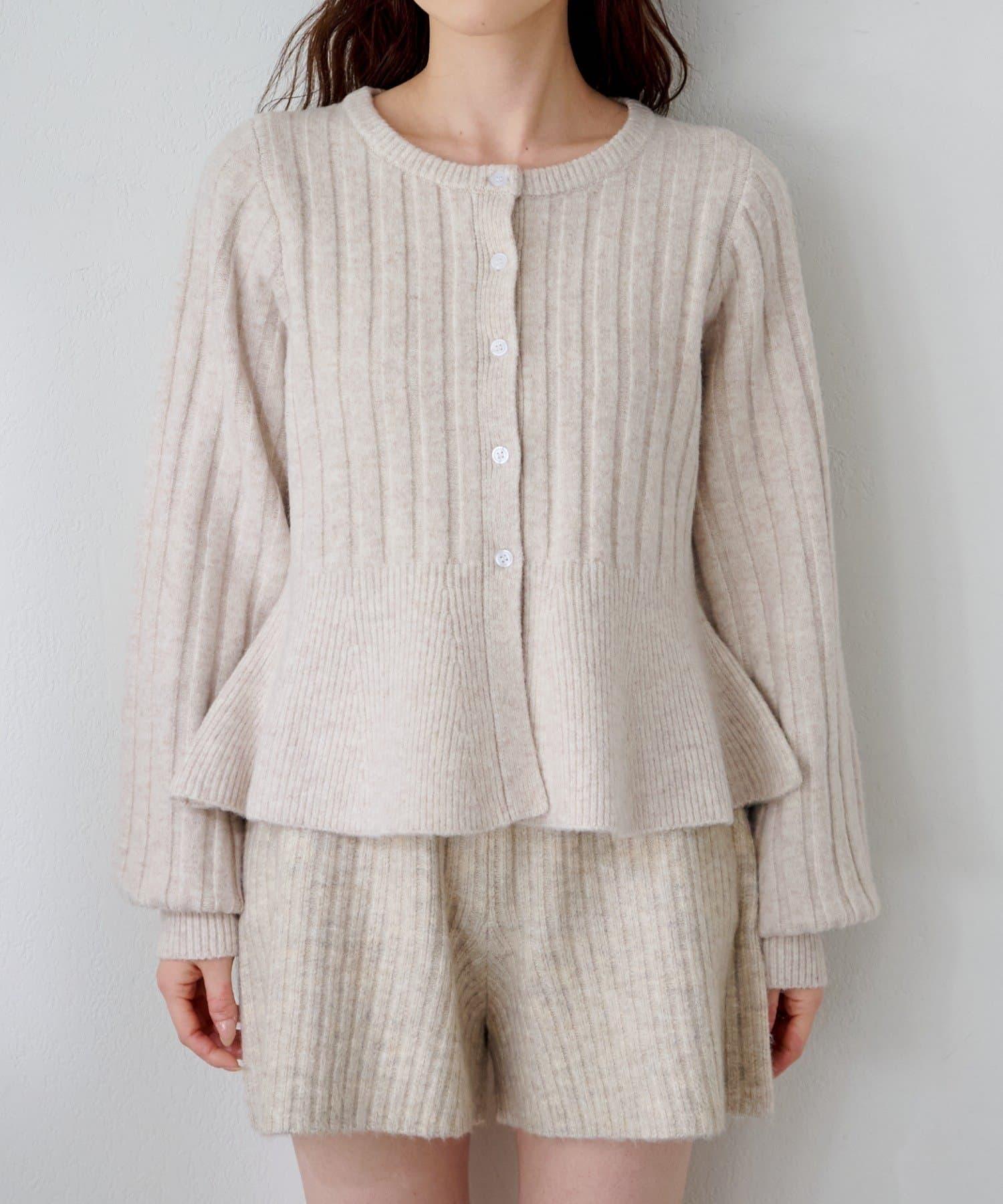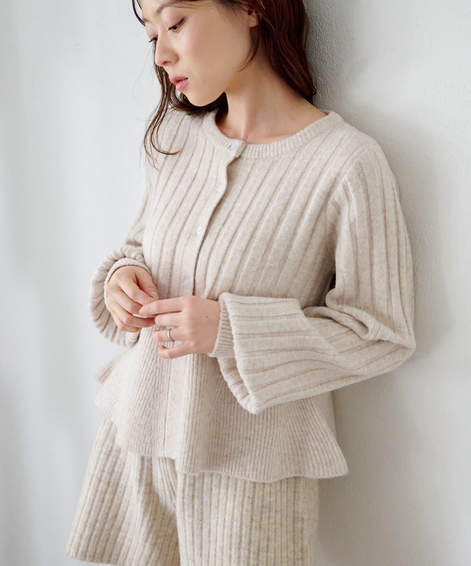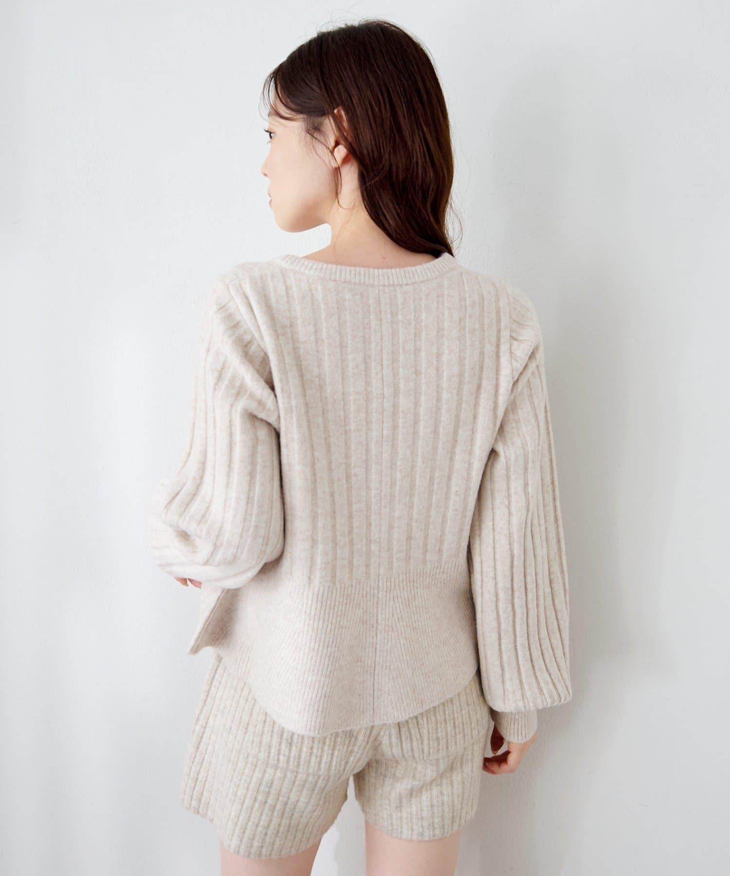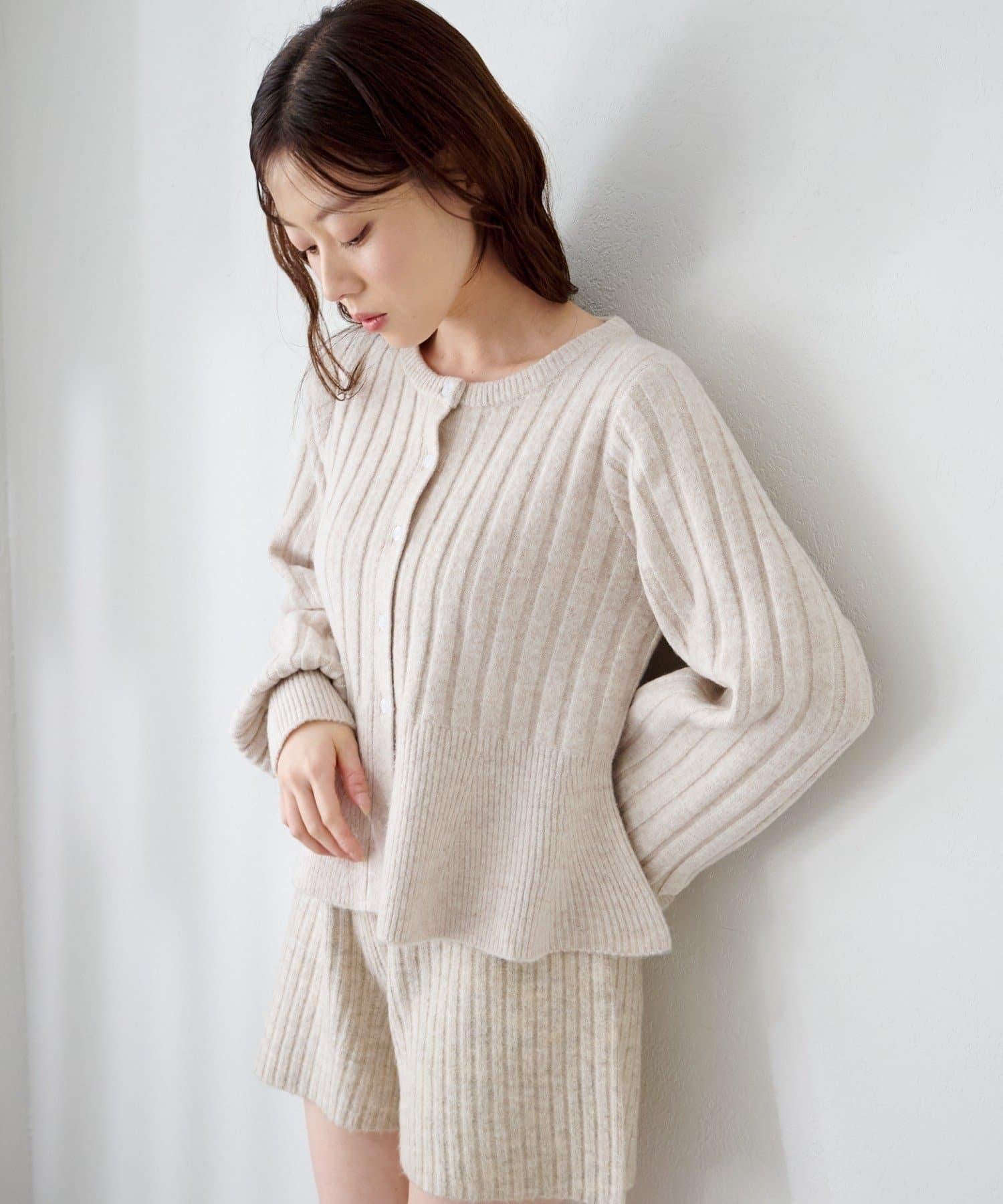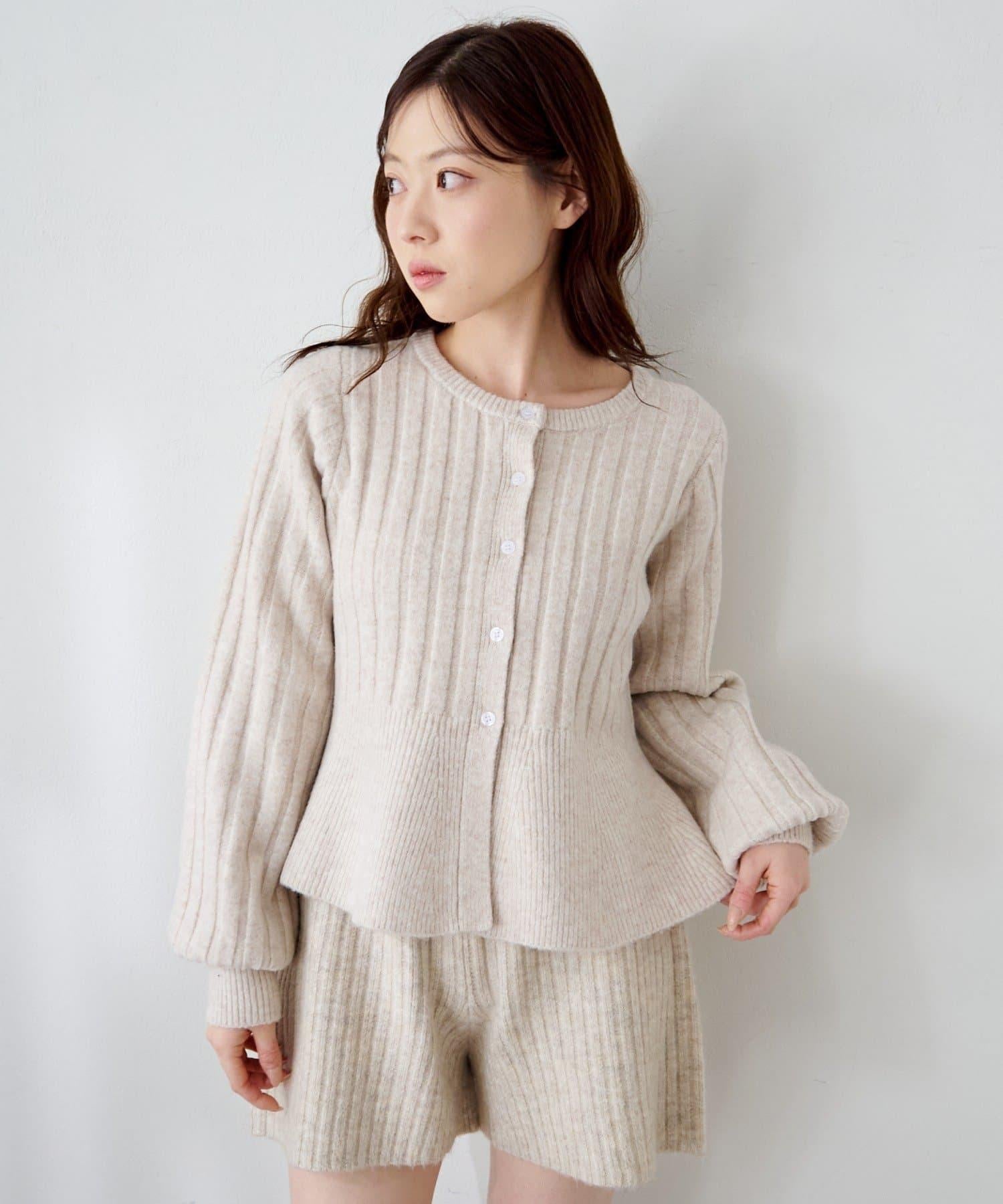 羅紋針織開衫採用蓬蓬裙廓形,腰部柔和地展開,營造出女性的柔美印象。