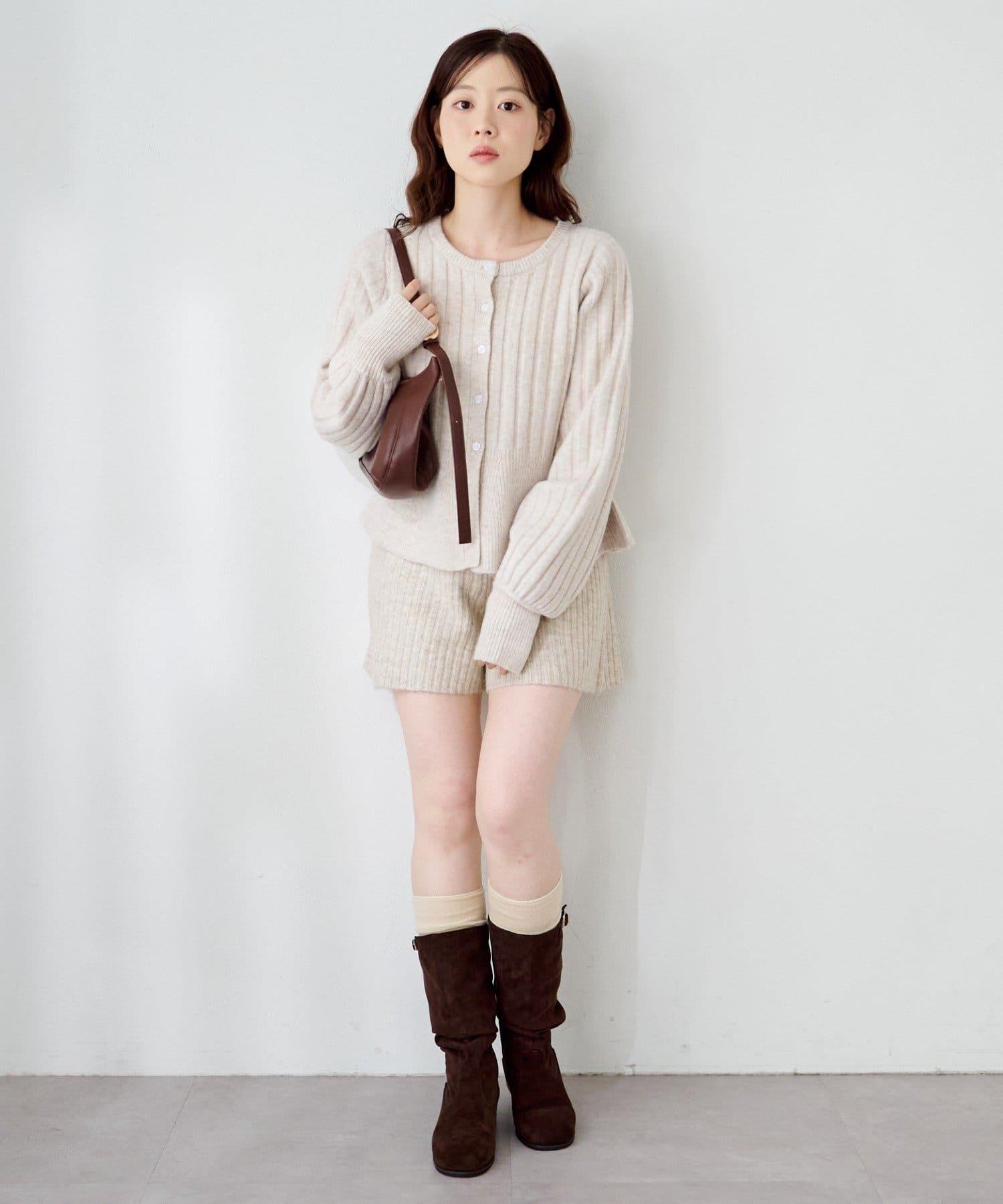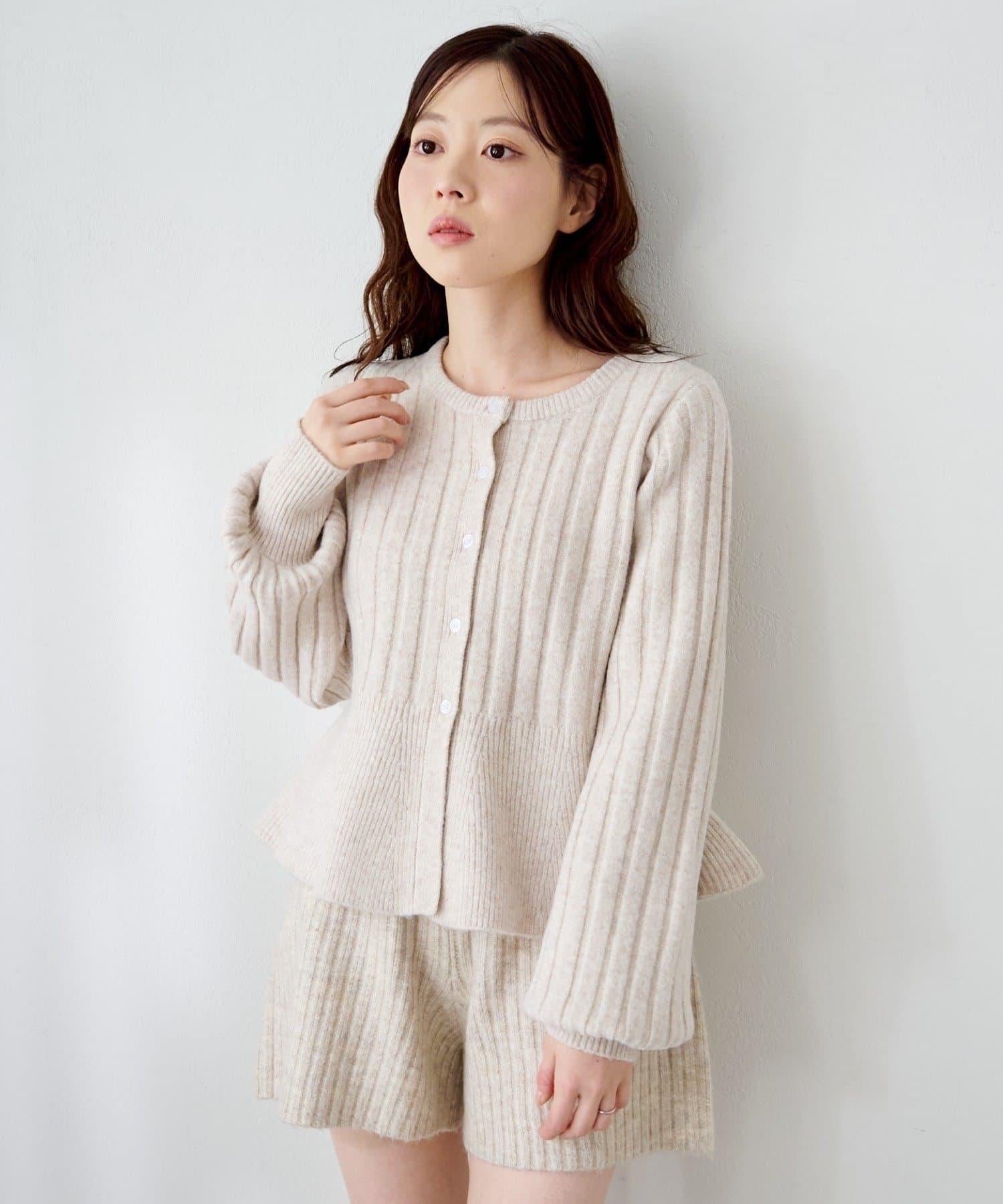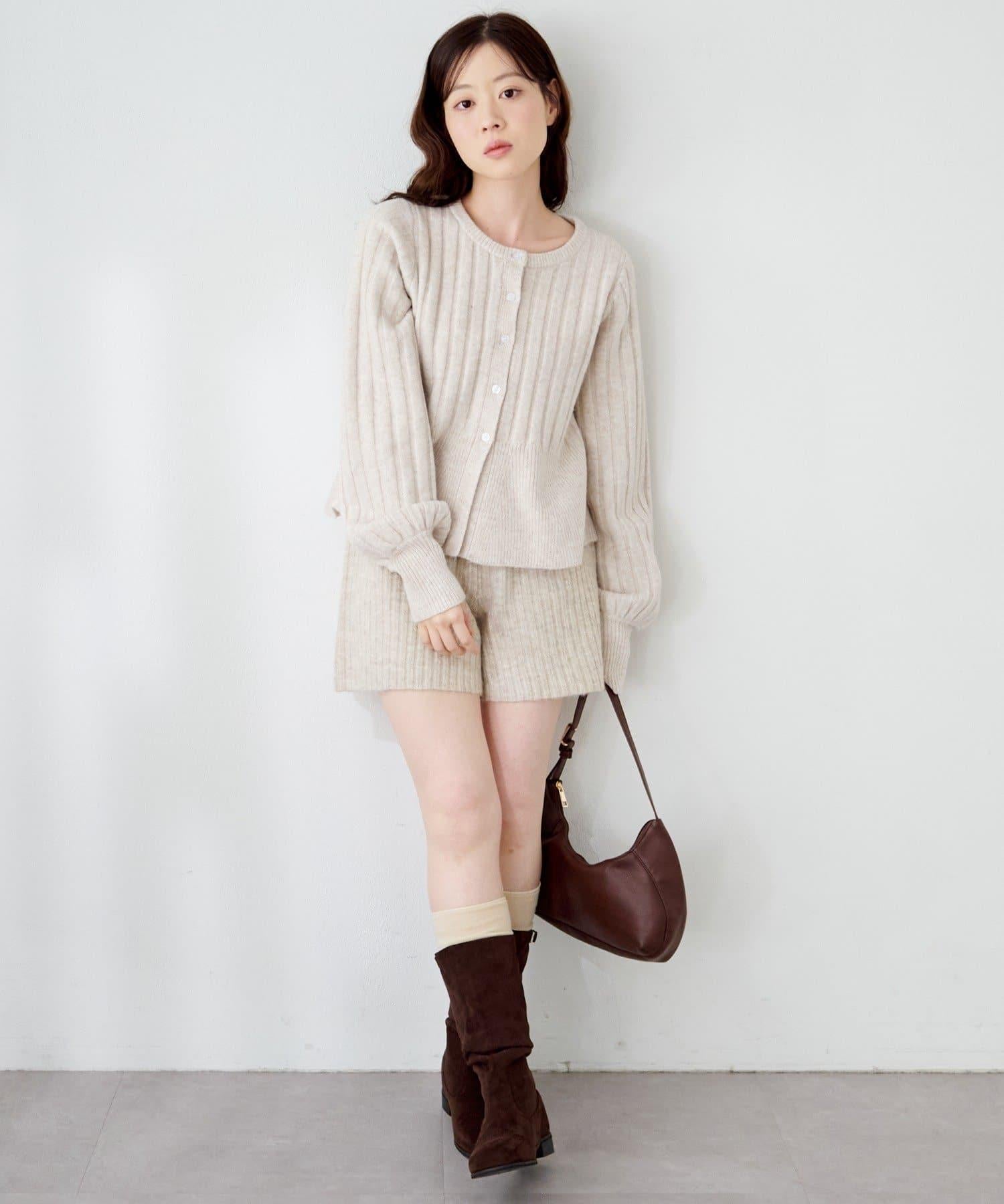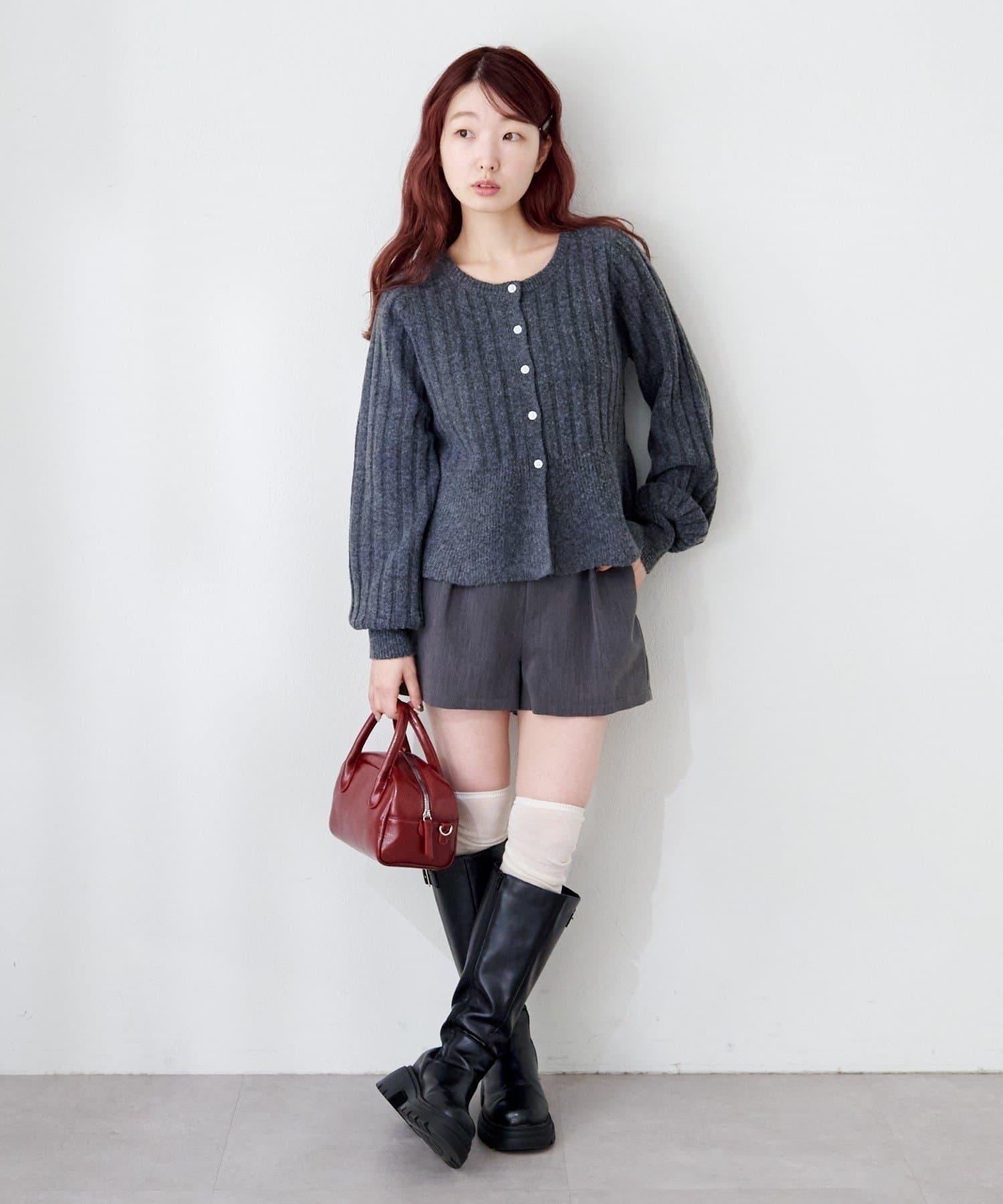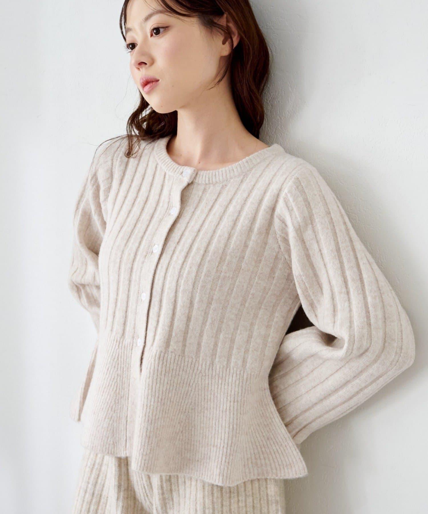 羅紋針織開衫採用蓬蓬裙廓形,腰部柔和地展開,營造出女性的柔美印象。