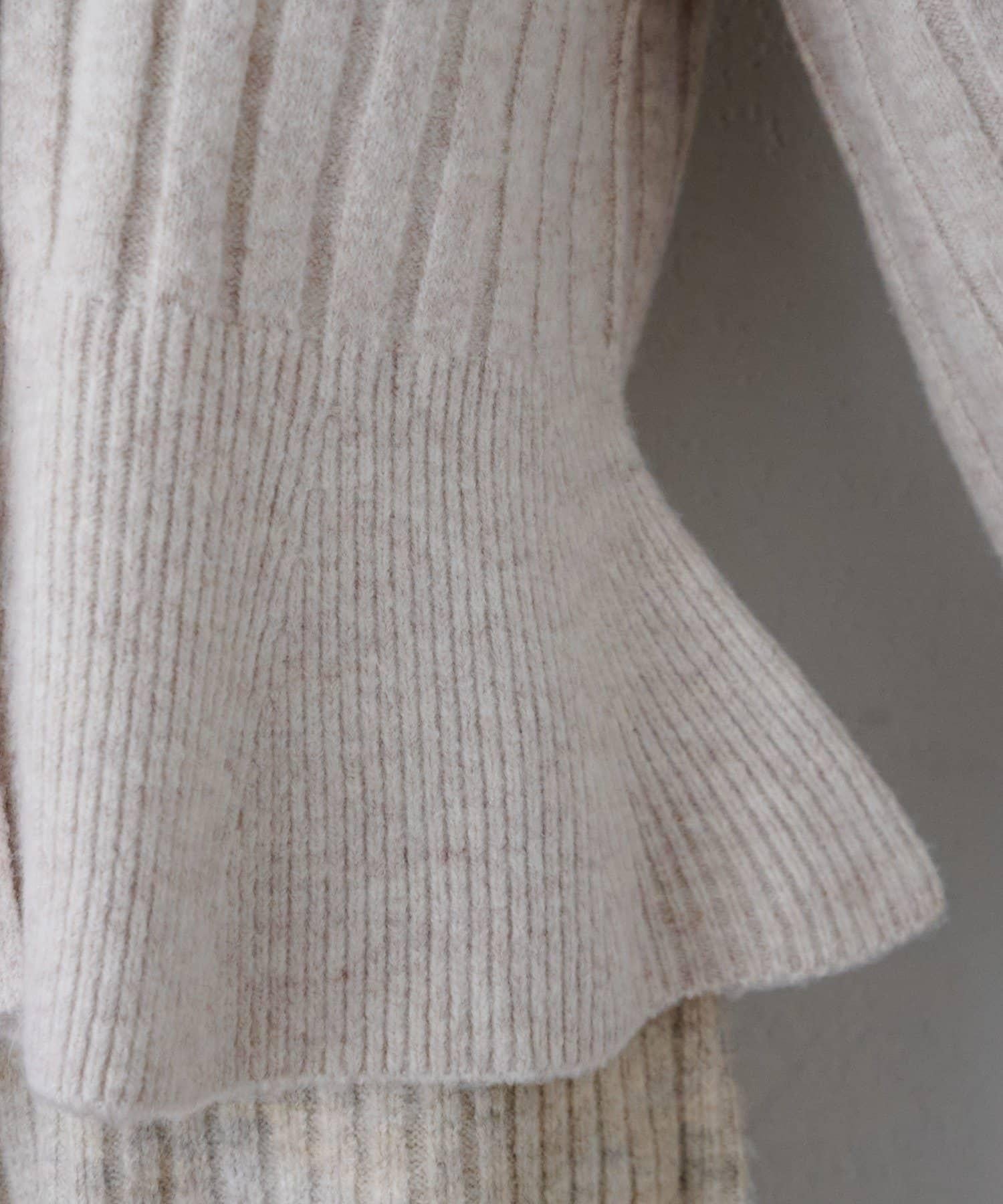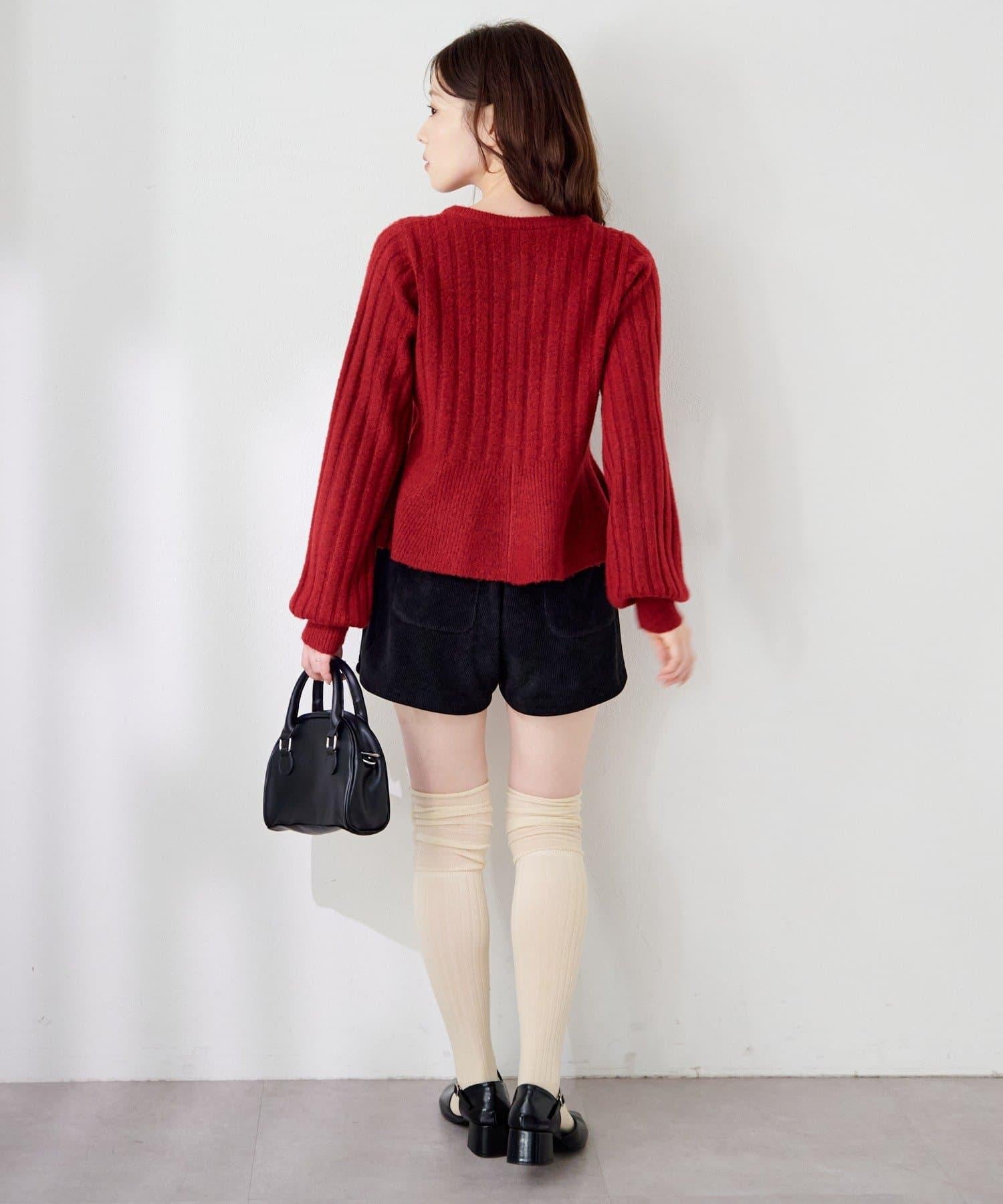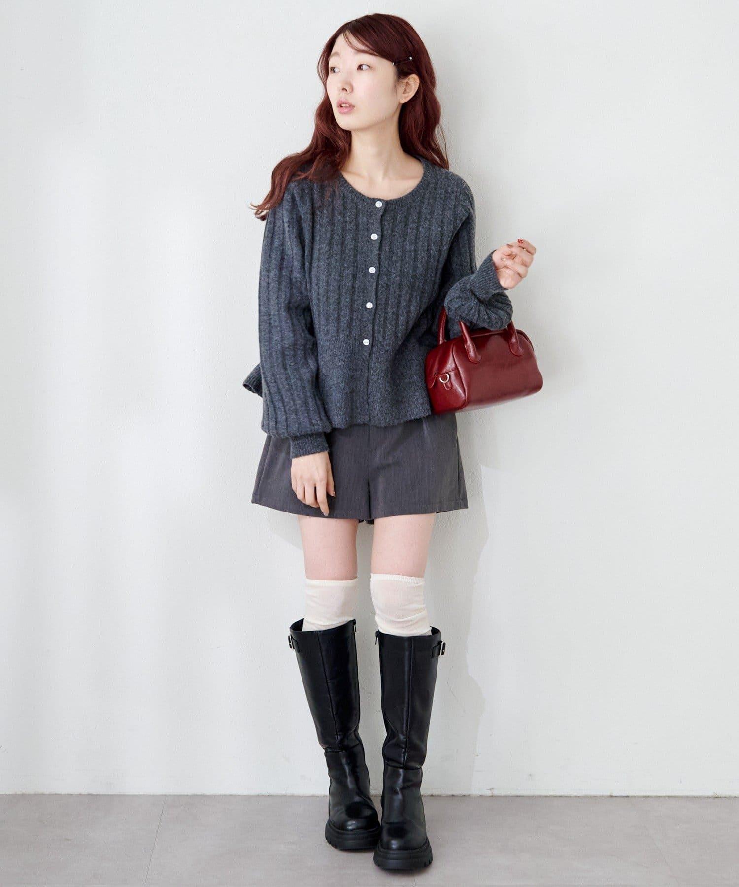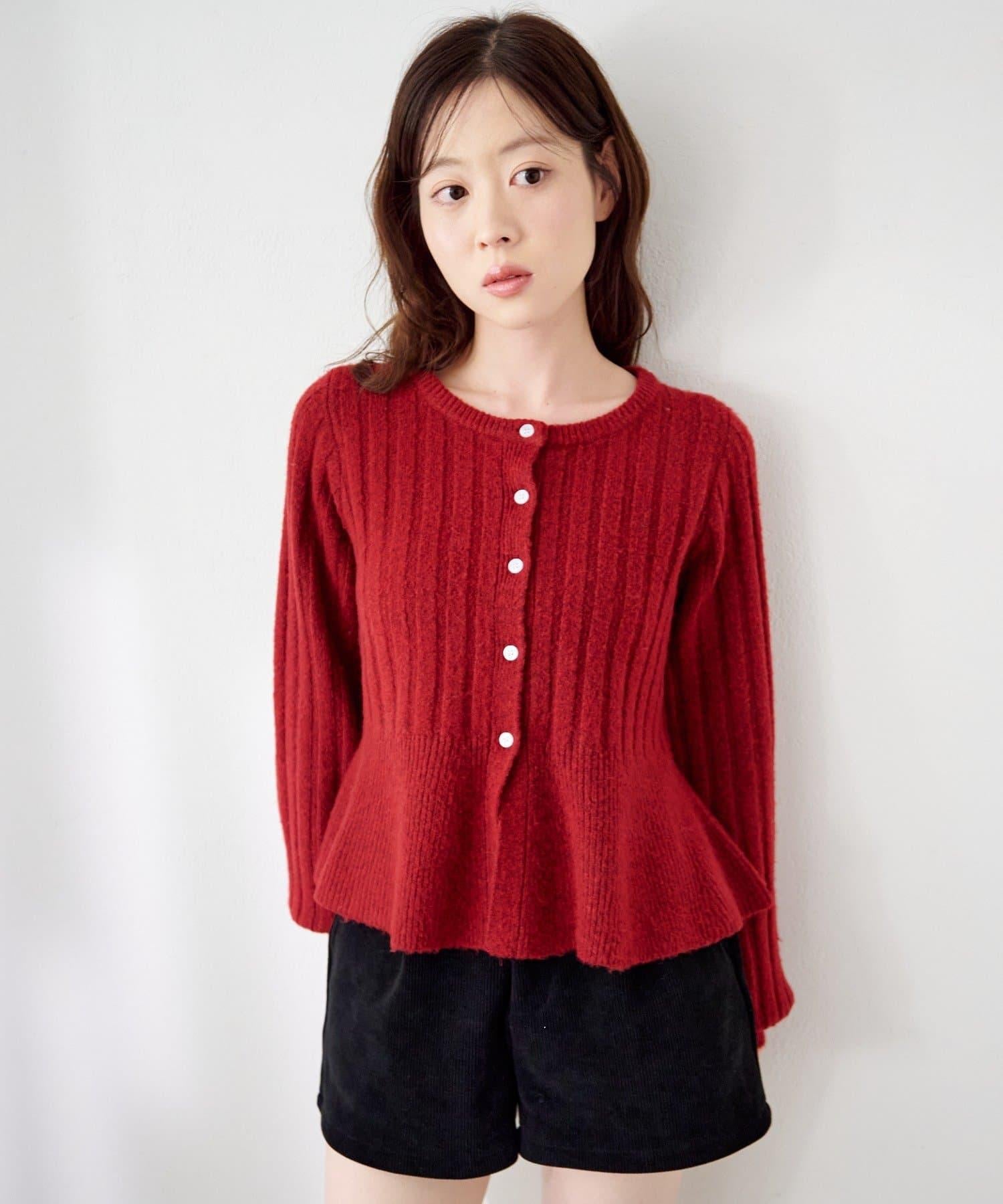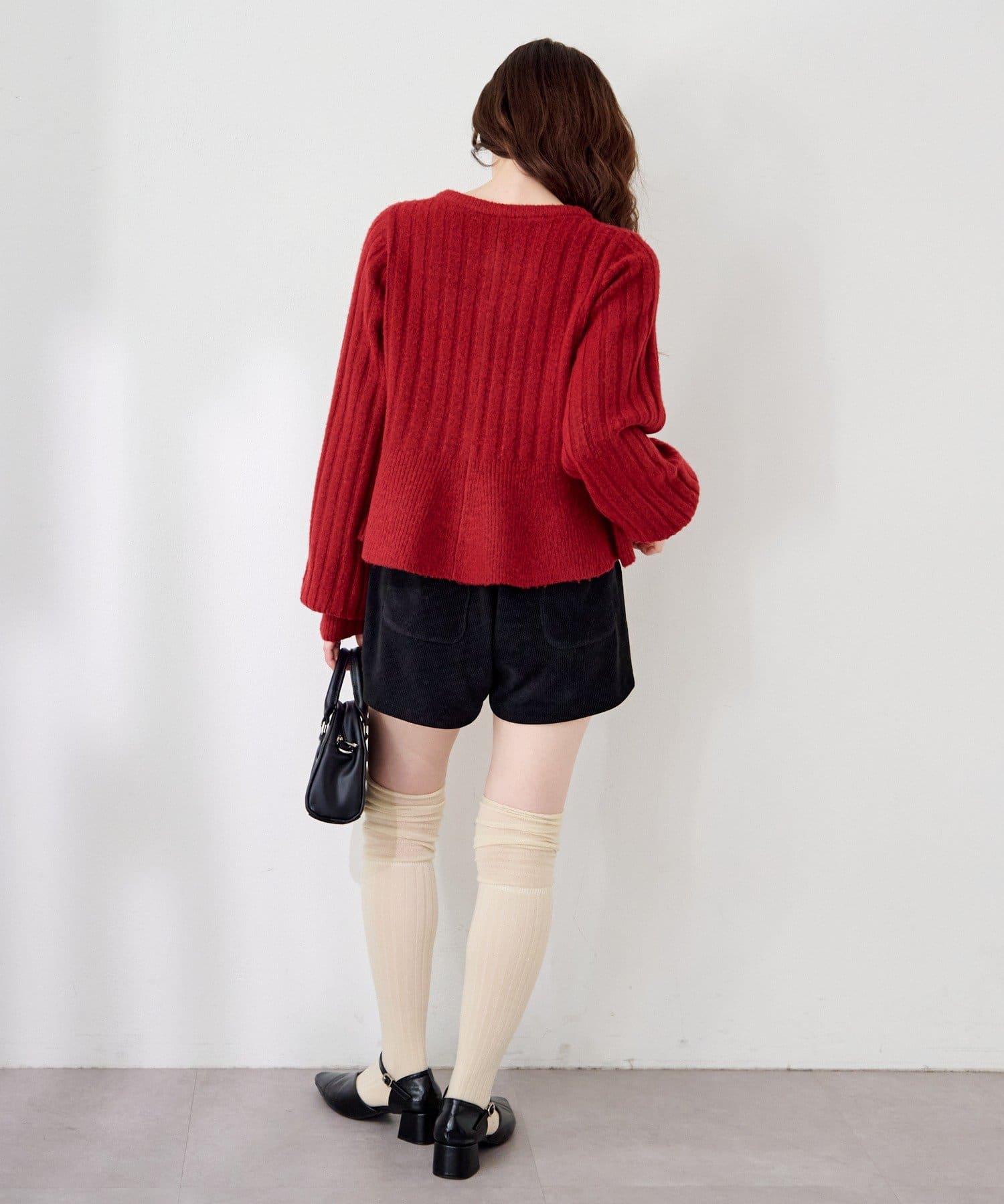 羅紋針織開衫採用蓬蓬裙廓形,腰部柔和地展開,營造出女性的柔美印象。