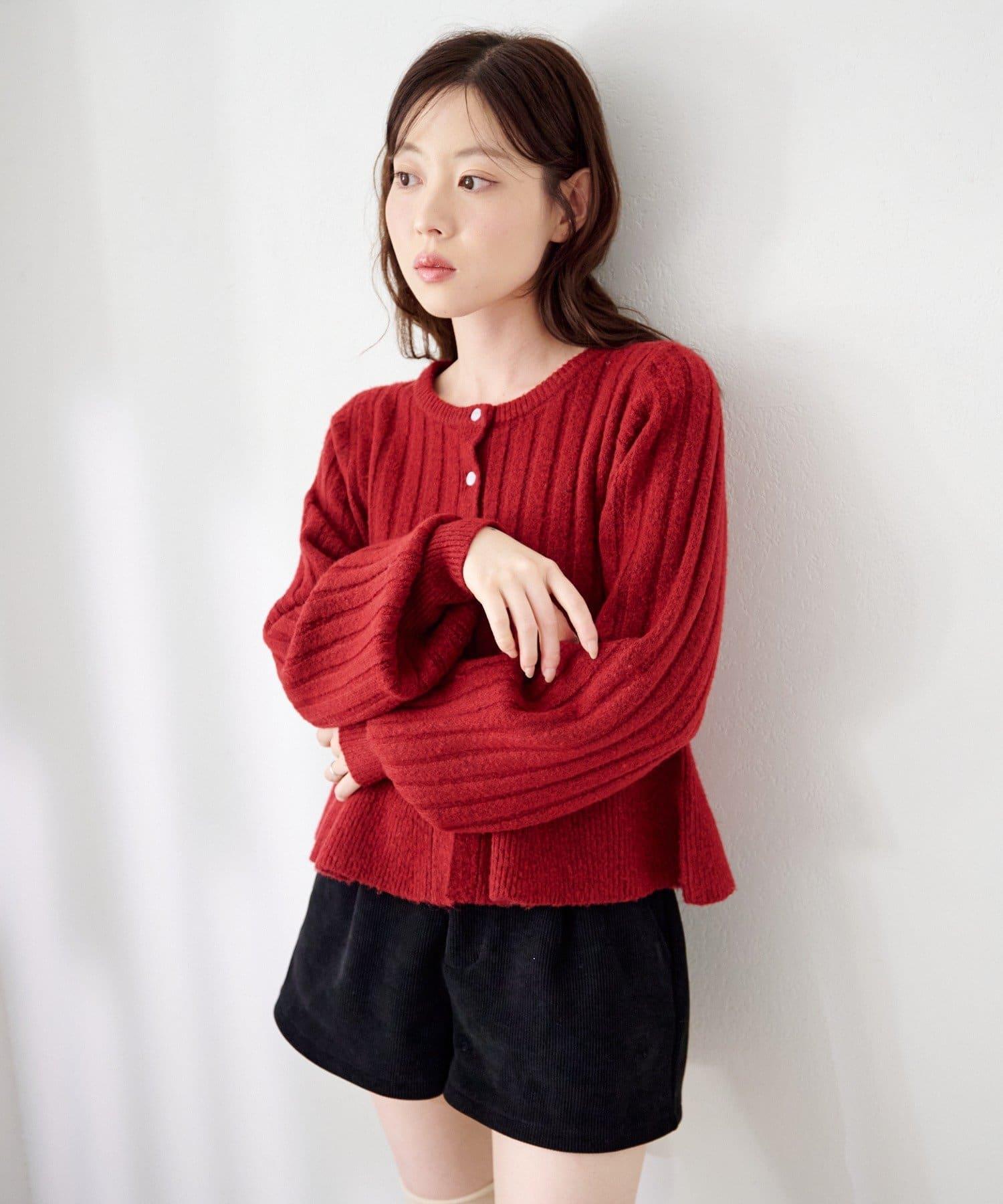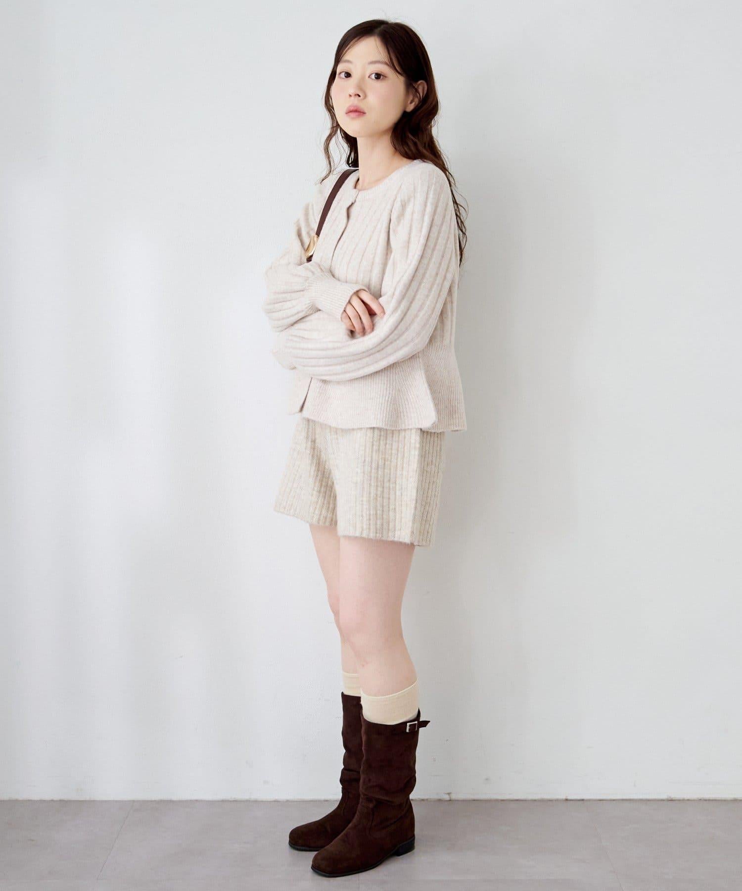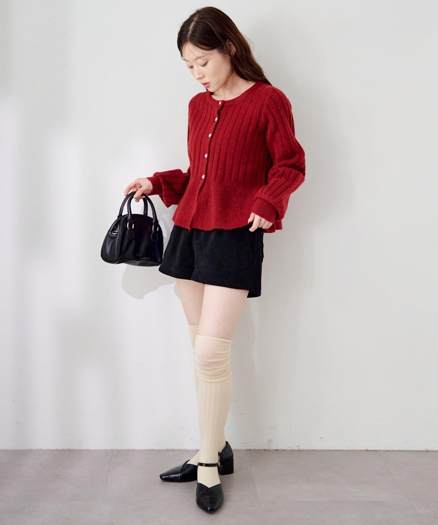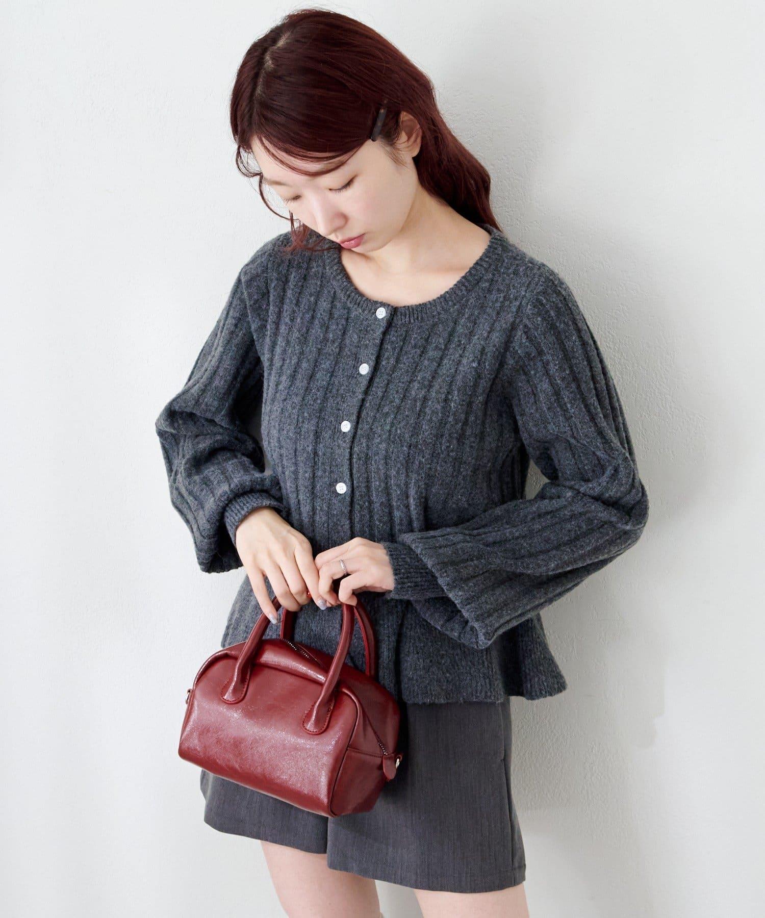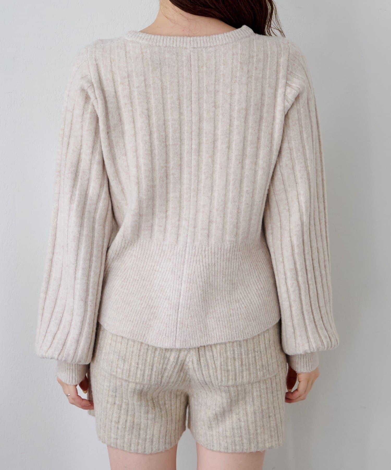 羅紋針織開衫採用蓬蓬裙廓形,腰部柔和地展開,營造出女性的柔美印象。