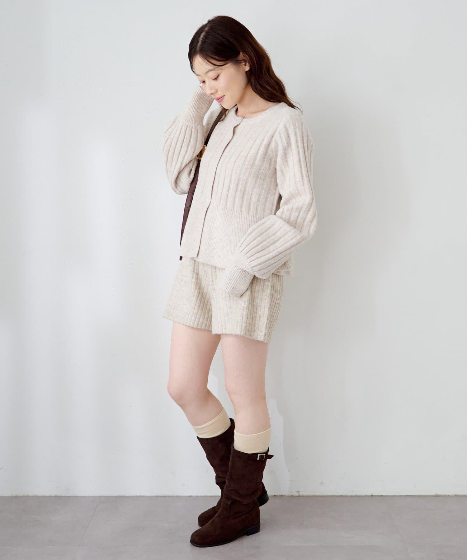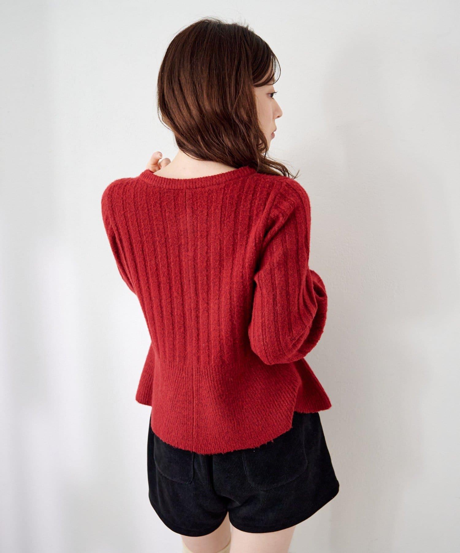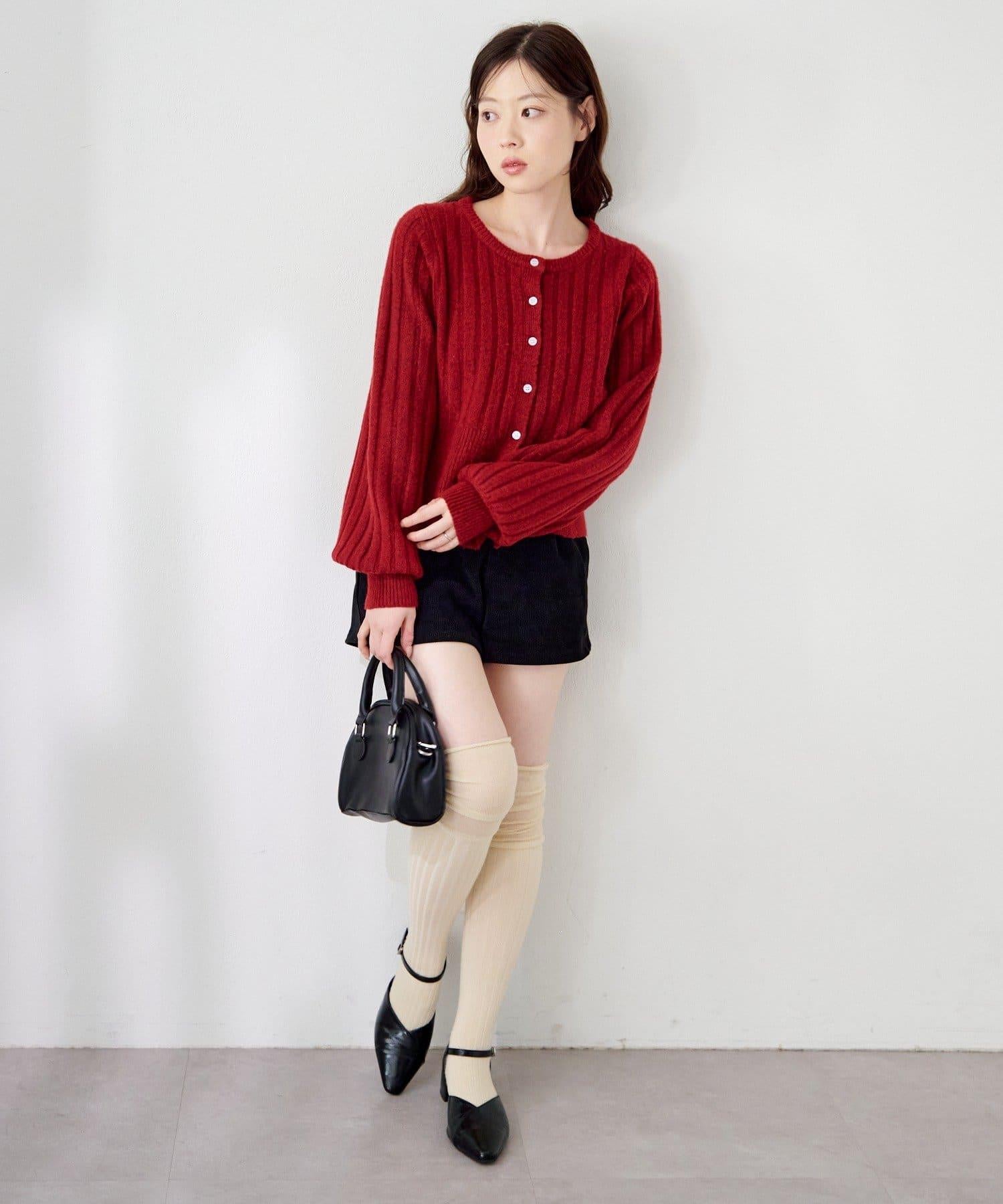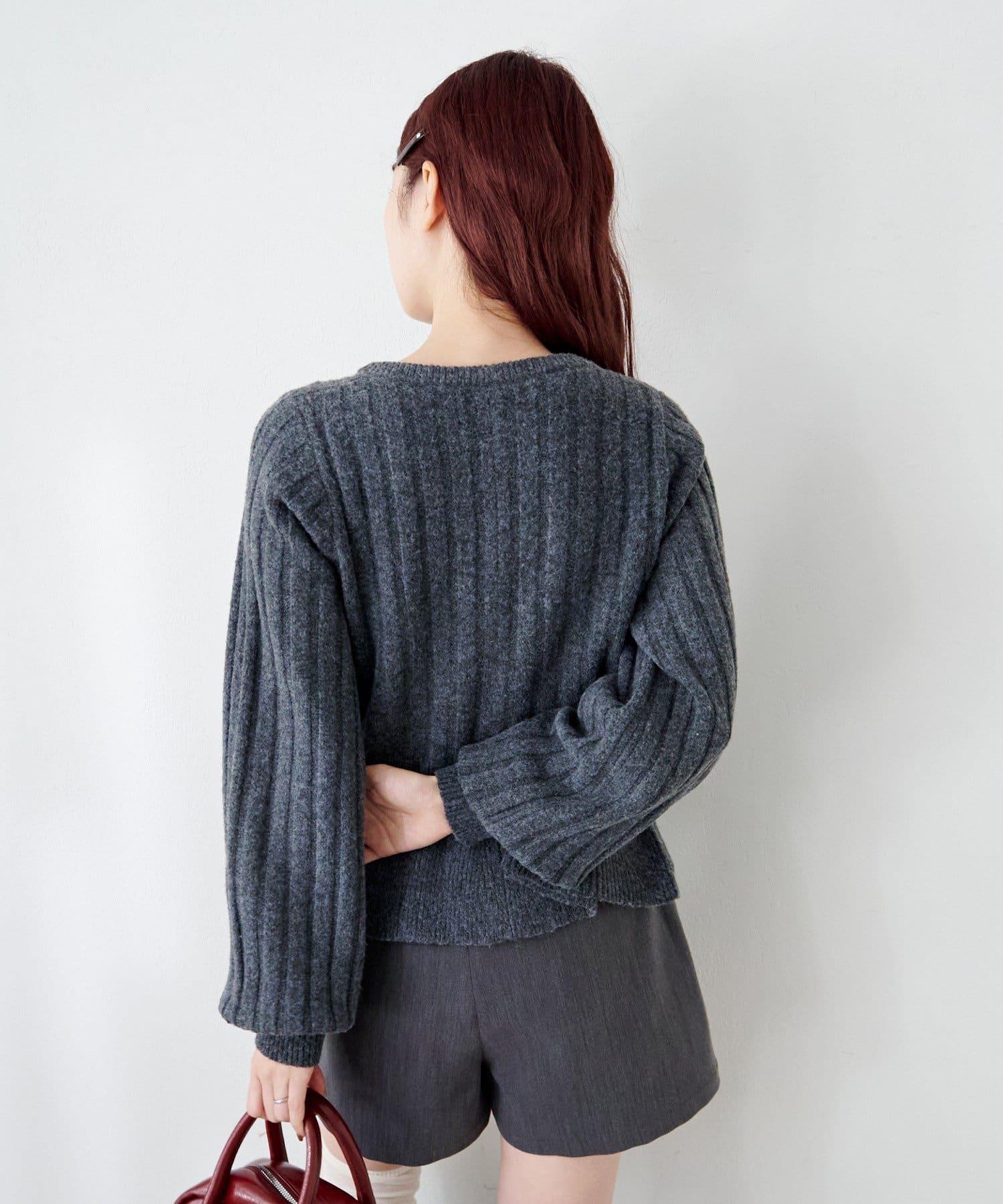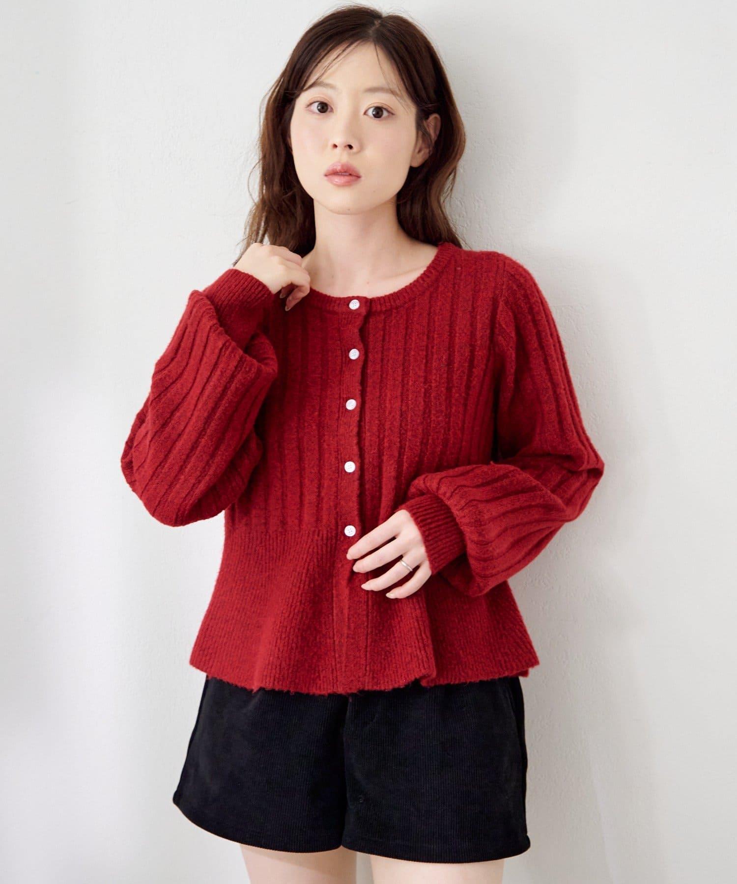 羅紋針織開衫採用蓬蓬裙廓形,腰部柔和地展開,營造出女性的柔美印象。