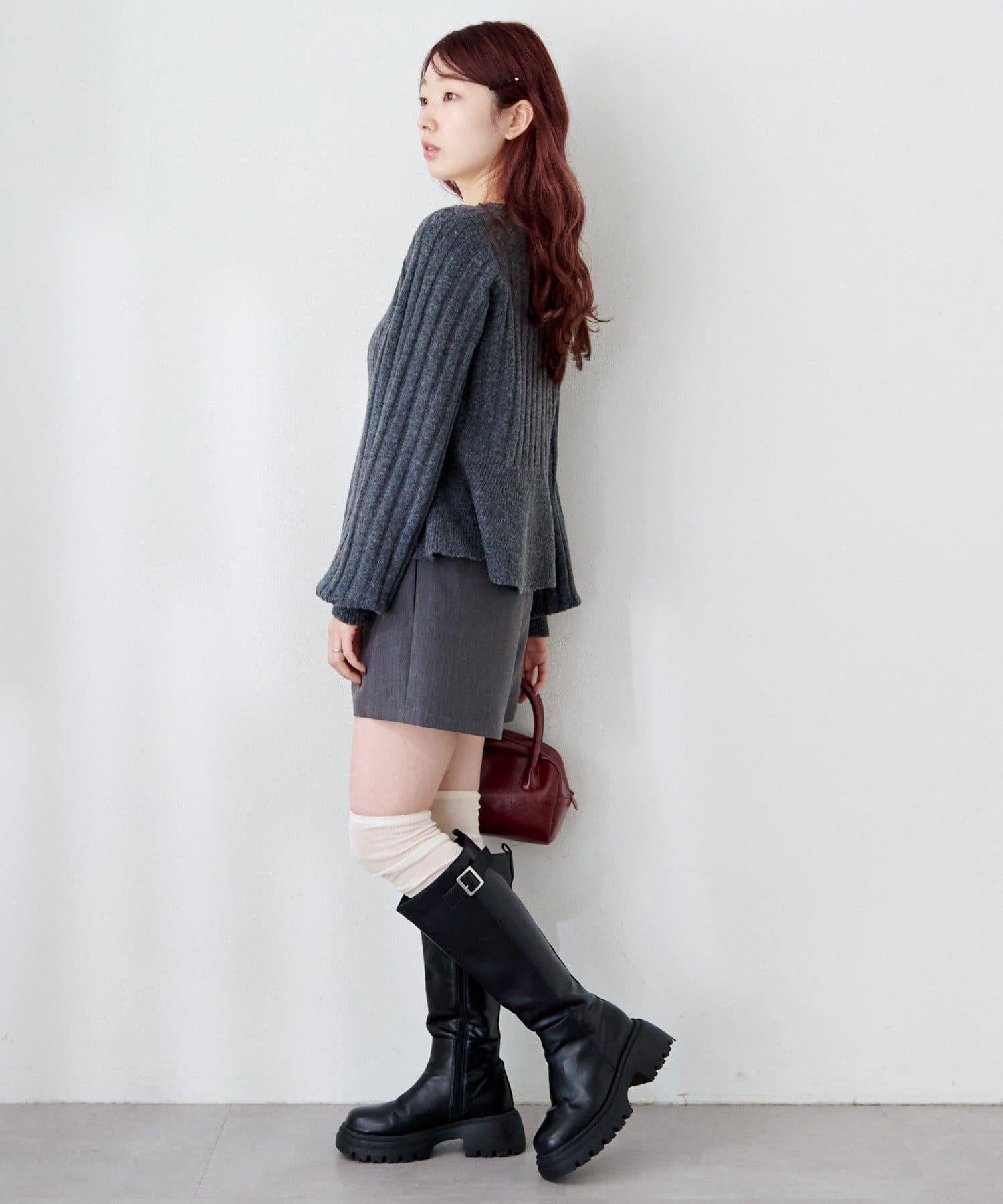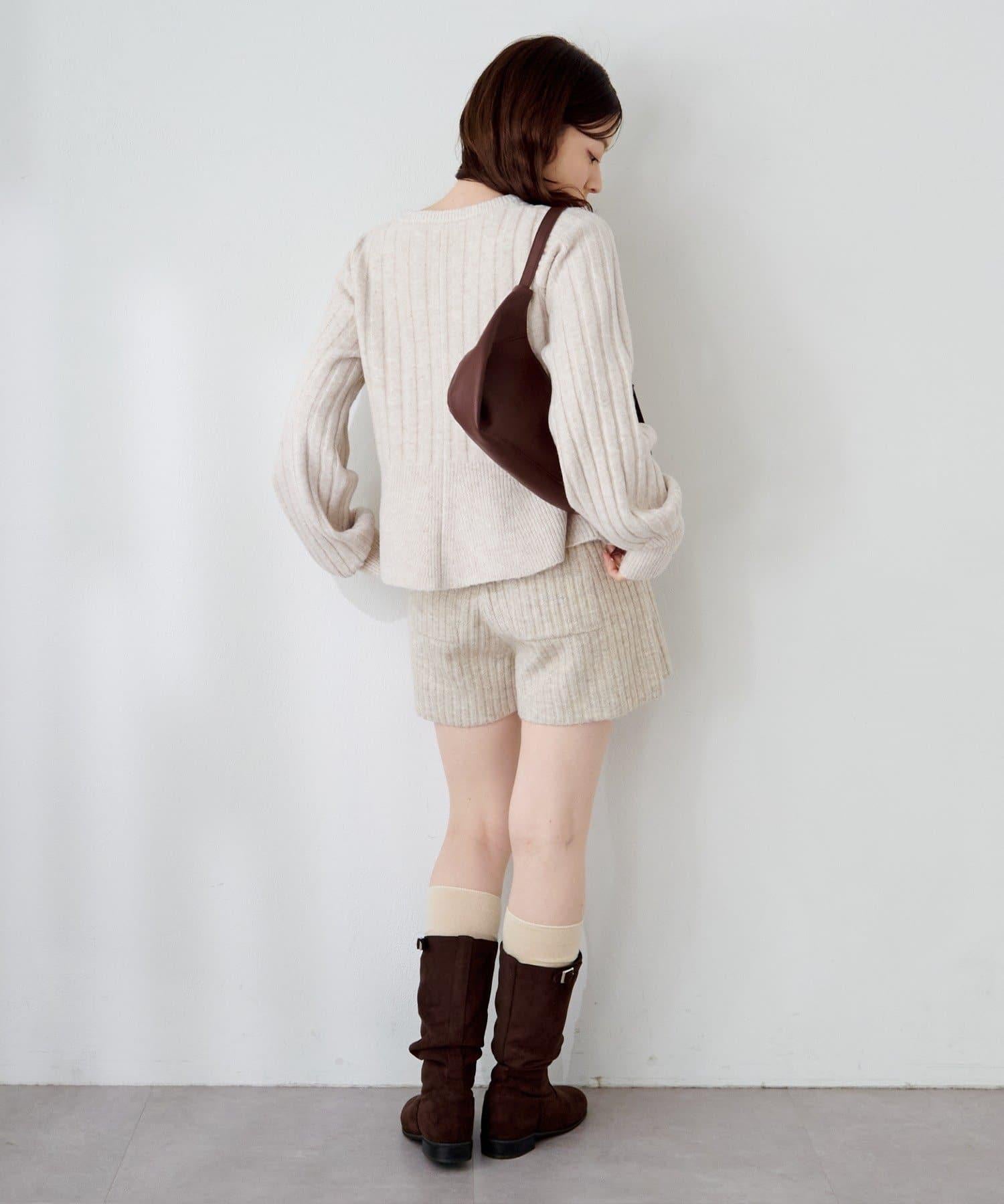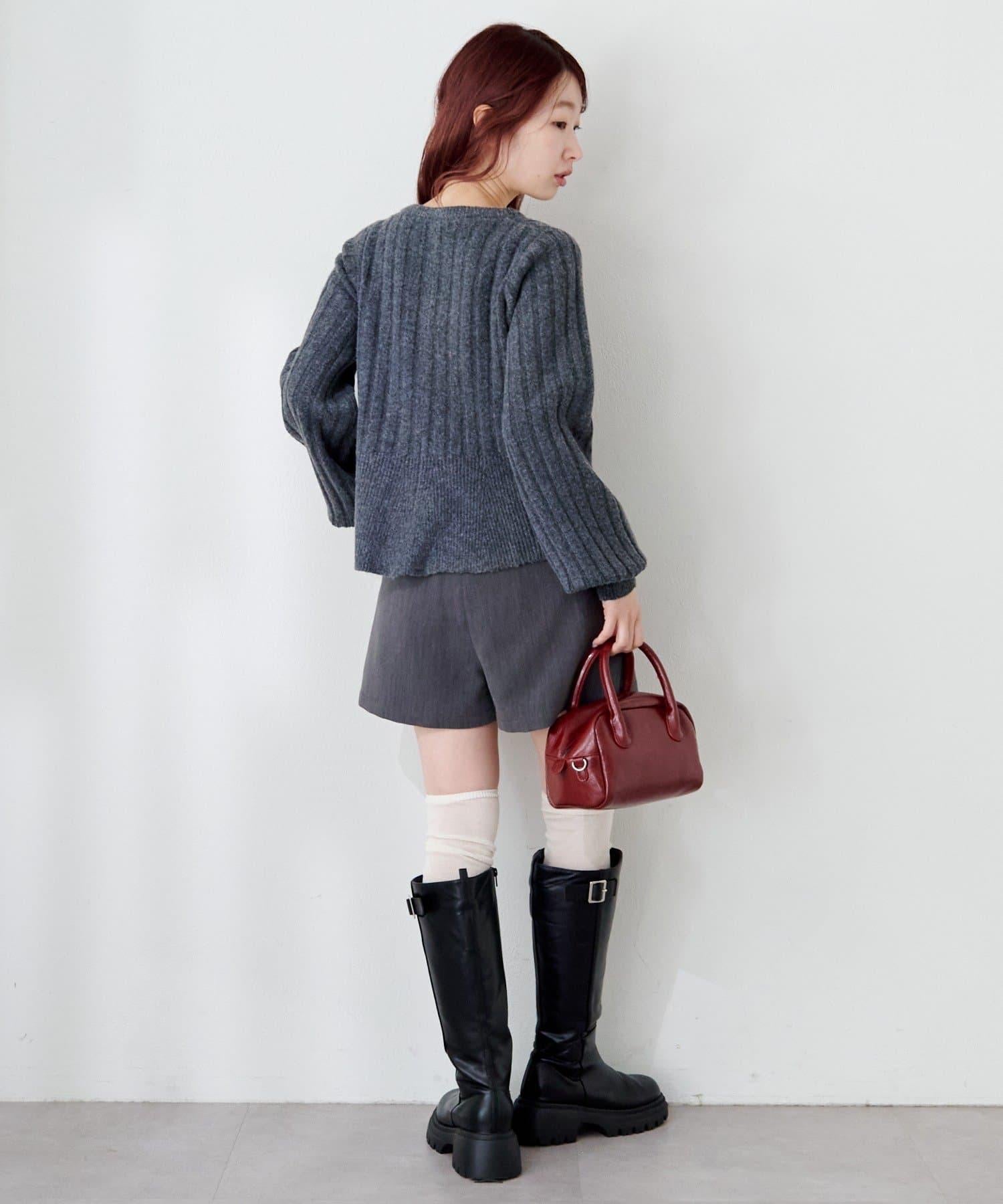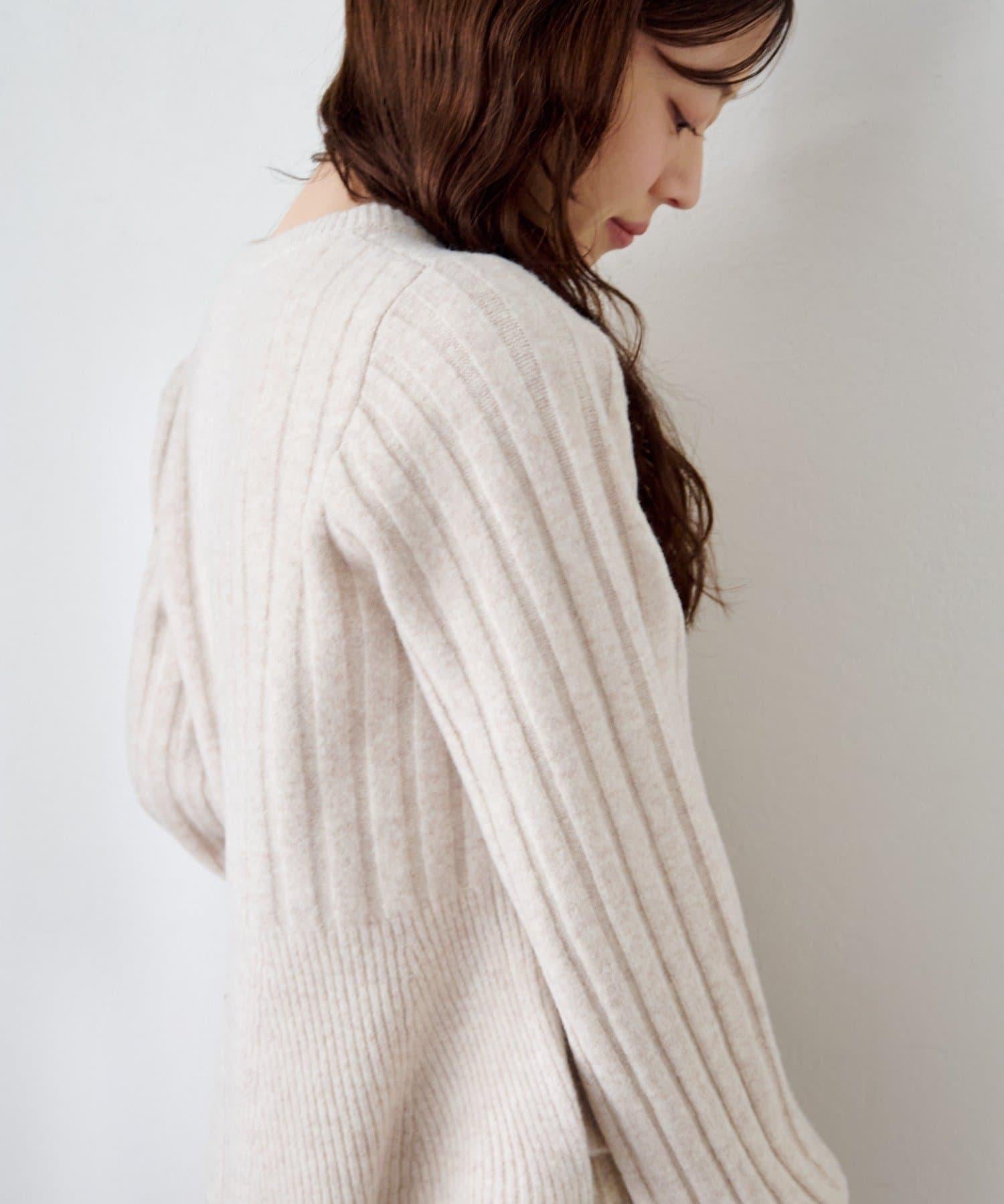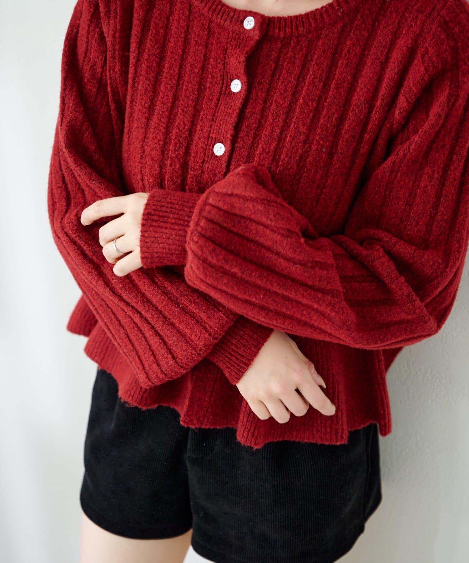 羅紋針織開衫採用蓬蓬裙廓形,腰部柔和地展開,營造出女性的柔美印象。
