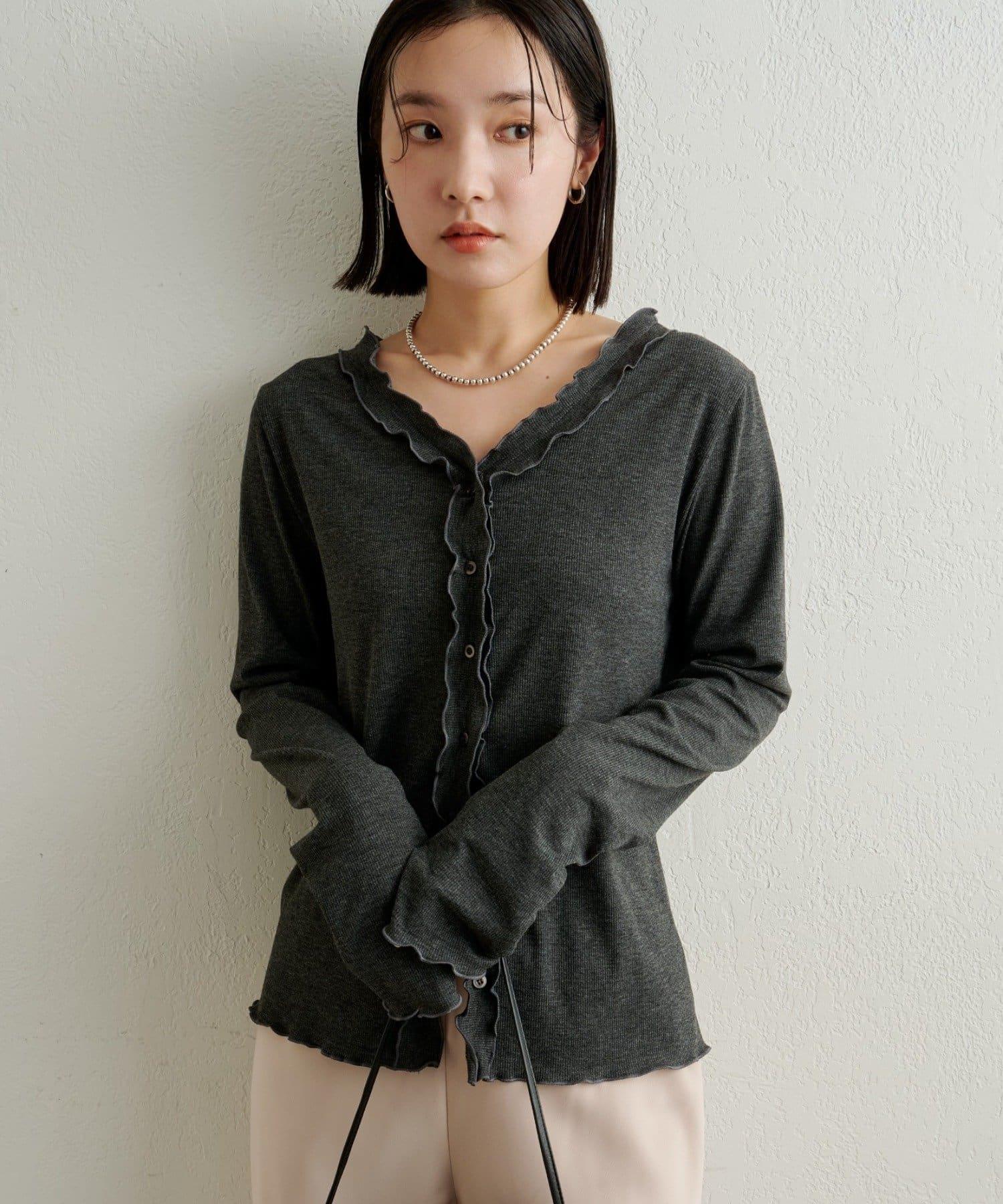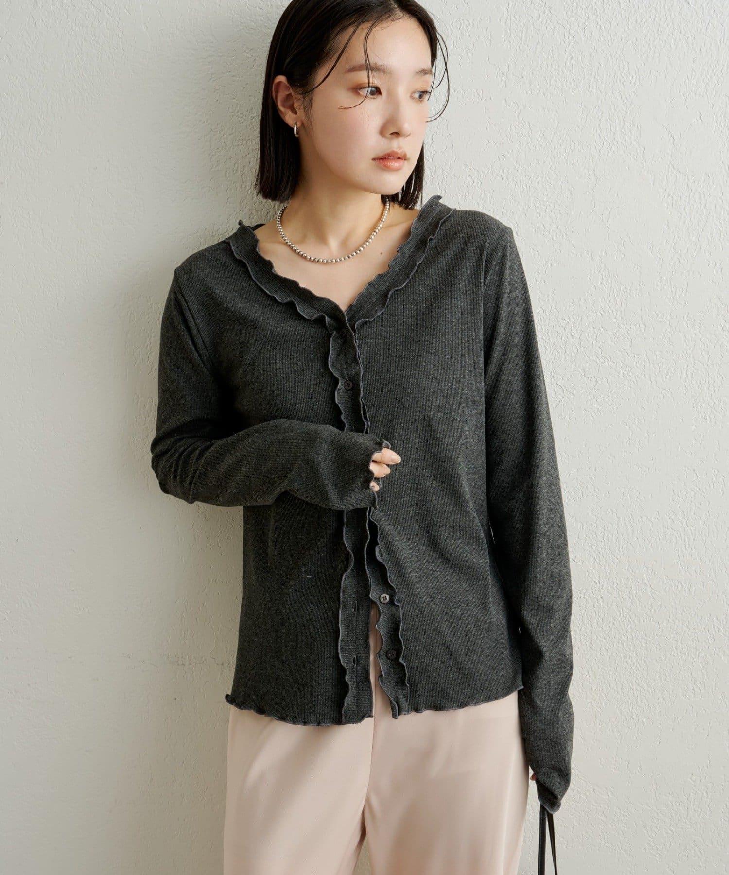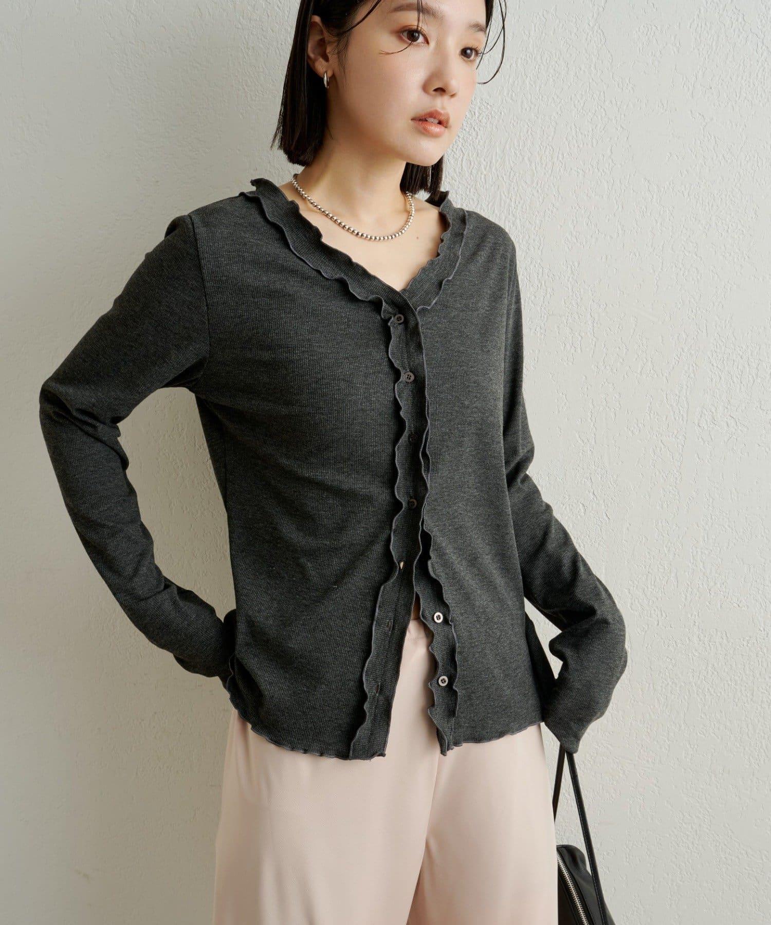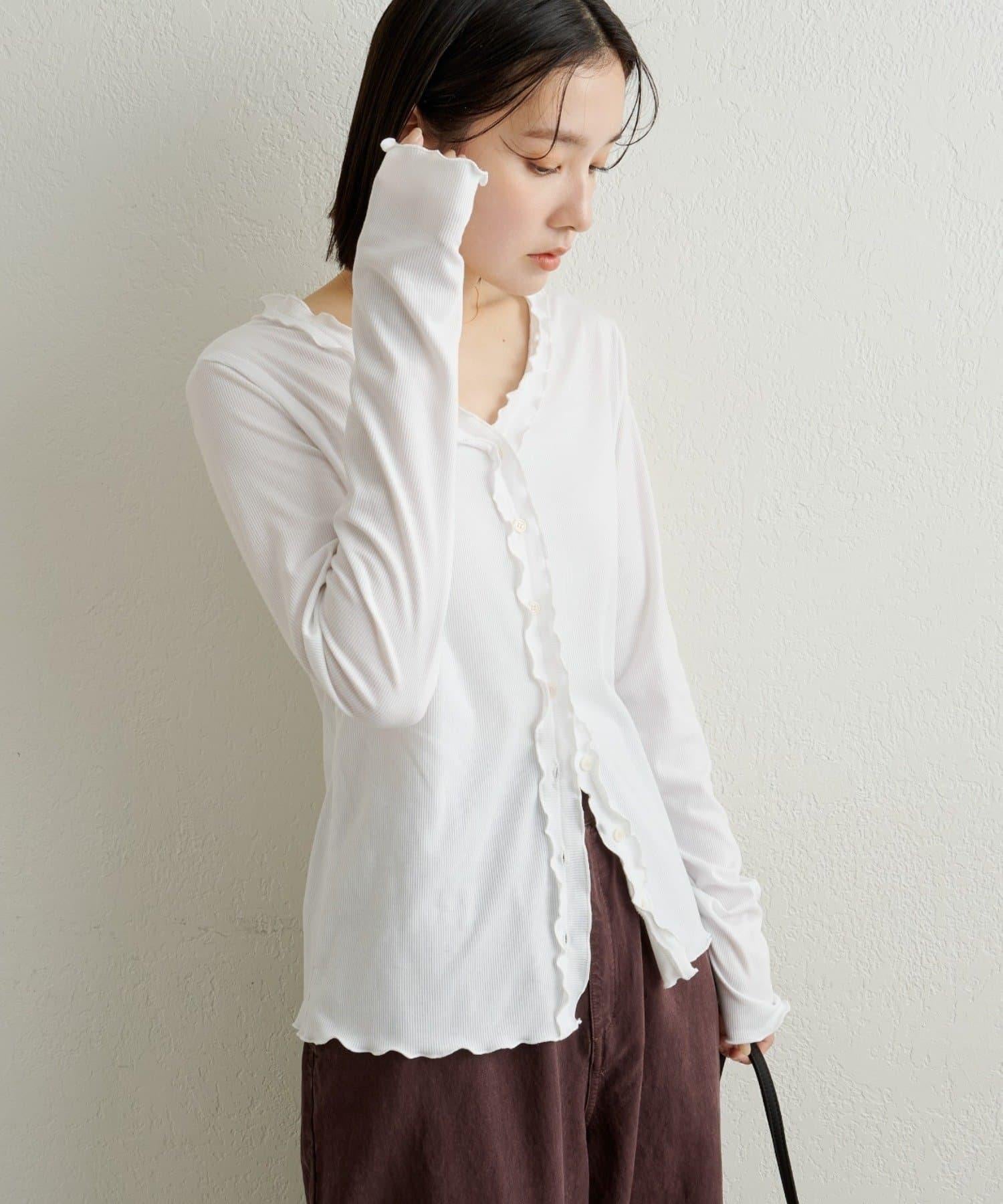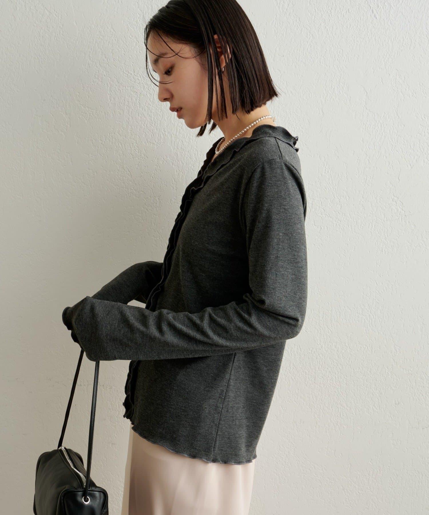 荷葉邊羅紋開衫,微妙的荷葉邊讓成人倍感可愛。