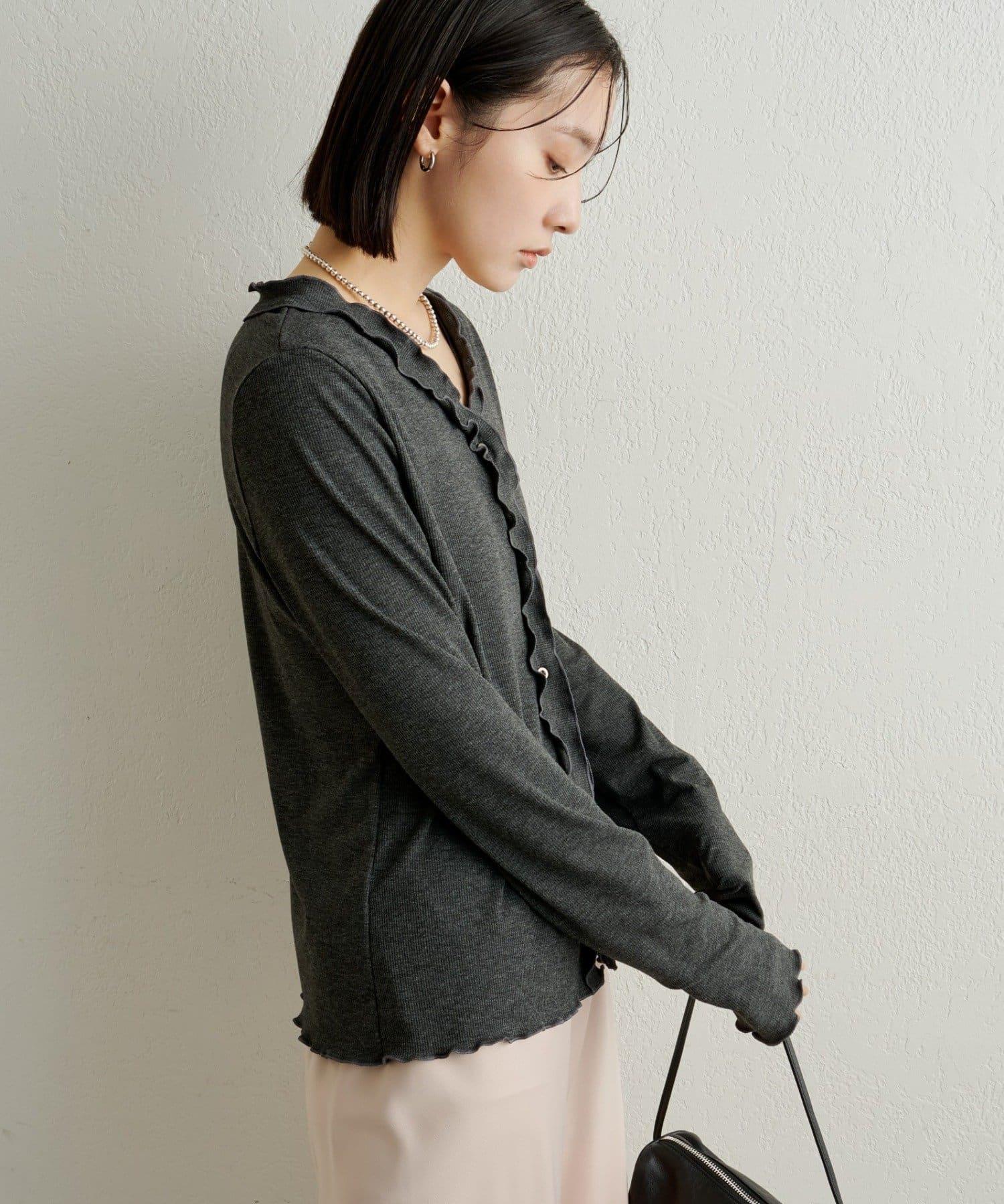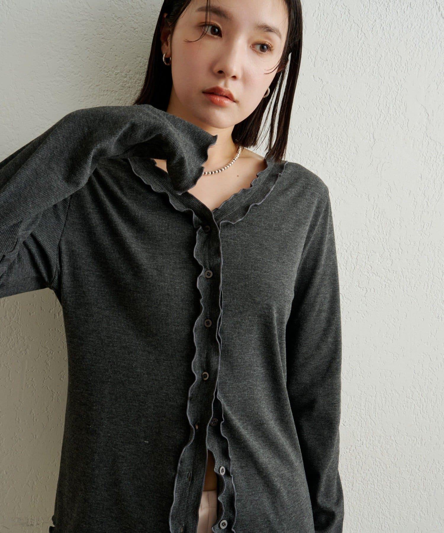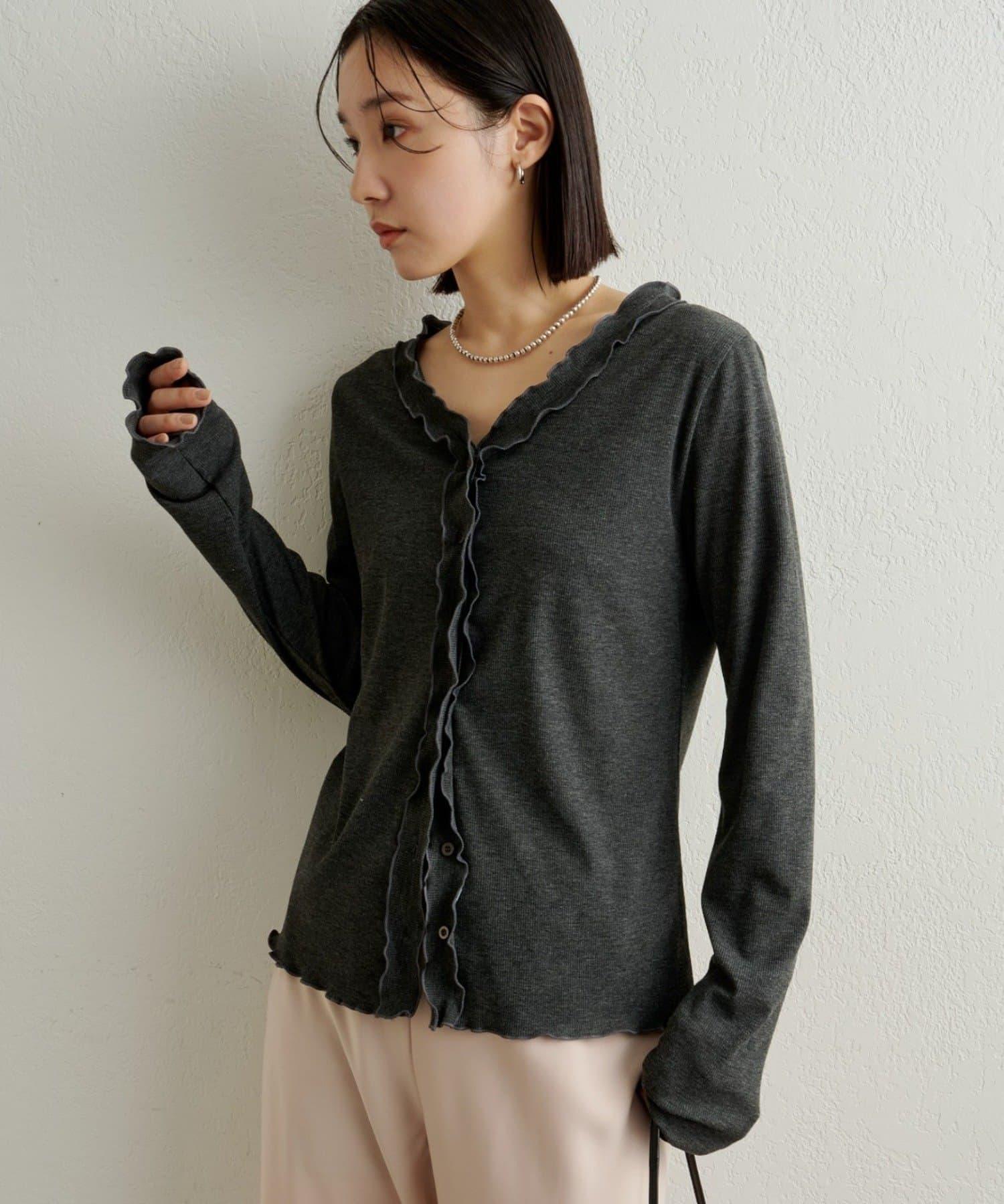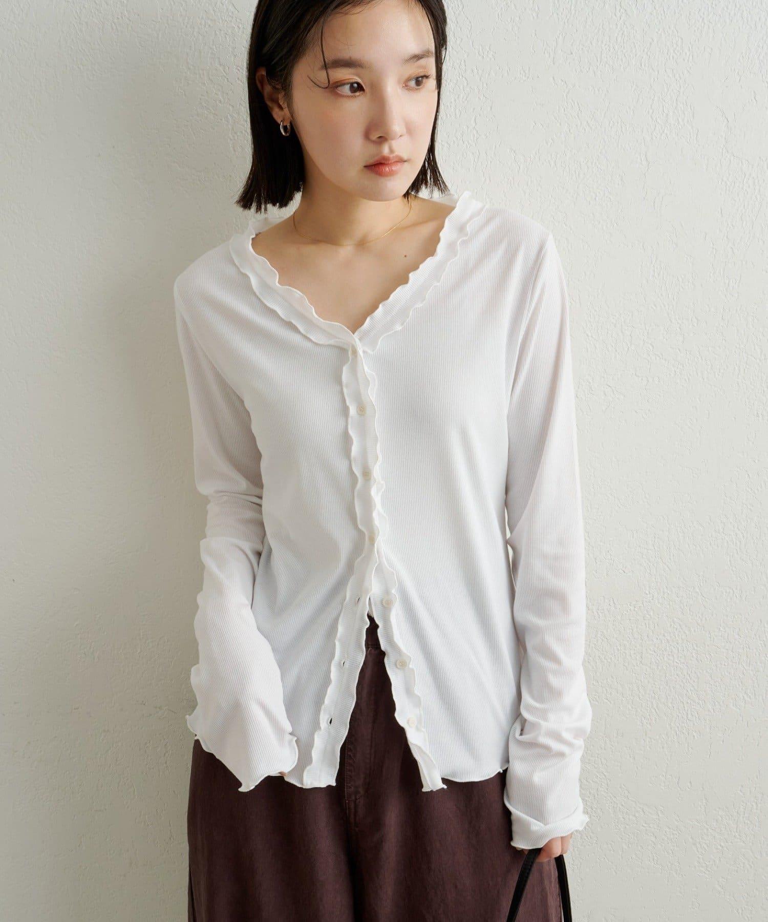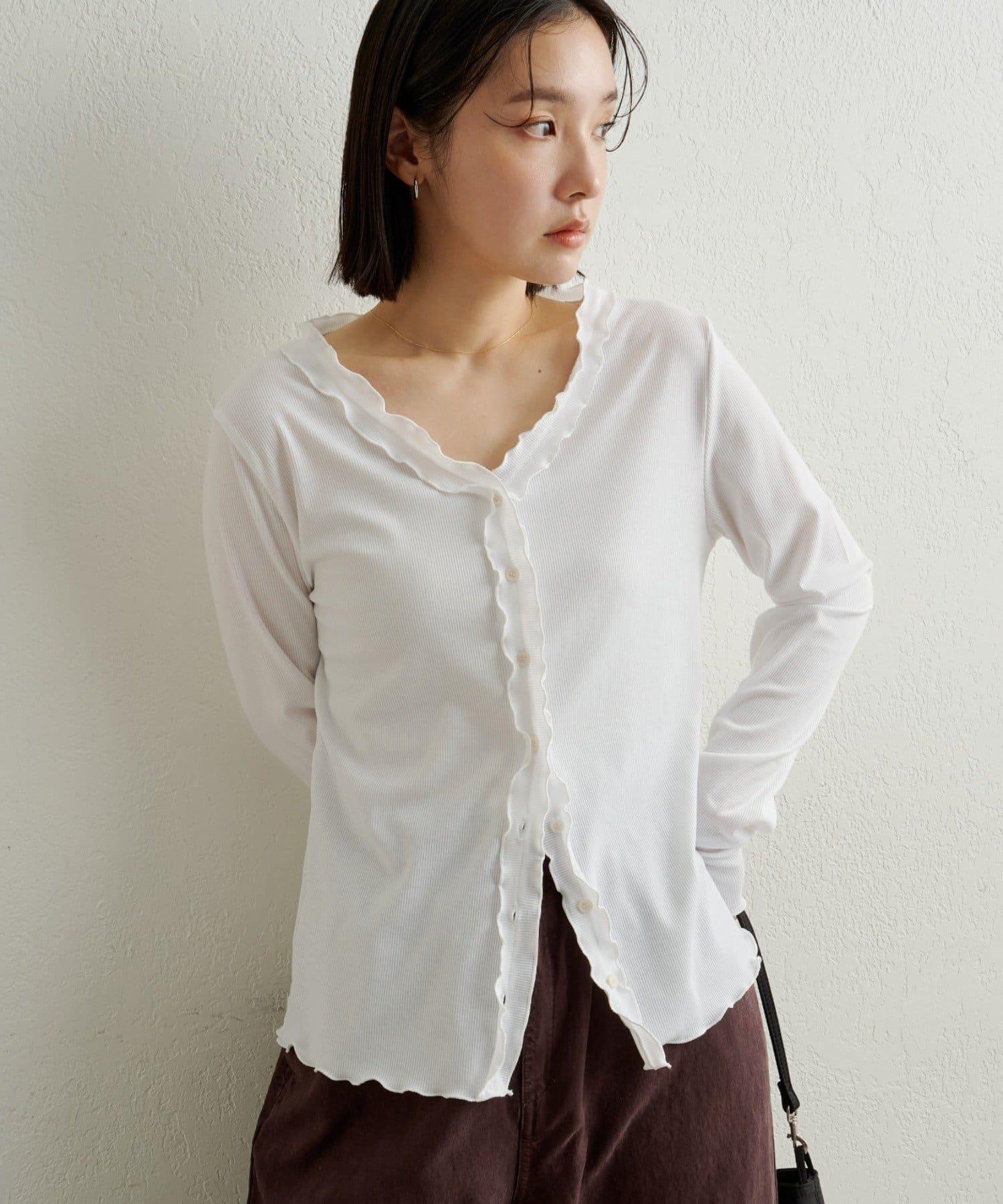 荷葉邊羅紋開衫,微妙的荷葉邊讓成人倍感可愛。