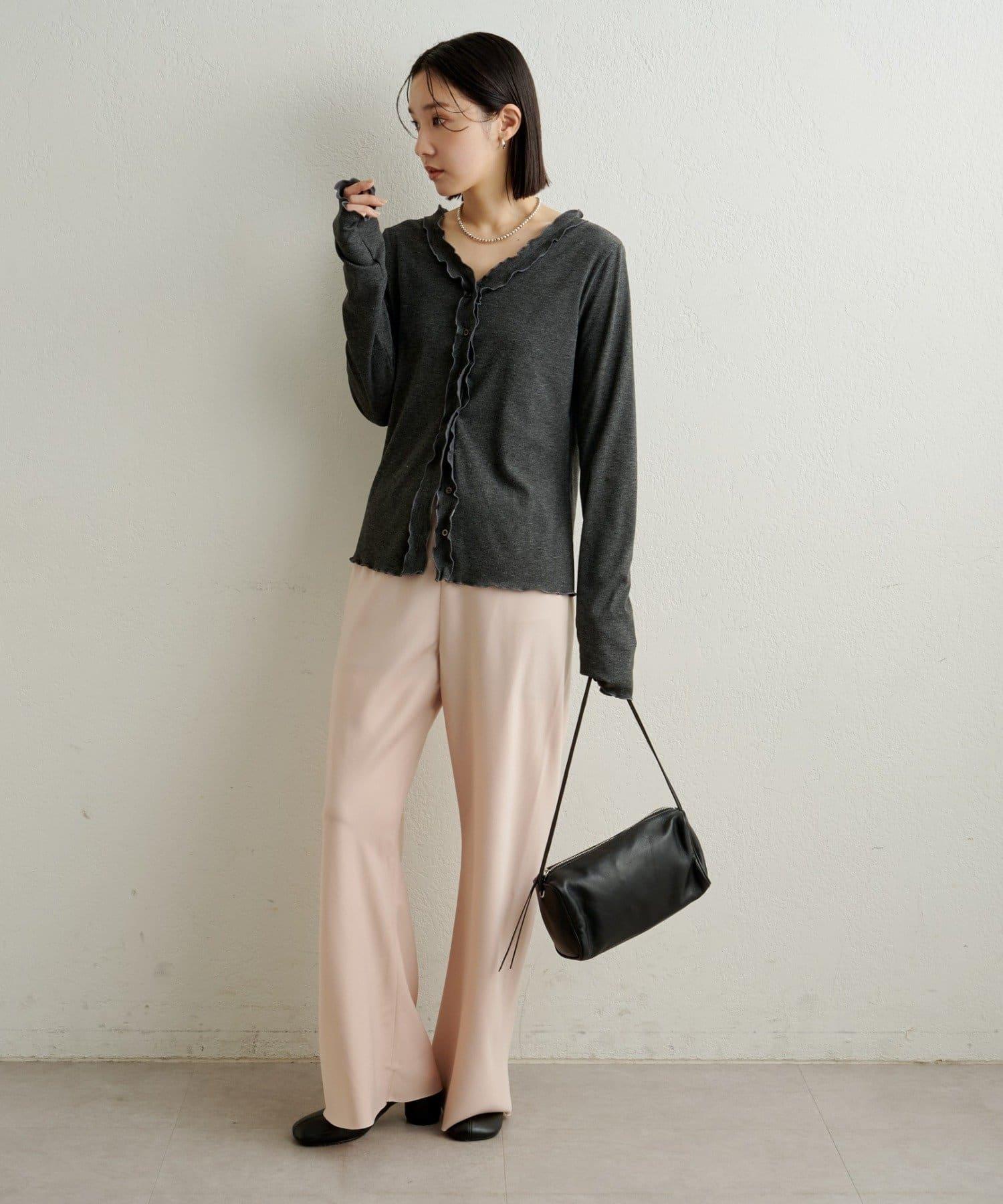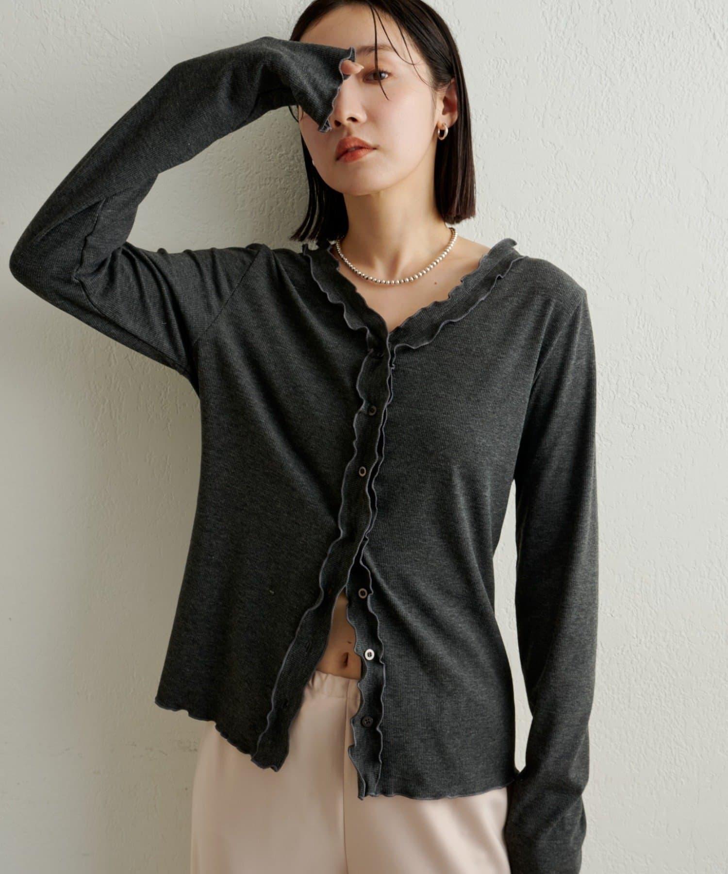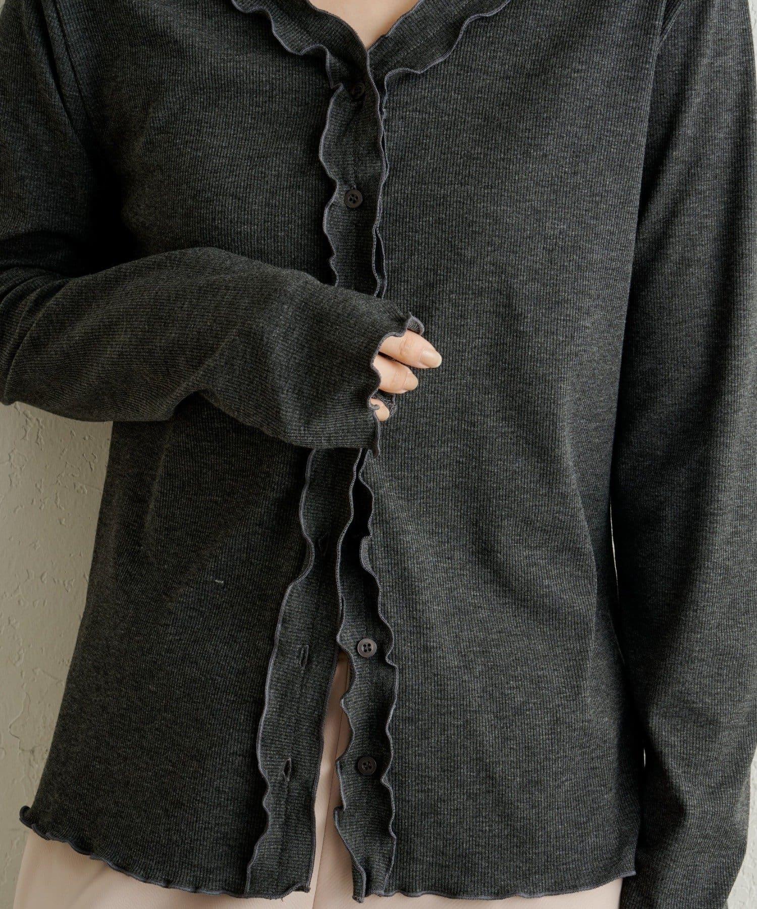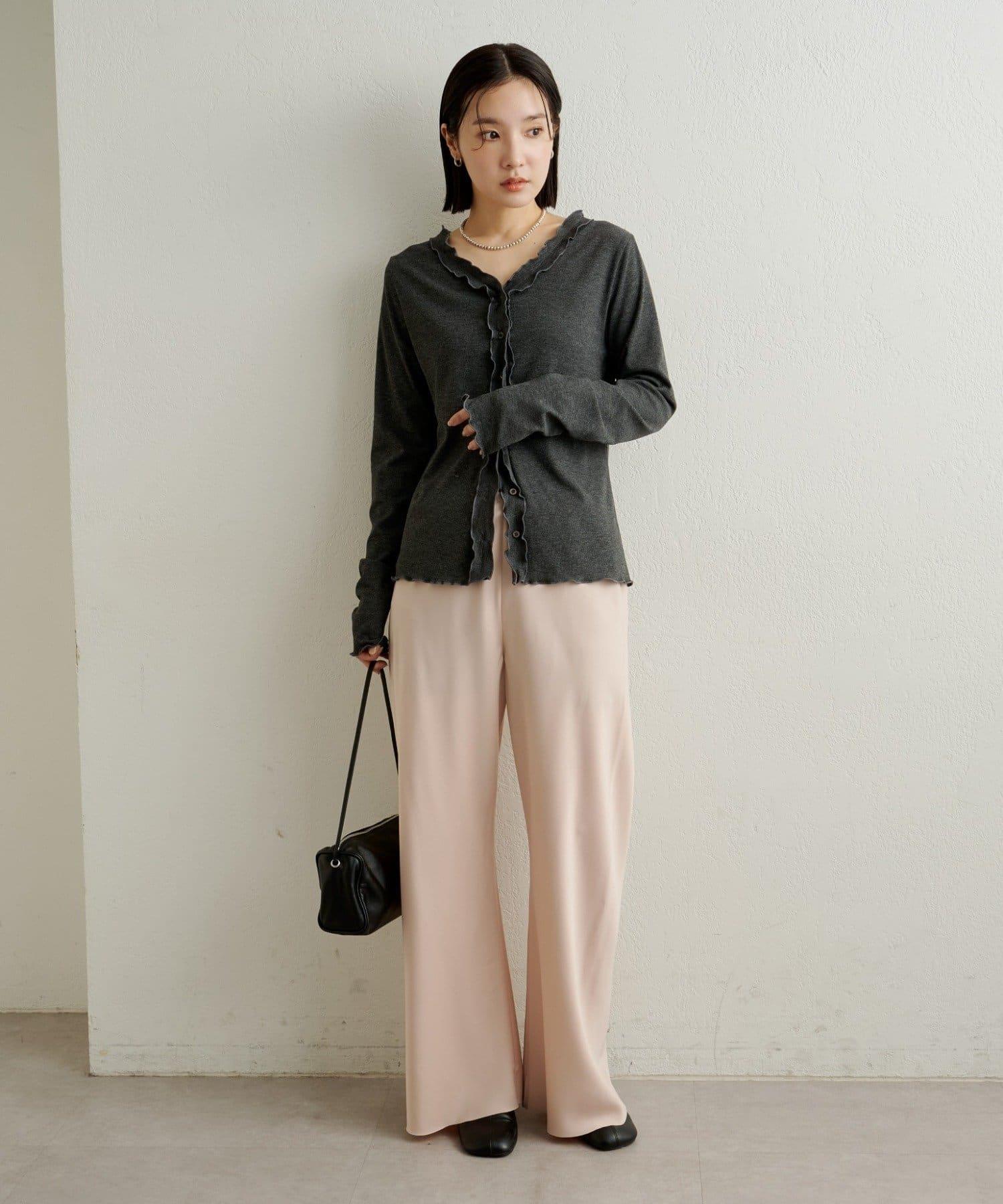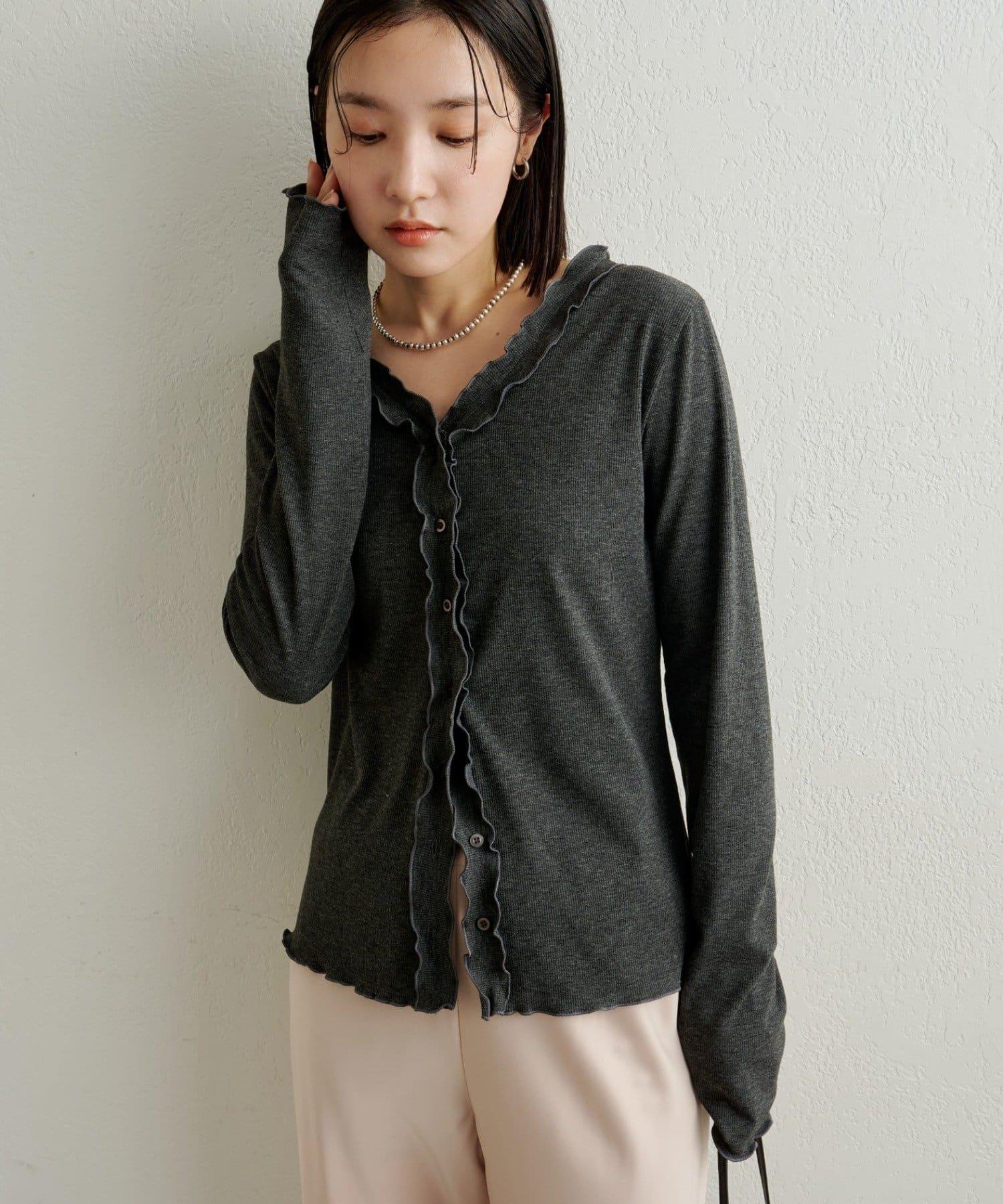 荷葉邊羅紋開衫,微妙的荷葉邊讓成人倍感可愛。