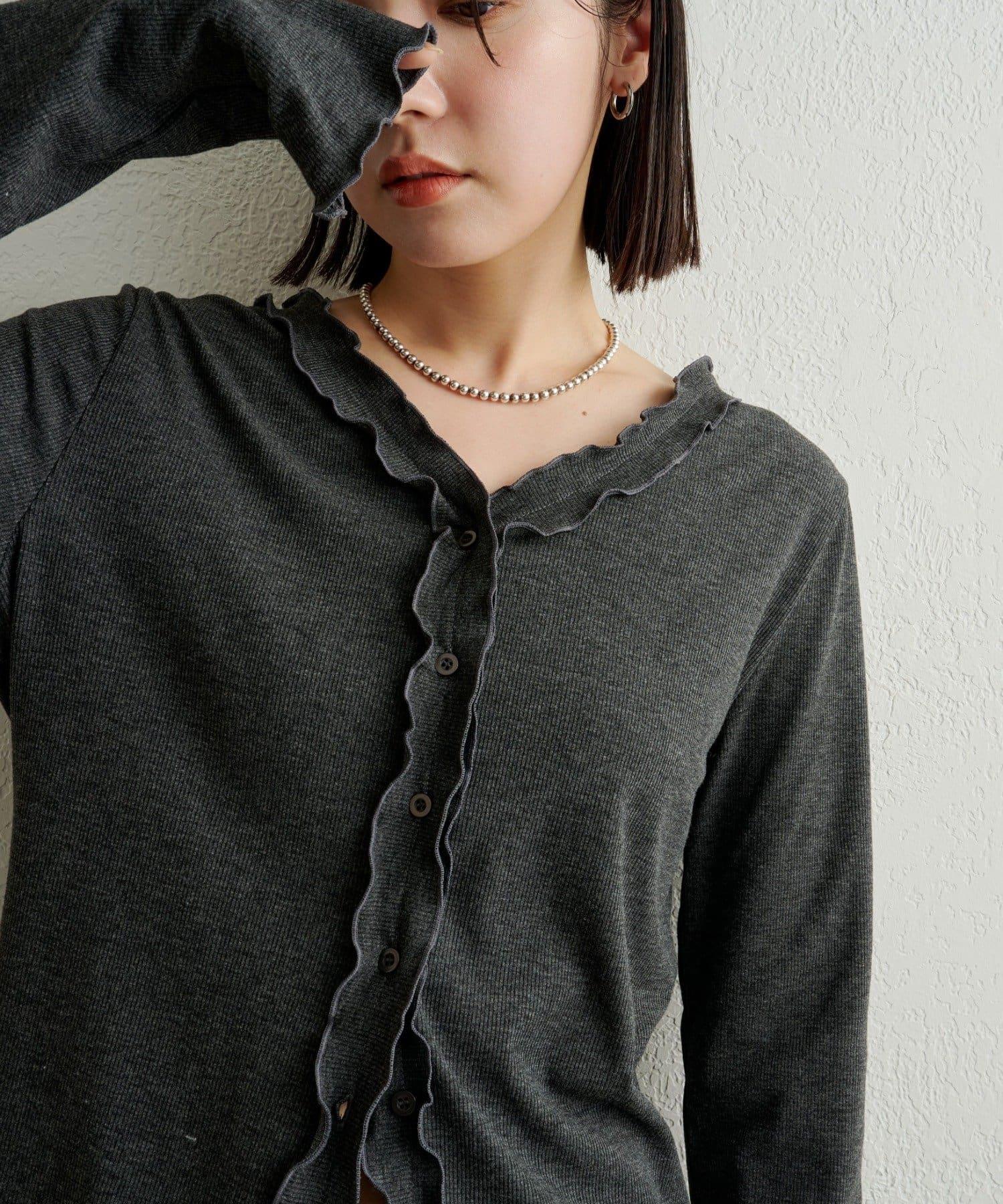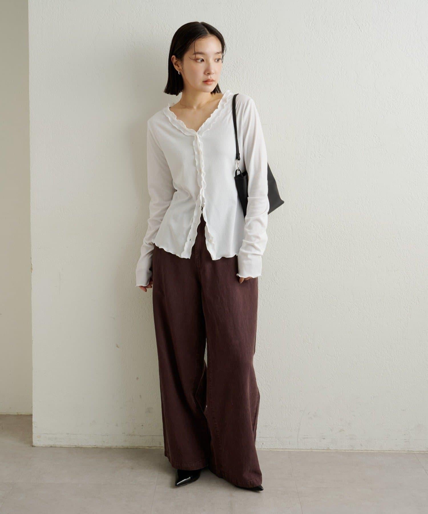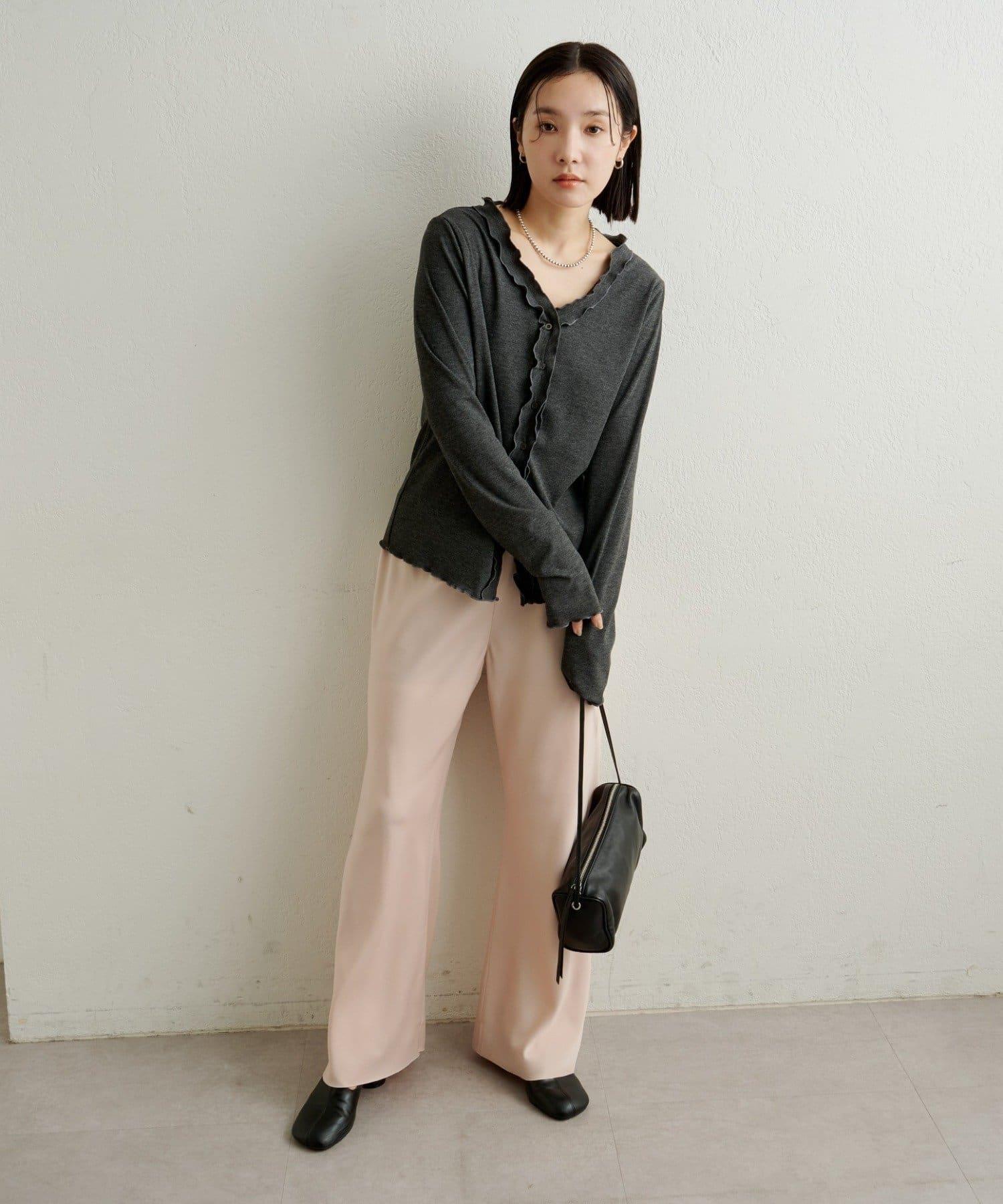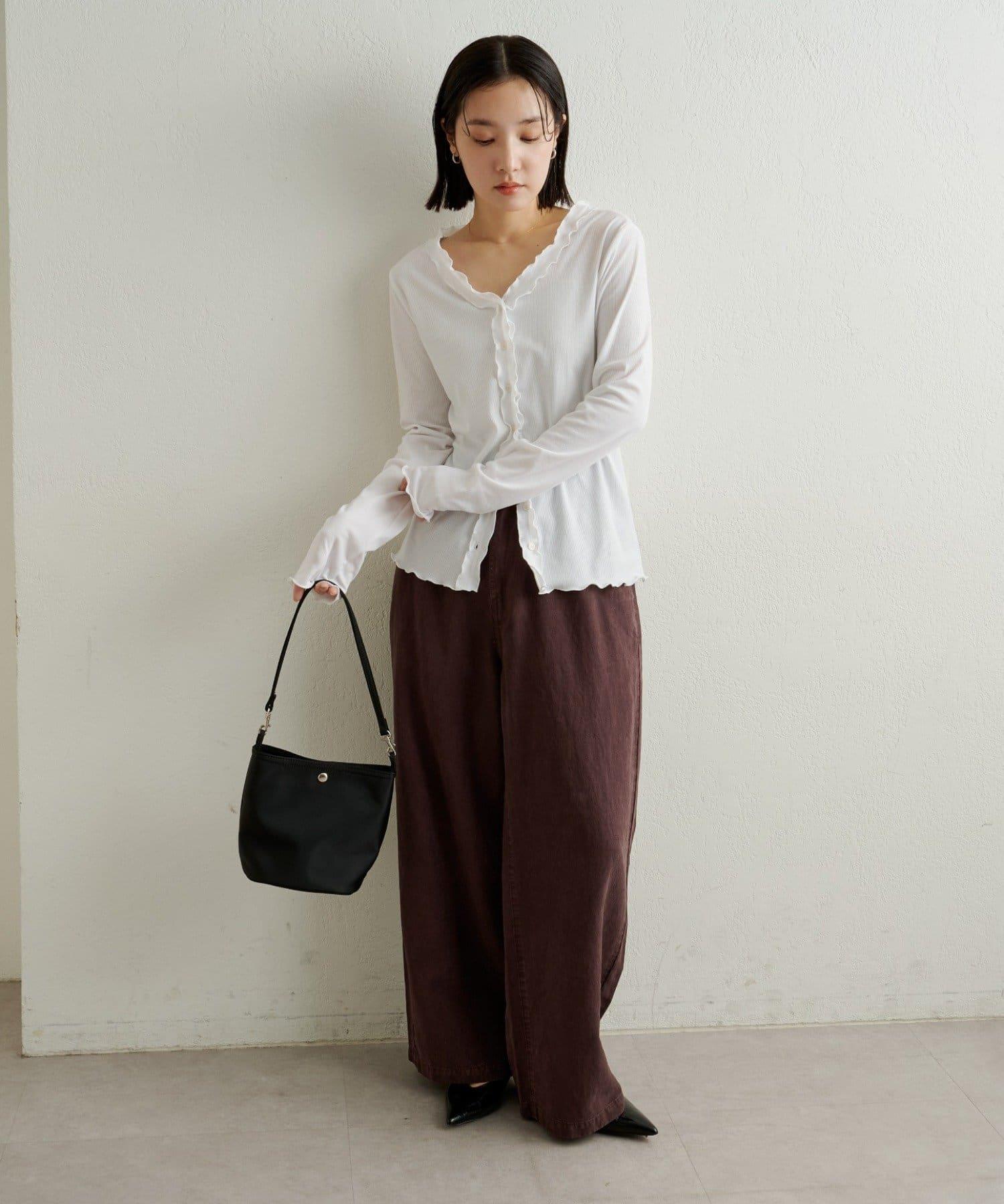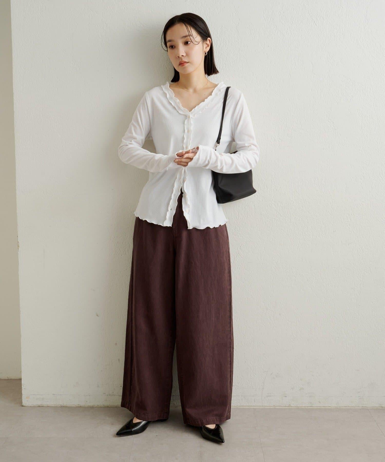 荷葉邊羅紋開衫,微妙的荷葉邊讓成人倍感可愛。