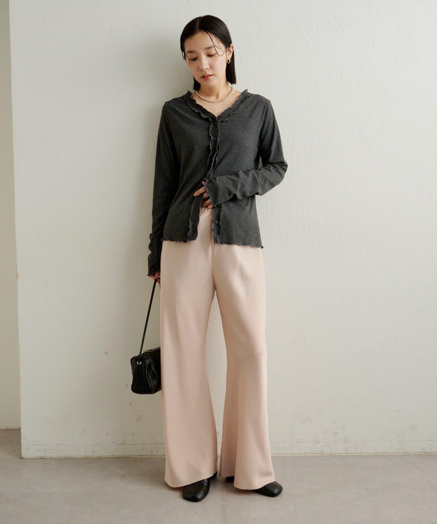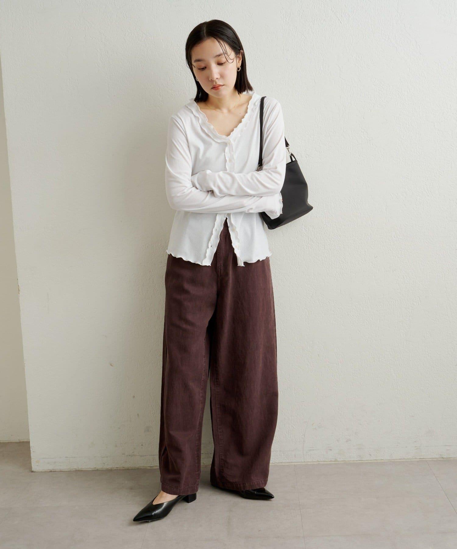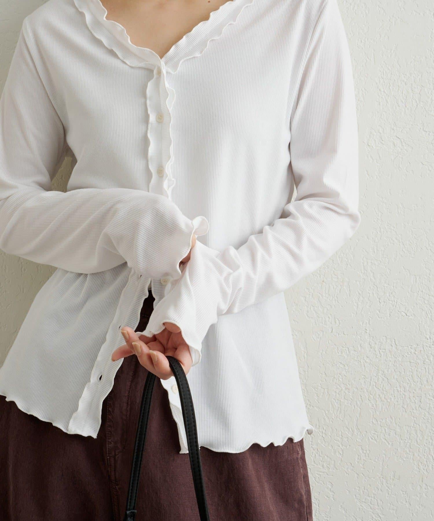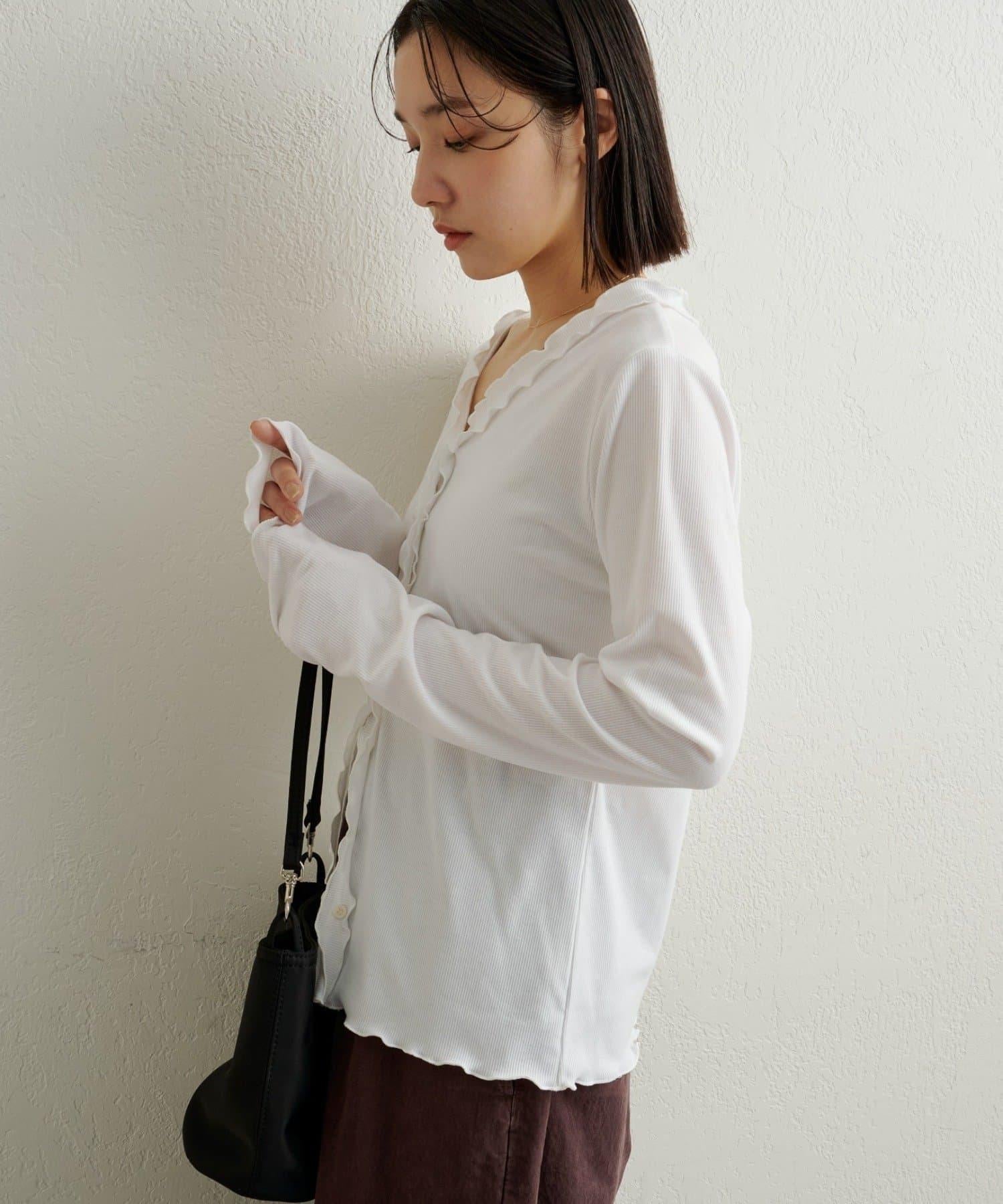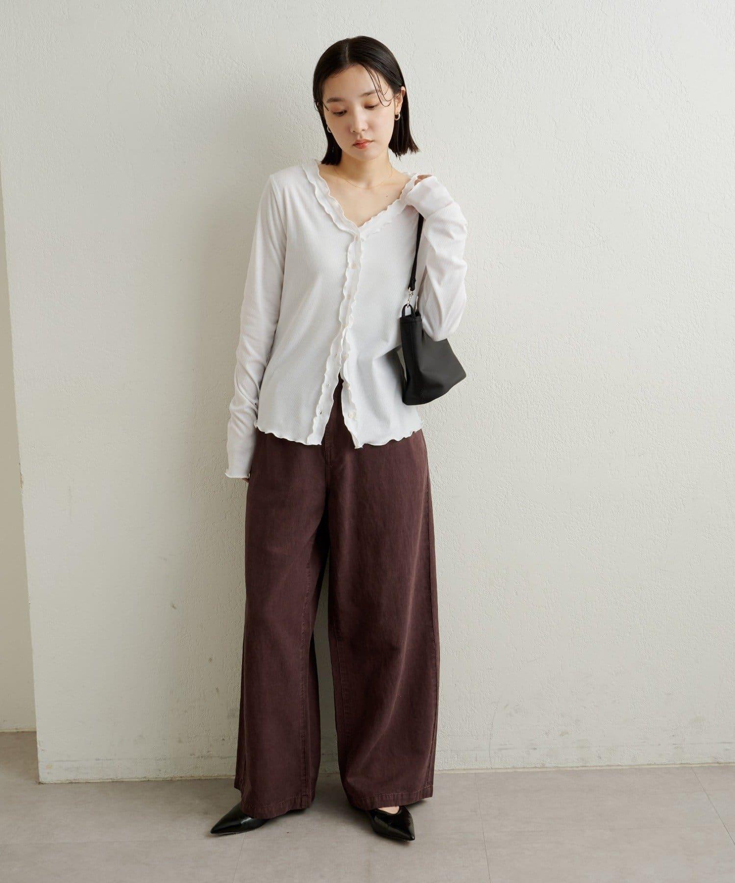 荷葉邊羅紋開衫,微妙的荷葉邊讓成人倍感可愛。