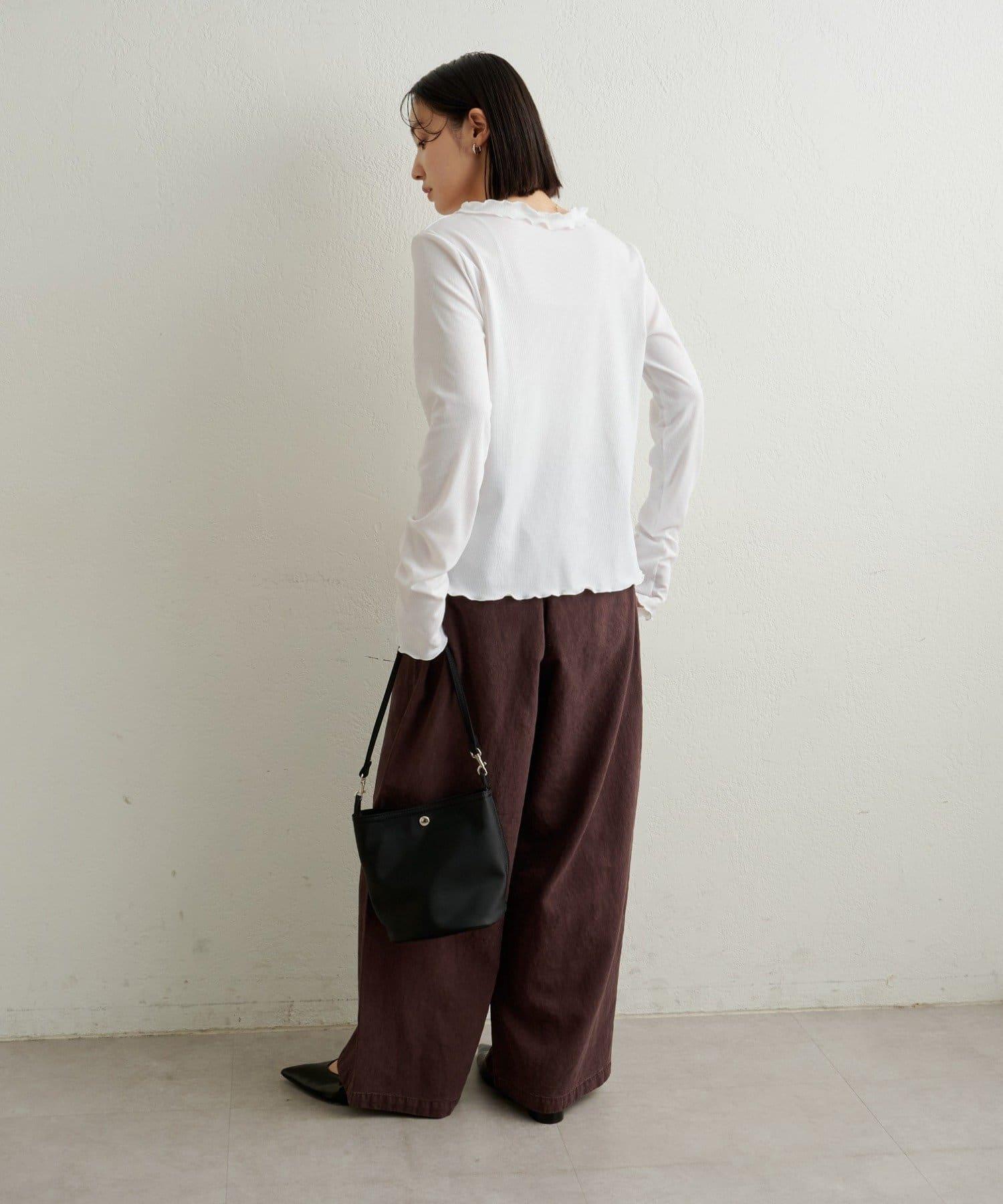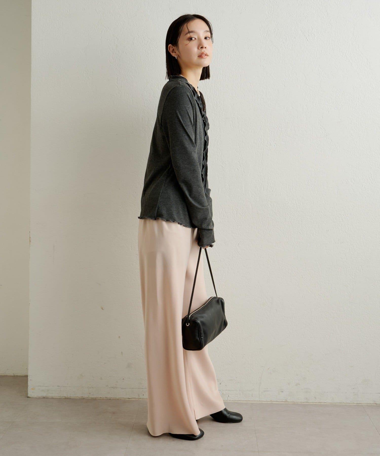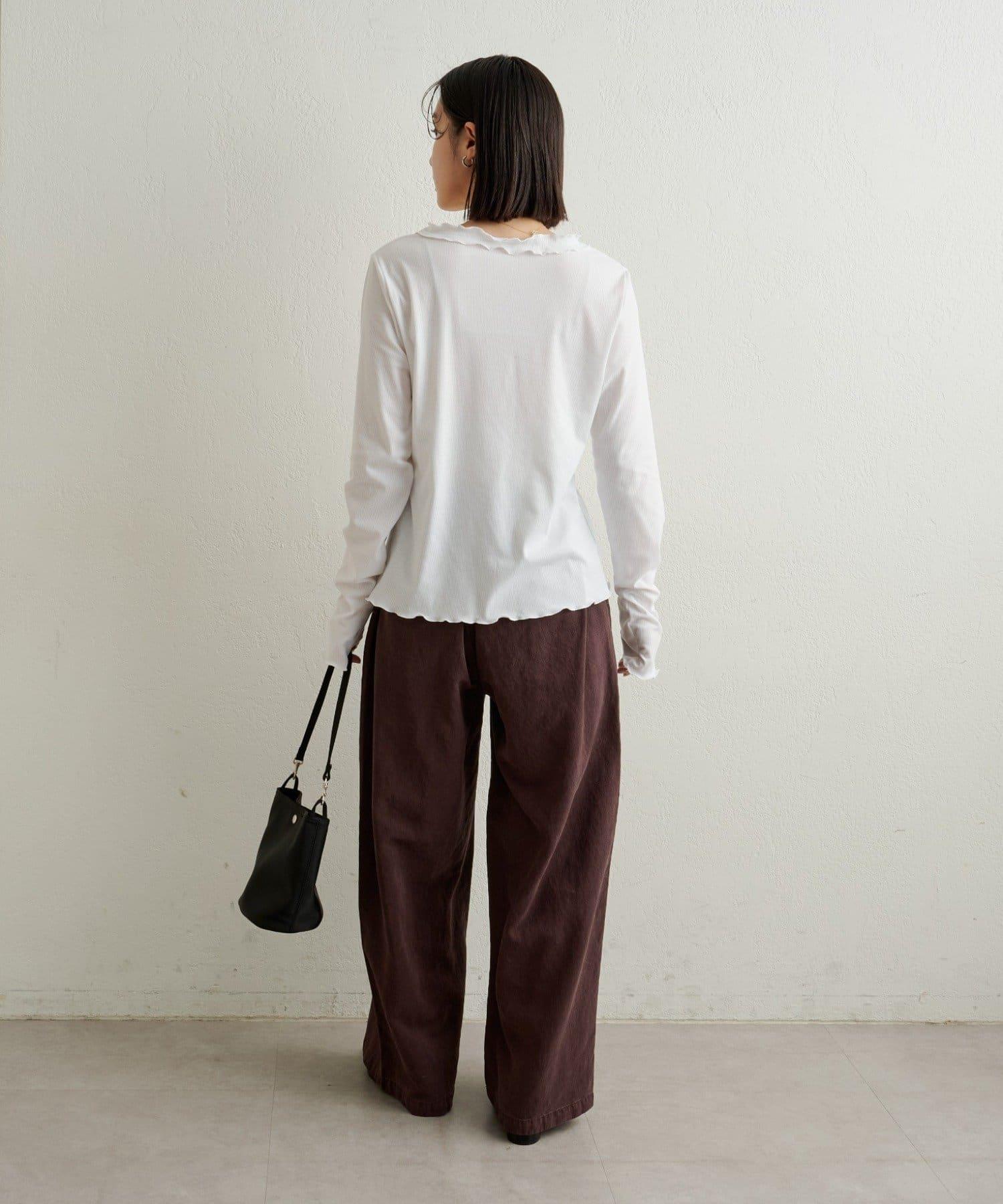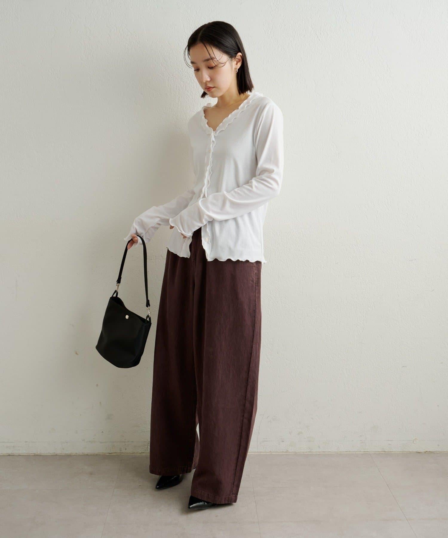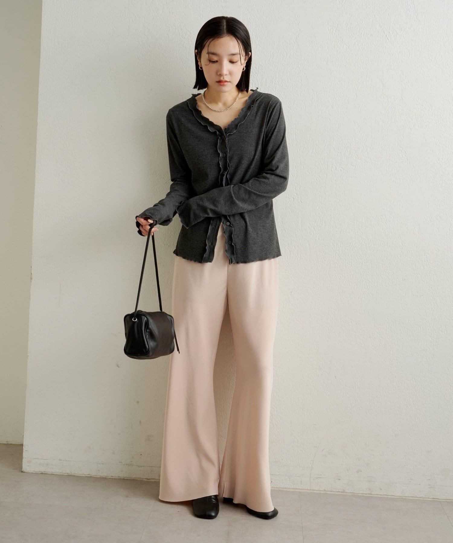 荷葉邊羅紋開衫,微妙的荷葉邊讓成人倍感可愛。