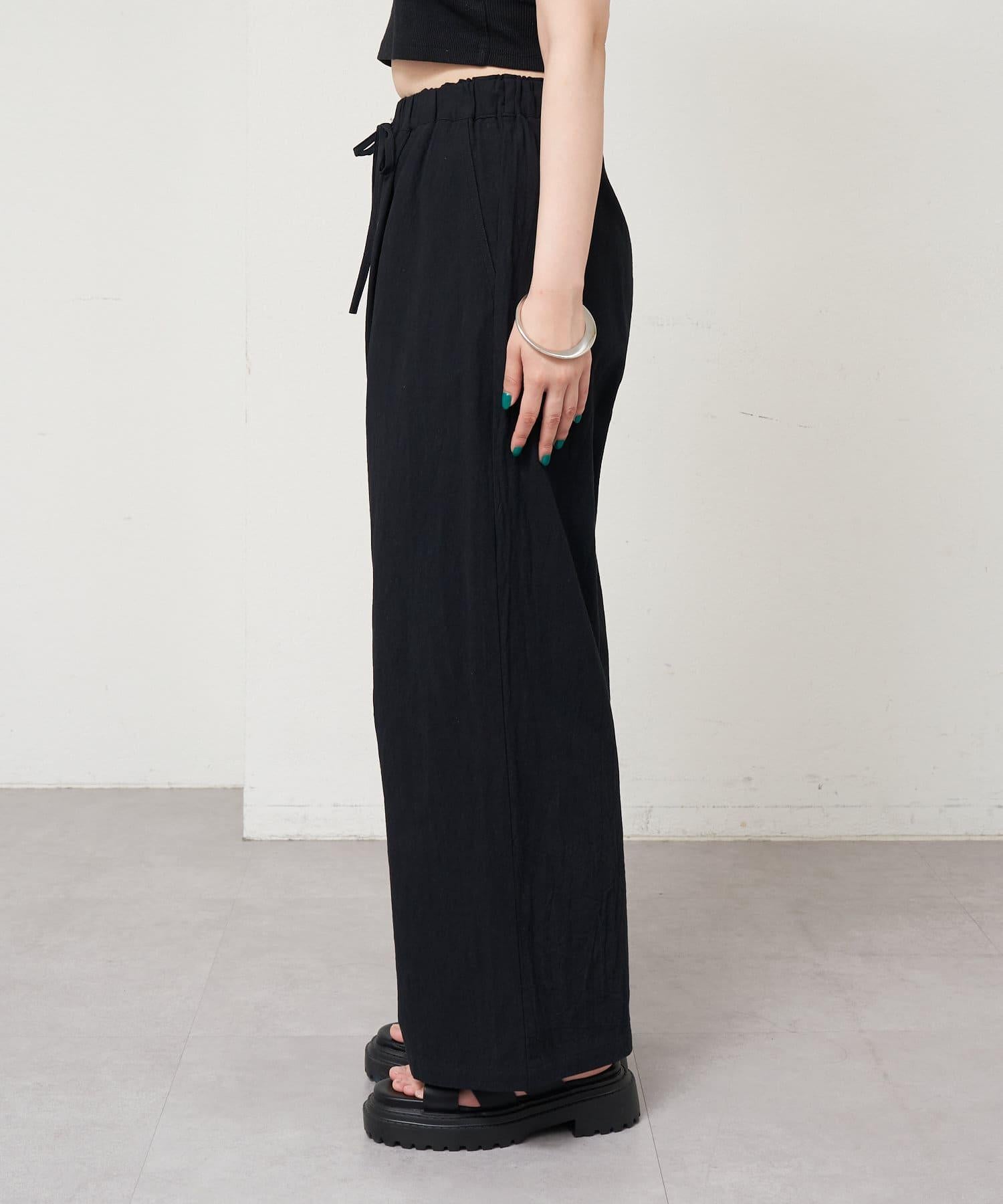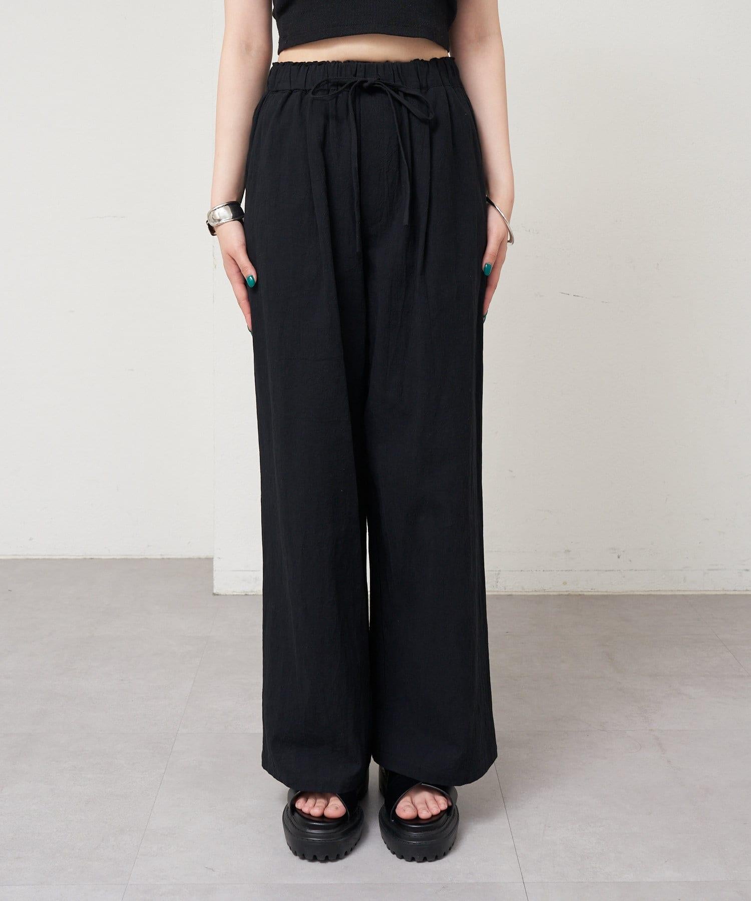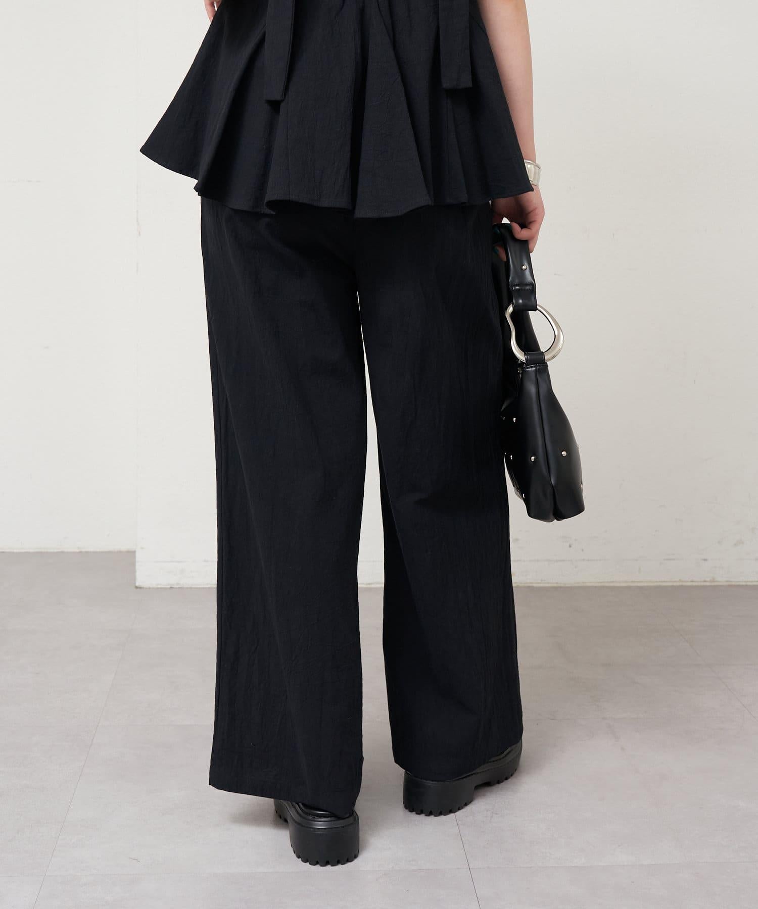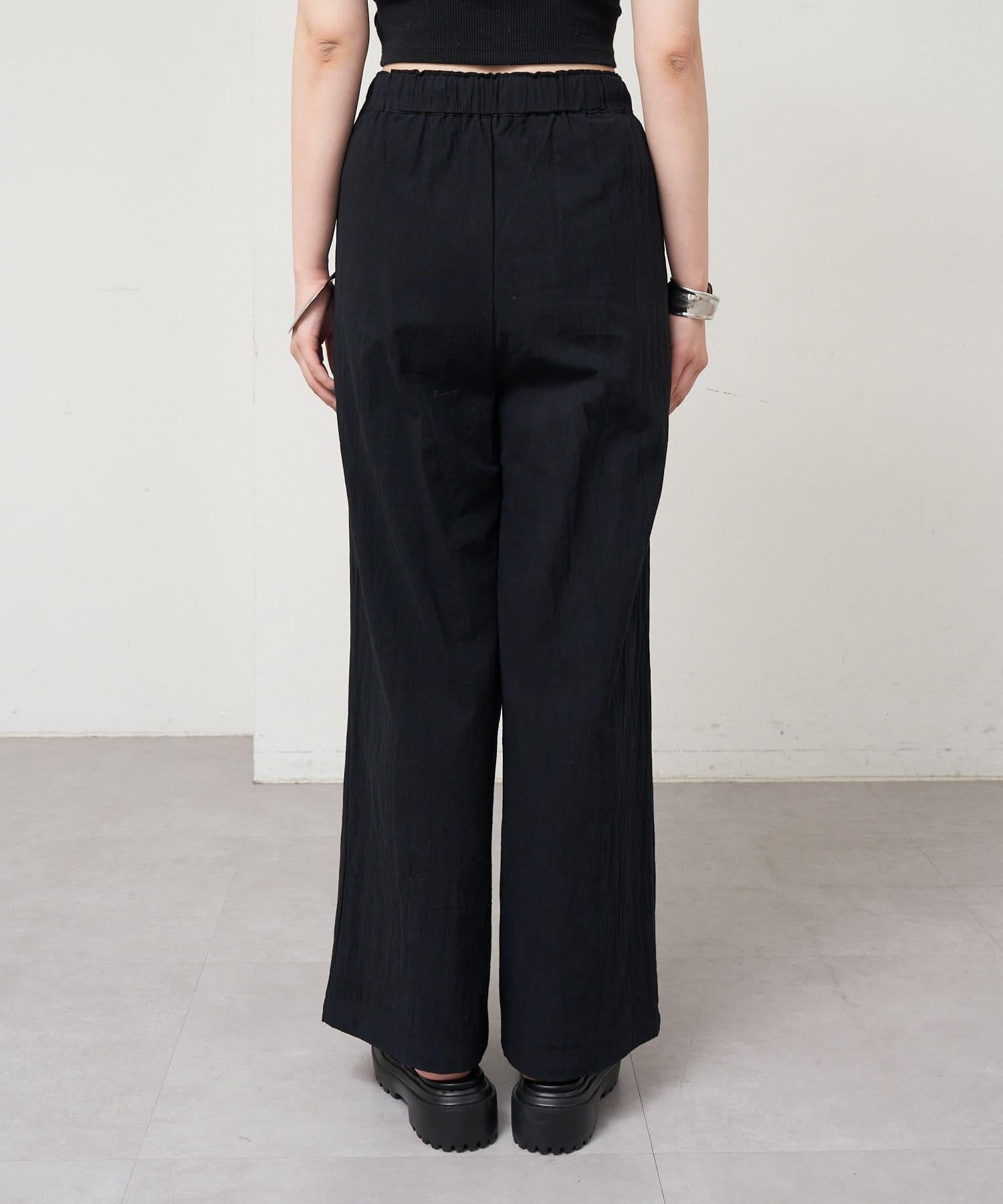 長褲寬大,可寬鬆穿著。腰部也有鬆緊設計,穿著毫無壓力。