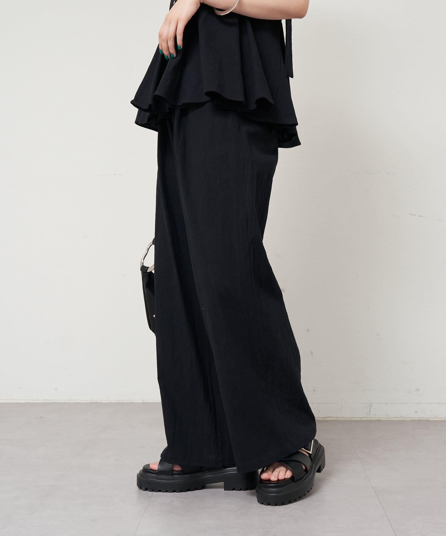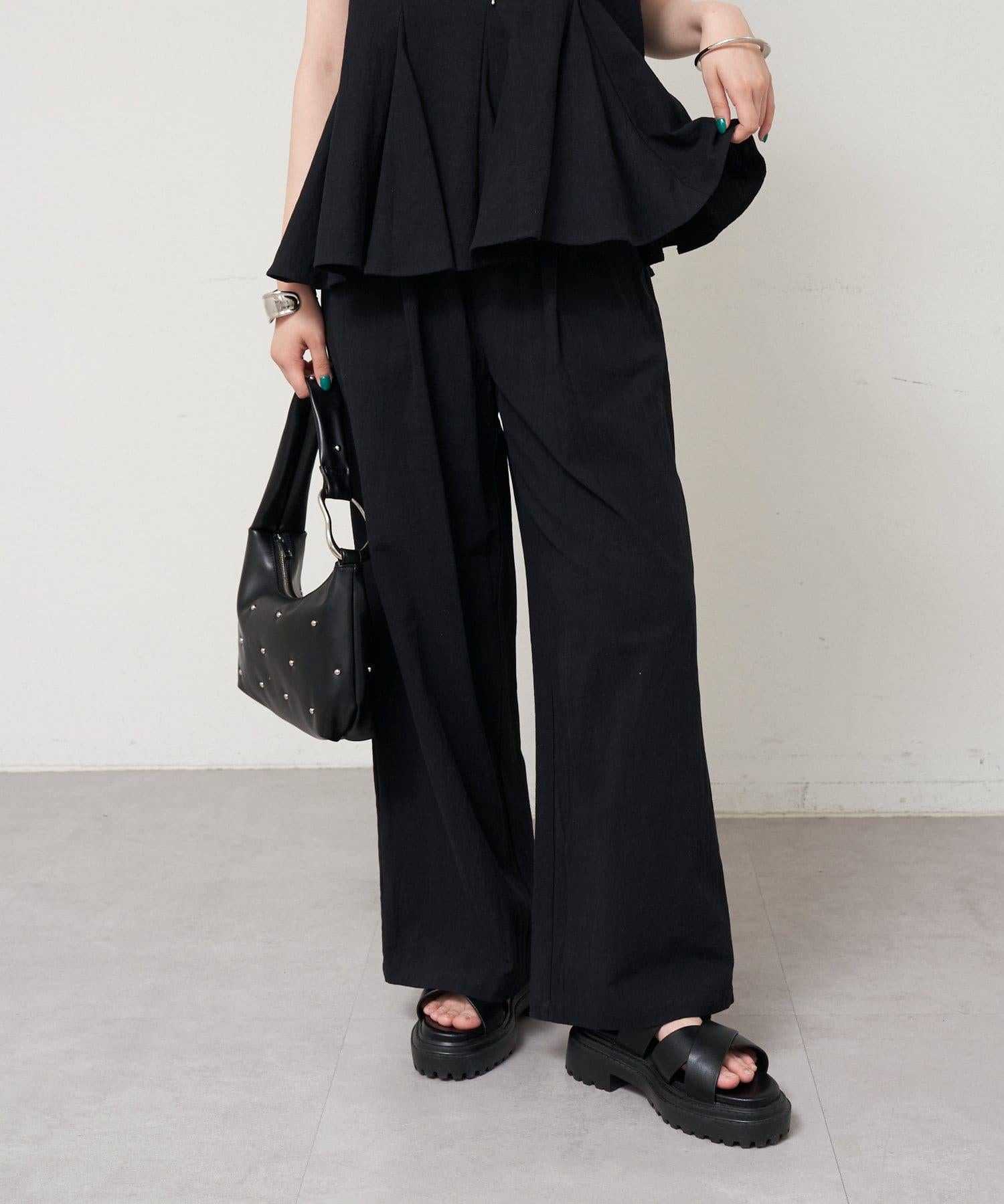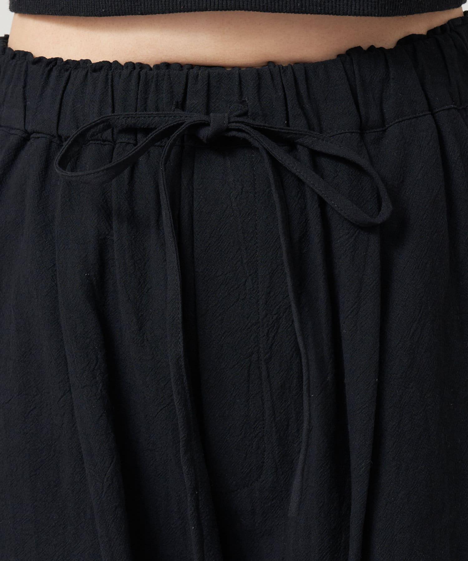 長褲寬大,可寬鬆穿著。腰部也有鬆緊設計,穿著毫無壓力。