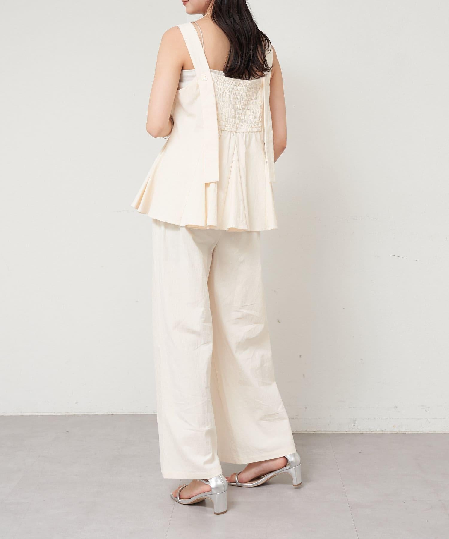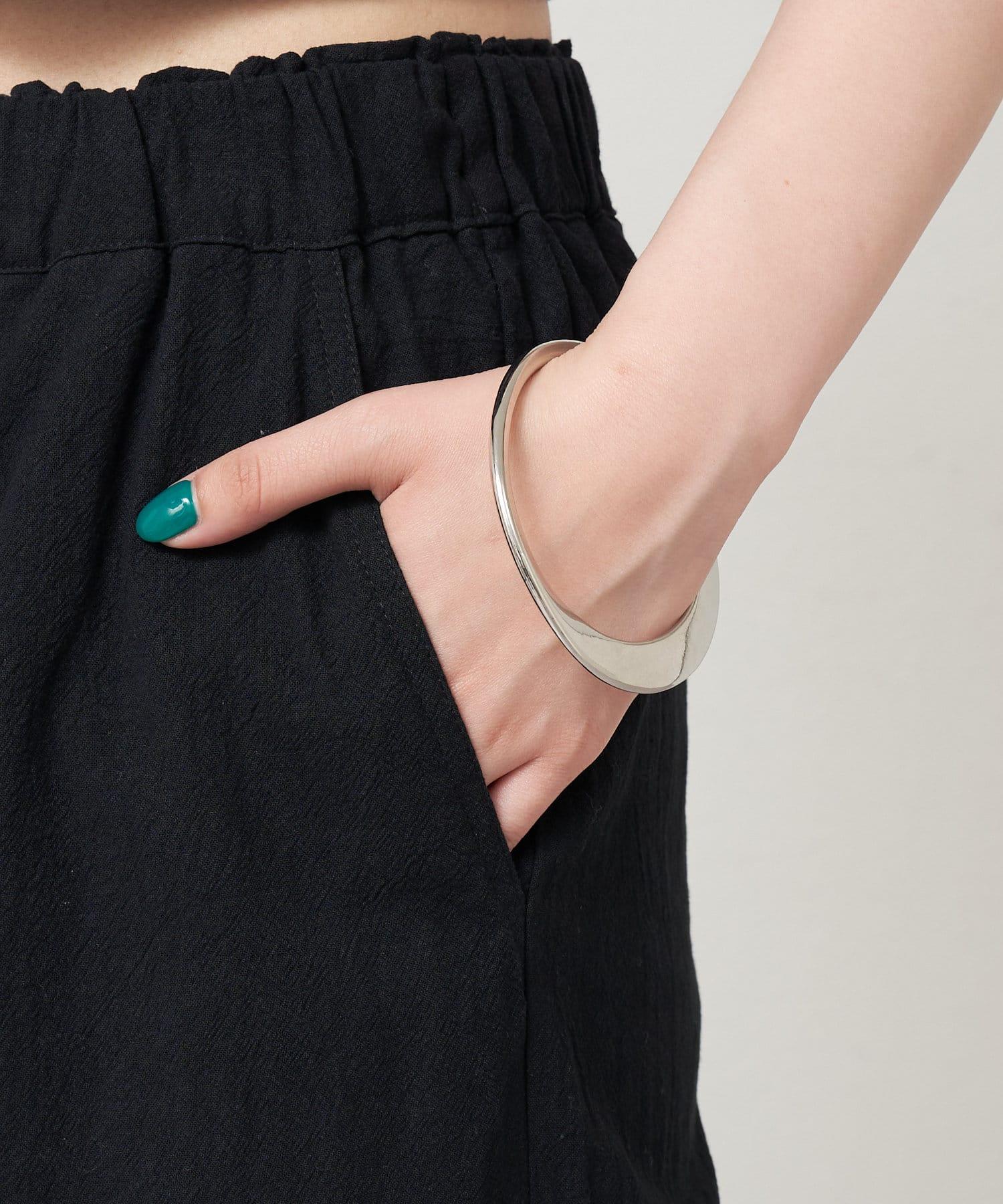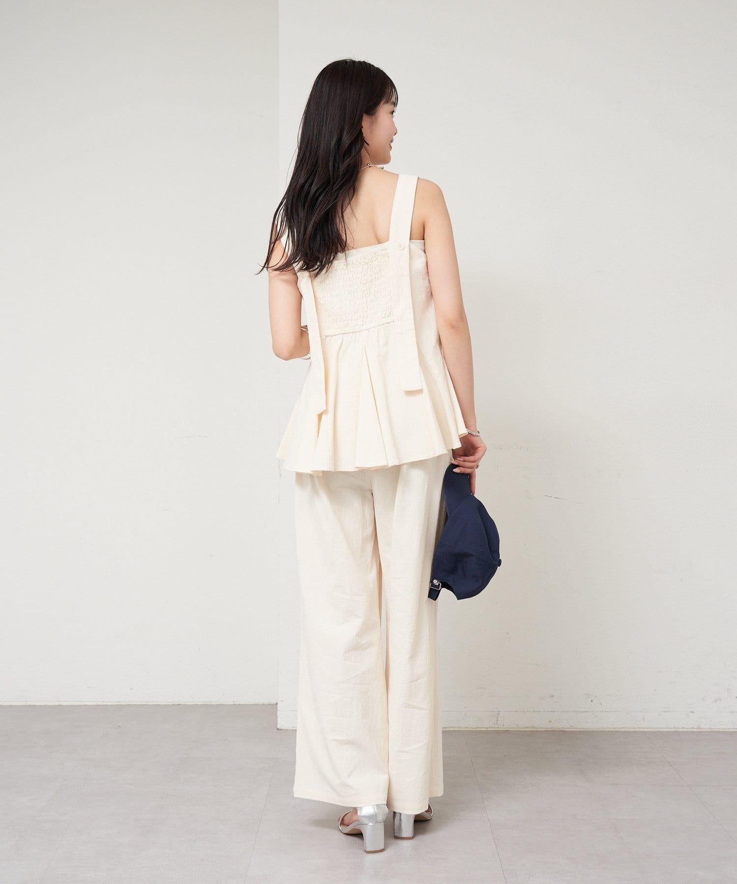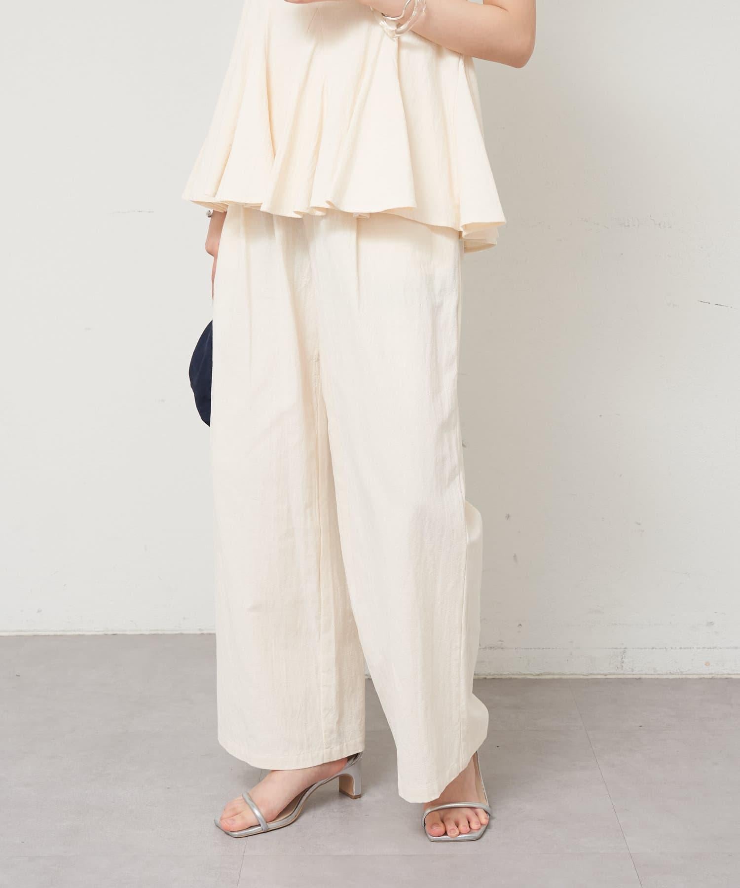長褲寬大,可寬鬆穿著。腰部也有鬆緊設計,穿著毫無壓力。