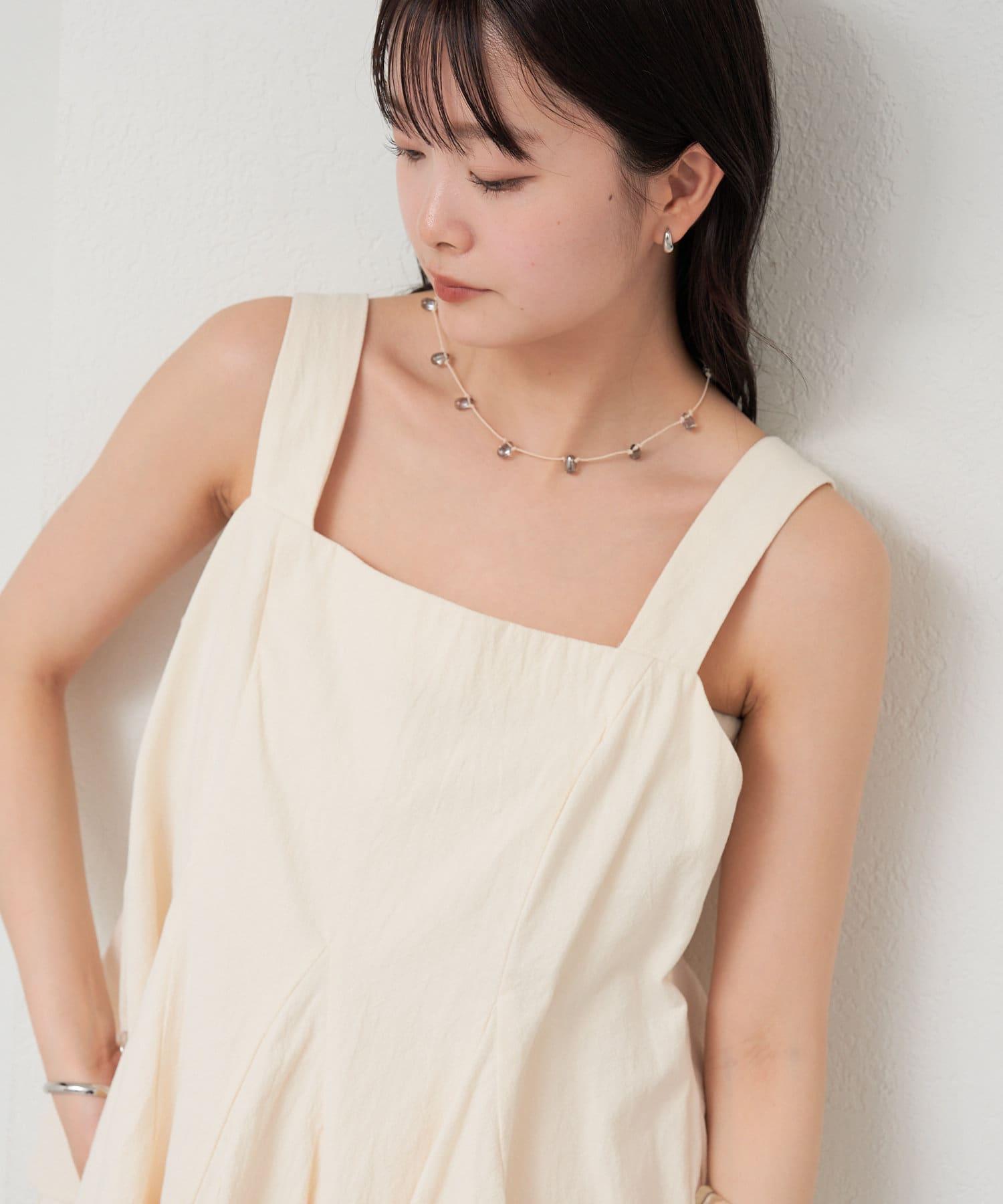 半身裙的肩帶設計較粗,因此手臂看起來更纖細。