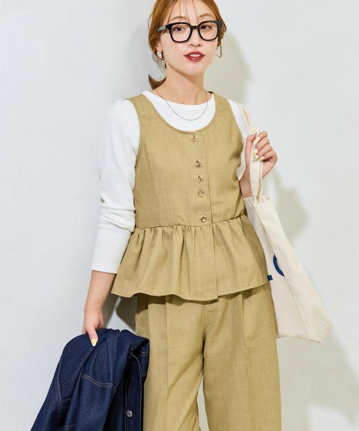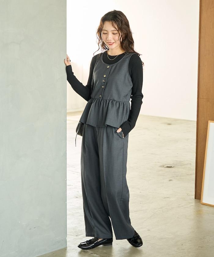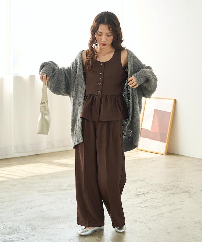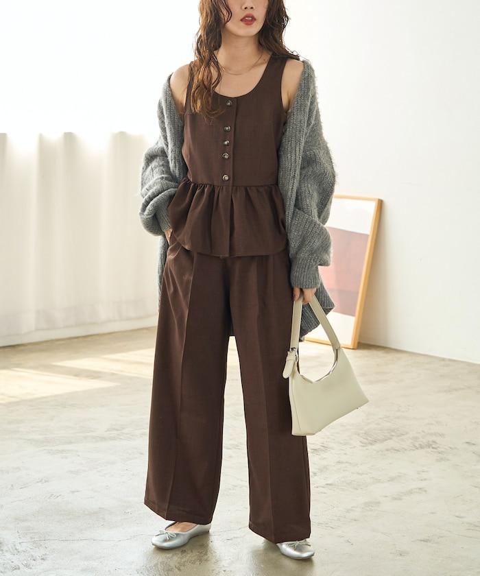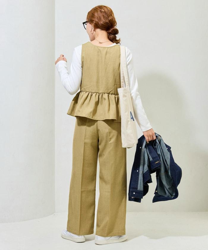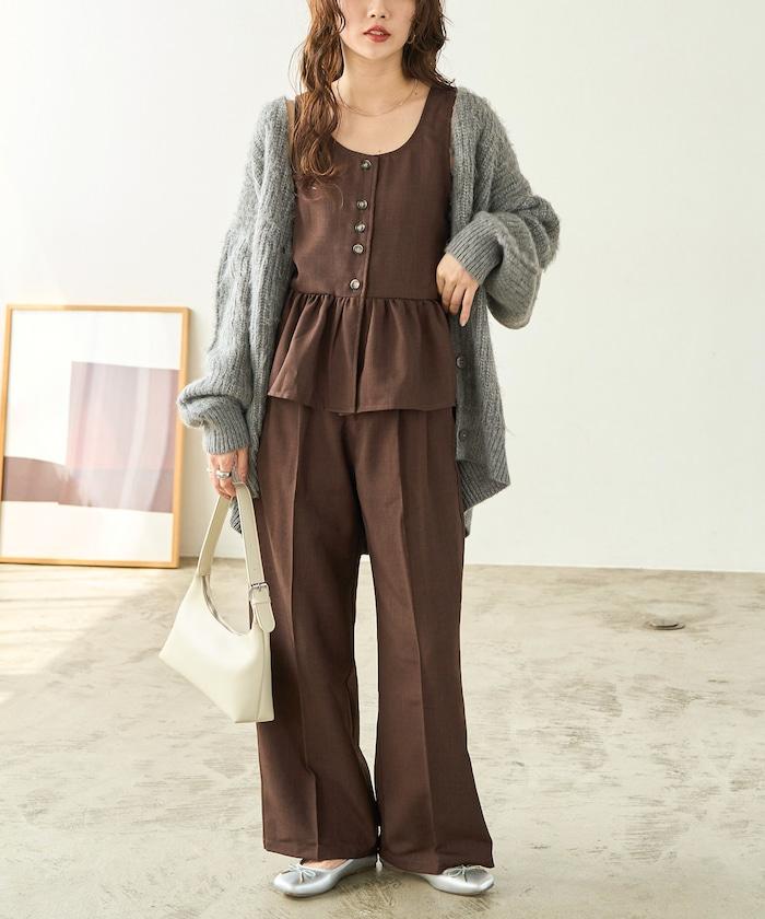 荷葉邊背心長款上衣套裝(背心+褲子)