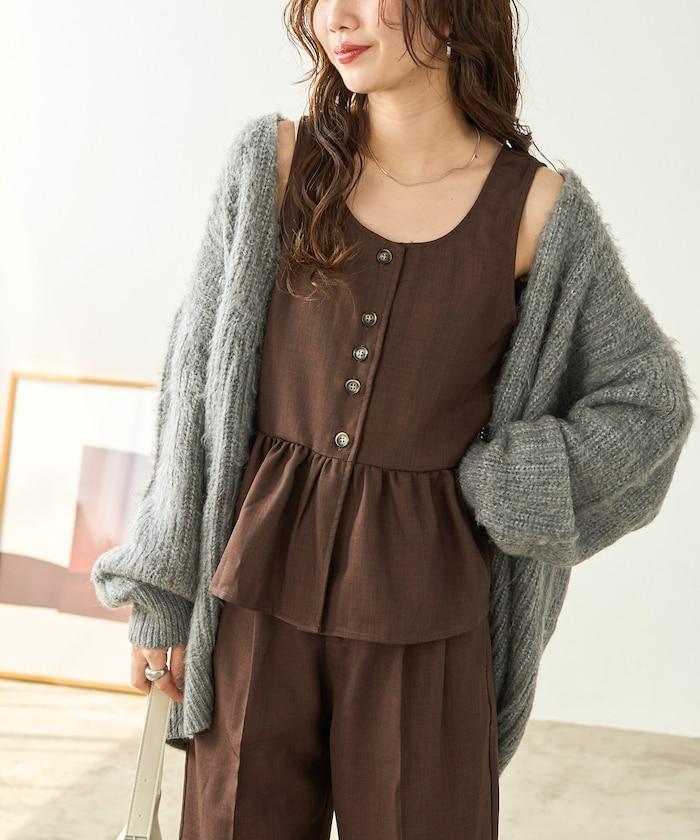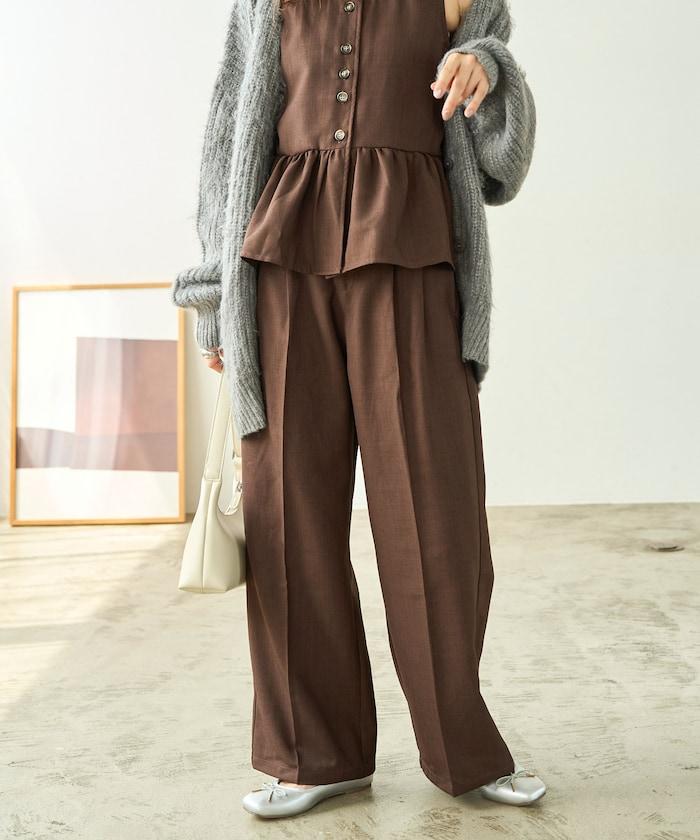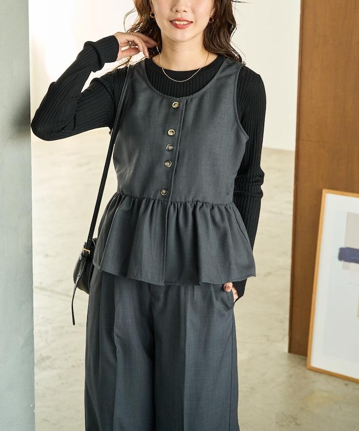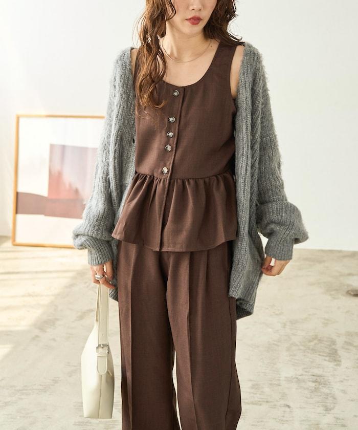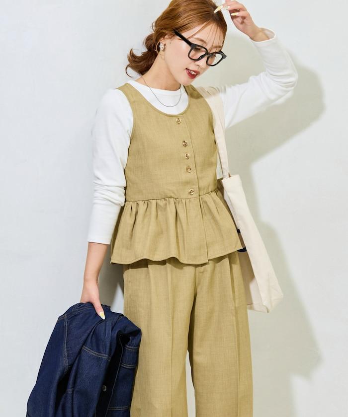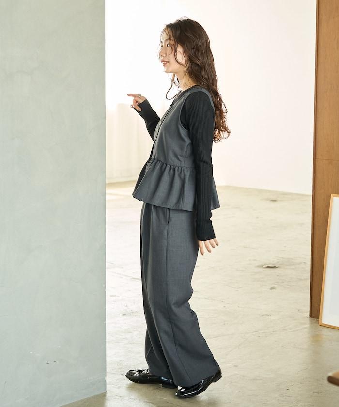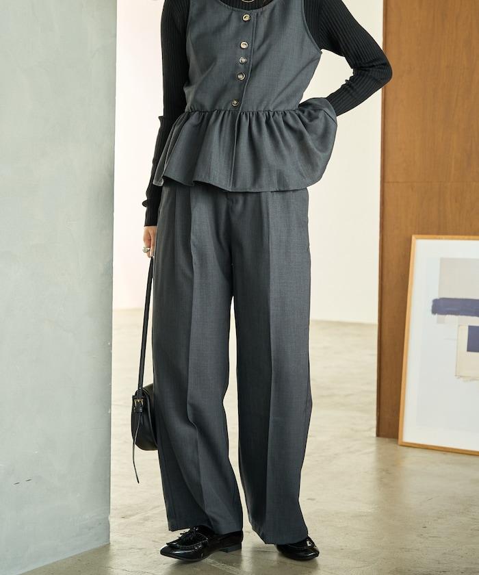 荷葉邊背心長款上衣套裝(背心+褲子)