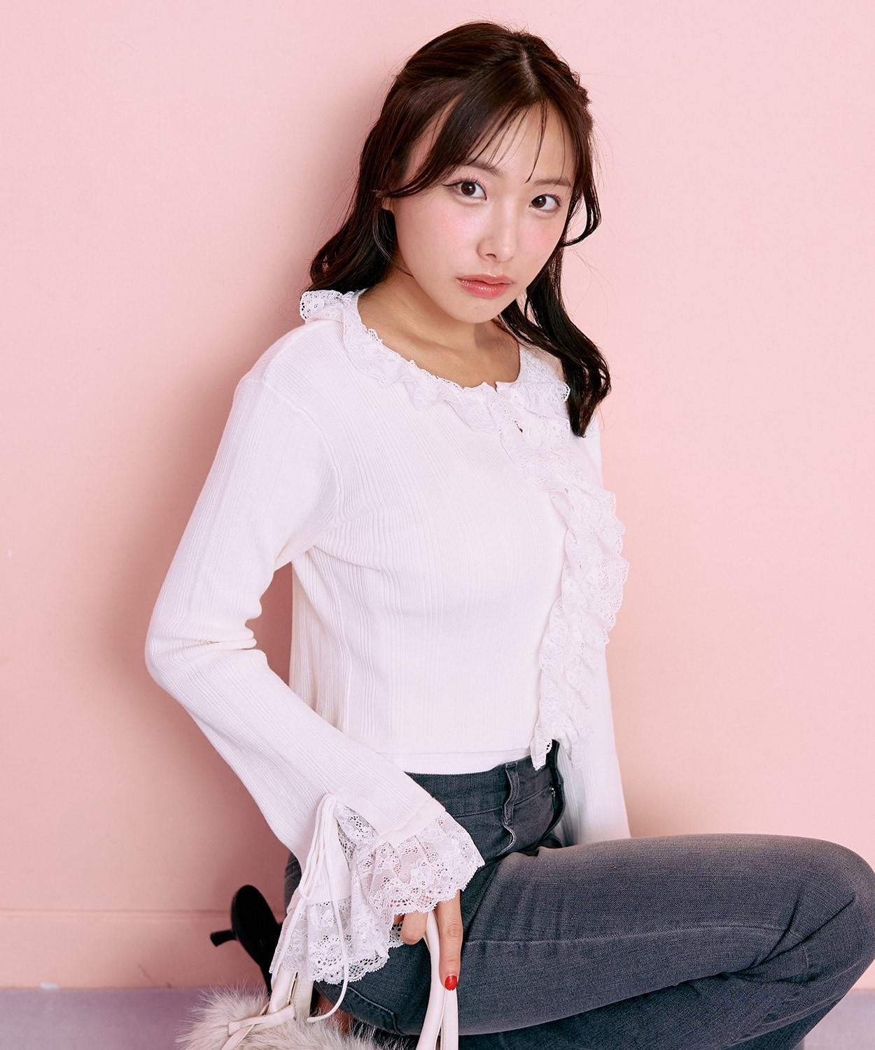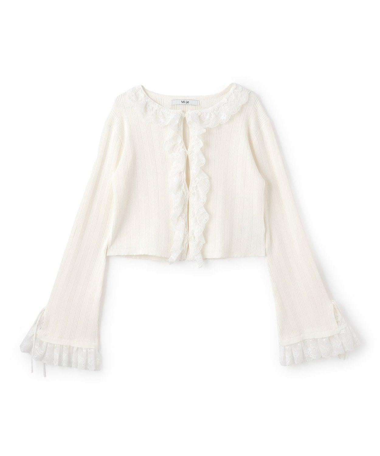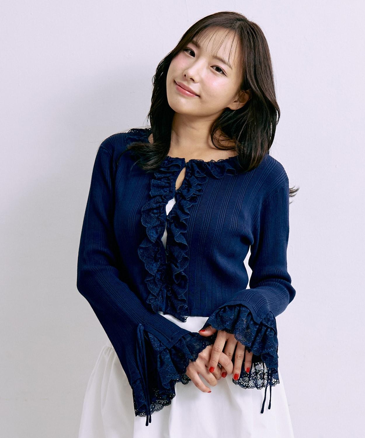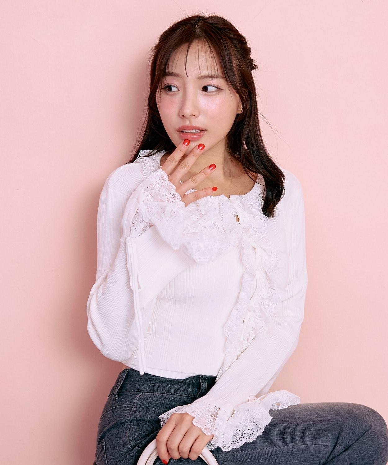 荷葉邊蕾絲針織開衫【韓國時尚】
