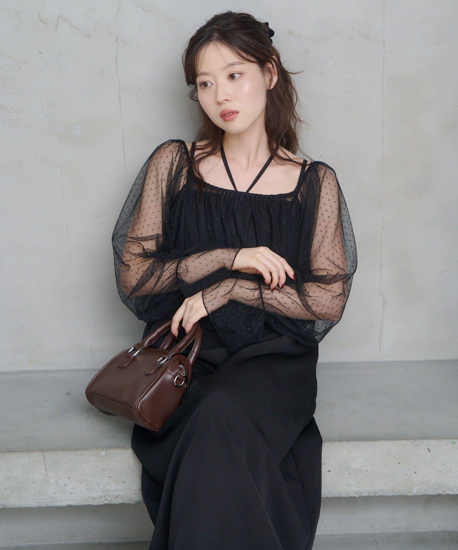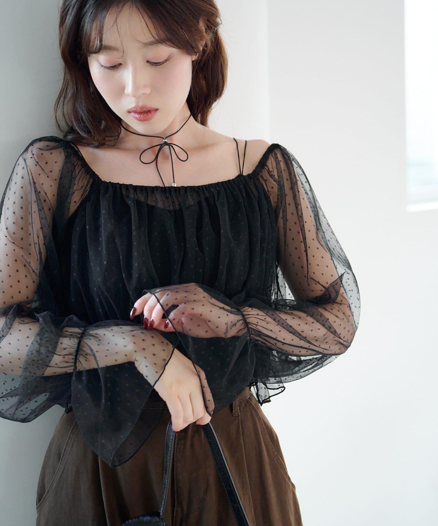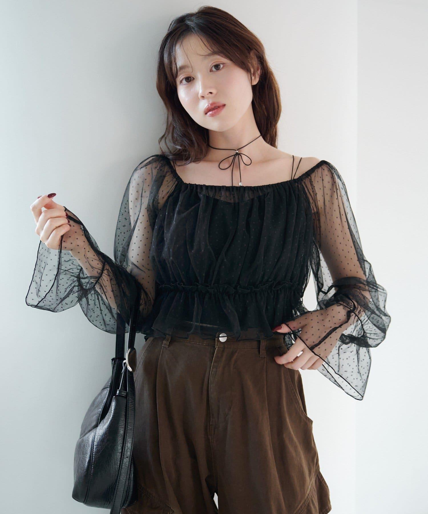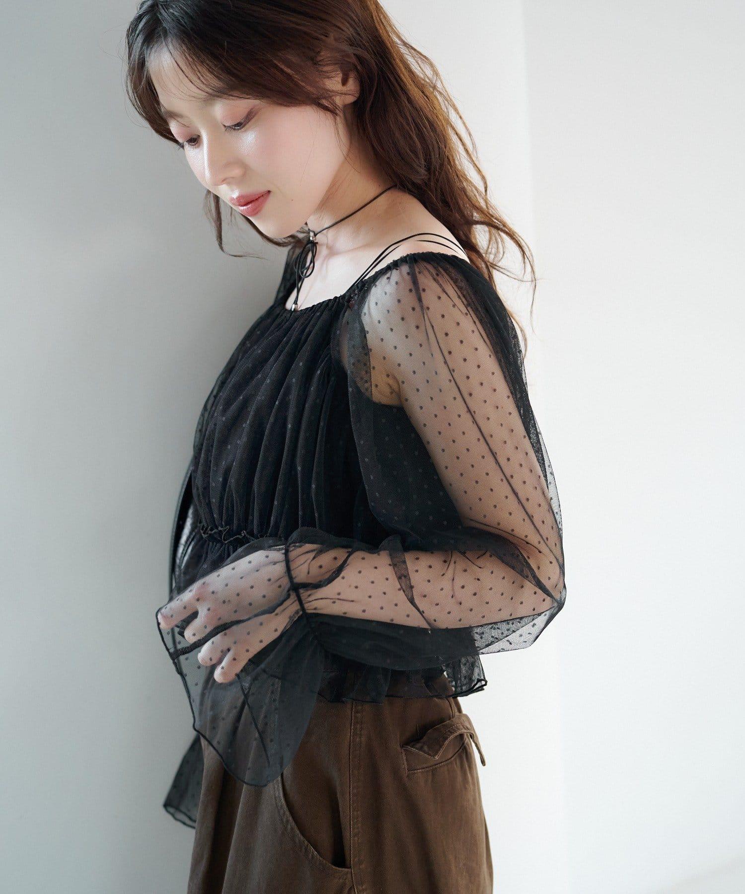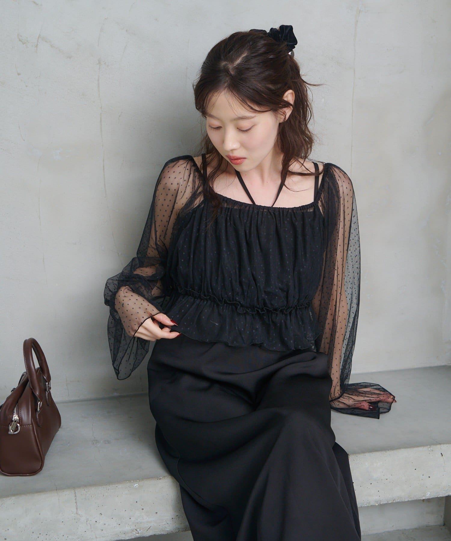 上衣由輕盈透明的薄紗製成。蓬鬆的袖子非常柔軟,增添了優雅的魅力。