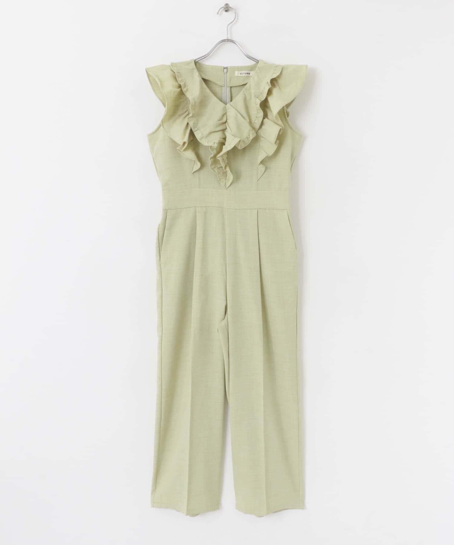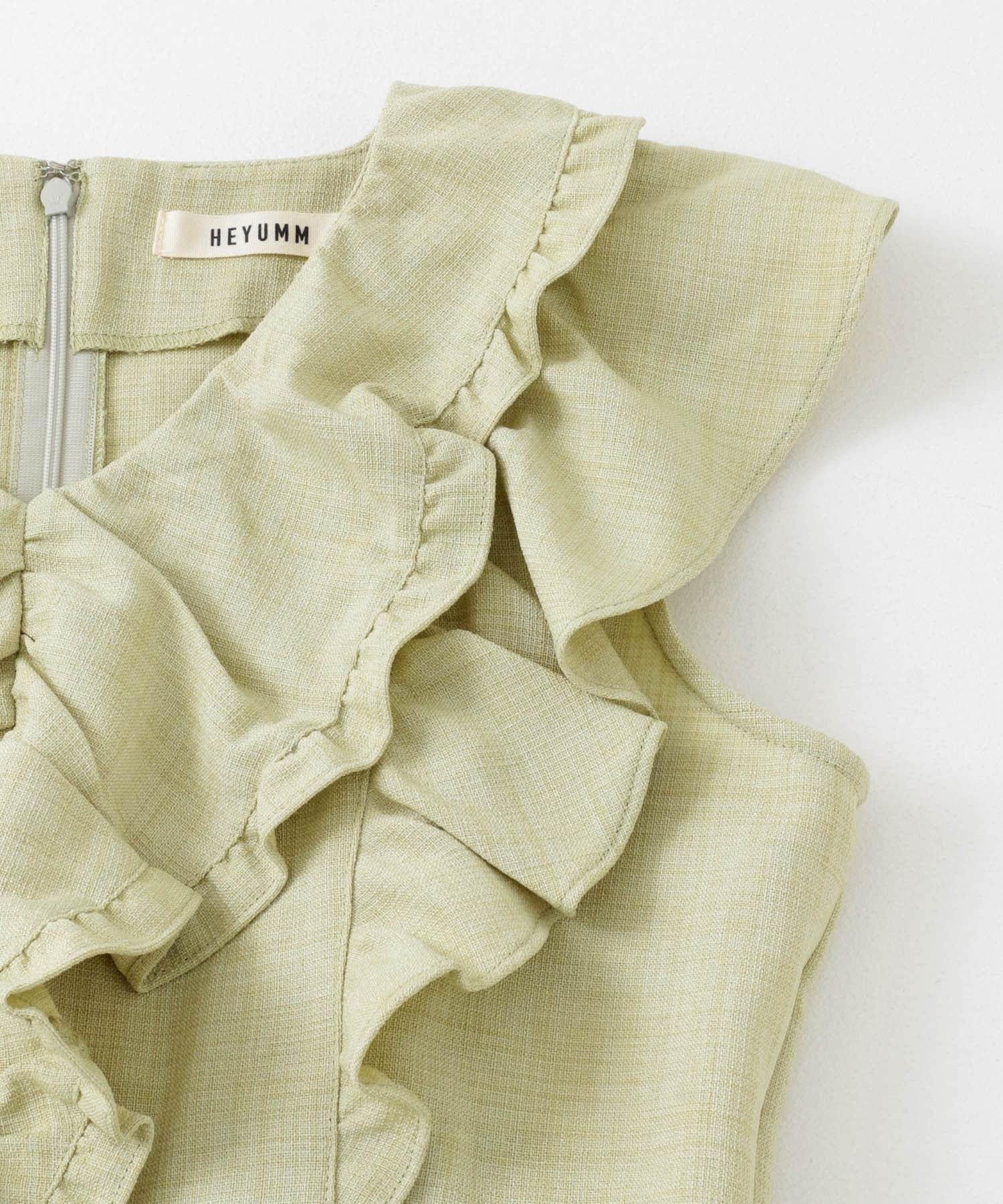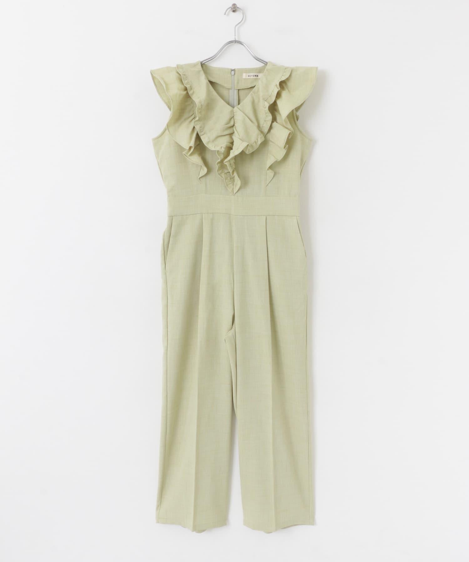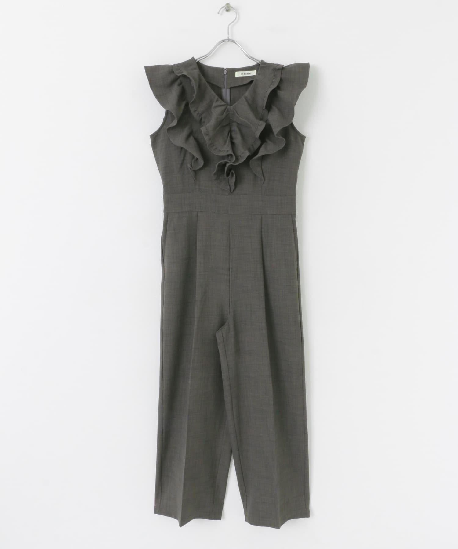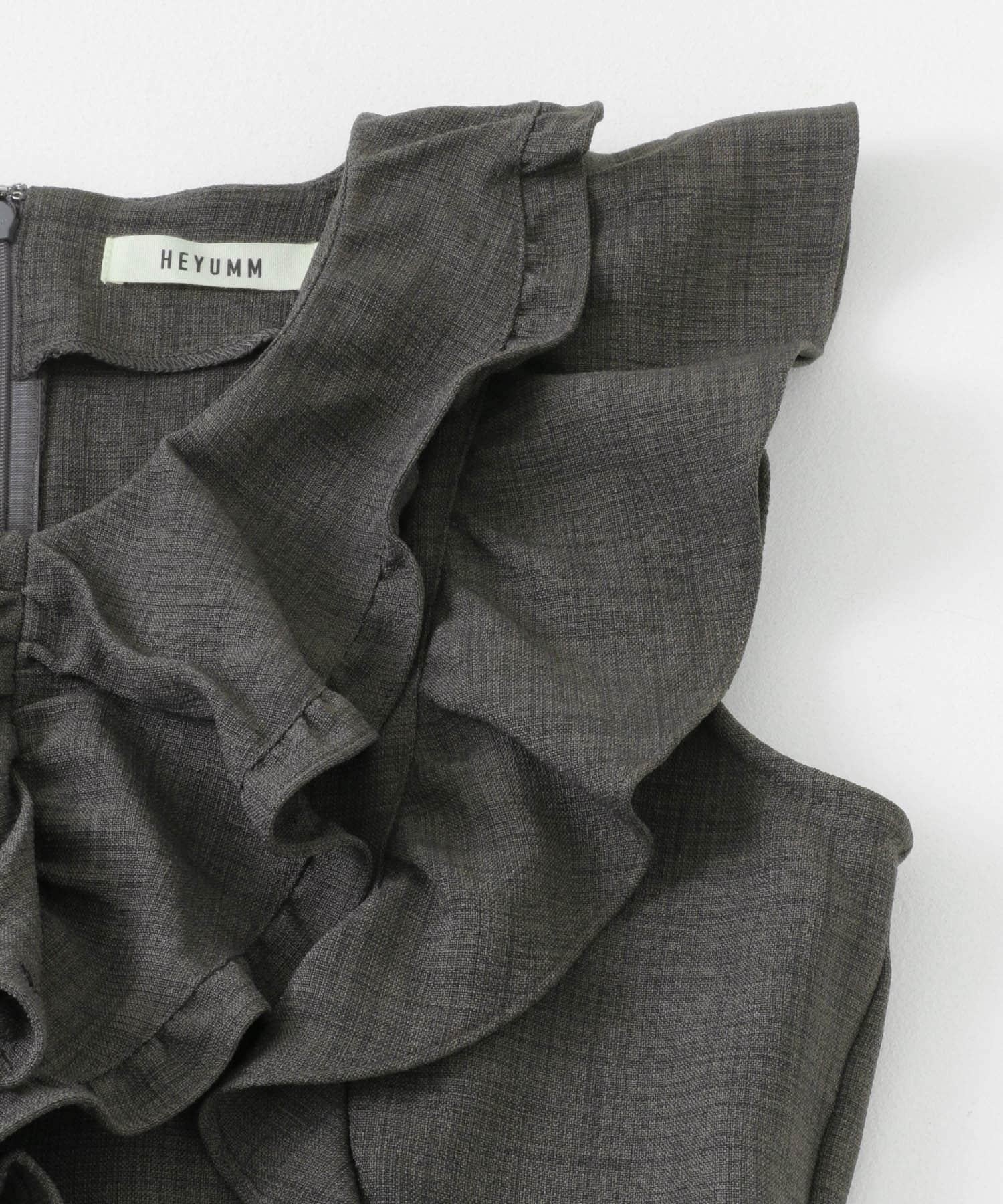 帶有大荷葉邊的連身裙非常吸引眼球。只需一件單品即可完成的連體單品。