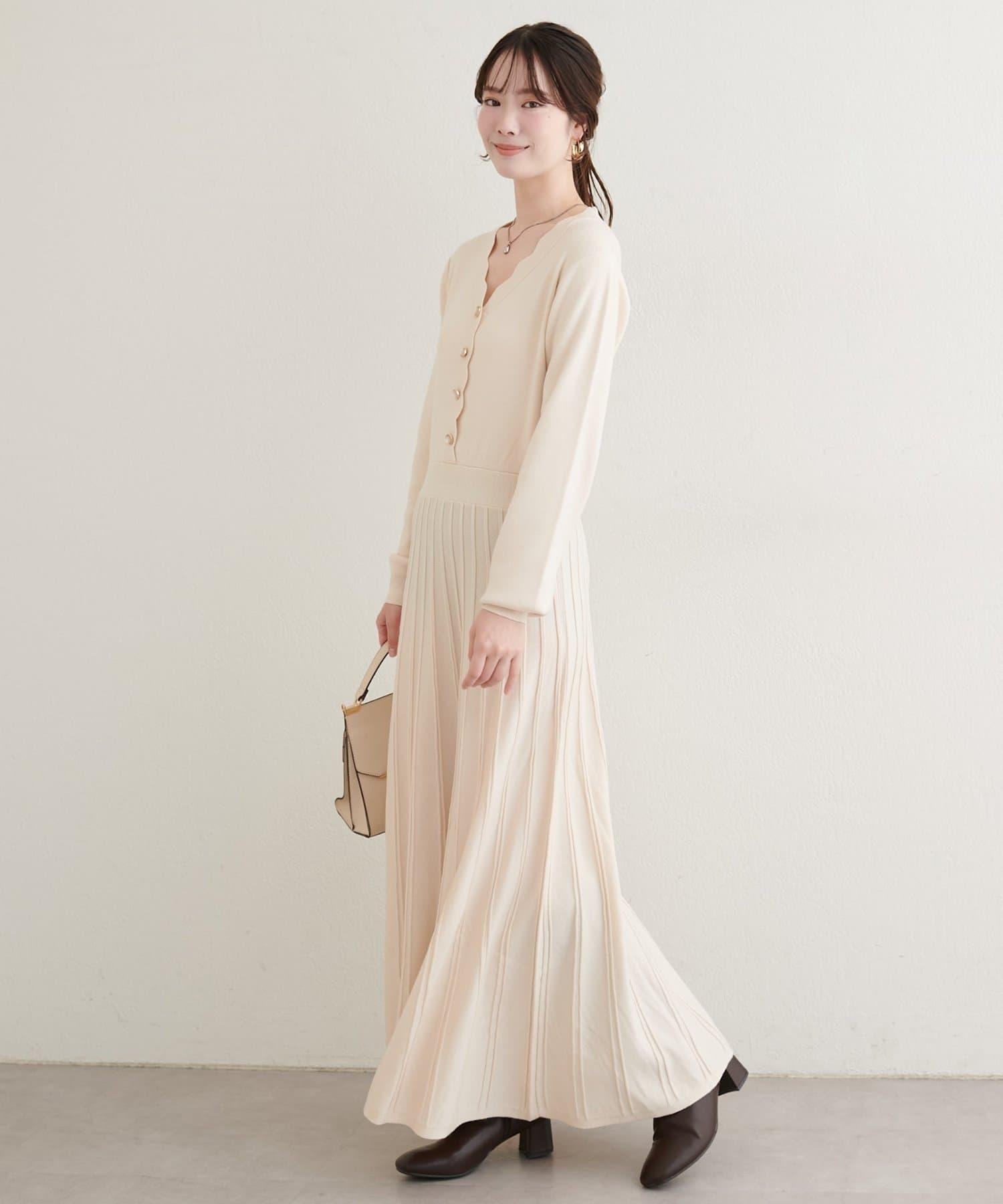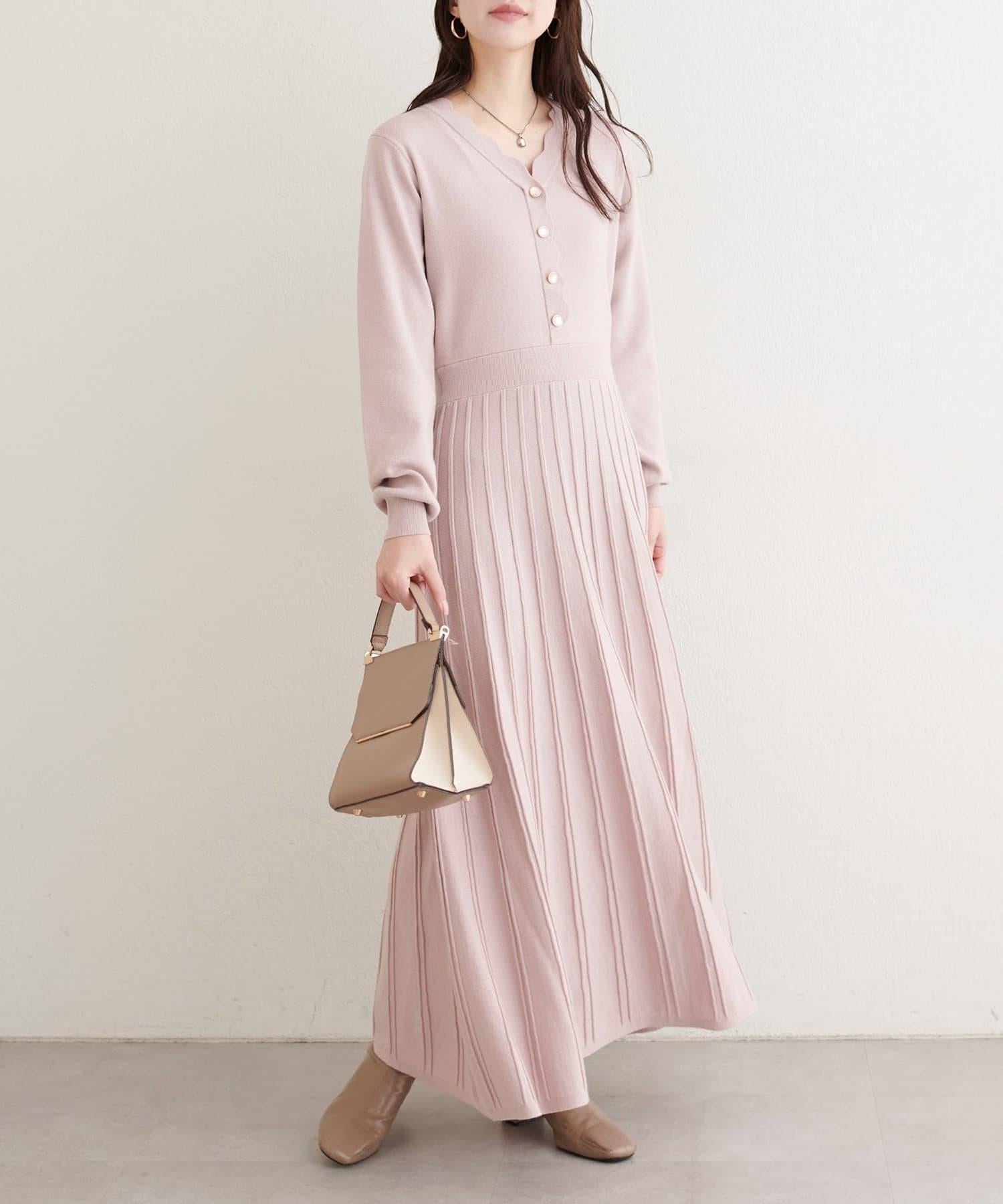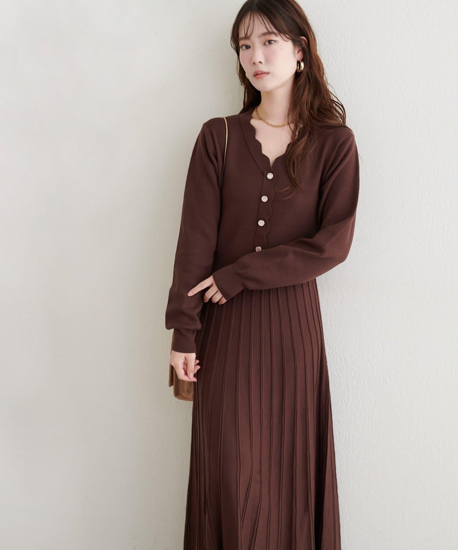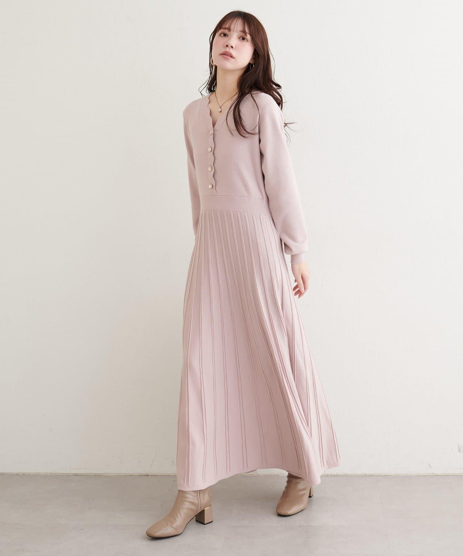 扇形褶針織連衣裙