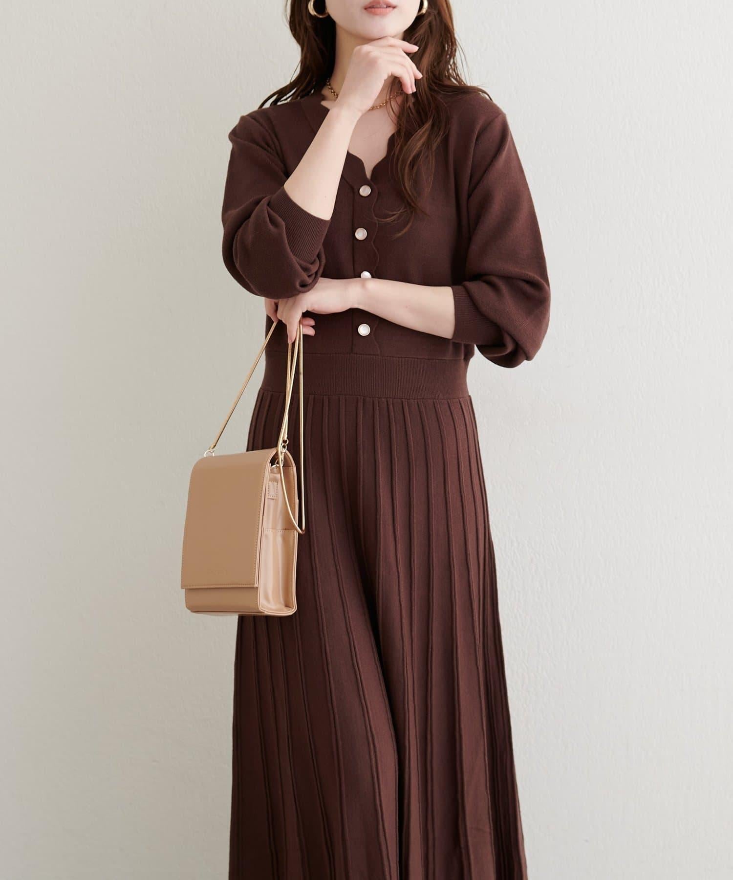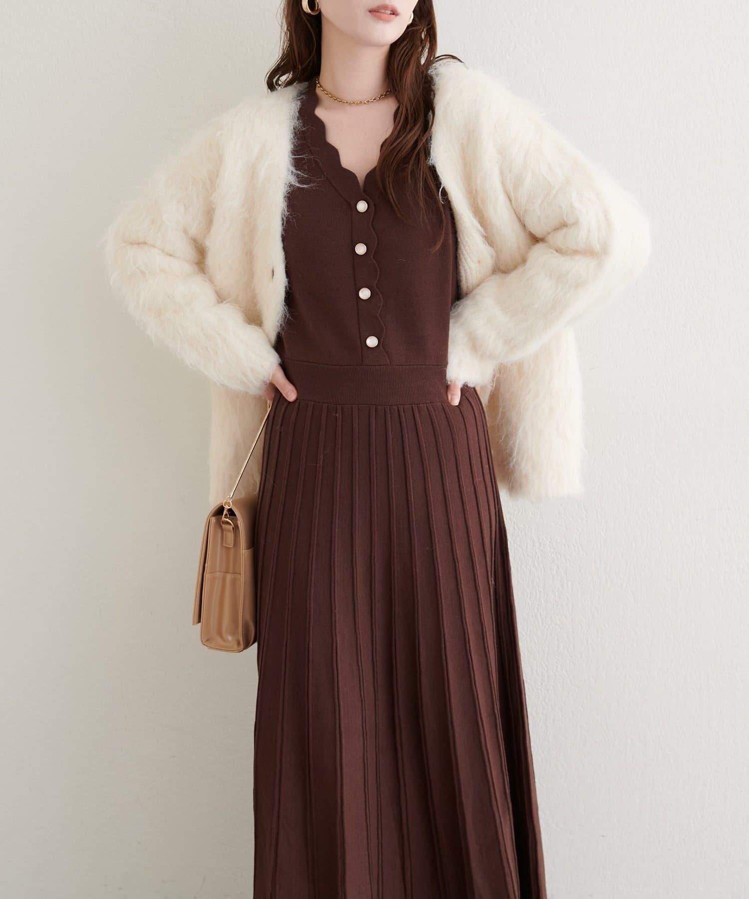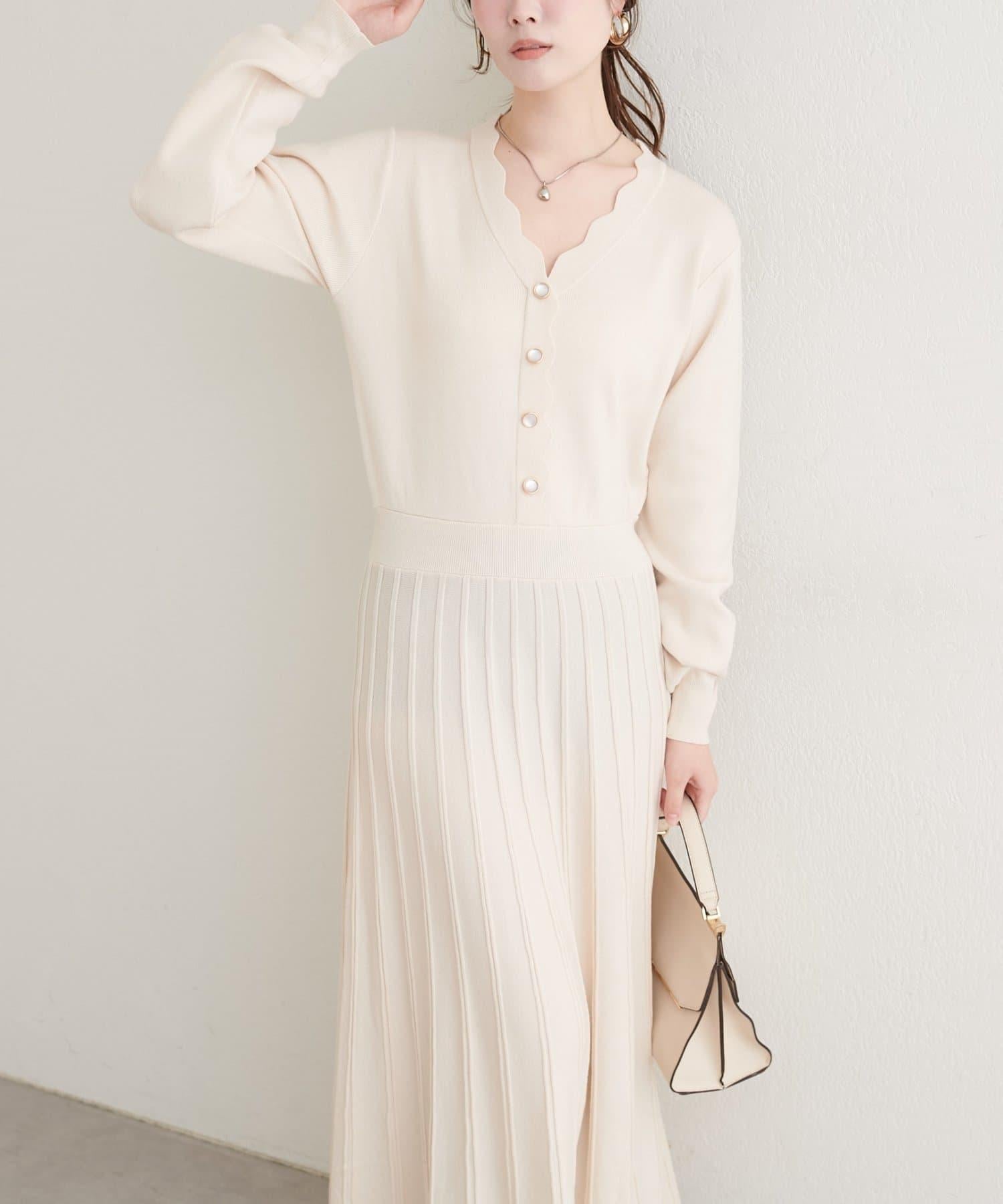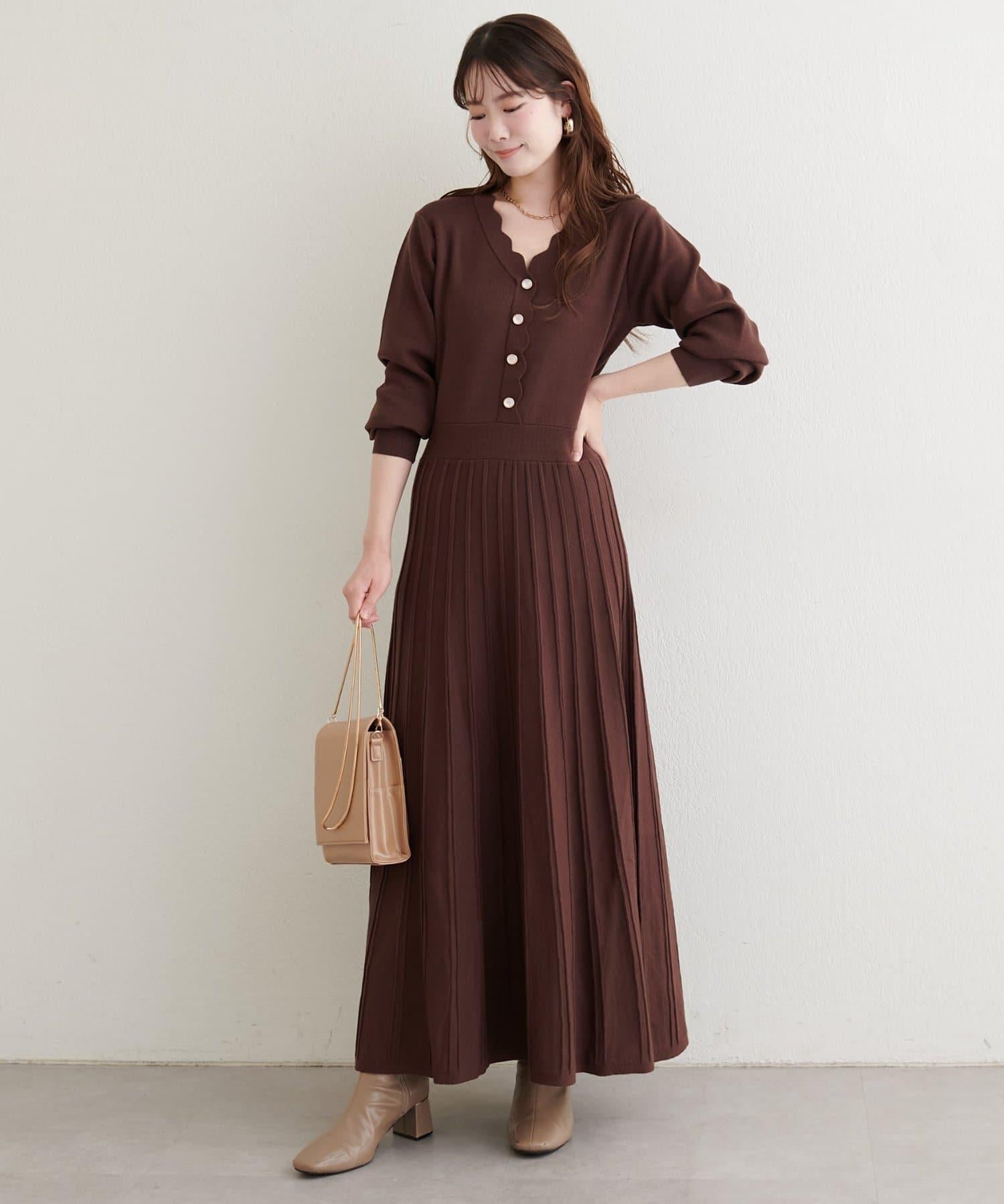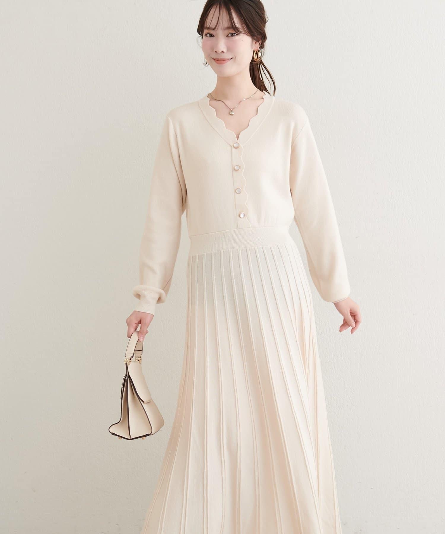 扇形褶針織連衣裙