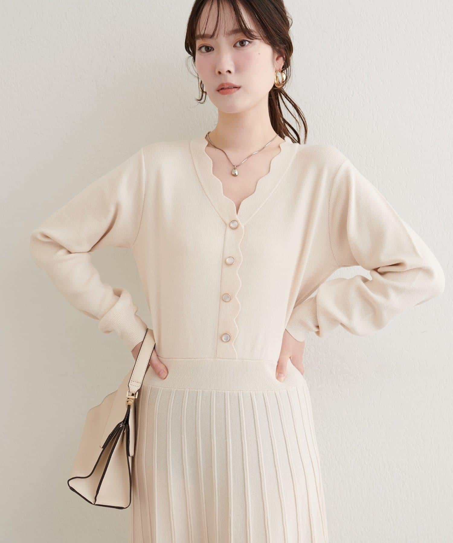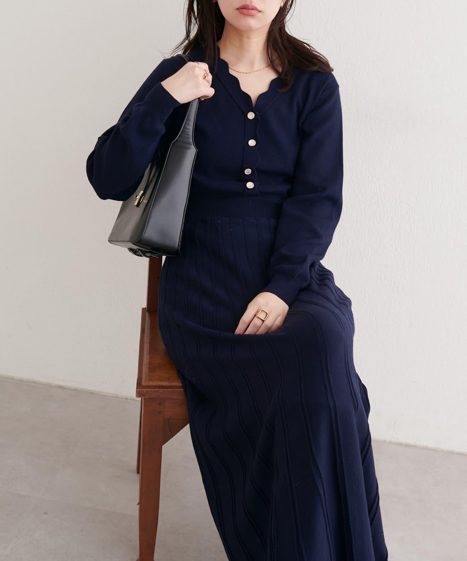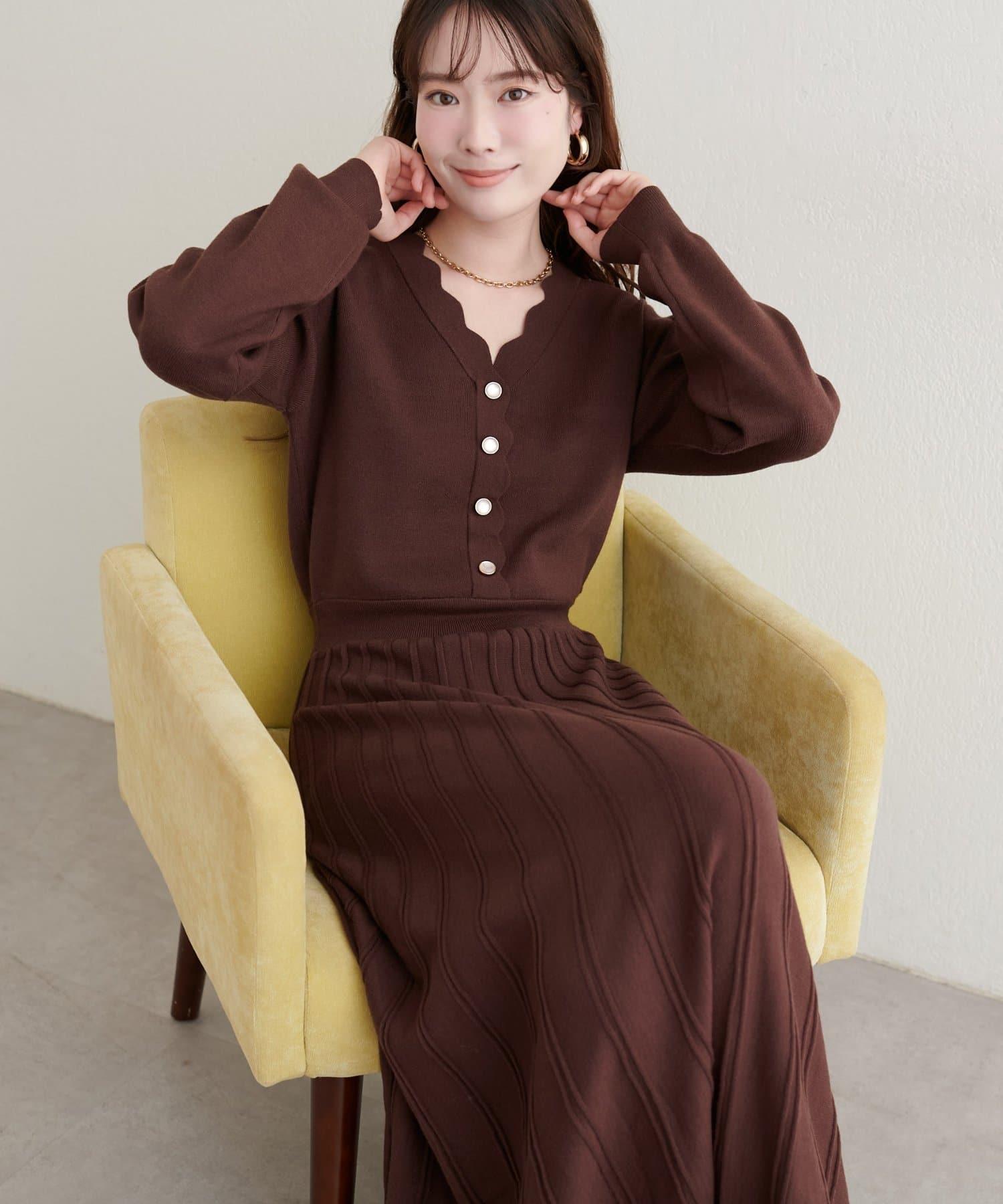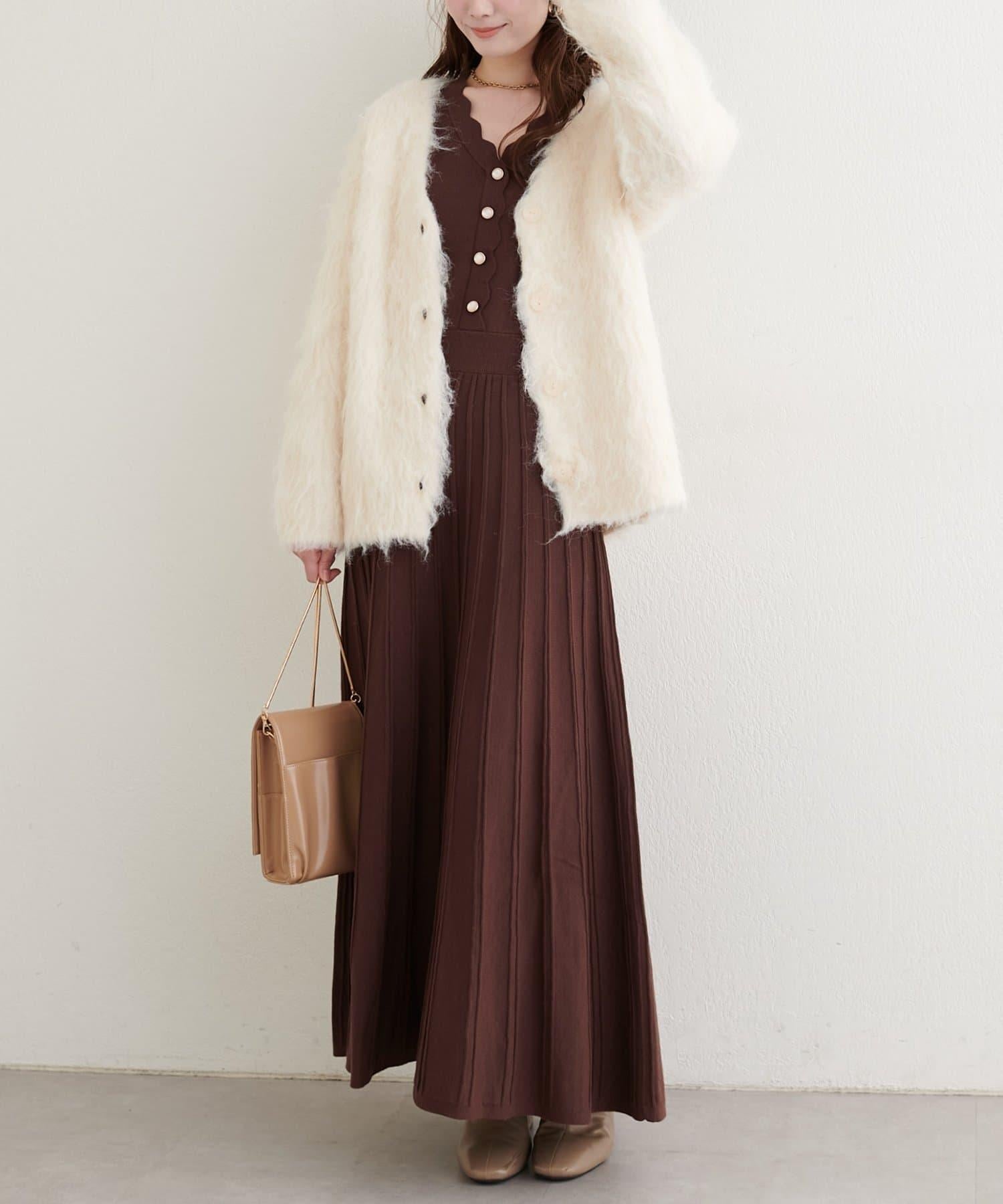 扇形褶針織連衣裙
