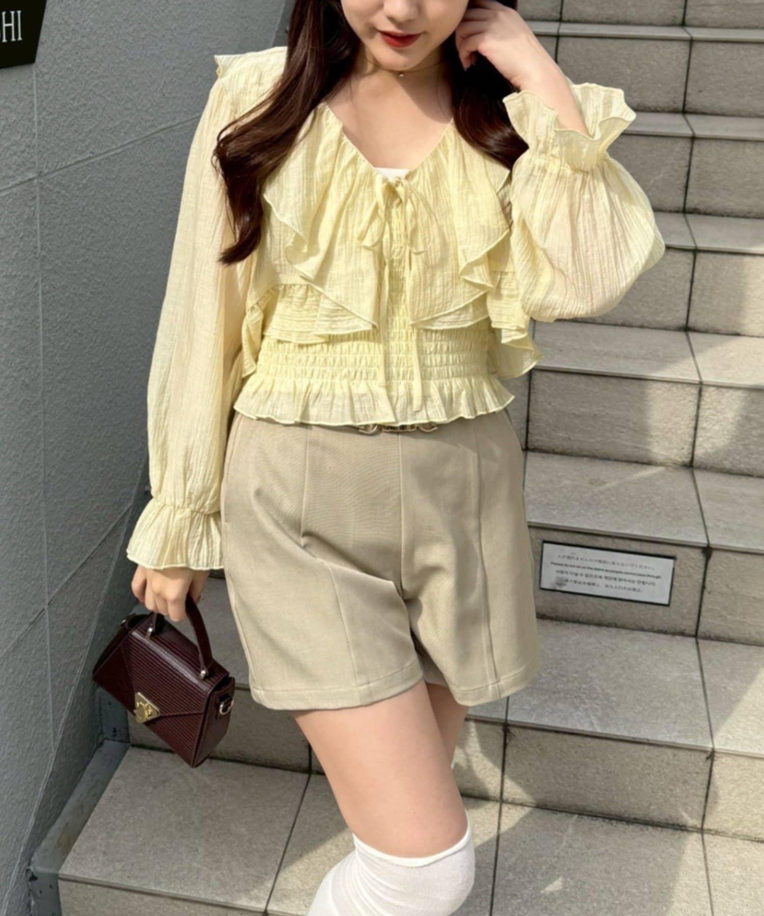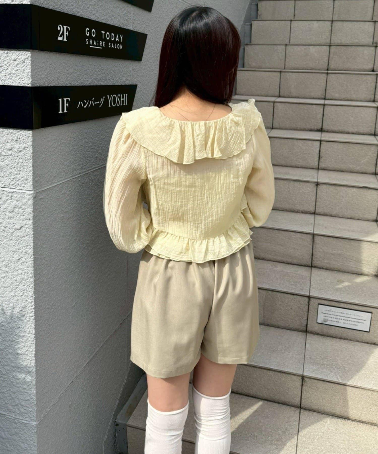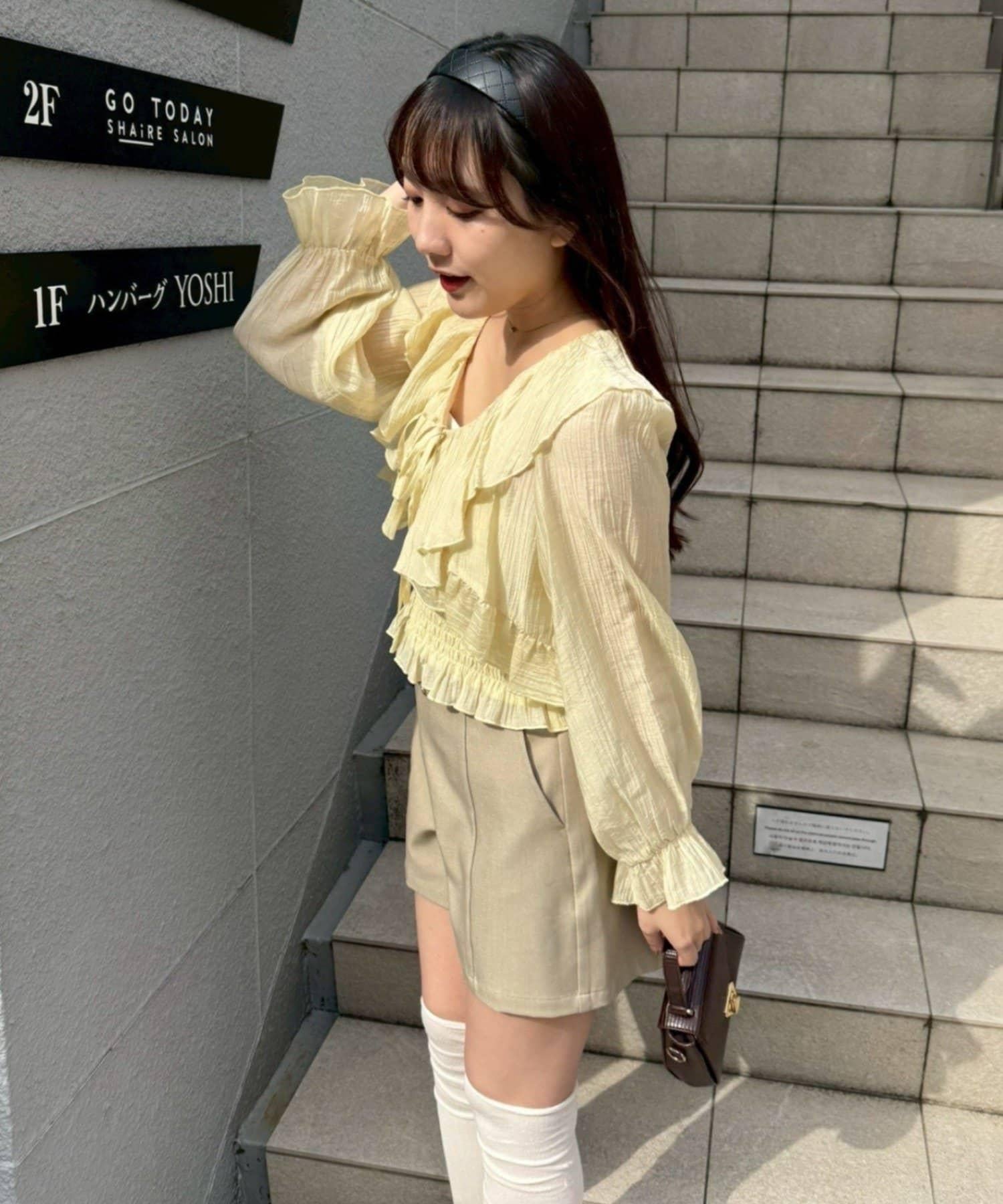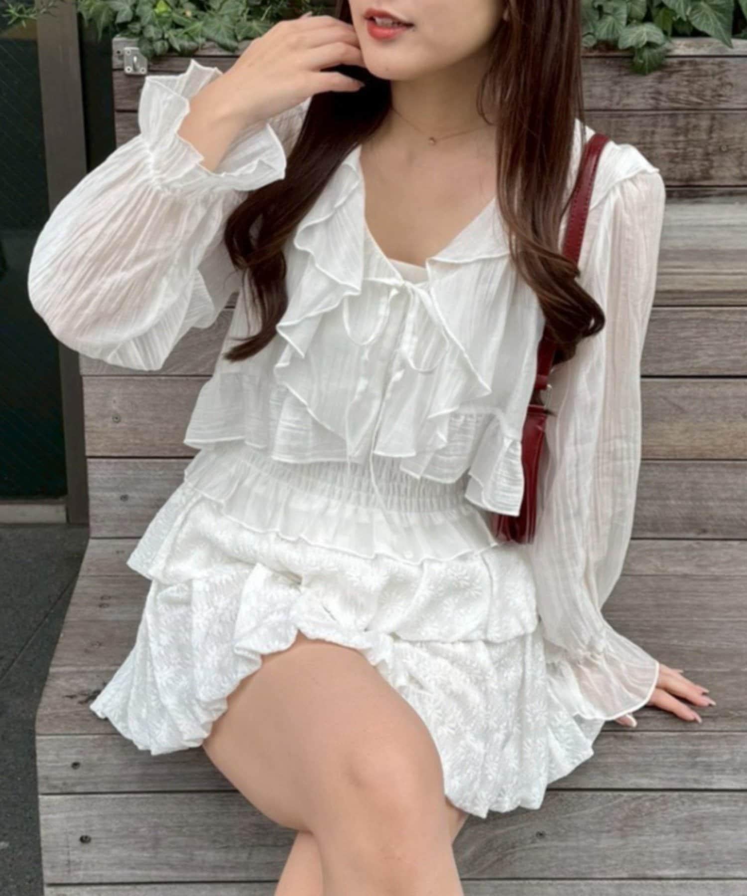 荷葉邊襯衫&抽褶吊帶上衣