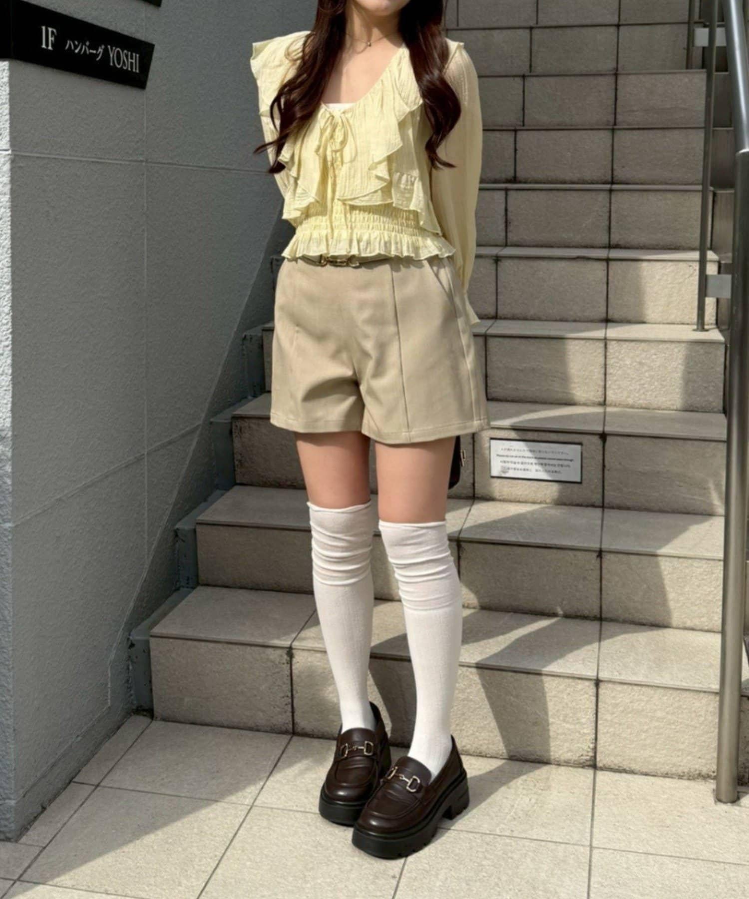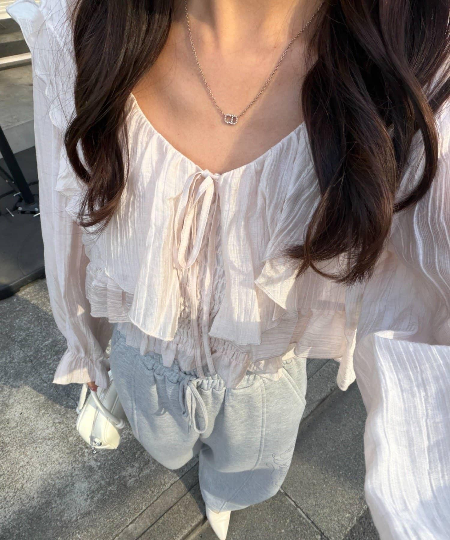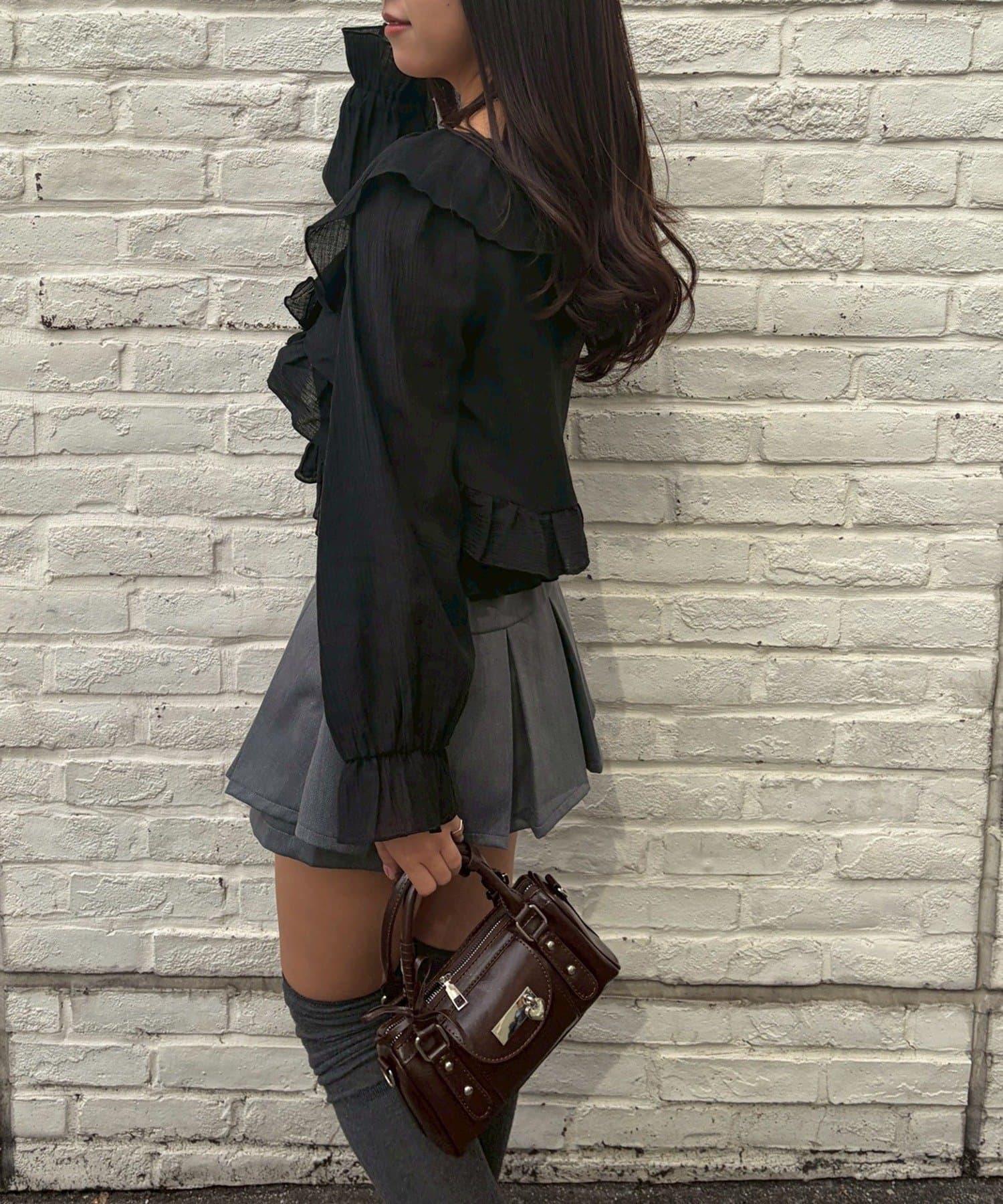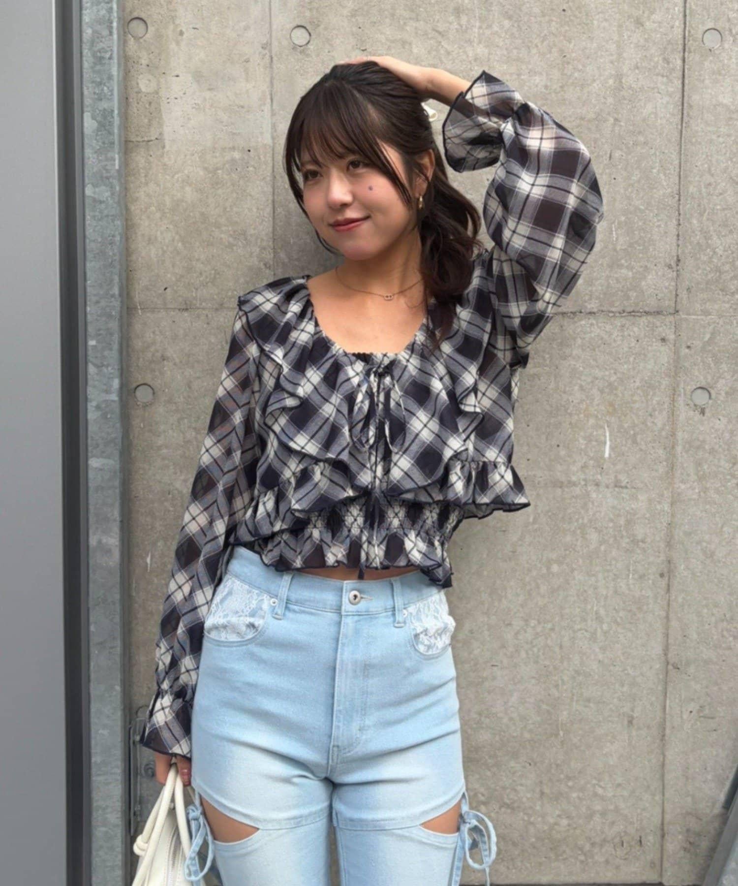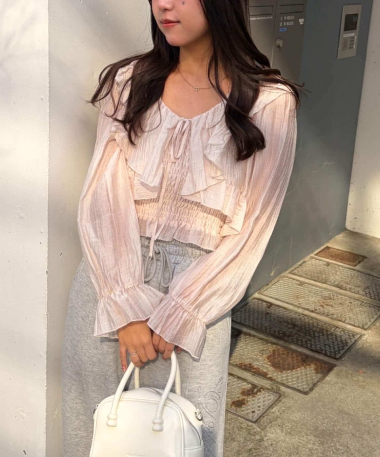 荷葉邊襯衫&抽褶吊帶上衣