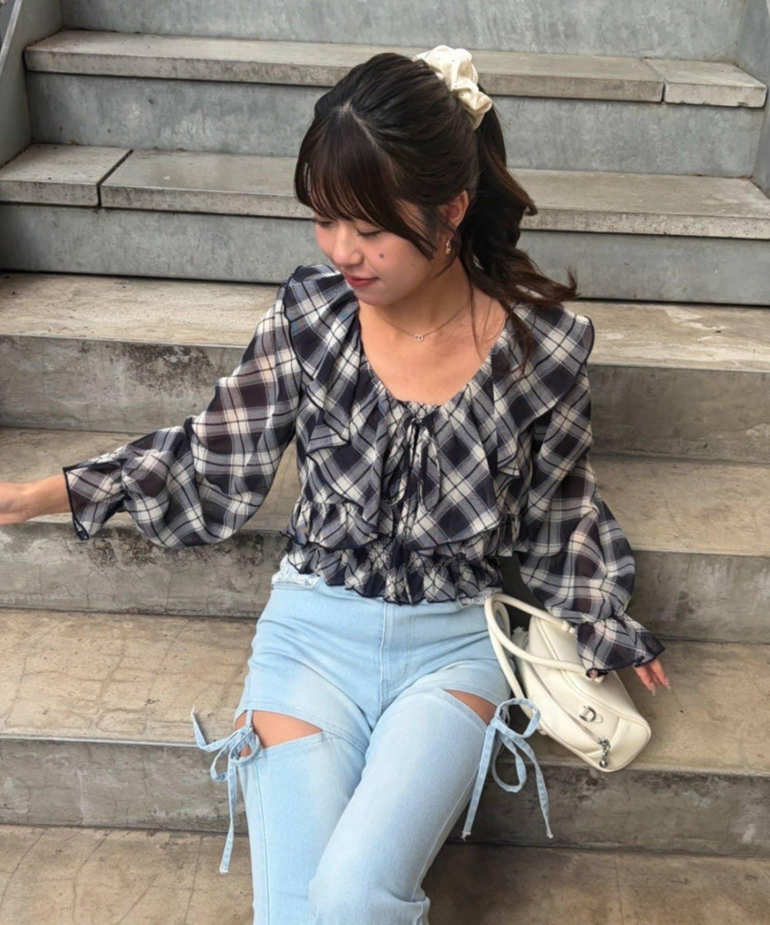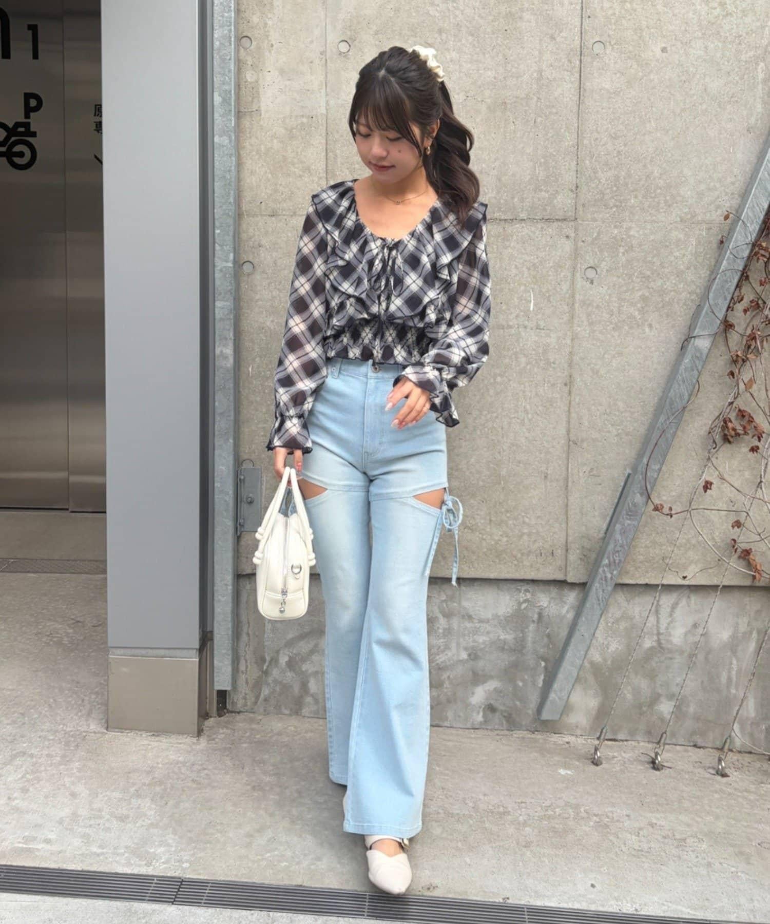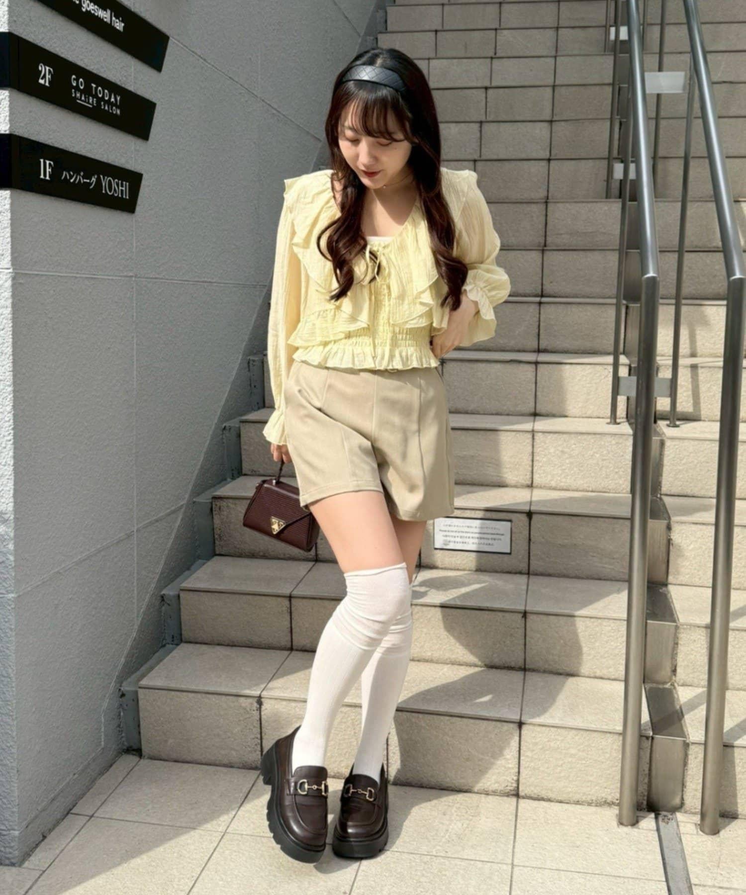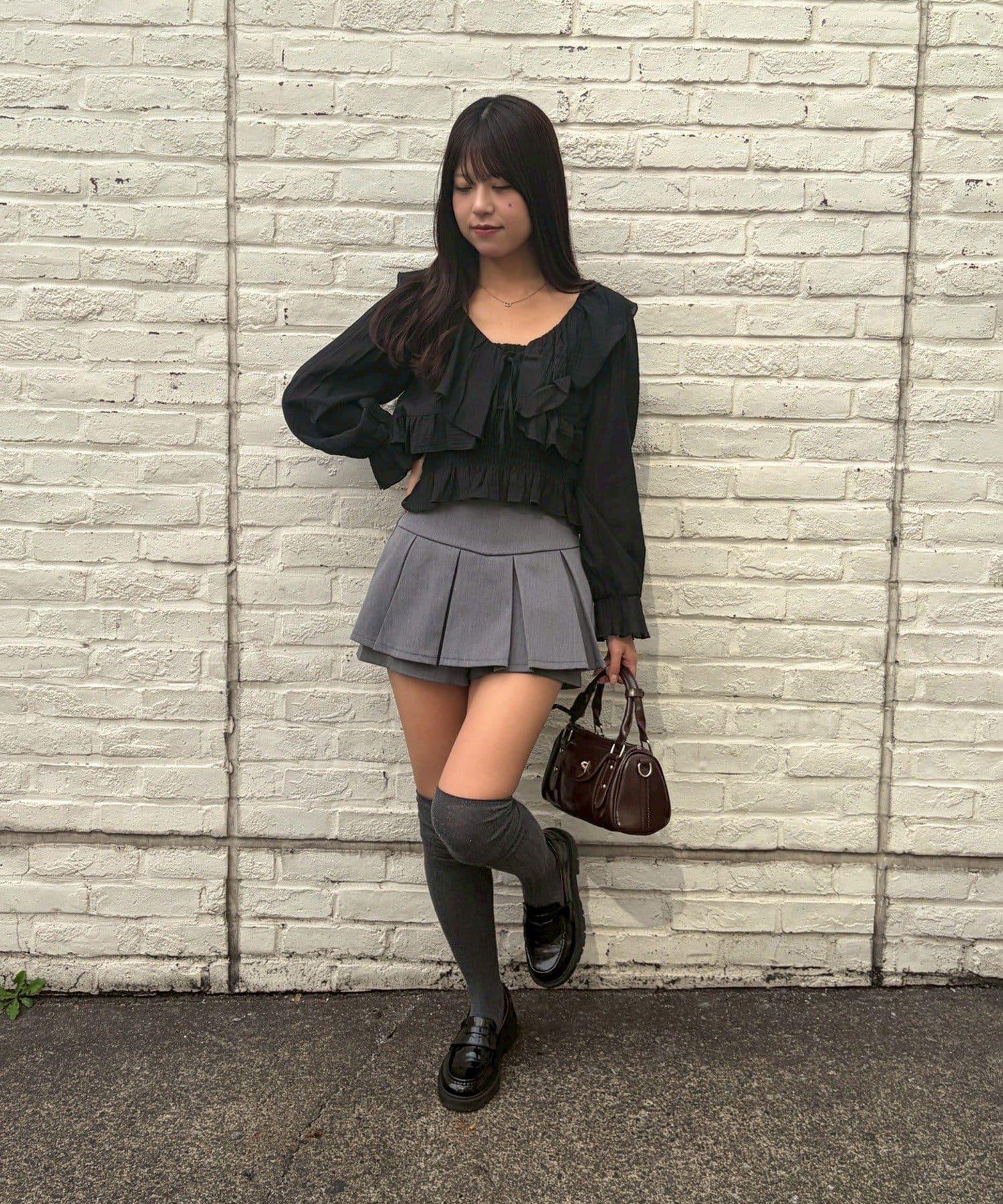 荷葉邊襯衫&抽褶吊帶上衣