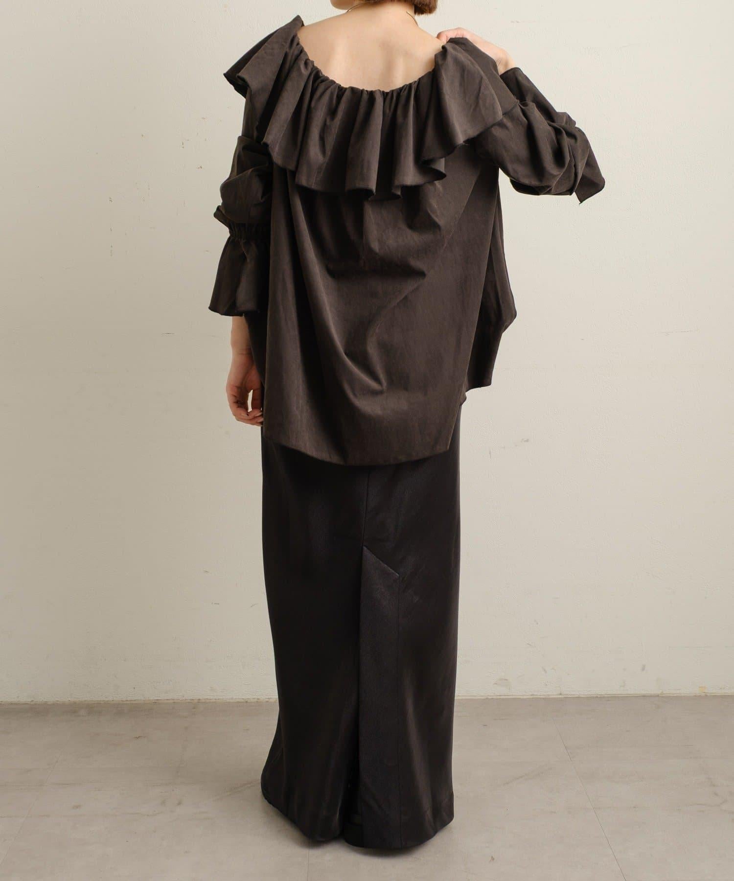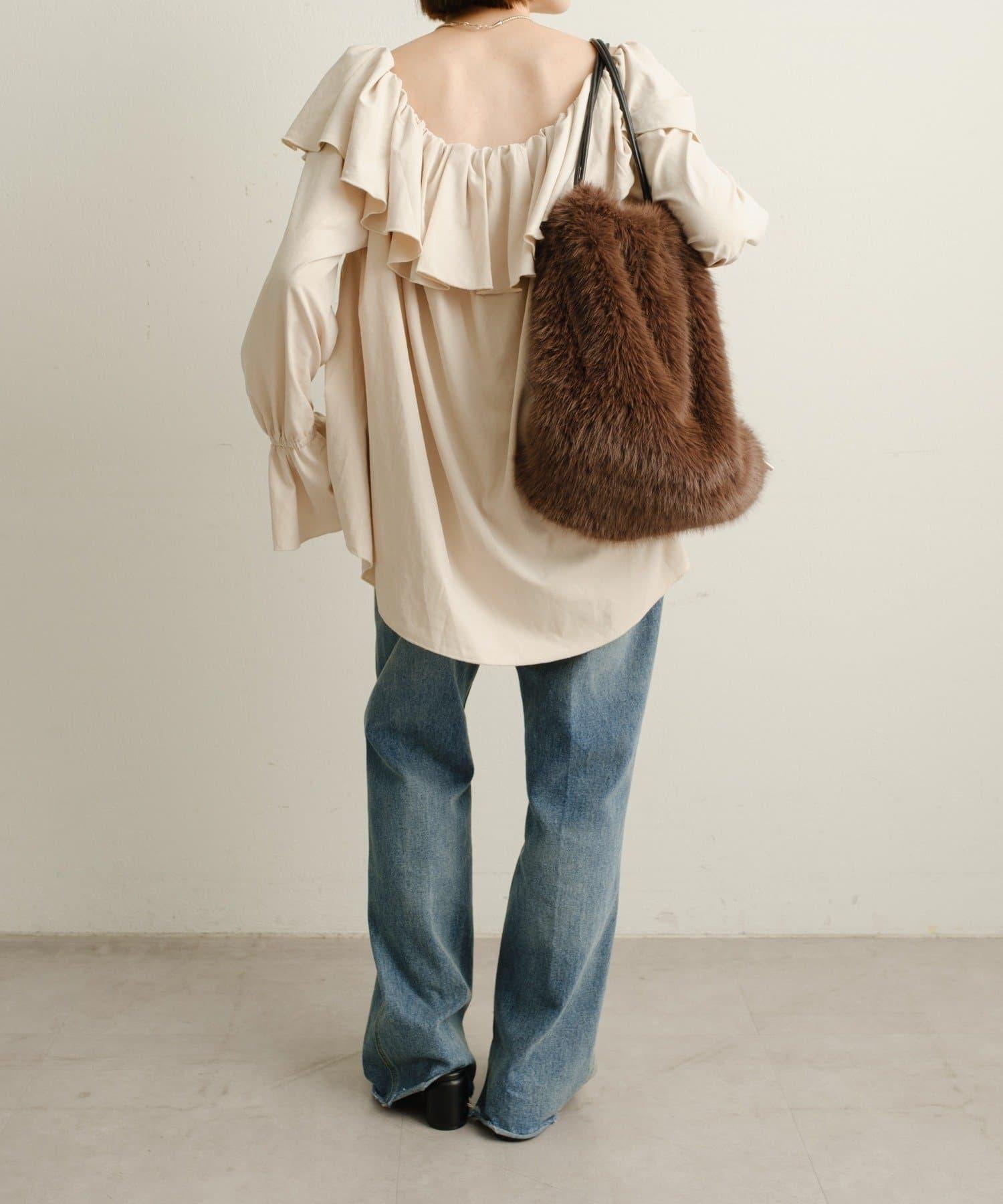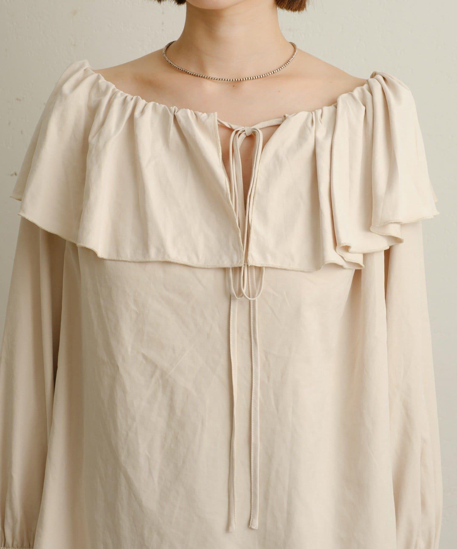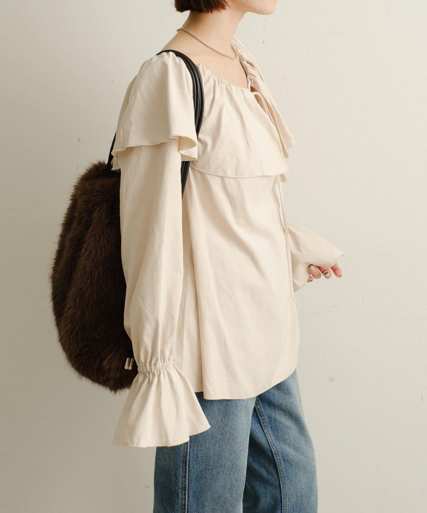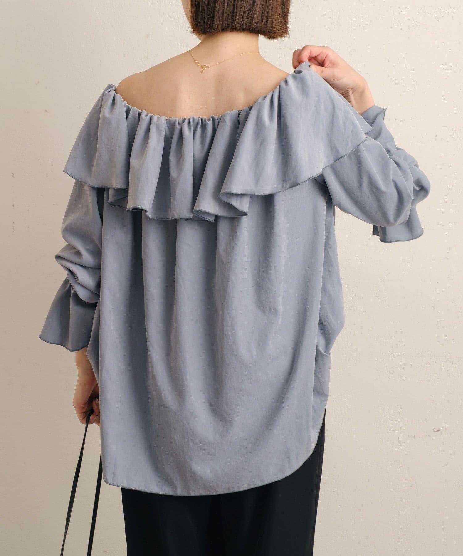 這款荷葉邊上衣的大荷葉邊設計,給人一種成熟可愛的感覺。